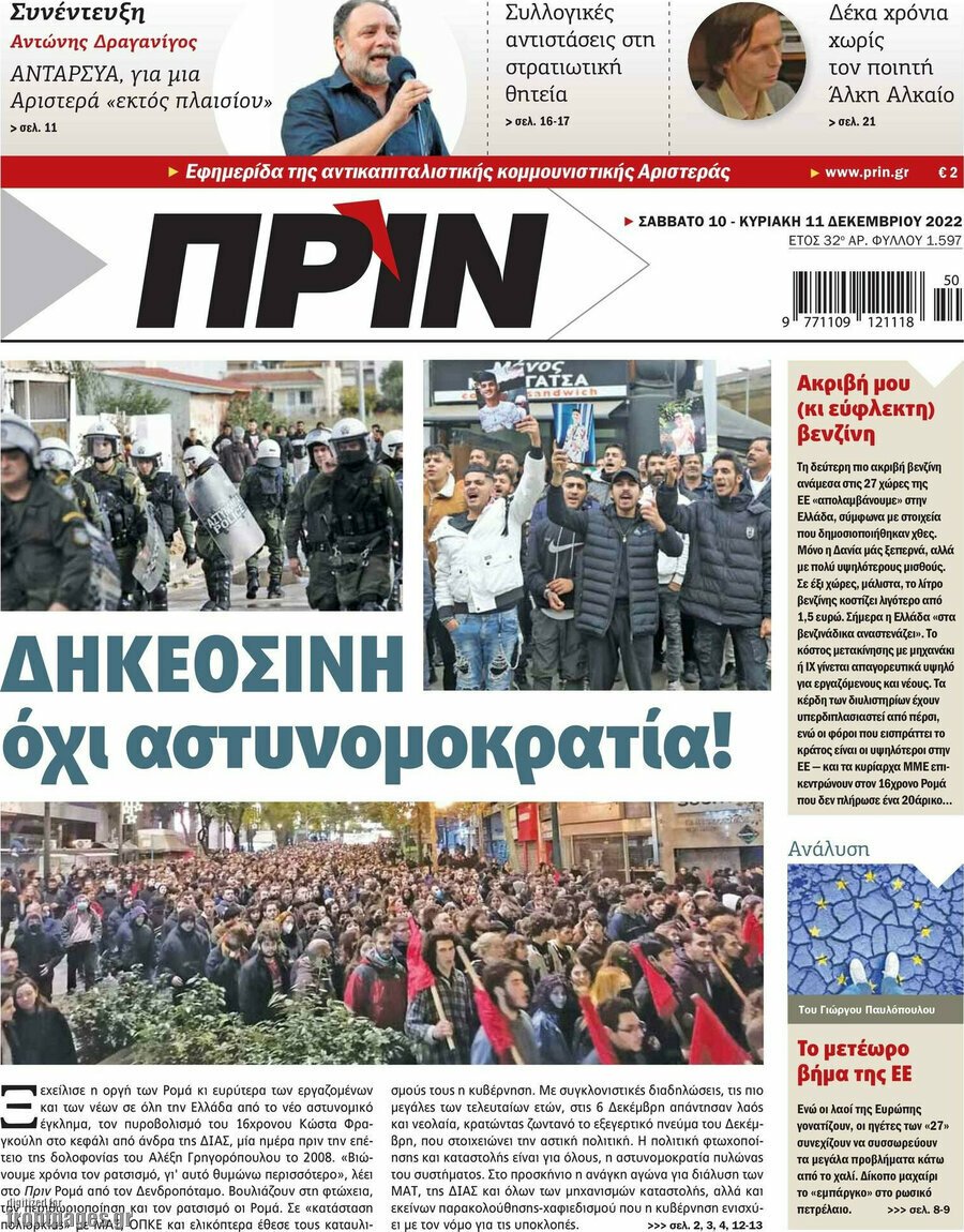 Οι πολιτικές εφημερίδες 11/12/2022 Enikos Newsroom 07:26, Κυριακή 11 Δεκεμβρίου 2022 Media Διαβάστε τα πρωτοσέλιδα από τις πολιτικές εφημερίδες, σήμερα 11/12/2022.Οι πολιτικές εφημερίδες 10/12/2022 Σχετικά Άρθρα Οι πολιτικές εφημερίδες 9/12/2022Οι πολιτικές εφημερίδες 8/12/2022 ΕΦΗΜΕΡΙΔΕΣ ΠΟΛΙΤΙΚΕΣ ΕΦΗΜΕΡΙΔΕΣ ΠΡΩΤΟΣΕΛΙΔΑ Μοιράσου το: σχολίασε κι εσύ (0 σχόλια) Ακολουθήστε το enikos.gr στο Google News και μάθετε πρώτοι όλες τις ειδήσεις Δείτε όλες τις τελευταίες ειδήσεις από την Ελλάδα και τον Κόσμο στο enikos.gr Ειδήσεις Ροή Ειδήσεων 46 λεπτά πριν Έκτακτο δελτίο επιδείνωσης καιρού: Βροχές, καταιγίδες και θυελλώδεις άνεμοι για 48 ώρες – Σε ποιες περιοχές θα είναι πιο έντονα τα φαινόμενα 20 λεπτά πριν Σέρρες: 17χρονος εντοπίστηκε νεκρός στο υπόγειο του σπιτιού του 1 ώρα πριν Χαλκιδική: Βίντεο ντοκουμέντο από τη «χρυσή» ληστεία στο κοσμηματοπωλείο με λεία 580.000 ευρώ – Πώς έδρασαν οι δύο «Ροζ Πάνθηρες» 53 λεπτά πριν Θεοφάνια: Εορτάστηκαν με λαμπρότητα και κατάνυξη σε Αθήνα και Πειραιά – Δείτε φωτογραφίες από τον Αγιασμό των Υδάτων και τη ρίψη του Τίμιου Σταυρού 2 ώρες πριν ΗΠΑ: Το αόριστο σχέδιο Τραμπ να «διοικήσει προσωρινά» τη Βενεζουέλα – Οι προσπάθειες επιρροής στο «σκληρό» Καράκας 2 ώρες πριν Οι 8 φράσεις που χρησιμοποιούν οι εγωιστές για να χειραγωγούν τα αισθήματά σας και να σας κρατούν παγιδευμένους στη σχέση 3 ώρες πριν Τα 3 ζώδια που μπαίνουν σε μια νέα και ισχυρή περίοδο – «Ανοίγει η πόρτα για σημαντικές επιτυχίες και κατακτήσεις» 4 ώρες πριν Είδε στην κάμερα ασφαλείας την πεθερά της να μπαίνει κρυφά στο σπίτι της – «Είμαι έξαλλη, μάλλον πήρε το τρυφερό σημείωμα που άφησα στον άνδρα μου» 5 ώρες πριν Ανακαλύφθηκε εντυπωσιακό ψηφιδωτό μωσαϊκό σε αρχαία πόλη – Το μοτίβο με τον «Κόμβο του Σολομώντα» που προστατεύει από το «κακό μάτι» 6 λεπτά πριν Γεωργιάδης κατά Βαρουφάκη: «Είναι νάρκισσος, δεν έχει πλάκα αυτό που έκανε» – Σφοδρή αντίδραση για τις δηλώσεις περί ecstasy 15 λεπτά πριν Δήμας: Κάνουμε συστηματική προσπάθεια επιτάχυνσης των έργων αεροναυτιλίας 20 λεπτά πριν Σέρρες: 17χρονος εντοπίστηκε νεκρός στο υπόγειο του σπιτιού του 22 λεπτά πριν Παυλίδης: «Σαρώνει» με τα γκολ του στην Primeira Liga και είναι 11ος σκόρερ στην Ευρώπη – Στον δρόμο για το «Χρυσό Παπούτσι» 30 λεπτά πριν Κωνσταντίνος Τασούλας για Θεοφάνια: Φως και αλήθεια ως οδηγός προσωπικής και συλλογικής αναγέννησης ENIKOS NETWORK Πώς να διακόψετε τα αντικαταθλιπτικά χωρίς παρενέργειες, σύμφωνα με νέα μελέτη Το μέγεθος του κεφαλιού μπορεί να αποκαλύψει τον κίνδυνο για άνοια – Ποιοι κινδυνεύουν περισσότερο Νέο πρόγραμμα απασχόλησης της ΔΥΠΑ για 10.000 ανέργους- Όλες οι λεπτομέρειες Mεταβιβάσεις ακινήτων: Ποια λάθη «κοστίζουν» ακριβά στους πολίτες και τι πρέπει να κάνουν Ο Google Assistant θα παραμείνει λίγο περισσότερο για ορισμένους χρήστες Android Τεστ προσωπικότητας: Το βάζο που θα επιλέξετε αποκαλύπτει πώς λύνετε προβλήματα στη ζωή σας περισσότερα 09:36 , Τρίτη 06 Ιανουαρίου 2026 Αυτή την Κυριακή με τη Realnews: Μυστηριώδης εξαφάνιση – Ένα καθηλωτικό θρίλερ γεμάτο αγωνία από τον διεθνώς αναγνωρισμένο συγγραφέα Rick Mofina Αυτή την Κυριακή με τη Realnews: Μυστηριώδης εξαφάνιση –Ένα καθηλωτικό θρίλερ γεμάτο αγω... 07:53 , Τρίτη 06 Ιανουαρίου 2026 Την Κυριακή με τη Realnews: Ό,τι και αν αγοράσεις, σκανάρεις και κερδίζεις! Την Κυριακή με τη Realnews: Ό,τι και αν αγοράσεις, σκανάρεις και κερδίζεις! Με το PADU app, το... 07:28 , Τρίτη 06 Ιανουαρίου 2026 Την Κυριακή με τη Realnews: Δωροεπιταγή 10€ Την Κ