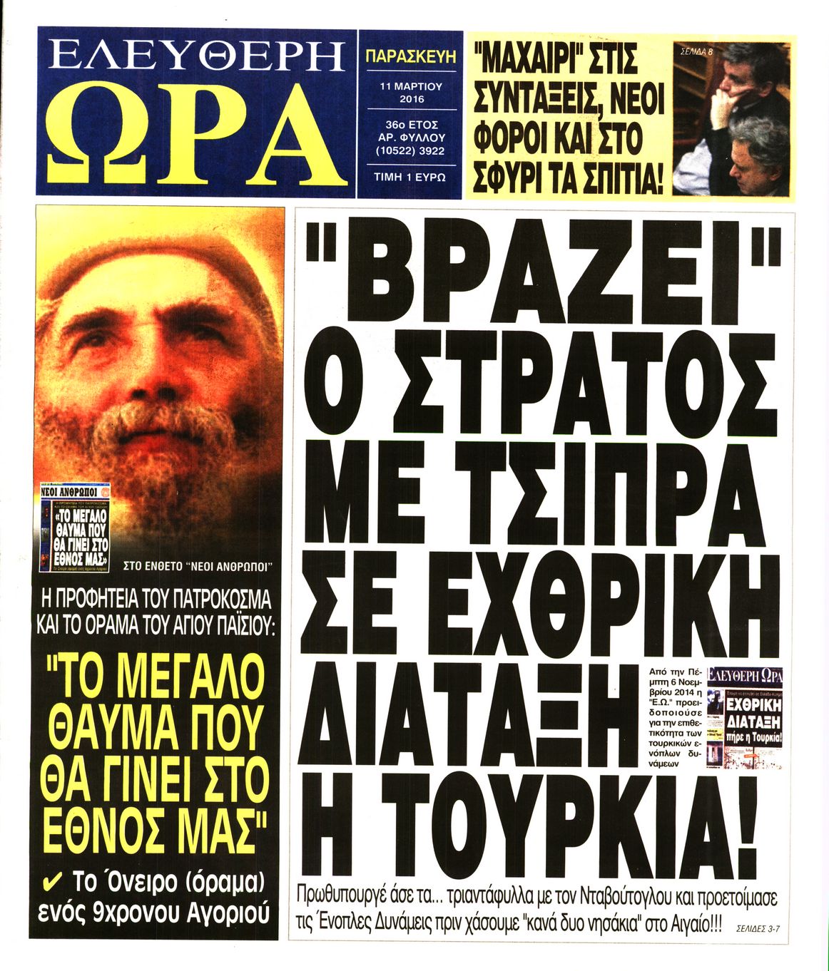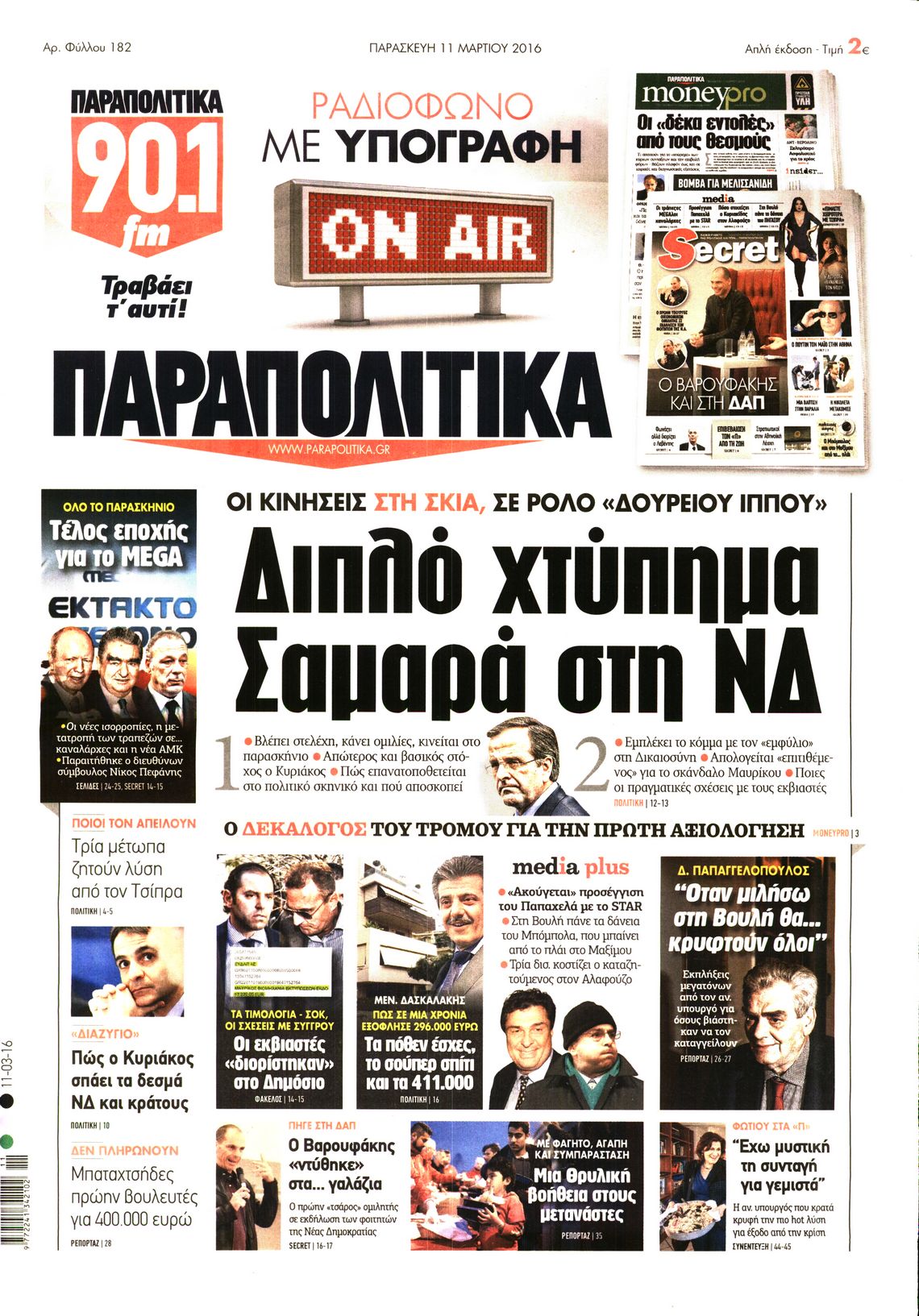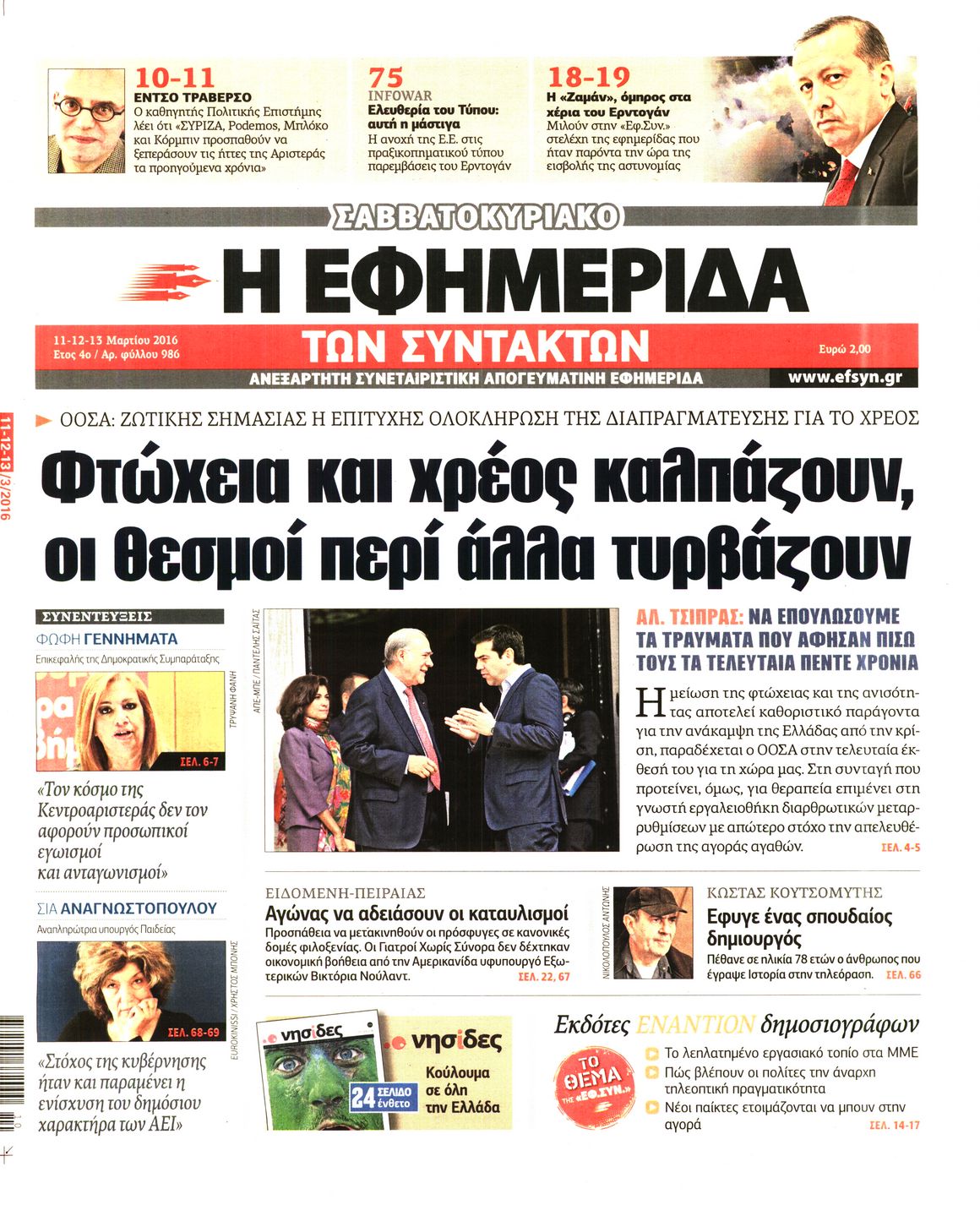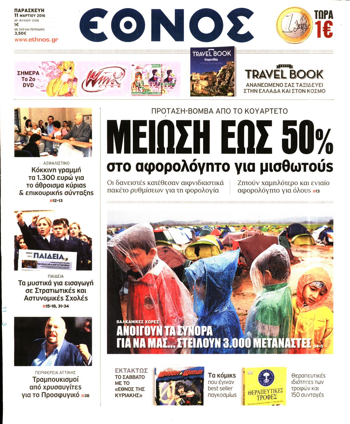 Οι πολιτικές εφημερίδες 11-3-2016 Enikos Newsroom 05:48, Παρασκευή 11 Μαρτίου 2016 Media Διαβάστε τα σημερινά πρωτοσέλιδα των πολιτικών εφημερίδων: ΠΟΛΙΤΙΚΕΣ ΕΦΗΜΕΡΙΔΕΣ ΠΡΩΤΟΣΕΛΙΔΑ Μοιράσου το: σχολίασε κι εσύ (0 σχόλια) Ακολουθήστε το enikos.gr στο Google News και μάθετε πρώτοι όλες τις ειδήσεις Δείτε όλες τις τελευταίες ειδήσεις από την Ελλάδα και τον Κόσμο στο enikos.gr Ειδήσεις Ροή Ειδήσεων 3 ώρες πριν Χριστούγεννα στα μπλόκα: Επιμένουν στις κινητοποιήσεις τους οι αγρότες – Ανοίγουν τα διόδια το Σαββατοκύριακο 3 ώρες πριν Ουκρανία: Η άνευ προηγουμένου επίθεση σε ρωσικό τάνκερ στη Μεσόγειο και το μήνυμα προς στον Πούτιν – Το «μακρύ χέρι» του Κιέβου 3 ώρες πριν Πούτιν: Τα μηνύματα σε Ευρώπη και ΝΑΤΟ από το μαραθώνιο «σόου» του – Η απαίτηση για «σεβασμό» και η ειρήνη «με τους όρους» της Μόσχας 3 ώρες πριν Τραμπ: Δεν αποκλείει την πιθανότητα ενός πολέμου στη Βενεζουέλα – «Ο Μαδούρο ξέρει καλύτερα από τον καθένα τι ακριβώς θέλω» 4 ώρες πριν Συνεχίζει να προκαλεί ο Μίτσκοσκι: «Για μένα το όνομα Μακεδονία είναι ιερό» 3 ώρες πριν Ανακαλύφθηκαν αρχαία χρυσά νομίσματα 2.200 ετών που απεικονίζουν τον θεό Απόλλωνα – Η άγνωστη σύνδεση με τον Φίλιππο Β΄ της Μακεδονίας 4 ώρες πριν Ύπνος: Μια κρυφή κατάσταση του εγκεφάλου πριν από τον ύπνο μπορεί να είναι το “κλειδί” για υψηλή ευφυΐα και δημιουργικότητα 5 ώρες πριν Αριθμολογία: Οι άνθρωποι που έχουν γεννηθεί αυτές τις 4 ημερομηνίες, συχνά παρεξηγούνται – «Η καλοσύνη τους κρύβει τεράστια δύναμη» 6 ώρες πριν Ξεχάστε το καθάρισμα το Σαββατοκύριακο: Ο «κανόνας των 20 λεπτών» που θα σας λύσει τα χέρια 13 λεπτά πριν Euroleague: Επέστρεψε στις νίκες ο Ολυμπιακός, πήρε την ματσάρα της χρονιάς η Μπάρτσα – Τα αποτελέσματα και η βαθμολογία 28 λεπτά πριν Συρία: Μαζικά πλήγματα των ΗΠΑ σε θέσεις του Ισλαμικού Κράτους – Χέγκσεθ: «Δεν είναι αρχή πολέμου, είναι μια δήλωση εκδίκησης» για το θάνατο των στρατιωτών μας 41 λεπτά πριν Ουκρανία: Ολοκληρώθηκαν οι συνομιλίες με τους Αμερικανούς κι Ευρωπαίους διαπραγματευτές 56 λεπτά πριν Μπαρτσελόνα – Μπασκόνια 134-124: Οι «μπλαουγκράνα» πήραν το ματς της χρονιάς ύστερα από τρεις παρατάσεις 1 ώρα πριν Φαίη Σκορδά: «Παλιότερα τα κομπλιμέντα τα προσπερνούσα, τώρα τα έχω ανάγκη» ENIKOS NETWORK Το ΕΚΑΒ τιμήθηκε από την Ακαδημία Αθηνών για τα 40 χρόνια προσφοράς του Έχετε πραγματικά μεγάλη καρδιά; 10 χαρακτηριστικά όσων έχουν καλοσύνη Αναστολή μέτρων αναγκαστικής εκτέλεσης για κτηνοτρόφους που πλήττονται από την ευλογιά των αιγοπροβάτων Πλήρης επάρκεια προϊόντων στις λαϊκές της Αττικής, παρά τις αγροτικές κινητοποιήσεις – Τι απαντούν οι πωλητές Χαρτογραφώντας το «σημείο χωρίς επιστροφή»: Για πρώτη φορά αποκαλύπτεται με λεπτομέρεια το ακανθώδες όριο της ατμόσφαιρας τ... Η Google καταργεί τη λειτουργία «dark web report» – Πώς θα μπορούν οι χρήστες να διαγράφουν τα δεδομένα τους περισσότερα 22:42 , Παρασκευή 19 Δεκεμβρίου 2025 Γιώργος Γιαννόπουλος για “Το σόι σου”: “Είναι ευτυχία και ευλογία αυτή η σειρά” «Είναι ευτυχία και ευλογία η συγκυρία αυτής της σειράς», θα πει ο Γιώργος Γιαννόπουλος -ο αγαπ... 20:37 , Παρασκευή 19 Δεκεμβρίου 2025 Don’t Forget The Lyrics: Η Έλλη Κοκκίνου υποδέχεται 4 παίκτες που θα κάνουν τα πάντα για να μη χάσουν ούτε… μισή λέξη από τους στίχους Το «Don’t Forget The Lyrics» επιστρέφει απόψε, Παρασκευή 19 Δεκεμβρίου, στις 21:00 με νέο επει... 19:31 , Παρασκευή 19 Δεκεμβρίου 2025 GNTM: Απόψε ο μεγάλος τελικός για τους 4 φιναλίστ Έπειτα από μήνες γεμάτους μόδ