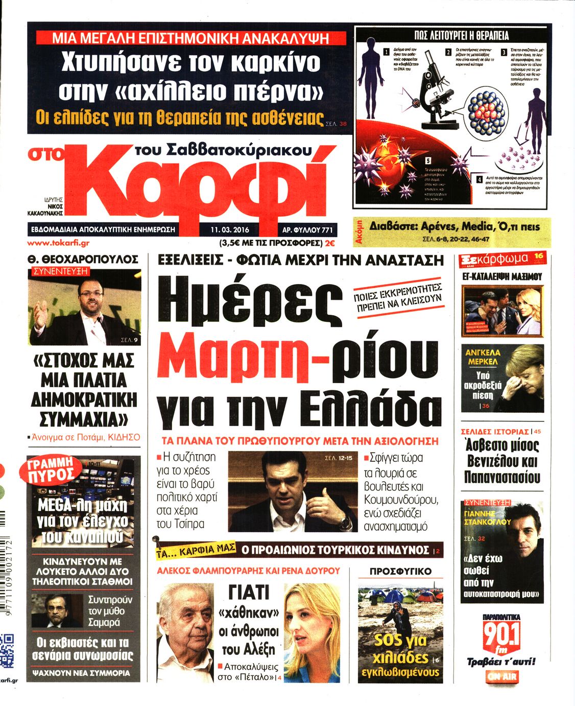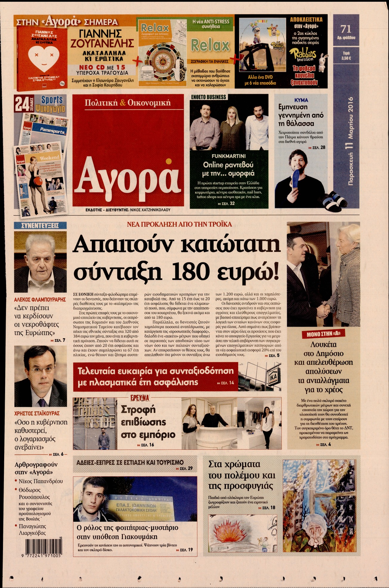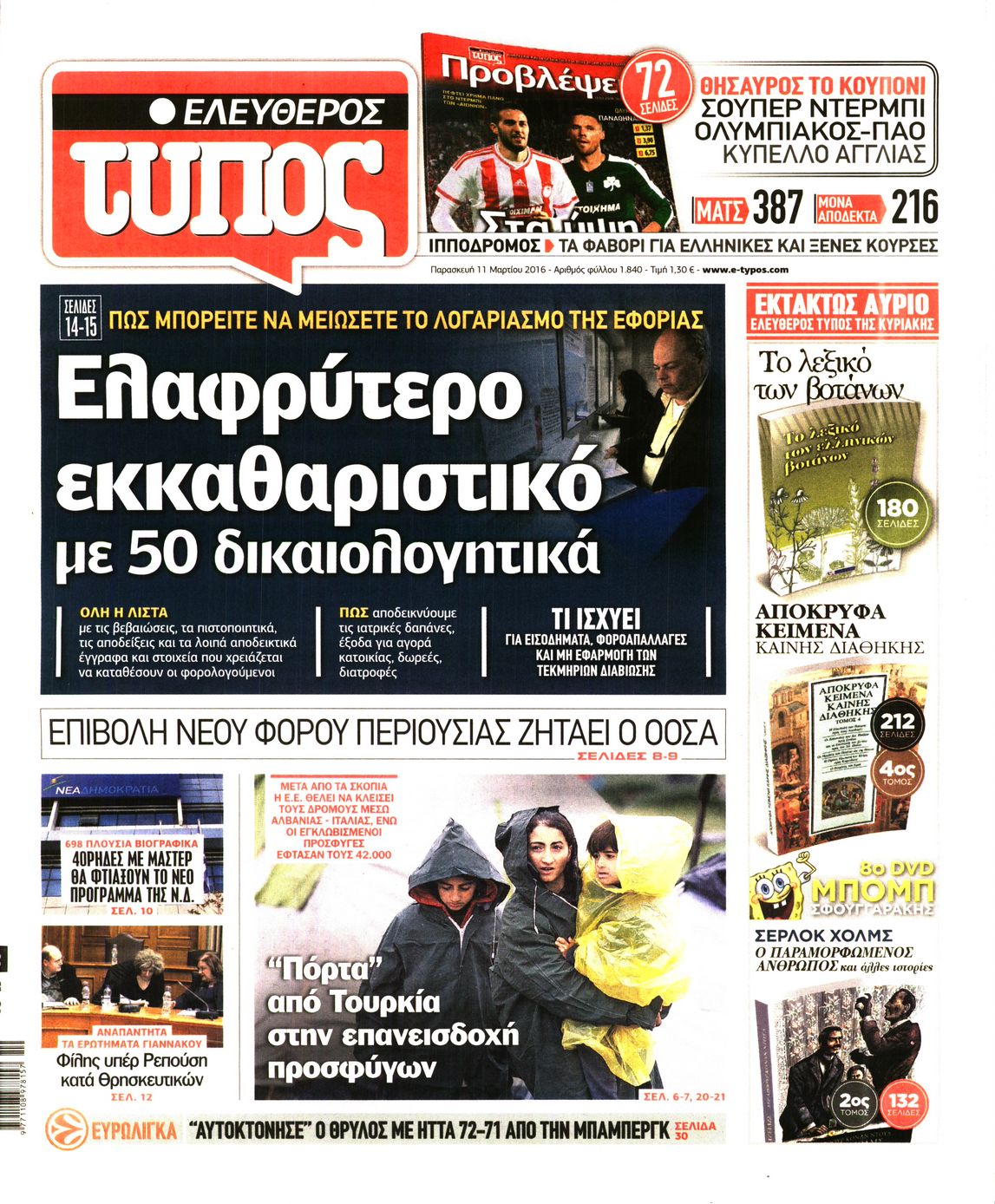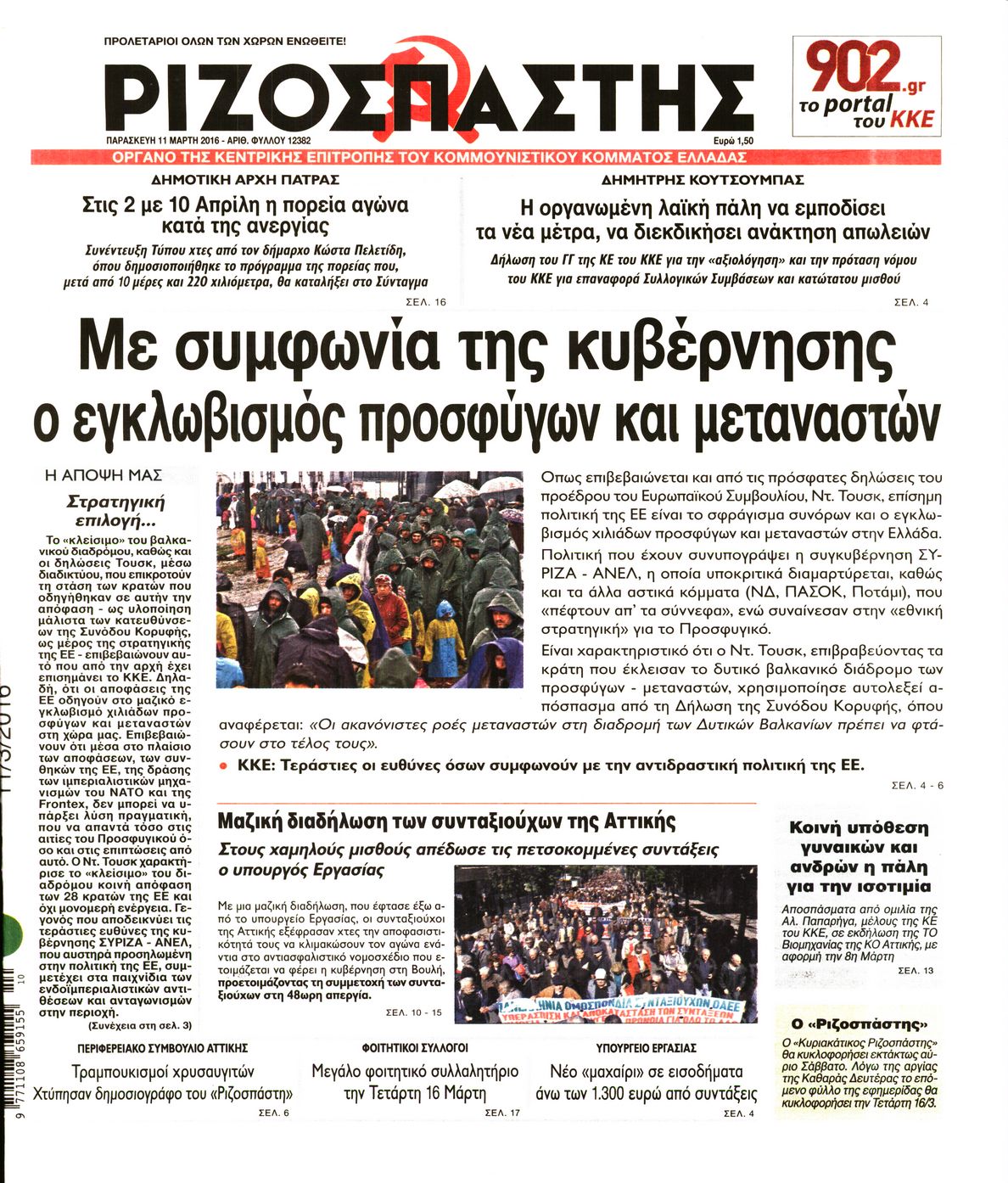 Οι πολιτικές εφημερίδες 11-3-2016 Enikos Newsroom 05:48, Παρασκευή 11 Μαρτίου 2016 Media Διαβάστε τα σημερινά πρωτοσέλιδα των πολιτικών εφημερίδων: ΠΟΛΙΤΙΚΕΣ ΕΦΗΜΕΡΙΔΕΣ ΠΡΩΤΟΣΕΛΙΔΑ Μοιράσου το: σχολίασε κι εσύ (0 σχόλια) Ακολουθήστε το enikos.gr στο Google News και μάθετε πρώτοι όλες τις ειδήσεις Δείτε όλες τις τελευταίες ειδήσεις από την Ελλάδα και τον Κόσμο στο enikos.gr Ειδήσεις Ροή Ειδήσεων 3 ώρες πριν Χριστούγεννα στα μπλόκα: Επιμένουν στις κινητοποιήσεις τους οι αγρότες – Ανοίγουν τα διόδια το Σαββατοκύριακο 3 ώρες πριν Ουκρανία: Η άνευ προηγουμένου επίθεση σε ρωσικό τάνκερ στη Μεσόγειο και το μήνυμα προς στον Πούτιν – Το «μακρύ χέρι» του Κιέβου 3 ώρες πριν Πούτιν: Τα μηνύματα σε Ευρώπη και ΝΑΤΟ από το μαραθώνιο «σόου» του – Η απαίτηση για «σεβασμό» και η ειρήνη «με τους όρους» της Μόσχας 3 ώρες πριν Τραμπ: Δεν αποκλείει την πιθανότητα ενός πολέμου στη Βενεζουέλα – «Ο Μαδούρο ξέρει καλύτερα από τον καθένα τι ακριβώς θέλω» 4 ώρες πριν Συνεχίζει να προκαλεί ο Μίτσκοσκι: «Για μένα το όνομα Μακεδονία είναι ιερό» 3 ώρες πριν Ανακαλύφθηκαν αρχαία χρυσά νομίσματα 2.200 ετών που απεικονίζουν τον θεό Απόλλωνα – Η άγνωστη σύνδεση με τον Φίλιππο Β΄ της Μακεδονίας 4 ώρες πριν Ύπνος: Μια κρυφή κατάσταση του εγκεφάλου πριν από τον ύπνο μπορεί να είναι το “κλειδί” για υψηλή ευφυΐα και δημιουργικότητα 5 ώρες πριν Αριθμολογία: Οι άνθρωποι που έχουν γεννηθεί αυτές τις 4 ημερομηνίες, συχνά παρεξηγούνται – «Η καλοσύνη τους κρύβει τεράστια δύναμη» 6 ώρες πριν Ξεχάστε το καθάρισμα το Σαββατοκύριακο: Ο «κανόνας των 20 λεπτών» που θα σας λύσει τα χέρια 13 λεπτά πριν Euroleague: Επέστρεψε στις νίκες ο Ολυμπιακός, πήρε την ματσάρα της χρονιάς η Μπάρτσα – Τα αποτελέσματα και η βαθμολογία 28 λεπτά πριν Συρία: Μαζικά πλήγματα των ΗΠΑ σε θέσεις του Ισλαμικού Κράτους – Χέγκσεθ: «Δεν είναι αρχή πολέμου, είναι μια δήλωση εκδίκησης» για το θάνατο των στρατιωτών μας 41 λεπτά πριν Ουκρανία: Ολοκληρώθηκαν οι συνομιλίες με τους Αμερικανούς κι Ευρωπαίους διαπραγματευτές 56 λεπτά πριν Μπαρτσελόνα – Μπασκόνια 134-124: Οι «μπλαουγκράνα» πήραν το ματς της χρονιάς ύστερα από τρεις παρατάσεις 1 ώρα πριν Φαίη Σκορδά: «Παλιότερα τα κομπλιμέντα τα προσπερνούσα, τώρα τα έχω ανάγκη» ENIKOS NETWORK Το ΕΚΑΒ τιμήθηκε από την Ακαδημία Αθηνών για τα 40 χρόνια προσφοράς του Έχετε πραγματικά μεγάλη καρδιά; 10 χαρακτηριστικά όσων έχουν καλοσύνη Αναστολή μέτρων αναγκαστικής εκτέλεσης για κτηνοτρόφους που πλήττονται από την ευλογιά των αιγοπροβάτων Πλήρης επάρκεια προϊόντων στις λαϊκές της Αττικής, παρά τις αγροτικές κινητοποιήσεις – Τι απαντούν οι πωλητές Χαρτογραφώντας το «σημείο χωρίς επιστροφή»: Για πρώτη φορά αποκαλύπτεται με λεπτομέρεια το ακανθώδες όριο της ατμόσφαιρας τ... Η Google καταργεί τη λειτουργία «dark web report» – Πώς θα μπορούν οι χρήστες να διαγράφουν τα δεδομένα τους περισσότερα 22:42 , Παρασκευή 19 Δεκεμβρίου 2025 Γιώργος Γιαννόπουλος για “Το σόι σου”: “Είναι ευτυχία και ευλογία αυτή η σειρά” «Είναι ευτυχία και ευλογία η συγκυρία αυτής της σειράς», θα πει ο Γιώργος Γιαννόπουλος -ο αγαπ... 20:37 , Παρασκευή 19 Δεκεμβρίου 2025 Don’t Forget The Lyrics: Η Έλλη Κοκκίνου υποδέχεται 4 παίκτες που θα κάνουν τα πάντα για να μη χάσουν ούτε… μισή λέξη από τους στίχους Το «Don’t Forget The Lyrics» επιστρέφει απόψε, Παρασκευή 19 Δεκεμβρίου, στις 21:00 με νέο επει... 19:31 , Παρασκευή 19 Δεκεμβρίου 2025 GNTM: Απόψε ο μεγάλος τελικός για τους 4 φιναλίστ Έπειτα από μήνες γεμάτους μόδ
