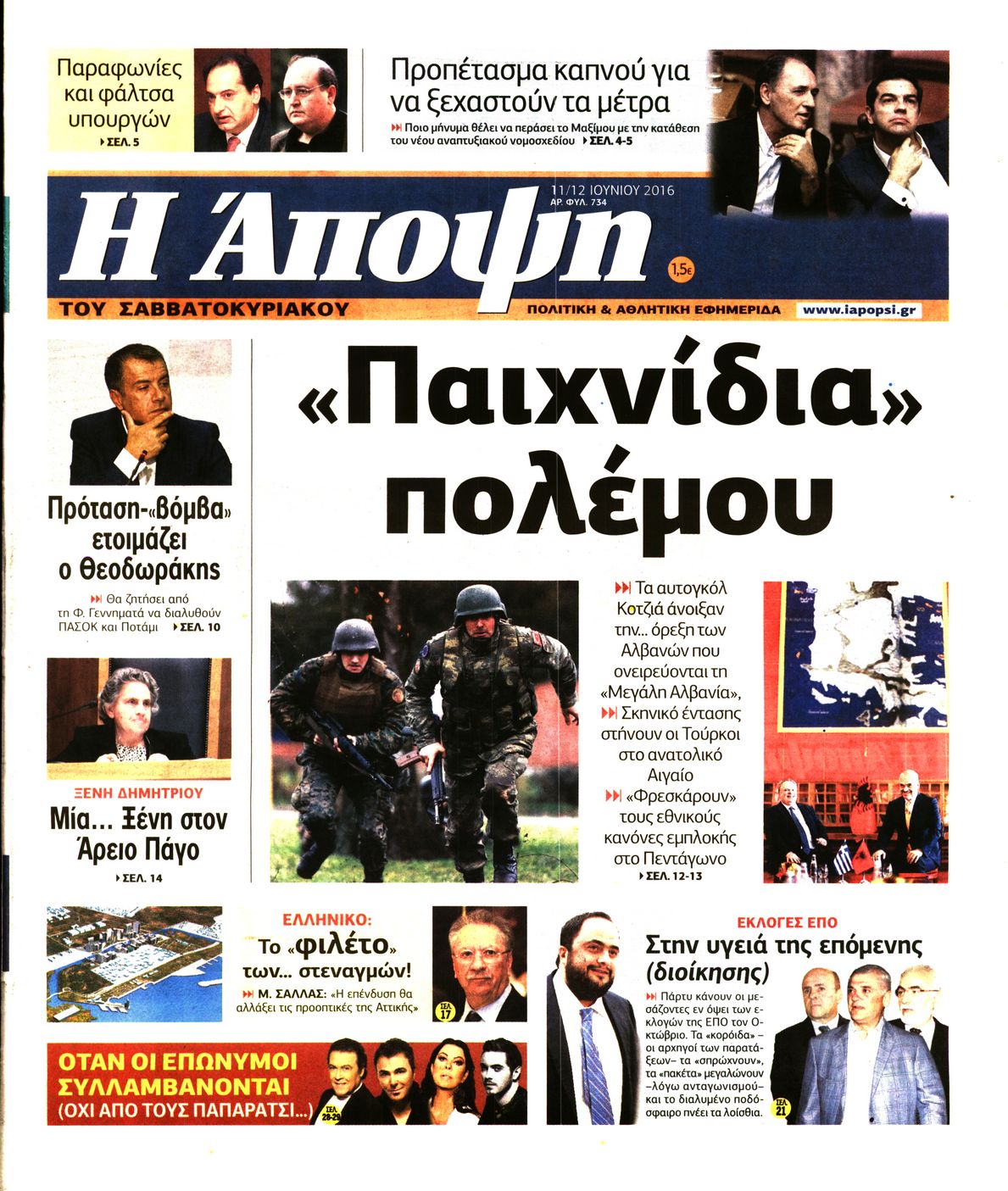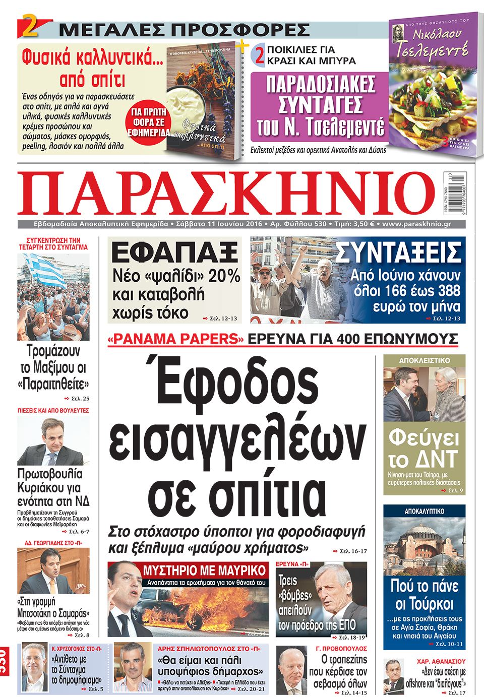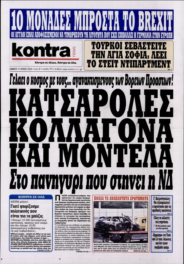 Οι πολιτικές εφημερίδες 11-6-2016 Enikos Newsroom 06:24, Σάββατο 11 Ιουνίου 2016 Media Διαβάστε τα σημερινά πρωτοσέλιδα των πολιτικών εφημερίδων: ΠΟΛΙΤΙΚΕΣ ΕΦΗΜΕΡΙΔΕΣ ΠΡΩΤΟΣΕΛΙΔΑ Μοιράσου το: σχολίασε κι εσύ (0 σχόλια) Ακολουθήστε το enikos.gr στο Google News και μάθετε πρώτοι όλες τις ειδήσεις Δείτε όλες τις τελευταίες ειδήσεις από την Ελλάδα και τον Κόσμο στο enikos.gr Ειδήσεις Ροή Ειδήσεων 3 ώρες πριν Υπόθεση Έπσταϊν: Το Υπουργείο Δικαιοσύνης δημοσιοποίησε μια σειρά από εξαιρετικά επεξεργασμένα αρχεία – «Λείπουν τα πιο σημαντικά έγγραφα», λένε οι Δημοκρατικοί 22 λεπτά πριν Γιορτές με μπλόκα για τους αγρότες: Ανοίγουν διόδια και μοιράζουν προϊόντα στους ταξιδιώτες 54 λεπτά πριν Εξαφάνιση 33χρονου γιατρού στην Κρήτη: «Άναψα τα φώτα, τρόμαξε και άρχισε να τρέχει στα χωράφια» – Η τελευταία διαδρομή και η μαρτυρία «κλειδί» 2 ώρες πριν Ο «χάρτης» με τις αυξήσεις και τις φοροελαφρύνσεις του 2026 – Ποιοι και πόσα κερδίζουν 38 λεπτά πριν Τα αρχεία του Έπσταϊν αποκαλύπτουν φωτογραφία του έκπτωτου πρίγκιπα Άντριου – Είναι ξαπλωμένος στην αγκαλιά 5 γυναικών 45 λεπτά πριν Μία νέα «χρυσή» περίοδος αρχίζει για 3 ζώδια από σήμερα – «Μία αναπάντεχη ευκαιρία οδηγεί στην επιτυχία» 5 ώρες πριν Αυγά: Πόσα μπορείτε να τρώτε την ημέρα με ασφάλεια για μέγιστη πρόσληψη πρωτεΐνης 3 ώρες πριν Αρχαιολόγοι ανακάλυψαν σε χωράφι απεικόνιση 600 ετών ενός Αγίου – Τα στοιχεία που δείχνουν ότι μαρτύρησε 2 ώρες πριν Αγχώνεται για το χριστουγεννιάτικο δώρο που πήρε στην πλούσια σύντροφό του – «Φοβάμαι πως θα το βρει φθηνιάρικο, φοράει βραχιόλια Cartier» 6 λεπτά πριν Πώς η κλιματική αλλαγή επηρεάζει εγκύους και βρέφη – Οι επιπτώσεις των υψηλών θερμοκρασιών 14 λεπτά πριν e-ΕΦΚΑ και ΔΥΠΑ: Οι πληρωμές από 22 έως 24 Δεκεμβρίου – Ποιοι θα δουν χρήματα στους λογαριασμούς τους 22 λεπτά πριν Συνελήφθη οδηγός μηχανής που έτρεχε με 161 χλμ στη Συγγρού – Τον έπιασε το ραντάρ της Τροχαίας 22 λεπτά πριν Γιορτές με μπλόκα για τους αγρότες: Ανοίγουν διόδια και μοιράζουν προϊόντα στους ταξιδιώτες 30 λεπτά πριν Τηλεθέαση (19/12): Κυριάρχησε η σειρά «Το σόι σου» – Τι νούμερα έκανε ο τελικός του GNTM ENIKOS NETWORK Είστε μόνιμα απρόσεκτοι; 3 σημάδια που δείχνουν ότι μπορεί να είναι σύμπτωμα πάθησης Πόσα κιλά παίρνουμε πραγματικά τα Χριστούγεννα, σύμφωνα με την επιστήμη – Πώς να το αποτρέψουμε; Επίδομα παιδιού: Τι αλλάζει από το 2026 – Το όφελος από τις φορολογικές ελαφρύνσεις Mega χριστουγεννιάτικη φορολοταρία: «Κλείδωσε» η ημερομηνία για την κλήρωση – Ερωτήσεις και απαντήσεις Χαρτογραφώντας το «σημείο χωρίς επιστροφή»: Για πρώτη φορά αποκαλύπτεται με λεπτομέρεια το ακανθώδες όριο της ατμόσφαιρας τ... Η Google καταργεί τη λειτουργία «dark web report» – Πώς θα μπορούν οι χρήστες να διαγράφουν τα δεδομένα τους περισσότερα 09:30 , Σάββατο 20 Δεκεμβρίου 2025 «Porto Leone: Στη γειτονιά με τα κόκκινα φανάρια» – Ο Χρόνης αποκαλύπτει στην Αλεξάνδρα το μυστικό για το παιδί της Λένας Η μεγάλη δραματική σειρά του Apha «Porto Leone: Στη γειτονιά με τα κόκκινα φανάρια» μας μεταφέ... 08:14 , Σάββατο 20 Δεκεμβρίου 2025 Τρομεροί γονείς: Η Μαρία Καβογιάννη εισβάλλει στο σπίτι της οικογένειας Στεφανίδη Όσα θα δούμε στο νέο διπλό επεισόδιο της σειράς «Τρομεροί γονείς», σήμερα Σάββατο 20 Δεκεμβρίο... 05:48 , Σάββατο 20 Δεκεμβρίου 2025 Οι οικονομικές εφημερίδες 20/12/2025 Διαβάστε τα πρωτοσέλιδα από τις οικονομικές εφημερίδες, σήμερα 20/12/2025. 05:43 , Σάββατο 20 Δεκεμβρίου 2025 Οι αθλητικές εφημερίδες 20/12/2025 Διαβάστε 