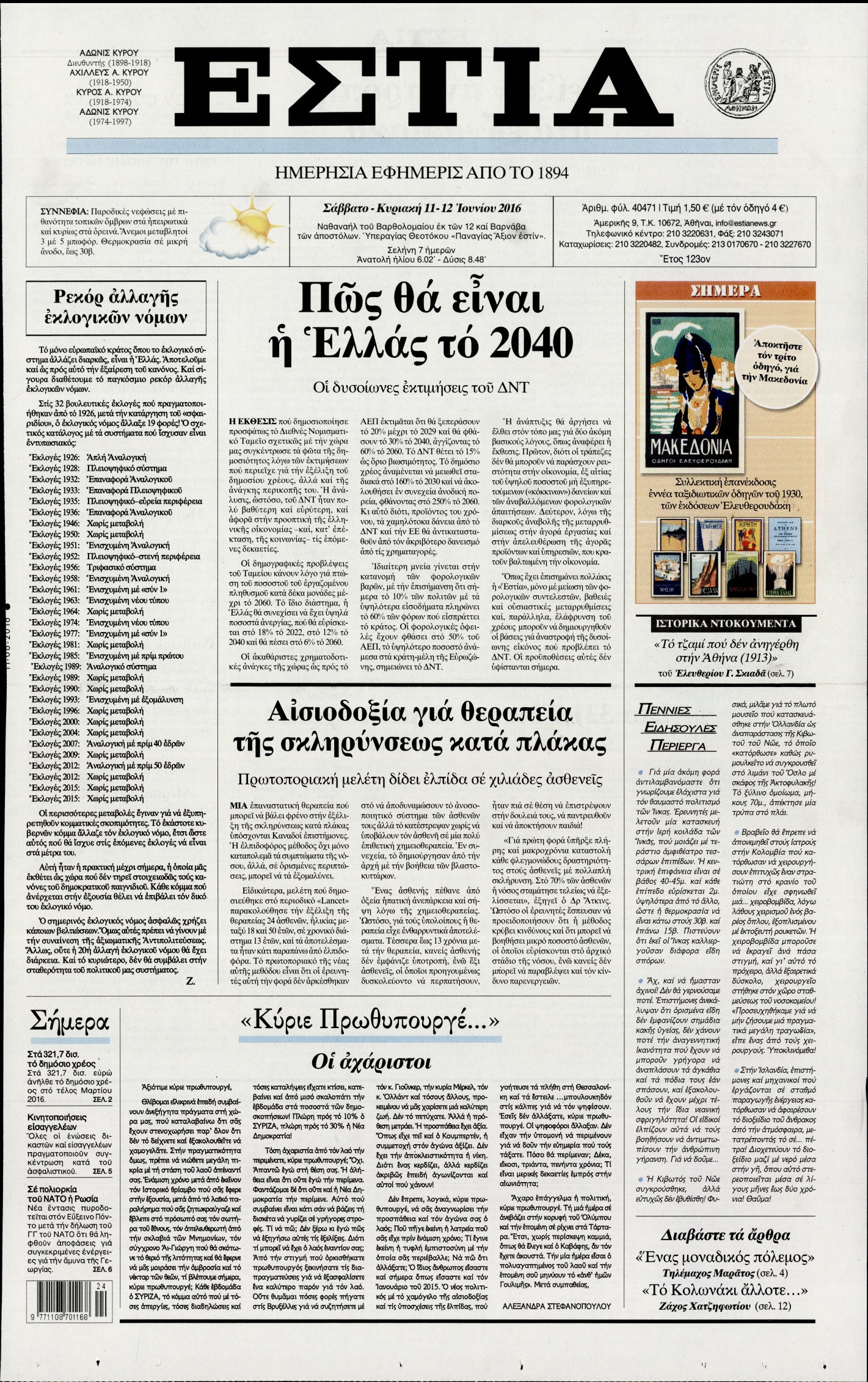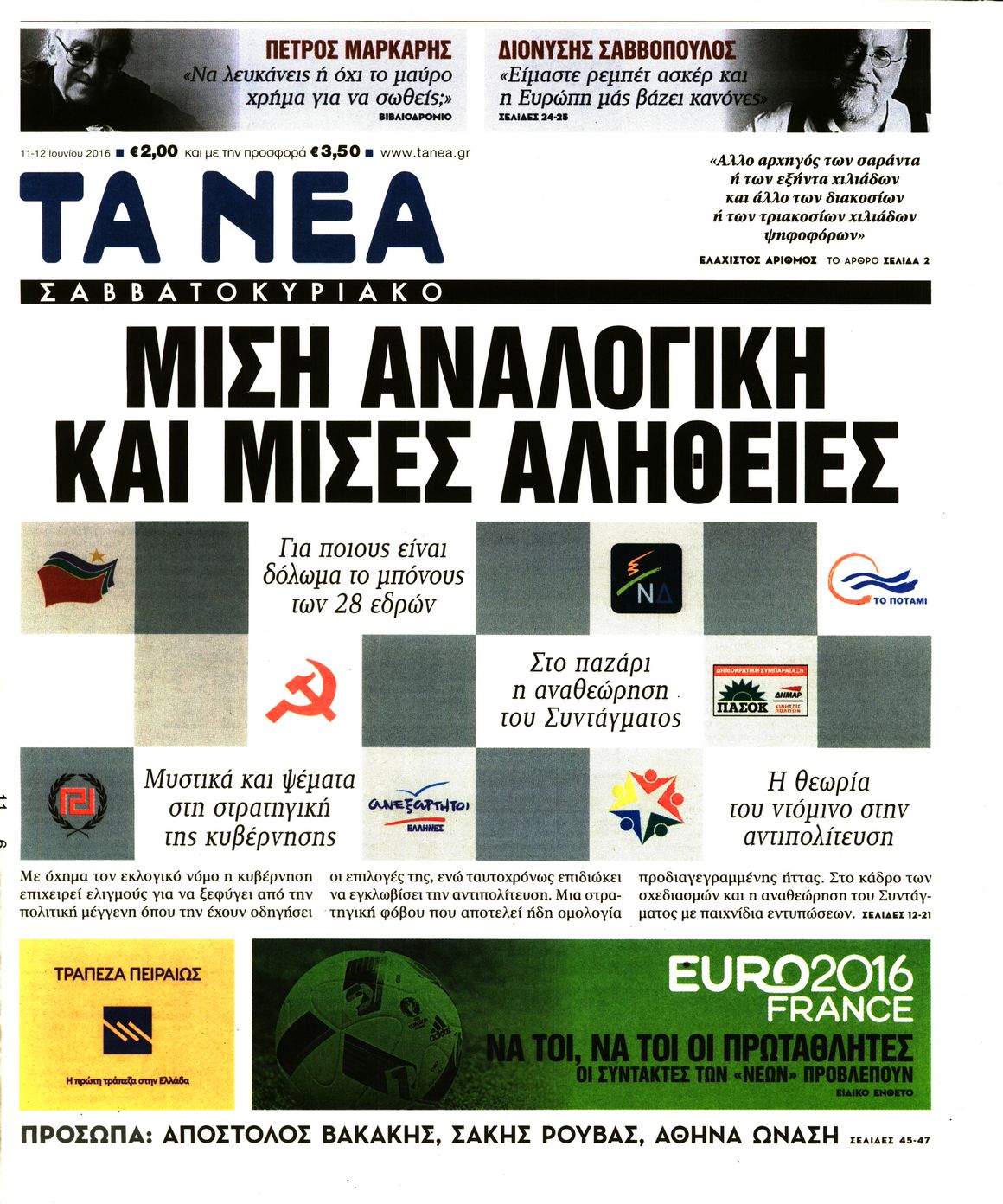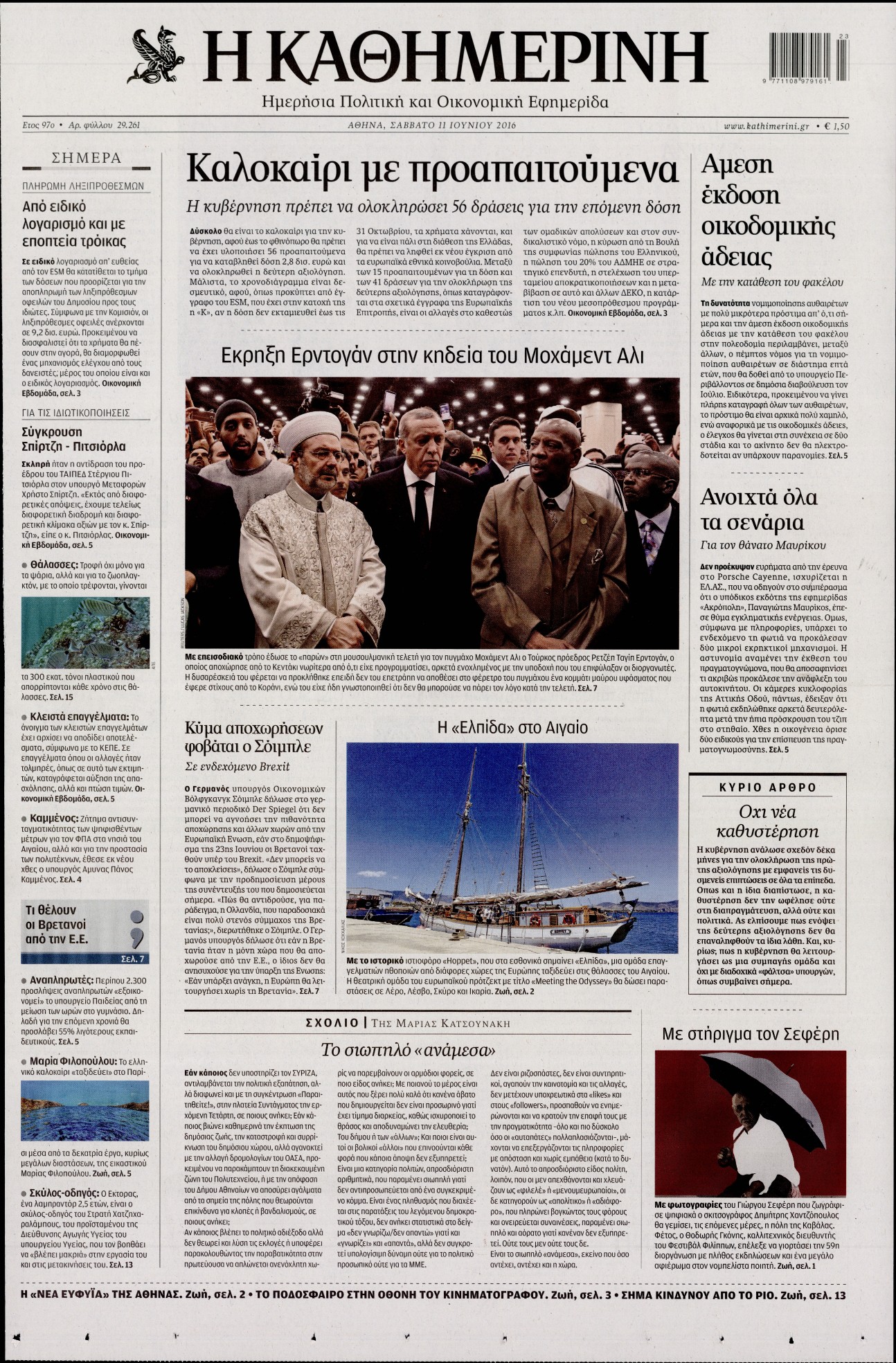 Οι πολιτικές εφημερίδες 11-6-2016 Enikos Newsroom 06:24, Σάββατο 11 Ιουνίου 2016 Media Διαβάστε τα σημερινά πρωτοσέλιδα των πολιτικών εφημερίδων: ΠΟΛΙΤΙΚΕΣ ΕΦΗΜΕΡΙΔΕΣ ΠΡΩΤΟΣΕΛΙΔΑ Μοιράσου το: σχολίασε κι εσύ (0 σχόλια) Ακολουθήστε το enikos.gr στο Google News και μάθετε πρώτοι όλες τις ειδήσεις Δείτε όλες τις τελευταίες ειδήσεις από την Ελλάδα και τον Κόσμο στο enikos.gr Ειδήσεις Ροή Ειδήσεων 3 ώρες πριν Υπόθεση Έπσταϊν: Το Υπουργείο Δικαιοσύνης δημοσιοποίησε μια σειρά από εξαιρετικά επεξεργασμένα αρχεία – «Λείπουν τα πιο σημαντικά έγγραφα», λένε οι Δημοκρατικοί 22 λεπτά πριν Γιορτές με μπλόκα για τους αγρότες: Ανοίγουν διόδια και μοιράζουν προϊόντα στους ταξιδιώτες 54 λεπτά πριν Εξαφάνιση 33χρονου γιατρού στην Κρήτη: «Άναψα τα φώτα, τρόμαξε και άρχισε να τρέχει στα χωράφια» – Η τελευταία διαδρομή και η μαρτυρία «κλειδί» 2 ώρες πριν Ο «χάρτης» με τις αυξήσεις και τις φοροελαφρύνσεις του 2026 – Ποιοι και πόσα κερδίζουν 38 λεπτά πριν Τα αρχεία του Έπσταϊν αποκαλύπτουν φωτογραφία του έκπτωτου πρίγκιπα Άντριου – Είναι ξαπλωμένος στην αγκαλιά 5 γυναικών 45 λεπτά πριν Μία νέα «χρυσή» περίοδος αρχίζει για 3 ζώδια από σήμερα – «Μία αναπάντεχη ευκαιρία οδηγεί στην επιτυχία» 5 ώρες πριν Αυγά: Πόσα μπορείτε να τρώτε την ημέρα με ασφάλεια για μέγιστη πρόσληψη πρωτεΐνης 3 ώρες πριν Αρχαιολόγοι ανακάλυψαν σε χωράφι απεικόνιση 600 ετών ενός Αγίου – Τα στοιχεία που δείχνουν ότι μαρτύρησε 2 ώρες πριν Αγχώνεται για το χριστουγεννιάτικο δώρο που πήρε στην πλούσια σύντροφό του – «Φοβάμαι πως θα το βρει φθηνιάρικο, φοράει βραχιόλια Cartier» 6 λεπτά πριν Πώς η κλιματική αλλαγή επηρεάζει εγκύους και βρέφη – Οι επιπτώσεις των υψηλών θερμοκρασιών 14 λεπτά πριν e-ΕΦΚΑ και ΔΥΠΑ: Οι πληρωμές από 22 έως 24 Δεκεμβρίου – Ποιοι θα δουν χρήματα στους λογαριασμούς τους 22 λεπτά πριν Συνελήφθη οδηγός μηχανής που έτρεχε με 161 χλμ στη Συγγρού – Τον έπιασε το ραντάρ της Τροχαίας 22 λεπτά πριν Γιορτές με μπλόκα για τους αγρότες: Ανοίγουν διόδια και μοιράζουν προϊόντα στους ταξιδιώτες 30 λεπτά πριν Τηλεθέαση (19/12): Κυριάρχησε η σειρά «Το σόι σου» – Τι νούμερα έκανε ο τελικός του GNTM ENIKOS NETWORK Είστε μόνιμα απρόσεκτοι; 3 σημάδια που δείχνουν ότι μπορεί να είναι σύμπτωμα πάθησης Πόσα κιλά παίρνουμε πραγματικά τα Χριστούγεννα, σύμφωνα με την επιστήμη – Πώς να το αποτρέψουμε; Επίδομα παιδιού: Τι αλλάζει από το 2026 – Το όφελος από τις φορολογικές ελαφρύνσεις Mega χριστουγεννιάτικη φορολοταρία: «Κλείδωσε» η ημερομηνία για την κλήρωση – Ερωτήσεις και απαντήσεις Χαρτογραφώντας το «σημείο χωρίς επιστροφή»: Για πρώτη φορά αποκαλύπτεται με λεπτομέρεια το ακανθώδες όριο της ατμόσφαιρας τ... Η Google καταργεί τη λειτουργία «dark web report» – Πώς θα μπορούν οι χρήστες να διαγράφουν τα δεδομένα τους περισσότερα 09:30 , Σάββατο 20 Δεκεμβρίου 2025 «Porto Leone: Στη γειτονιά με τα κόκκινα φανάρια» – Ο Χρόνης αποκαλύπτει στην Αλεξάνδρα το μυστικό για το παιδί της Λένας Η μεγάλη δραματική σειρά του Apha «Porto Leone: Στη γειτονιά με τα κόκκινα φανάρια» μας μεταφέ... 08:14 , Σάββατο 20 Δεκεμβρίου 2025 Τρομεροί γονείς: Η Μαρία Καβογιάννη εισβάλλει στο σπίτι της οικογένειας Στεφανίδη Όσα θα δούμε στο νέο διπλό επεισόδιο της σειράς «Τρομεροί γονείς», σήμερα Σάββατο 20 Δεκεμβρίο... 05:48 , Σάββατο 20 Δεκεμβρίου 2025 Οι οικονομικές εφημερίδες 20/12/2025 Διαβάστε τα πρωτοσέλιδα από τις οικονομικές εφημερίδες, σήμερα 20/12/2025. 05:43 , Σάββατο 20 Δεκεμβρίου 2025 Οι αθλητικές εφημερίδες 20/12/2025 Διαβάστε 
