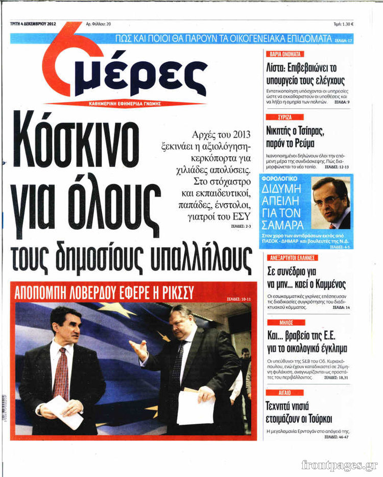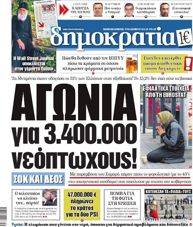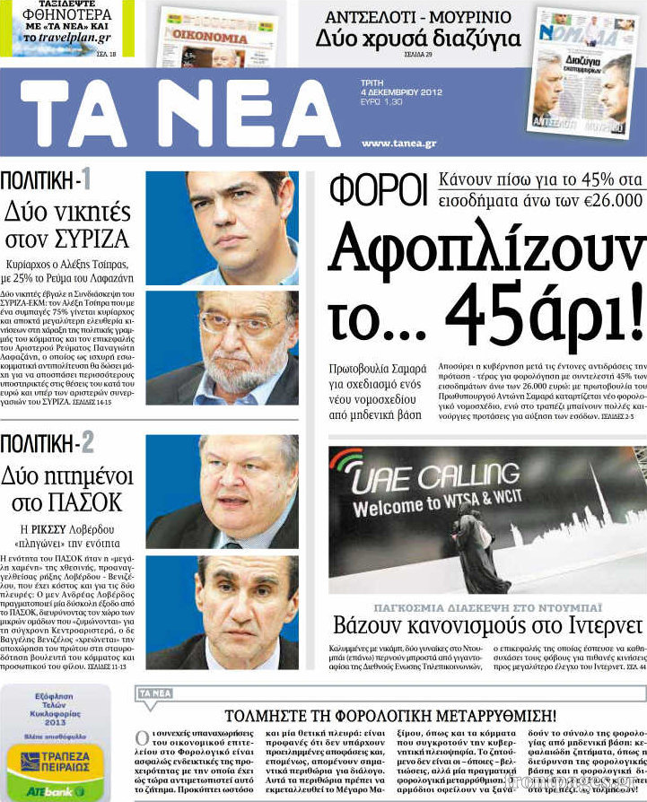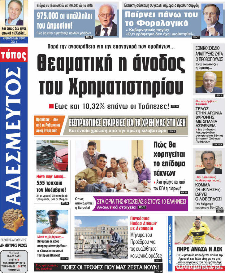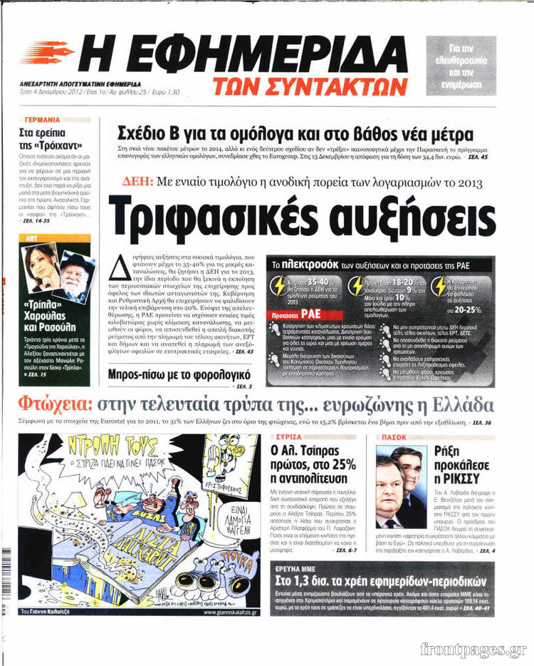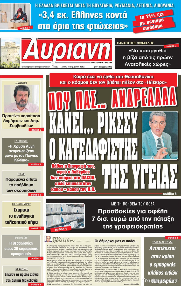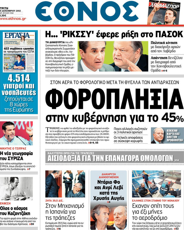 Οι πολιτικές εφημερίδες Enikos Newsroom 08:24, Τρίτη 04 Δεκεμβρίου 2012 Media Οι πολιτικές εφημερίδες Τα σημερινά πρωτοσέλιδα των πολιτικών εφημερίδων. ΕΦΗΜΕΡΙΔΕΣ ΠΟΛΙΤΙΚΕΣ ΕΦΗΜΕΡΙΔΕΣ ΠΡΩΤΟΣΕΛΙΔΑ Μοιράσου το: σχολίασε κι εσύ (0 σχόλια) Ακολουθήστε το enikos.gr στο Google News και μάθετε πρώτοι όλες τις ειδήσεις Δείτε όλες τις τελευταίες ειδήσεις από την Ελλάδα και τον Κόσμο στο enikos.gr Ειδήσεις Ροή Ειδήσεων 2 ώρες πριν Υπόθεση Έπσταϊν: Το Υπουργείο Δικαιοσύνης δημοσιοποίησε μια σειρά από εξαιρετικά επεξεργασμένα αρχεία – «Λείπουν τα πιο σημαντικά έγγραφα», λένε οι Δημοκρατικοί 1 ώρα πριν Ο «χάρτης» με τις αυξήσεις και τις φοροελαφρύνσεις του 2026 – Ποιοι και πόσα κερδίζουν 11 ώρες πριν Χριστούγεννα στα μπλόκα: Επιμένουν στις κινητοποιήσεις τους οι αγρότες – Ανοίγουν τα διόδια το Σαββατοκύριακο 2 ώρες πριν ΟΝΕΧ – MEGATUGS: Ξεκίνησε η ναυπήγηση ρυμουλκών στην Ελλάδα – Προθάλαμος πολεμικών πλοίων – Δείτε φωτογραφίες και βίντεο 2 ώρες πριν Καιρός: Αλλαγή σκηνικού σήμερα με βροχές και πτώση της θερμοκρασίας – Οι προβλέψεις των μετεωρολόγων για τα Χριστούγεννα 4 ώρες πριν Αυγά: Πόσα μπορείτε να τρώτε την ημέρα με ασφάλεια για μέγιστη πρόσληψη πρωτεΐνης 4 ώρες πριν Οπτική ψευδαίσθηση: Μόνο αν είσαι ο Σέρλοκ Χολμς θα βρεις τον αριθμό «87» σε 7 δευτερόλεπτα 2 ώρες πριν Αρχαιολόγοι ανακάλυψαν σε χωράφι απεικόνιση 600 ετών ενός Αγίου – Τα στοιχεία που δείχνουν ότι μαρτύρησε 57 λεπτά πριν Αγχώνεται για το χριστουγεννιάτικο δώρο που πήρε στην πλούσια σύντροφό του – «Φοβάμαι πως θα το βρει φθηνιάρικο, φοράει βραχιόλια Cartier» 8 λεπτά πριν Κρήτη: «Πίεση διαρκείας» με νέες αφίξεις μεταναστών – Τρεις επιχειρήσεις διάσωσης νότια του νησιού 16 λεπτά πριν Η χήνα… που πέρασαν για κλέφτη: Έσπασε την πόρτα προκαλώντας πανικό 23 λεπτά πριν Θεσσαλονίκη: 24ωρη λειτουργία σήμερα σε μετρό και 6 λεωφορειακές γραμμές 31 λεπτά πριν «Porto Leone: Στη γειτονιά με τα κόκκινα φανάρια» – Ο Χρόνης αποκαλύπτει στην Αλεξάνδρα το μυστικό για το παιδί της Λένας 39 λεπτά πριν Νέες αιτήσεις για ίδρυση μη κρατικών πανεπιστημίων στο πρώτο δίμηνο του 2026 – Τι είπε η Ζαχαράκη ENIKOS NETWORK Είστε μόνιμα απρόσεκτοι; 3 σημάδια που δείχνουν ότι μπορεί να είναι σύμπτωμα πάθησης Πόσα κιλά παίρνουμε πραγματικά τα Χριστούγεννα, σύμφωνα με την επιστήμη – Πώς να το αποτρέψουμε; Mega χριστουγεννιάτικη φορολοταρία: «Κλείδωσε» η ημερομηνία για την κλήρωση – Ερωτήσεις και απαντήσεις Αναστολή μέτρων αναγκαστικής εκτέλεσης για κτηνοτρόφους που πλήττονται από την ευλογιά των αιγοπροβάτων Χαρτογραφώντας το «σημείο χωρίς επιστροφή»: Για πρώτη φορά αποκαλύπτεται με λεπτομέρεια το ακανθώδες όριο της ατμόσφαιρας τ... Η Google καταργεί τη λειτουργία «dark web report» – Πώς θα μπορούν οι χρήστες να διαγράφουν τα δεδομένα τους περισσότερα 09:30 , Σάββατο 20 Δεκεμβρίου 2025 «Porto Leone: Στη γειτονιά με τα κόκκινα φανάρια» – Ο Χρόνης αποκαλύπτει στην Αλεξάνδρα το μυστικό για το παιδί της Λένας Η μεγάλη δραματική σειρά του Apha «Porto Leone: Στη γειτονιά με τα κόκκινα φανάρια» μας μεταφέ... 08:14 , Σάββατο 20 Δεκεμβρίου 2025 Τρομεροί γονείς: Η Μαρία Καβογιάννη εισβάλλει στο σπίτι της οικογένειας Στεφανίδη Όσα θα δούμε στο νέο διπλό επεισόδιο της σειράς «Τρομεροί γονείς», σήμερα Σάββατο 20 Δεκεμβρίο... 05:48 , Σάββατο 20 Δεκεμβρίου 2025 Οι οικονομικές εφημερίδες 20/12/2025 Διαβάστε τα πρωτοσέλιδα από τις οικονομικές εφημερίδες, σήμερα 20/12/2025. 05:43 , Σάββατο 20 Δεκεμβρίου 2025 Οι αθλητικές εφημερίδες