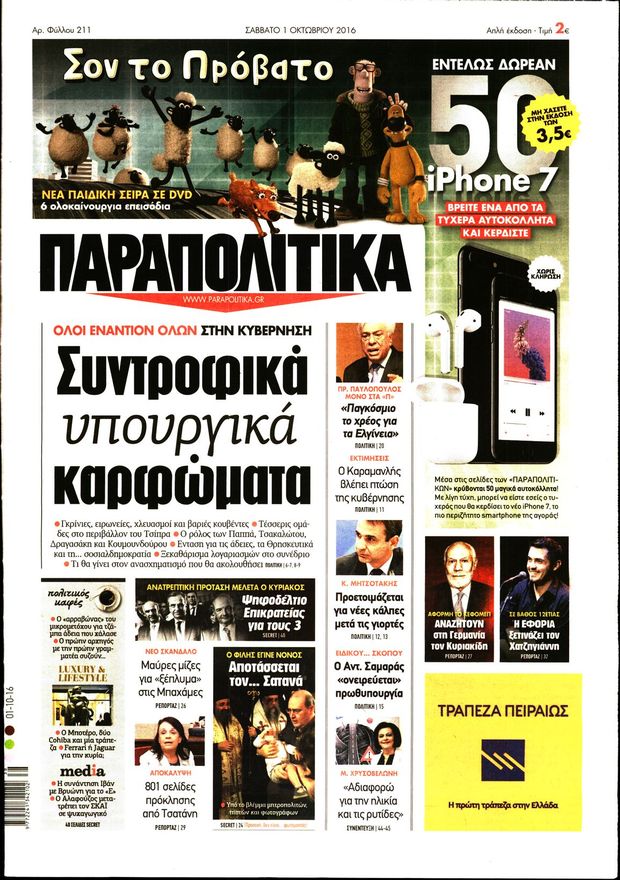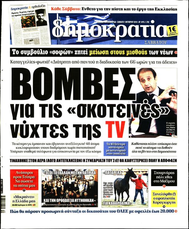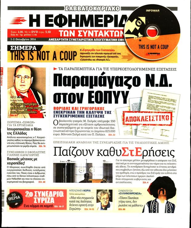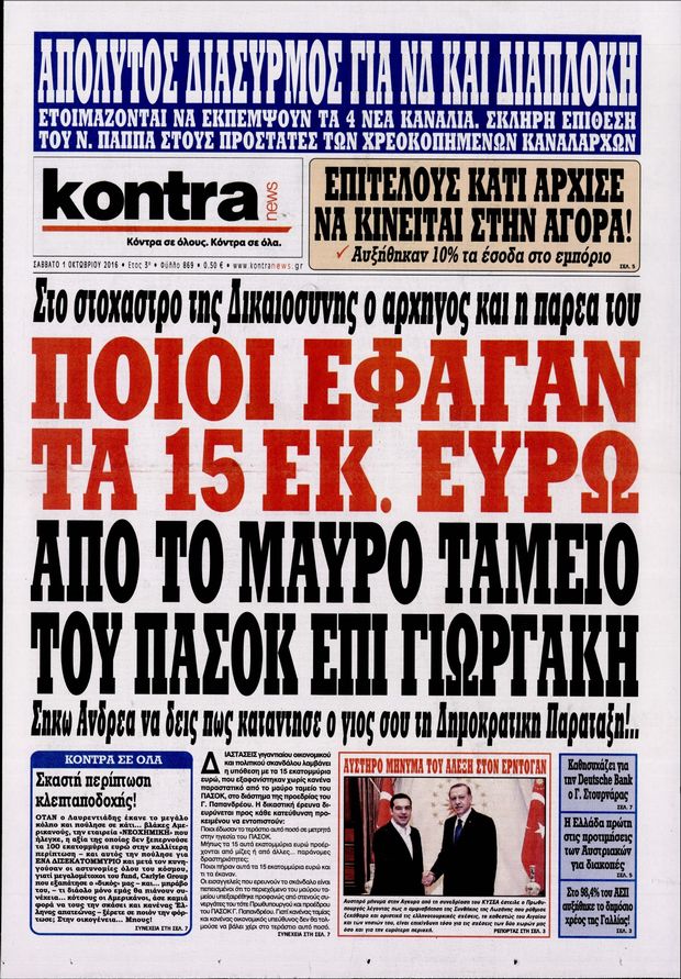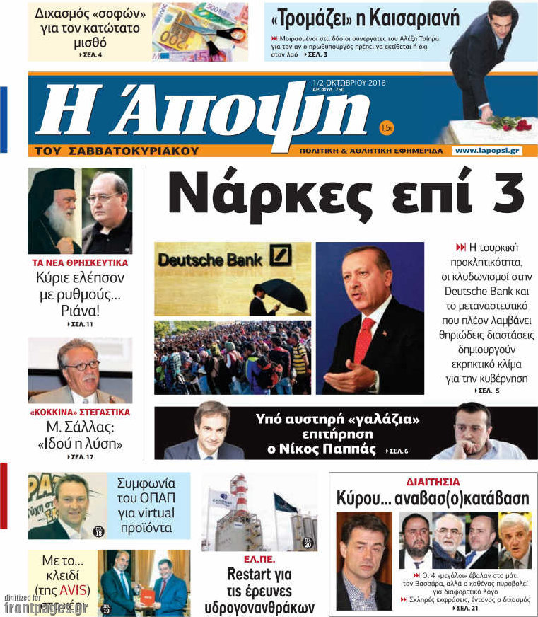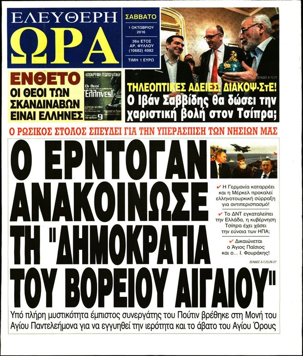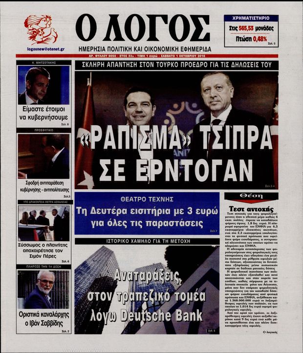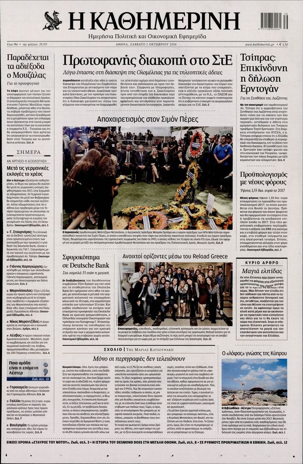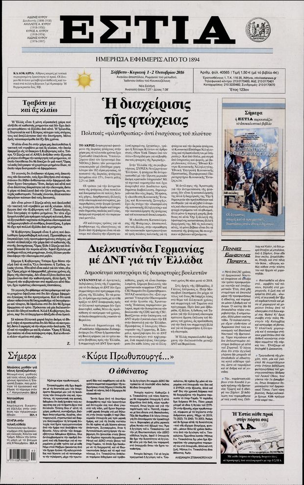 Oι πολιτικές εφημερίδες 1/10/2016 Enikos Newsroom 05:27, Σάββατο 01 Οκτωβρίου 2016 Media Διαβάστε τα σημερινά πρωτοσέλιδα των πολιτικών εφημερίδων: ΠΟΛΙΤΙΚΕΣ ΕΦΗΜΕΡΙΔΕΣ ΠΡΩΤΟΣΕΛΙΔΑ Μοιράσου το: σχολίασε κι εσύ (0 σχόλια) Ακολουθήστε το enikos.gr στο Google News και μάθετε πρώτοι όλες τις ειδήσεις Δείτε όλες τις τελευταίες ειδήσεις από την Ελλάδα και τον Κόσμο στο enikos.gr Ειδήσεις Ροή Ειδήσεων 4 ώρες πριν Αυξάνουν την πίεση προς την κυβέρνηση οι αγρότες: Κλείνουν παρακαμπτήριους και ανοίγουν διόδια – Τι θα γίνει τις γιορτές 3 ώρες πριν ΟΠΕΚΕΠΕ: Προφυλακιστέος ο φερόμενος αρχηγός και ο λογιστής της εγκληματικής οργάνωσης 4 ώρες πριν Φοινικούντα: Το Σάββατο απολογείται ο 30χρονος γιος γνωστού επιχειρηματία της Πλάκας που παραδόθηκε – Όσα είπε στους αστυνομικούς και ο ρόλος του στο έγκλημα 3 ώρες πριν Μπορεί ο Μαδούρο να αντέξει τον αποκλεισμό του Τραμπ; Τι θα χρειαστεί η Ουάσινγκτον για να τον ανατρέψει 2 ώρες πριν ΑΕΚ – Κραϊόβα 3-2: Επική ανατροπή και πρόκριση στους «16» του Conference League η Ένωση 4 ώρες πριν Αρχαιολόγοι ανακάλυψαν ρωμαϊκά τεχνουργήματα από μια πόλη που δεν υπήρξε ποτέ – Τα τρία εντυπωσιακά κτίρια και ο αμφορέας με τις… σαρδέλες 5 ώρες πριν Ύπνος: Η απλή βραδινή ρουτίνα για να προστατεύσετε τα μαλλιά σας από το κρύο κατά τη διάρκεια του χειμώνα 6 ώρες πριν Manifesting: Πώς να συναντήσετε τον σύντροφο της ζωής σας, ανάλογα με τον μήνα γέννησής σας 2 ημέρες πριν 20 χρόνια τα Χριστούγεννα ξεκινούν στα Public με μεγάλη ποικιλία σε δώρα! 12 λεπτά πριν Πόλεμος στην Ουκρανία: Ρωσικά drones έπληξαν την Οδησσό – Μία νεκρή και ζημιές σε ενεργειακές υποδομές 20 λεπτά πριν ΑΕΚ-Κραϊόβα: Τα highlights της μυθικής ανατροπής της «Ένωσης» 35 λεπτά πριν Μιχάλης Χρυσοχοΐδης από την Κωνσταντινούπολη: Κοινές επιχειρήσεις Ελλάδας – Τουρκίας ενάντια στο οργανωμένο έγκλημα 57 λεπτά πριν Μάρκο Νίκολιτς: «Είμαι περήφανος για τους παίκτες μου, όποιος αντίπαλος και να έρθει θα προετοιμαστούμε» 1 ώρα πριν ΟΗΕ: Την εκλογή του νέου ύπατου αρμοστή για τους Πρόσφυγες Μπαρχάμ Άχμεντ Σαλίχ χαιρέτησε ο Αντόνιο Γκουτέρες ENIKOS NETWORK Σε περίοδο αυξημένης δραστηριότητας η γρίπη στην Ελλάδα-Μέτρα προστασίας από τον ΕΟΔΥ Σκέφτεστε συνέχεια συζητήσεις που έχετε κάνει; Τι σημαίνει αυτό, σύμφωνα με ειδικό Στεγαστικό: Τι λέει η ΠΟΜΙΔΑ για τα νέα μέτρα που ανακοίνωσε ο Κυριάκος Μητσοτάκης Λαγκάρντ: Αισιόδοξη για την ανάπτυξη της Ευρωζώνης, αβέβαιη για τον πληθωρισμό Χαρτογραφώντας το «σημείο χωρίς επιστροφή»: Για πρώτη φορά αποκαλύπτεται με λεπτομέρεια το ακανθώδες όριο της ατμόσφαιρας τ... Η Google καταργεί τη λειτουργία «dark web report» – Πώς θα μπορούν οι χρήστες να διαγράφουν τα δεδομένα τους περισσότερα 17:45 , Πέμπτη 18 Δεκεμβρίου 2025 ROUK ZOUK: Εορταστικό επεισόδιο με καλεσμένους τους πρωταγωνιστές του «Γιατί ρε πατέρα» Το Σάββατο 20 Δεκεμβρίου στις 21:00, η Ζέτα Μακρυπούλια υποδέχεται εκλεκτούς ηθοποιούς που όλο... 17:20 , Πέμπτη 18 Δεκεμβρίου 2025 Άγιος έρωτας: Η Χριστίνα εξομολογείται στον πατέρα Νικόλαο, απόψε στις 21:00 στον Alpha Η Νότα αποφασίζει να εκδικηθεί τον Πέτρο και τον Στέφανο, για χάρη του Λούη, όμως τα πράγματα ... 16:50 , Πέμπτη 18 Δεκεμβρίου 2025 Να μ’ αγαπάς: Ζωή και Φωτεινή συμφιλιώνονται ως μάνα με κόρη, απόψε στις 20:00 Η ταυτότητα του Άγγελου αποκαλύπτεται στο νέο επεισόδιο της σειράς “Να μ’ αγαπάς... 15:52 , Πέμπτη 18 Δεκεμβρίου 2025 Το Σπίτι Δίπλα Στο Ποτάμι: Το καθηλωτικό τελευταίο επεισόδιο για το 2025 απόψε στις 22:30 Καθηλώνει το σημερινό επε