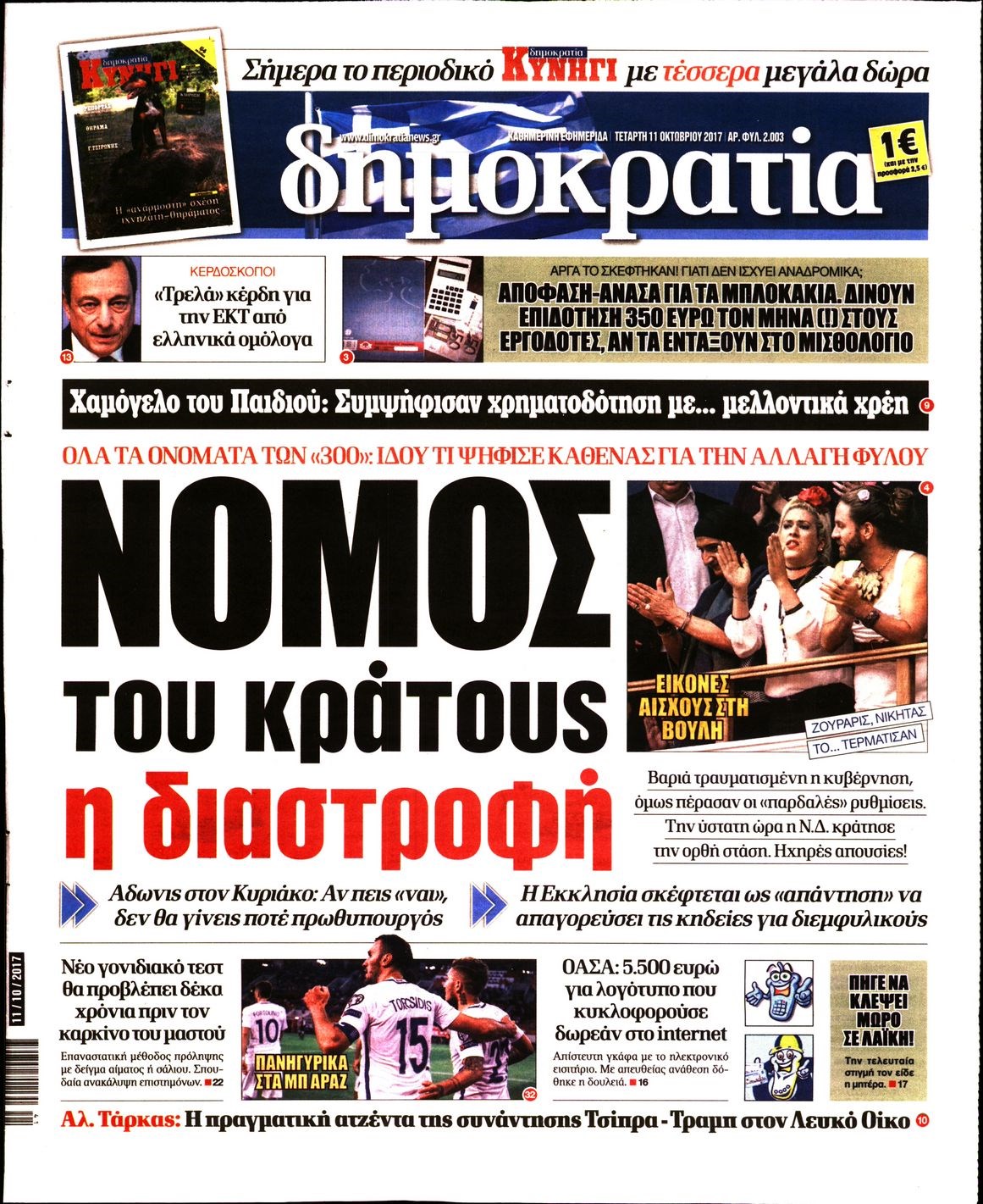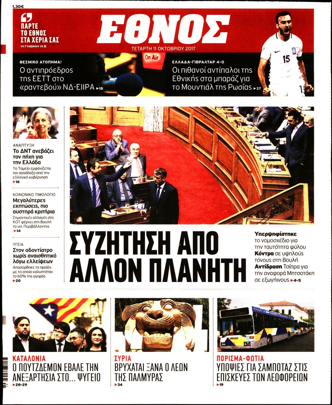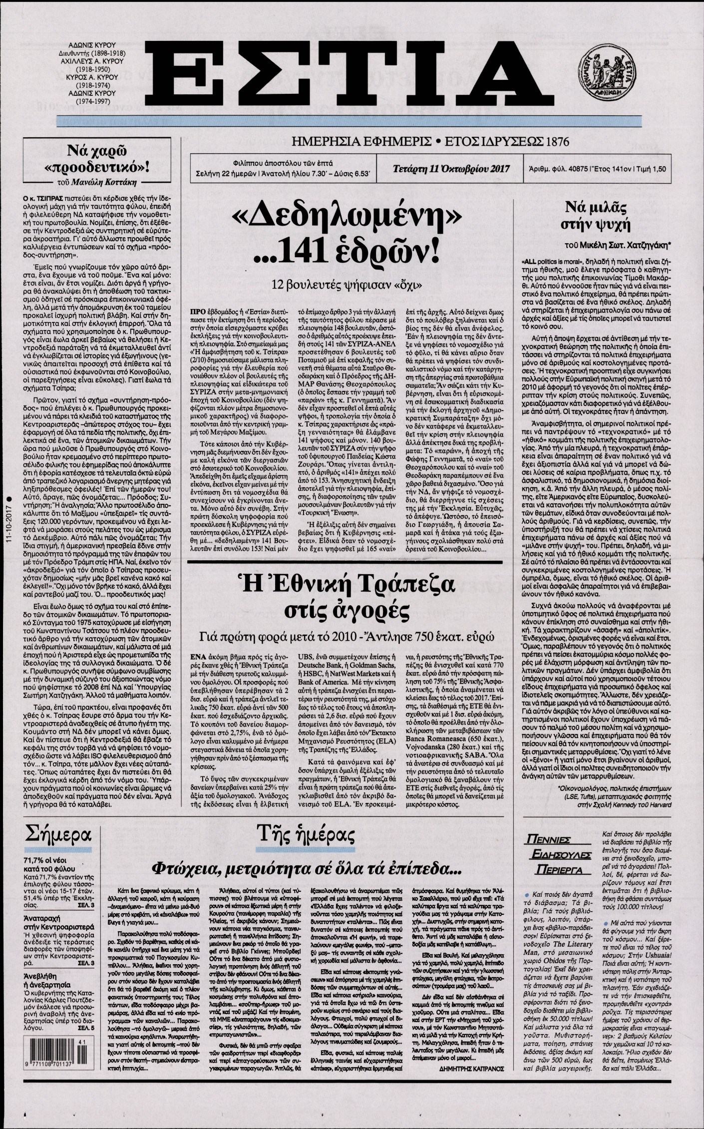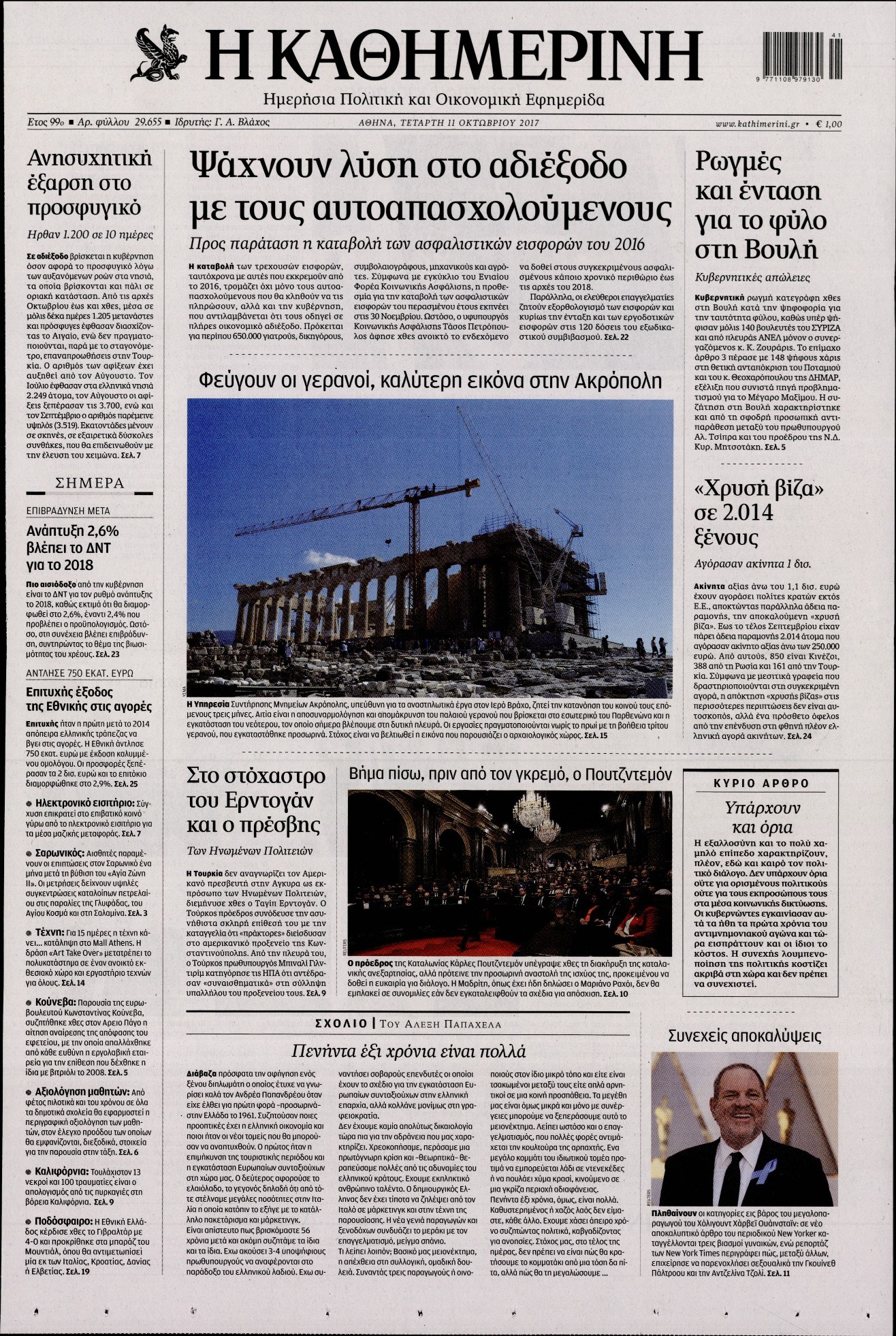 Οι πολιτικές εφημερίδες 11/10/2017 Enikos Newsroom 08:04, Τετάρτη 11 Οκτωβρίου 2017 Media Διαβάστε τα σημερινά πρωτοσέλιδα των πολιτικών εφημερίδων: ΠΟΛΙΤΙΚΕΣ ΕΦΗΜΕΡΙΔΕΣ ΠΡΩΤΟΣΕΛΙΔΑ Μοιράσου το: σχολίασε κι εσύ (0 σχόλια) Ακολουθήστε το enikos.gr στο Google News και μάθετε πρώτοι όλες τις ειδήσεις Δείτε όλες τις τελευταίες ειδήσεις από την Ελλάδα και τον Κόσμο στο enikos.gr Ειδήσεις Ροή Ειδήσεων 1 ώρα πριν Χριστούγεννα στα μπλόκα: Επιμένουν στις κινητοποιήσεις τους οι αγρότες – Ανοίγουν τα διόδια το Σαββατοκύριακο 2 ώρες πριν Ουκρανία: Η άνευ προηγουμένου επίθεση σε ρωσικό τάνκερ στη Μεσόγειο και το μήνυμα προς στον Πούτιν – Το «μακρύ χέρι» του Κιέβου 1 ώρα πριν Πούτιν: Τα μηνύματα σε Ευρώπη και ΝΑΤΟ από το μαραθώνιο «σόου» του – Η απαίτηση για «σεβασμό» και η ειρήνη «με τους όρους» της Μόσχας 2 ώρες πριν Τραμπ: Δεν αποκλείει την πιθανότητα ενός πολέμου στη Βενεζουέλα – «Ο Μαδούρο ξέρει καλύτερα από τον καθένα τι ακριβώς θέλω» 3 ώρες πριν Συνεχίζει να προκαλεί ο Μίτσκοσκι: «Για μένα το όνομα Μακεδονία είναι ιερό» 1 ώρα πριν Ανακαλύφθηκαν αρχαία χρυσά νομίσματα 2.200 ετών που απεικονίζουν τον θεό Απόλλωνα – Η άγνωστη σύνδεση με τον Φίλιππο Β΄ της Μακεδονίας 2 ώρες πριν Ύπνος: Μια κρυφή κατάσταση του εγκεφάλου πριν από τον ύπνο μπορεί να είναι το “κλειδί” για υψηλή ευφυΐα και δημιουργικότητα 3 ώρες πριν Αριθμολογία: Οι άνθρωποι που έχουν γεννηθεί αυτές τις 4 ημερομηνίες, συχνά παρεξηγούνται – «Η καλοσύνη τους κρύβει τεράστια δύναμη» 4 ώρες πριν Ξεχάστε το καθάρισμα το Σαββατοκύριακο: Ο «κανόνας των 20 λεπτών» που θα σας λύσει τα χέρια 5 λεπτά πριν Πόλεμος στην Ουκρανία: Εφτά νεκροί από ρωσική πυραυλική επίθεση στο λιμάνι της Οδησσού 8 λεπτά πριν ΗΠΑ: Η κυβέρνηση του Ντόναλντ Τραμπ άρχισε να δημοσιοποιεί τα αρχεία Έπσταϊν 20 λεπτά πριν Σάμος: Άνοιξε το μπλόκο των αγροτών στον κόμβο Κοκκαρίου – Σε νέα συνεδρίαση θα καθορίσουν την στάση τους 28 λεπτά πριν Άνω Λιόσια: Πυροβολισμοί σε επιχείρηση με χαλιά – Εντοπίστηκαν 10 κάλυκες 35 λεπτά πριν Γάζα: Ισραηλινό πλήγμα σε σχολείο που είχαν καταφύγει εκτοπισμένοι – Τουλάχιστον έξι νεκροί ENIKOS NETWORK Το ΕΚΑΒ τιμήθηκε από την Ακαδημία Αθηνών για τα 40 χρόνια προσφοράς του Έχετε πραγματικά μεγάλη καρδιά; 10 χαρακτηριστικά όσων έχουν καλοσύνη Αναστολή μέτρων αναγκαστικής εκτέλεσης για κτηνοτρόφους που πλήττονται από την ευλογιά των αιγοπροβάτων Πλήρης επάρκεια προϊόντων στις λαϊκές της Αττικής, παρά τις αγροτικές κινητοποιήσεις – Τι απαντούν οι πωλητές Χαρτογραφώντας το «σημείο χωρίς επιστροφή»: Για πρώτη φορά αποκαλύπτεται με λεπτομέρεια το ακανθώδες όριο της ατμόσφαιρας τ... Η Google καταργεί τη λειτουργία «dark web report» – Πώς θα μπορούν οι χρήστες να διαγράφουν τα δεδομένα τους περισσότερα 22:42 , Παρασκευή 19 Δεκεμβρίου 2025 Γιώργος Γιαννόπουλος για “Το σόι σου”: “Είναι ευτυχία και ευλογία αυτή η σειρά” «Είναι ευτυχία και ευλογία η συγκυρία αυτής της σειράς», θα πει ο Γιώργος Γιαννόπουλος -ο αγαπ... 20:37 , Παρασκευή 19 Δεκεμβρίου 2025 Don’t Forget The Lyrics: Η Έλλη Κοκκίνου υποδέχεται 4 παίκτες που θα κάνουν τα πάντα για να μη χάσουν ούτε… μισή λέξη από τους στίχους Το «Don’t Forget The Lyrics» επιστρέφει απόψε, Παρασκευή 19 Δεκεμβρίου, στις 21:00 με νέο επει... 19:31 , Παρασκευή 19 Δεκεμβρίου 2025 GNTM: Απόψε ο μεγάλος τελικός για τους 4 φιναλίστ Έπειτα από μήνες γεμάτους μόδα, δημιουργία και έντονες αναμετρήσεις, το GNTM 2025 κορυφώνεται,... 18:11 , Παρασκευή 19 Δεκεμβρίου 2025 Το σόι σου: Ο Ά