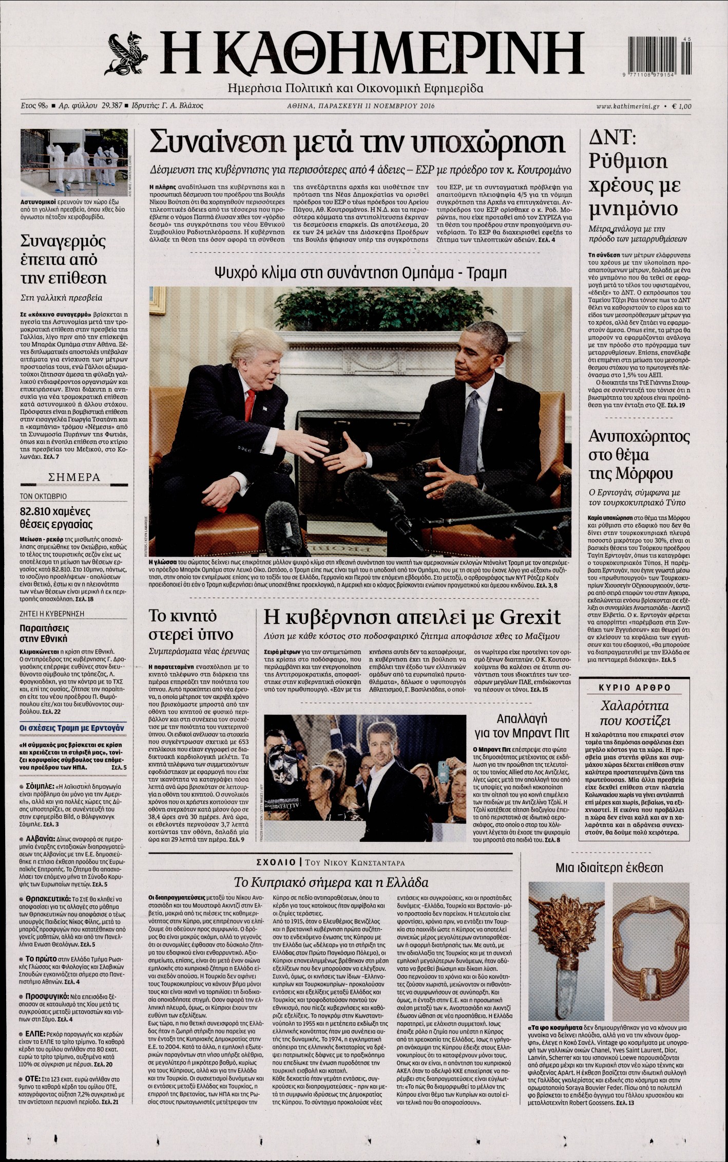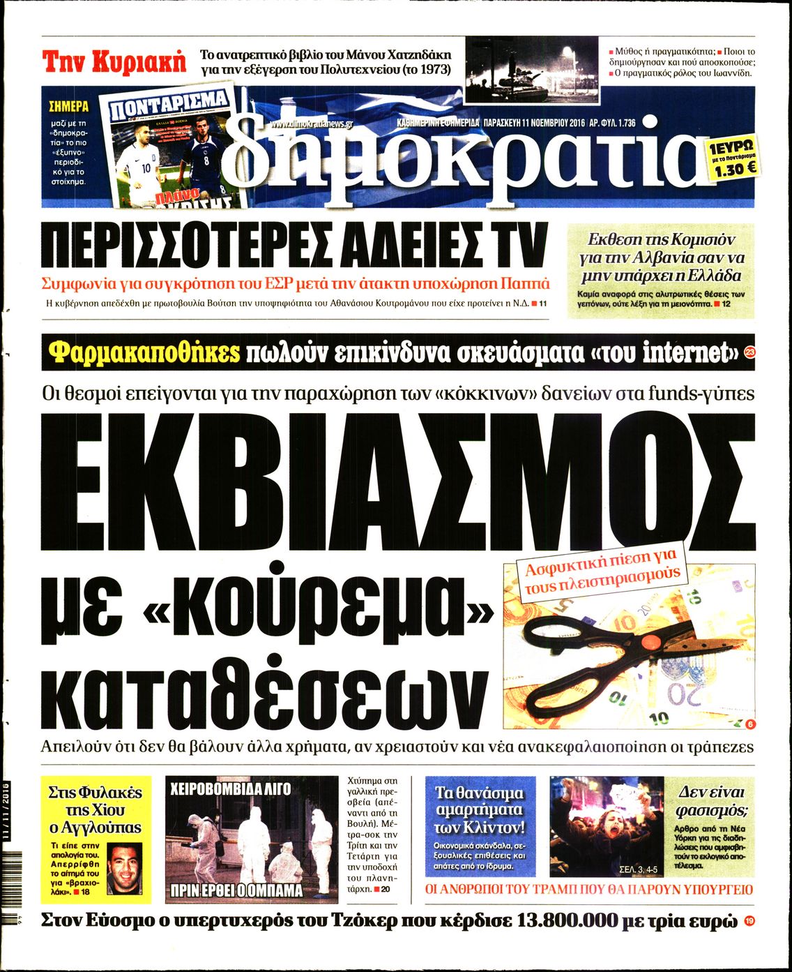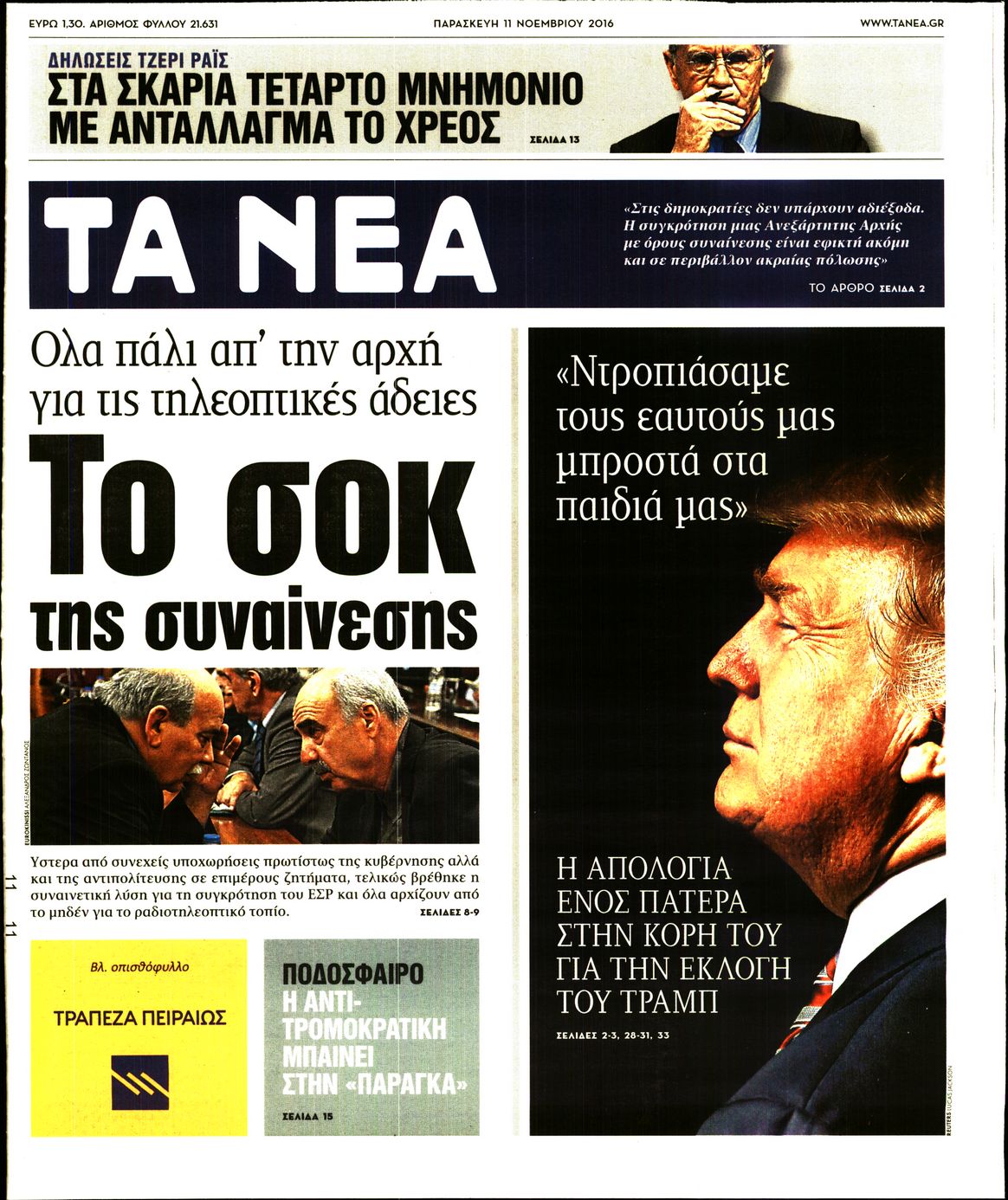 Οι πολιτικές εφημερίδες 11/11/2016 Enikos Newsroom 04:03, Παρασκευή 11 Νοεμβρίου 2016 Media Διαβάστε τα σημερινά πρωτοσέλιδα των πολιτικών εφημερίδων: ΠΟΛΙΤΙΚΕΣ ΕΦΗΜΕΡΙΔΕΣ ΠΡΩΤΟΣΕΛΙΔΑ Μοιράσου το: σχολίασε κι εσύ (0 σχόλια) Ακολουθήστε το enikos.gr στο Google News και μάθετε πρώτοι όλες τις ειδήσεις Δείτε όλες τις τελευταίες ειδήσεις από την Ελλάδα και τον Κόσμο στο enikos.gr Ειδήσεις Ροή Ειδήσεων 2 ώρες πριν Πώς δρούσε το κύκλωμα που διακινούσε ναρκωτικά σε σχολεία – Υπέβαλαν σε βασανιστήρια όσους δεν τηρούσαν τους «κανόνες πειθαρχίας» 3 ώρες πριν Αγρότες: Γιορτές στα μπλόκα με ανοιχτά διόδια – Δικογραφία στα Ιωάννινα για το σήκωμα των μπαρών 2 ώρες πριν Ζελένσκι: Οι Αμερικανοί πρότειναν συνάντηση Ουκρανίας, ΗΠΑ, Ρωσίας στο Μαϊάμι 2 ώρες πριν Αττική: Εξαρθρώθηκε εγκληματική οργάνωση που έκλεβε οχήματα, τα παραποιούσε και τα μεταπωλούσε σε πολίτες – Πώς δρούσε το κύκλωμα 1 ώρα πριν Μικαέλα Μπέντχαους: Ο πρώτος άνθρωπος σε αναπηρικό αμαξίδιο που ταξίδεψε στο διάστημα – ΒΙΝΤΕΟ 3 ώρες πριν Η τύχη χαμογελά σε 3 ζώδια έως τις 28 Δεκεμβρίου – «Προσέξτε τις επιλογές σας και η επιμονή σας θα ανταμειφθεί» 7 ώρες πριν Διαιτολόγος αποκαλύπτει 9 πρωινές συνήθειες που «λιώνουν» το κοιλιακό λίπος – «Υποστηρίζουν την υγιεινή απώλεια βάρους» 4 ώρες πριν Μία ανεκμετάλλευτη πηγή θα μπορούσε να προσφέρει ανεξάντλητη ενέργεια – Οι επιστήμονες ίσως γνωρίζουν πώς να την ξεκλειδώσουν 10 ώρες πριν Enerwave: Το νέο «ρεύμα» στη λιανική ενέργειας που αλλάζει την εμπειρία του καταναλωτή 3 λεπτά πριν Πηνελόπη Πλάκα: Η εξομολόγηση για την προσωπική της ζωή – «Γούσταρα πάρα πολύ την ελευθερία μου» 15 λεπτά πριν Λούλα: Προειδοποιεί πως μια επέμβαση των ΗΠΑ στη Βενεζουέλα θα μπορούσε να είναι καταστροφική 24 λεπτά πριν Τραμπ: Πώς περνάει τις γιορτές των Χριστουγέννων – Τα δώρα που κάνει στα εγγόνια του 36 λεπτά πριν HOTΕΛ ΕΛVIRA: Η Ελβίρα μαθαίνει πως ο Χάρι μένει κρυφά στο ξενοδοχείο του Παντελή 46 λεπτά πριν Ερντογάν: «Δεν έχουμε βλέψεις στα εδάφη κανενός, αλλά δεν θα επιτρέψουμε να παραβιαστούν τα δικαιώματά μας» ENIKOS NETWORK Οι γυναίκες αποκαλύπτουν το πιο ελκυστικό πράγμα που μπορεί να κάνει ένας άνδρας Ομορφιά και αντιγήρανση: Ειδικοί μιλούν για συσκευές περιποίησης του δέρματος Ολοκληρώθηκαν πληρωμές 22,16 εκατ. ευρώ για το μεταφορικό ισοδύναμο – Κικίλιας: Στηρίζουμε τη νησιωτικότητα Η Realnews στο www.pressreader.com Χαρτογραφώντας το «σημείο χωρίς επιστροφή»: Για πρώτη φορά αποκαλύπτεται με λεπτομέρεια το ακανθώδες όριο της ατμόσφαιρας τ... Η Google καταργεί τη λειτουργία «dark web report» – Πώς θα μπορούν οι χρήστες να διαγράφουν τα δεδομένα τους περισσότερα 18:19 , Σάββατο 20 Δεκεμβρίου 2025 HOTΕΛ ΕΛVIRA: Η Ελβίρα μαθαίνει πως ο Χάρι μένει κρυφά στο ξενοδοχείο του Παντελή Συνεχίζονται οι εκλογές για πρόεδρο, στο νέο επεισόδιο της κωμικής σειράς του MEGA, HOTΕΛ ΕΛVI... 14:04 , Σάββατο 20 Δεκεμβρίου 2025 Η Realnews αυτής της Κυριακής (21/12/2025) Με τίτλο: «Ασπίδα προστασίας για την Ελλάδα» κυκλοφορεί, αυτήν την Κυριακή, η Realnews. Σημαντ... 12:53 , Σάββατο 20 Δεκεμβρίου 2025 Να μ’ αγαπάς: Το παρελθόν έρχεται στο φως – Καταιγιστικές εξελίξεις στα τελευταία επεισόδια του 2025 Ο Άγγελος αποκαλύπτεται, η Φωτεινή ανησυχεί για τον Λευτέρη και η Ζωή έρχεται αντιμέτωπη με το... 11:41 , Σάββατο 20 Δεκεμβρίου 2025 «Η αγάπη δεν χάνεται ποτέ»: Η μικρού μήκους ταινία κινουμένων σχεδίων που θέτει ερωτήματα για τη ζωή και τον θάνατο Ο θάνατος είναι ένα από τα πιο σκληρά θέματα που καλείται