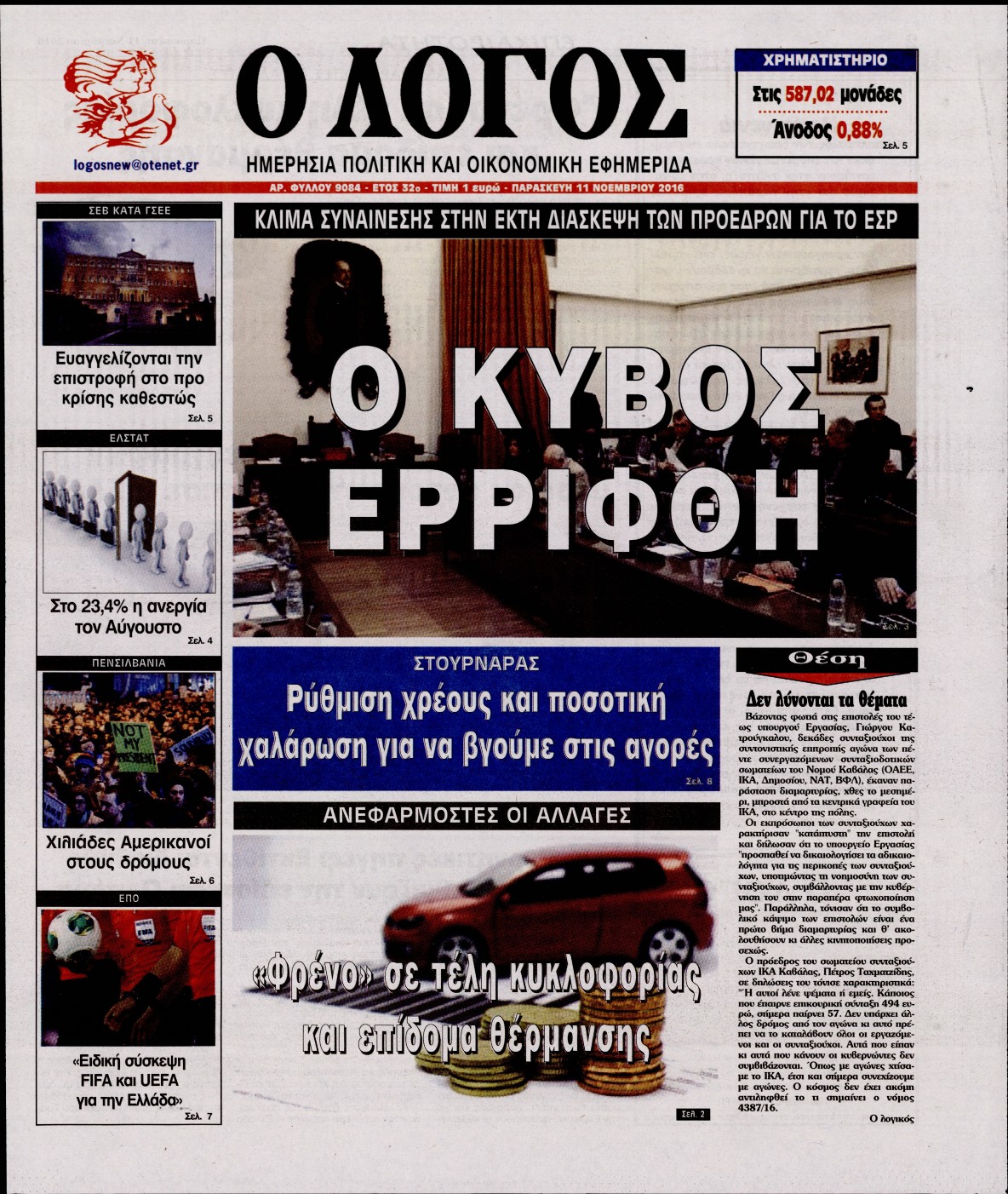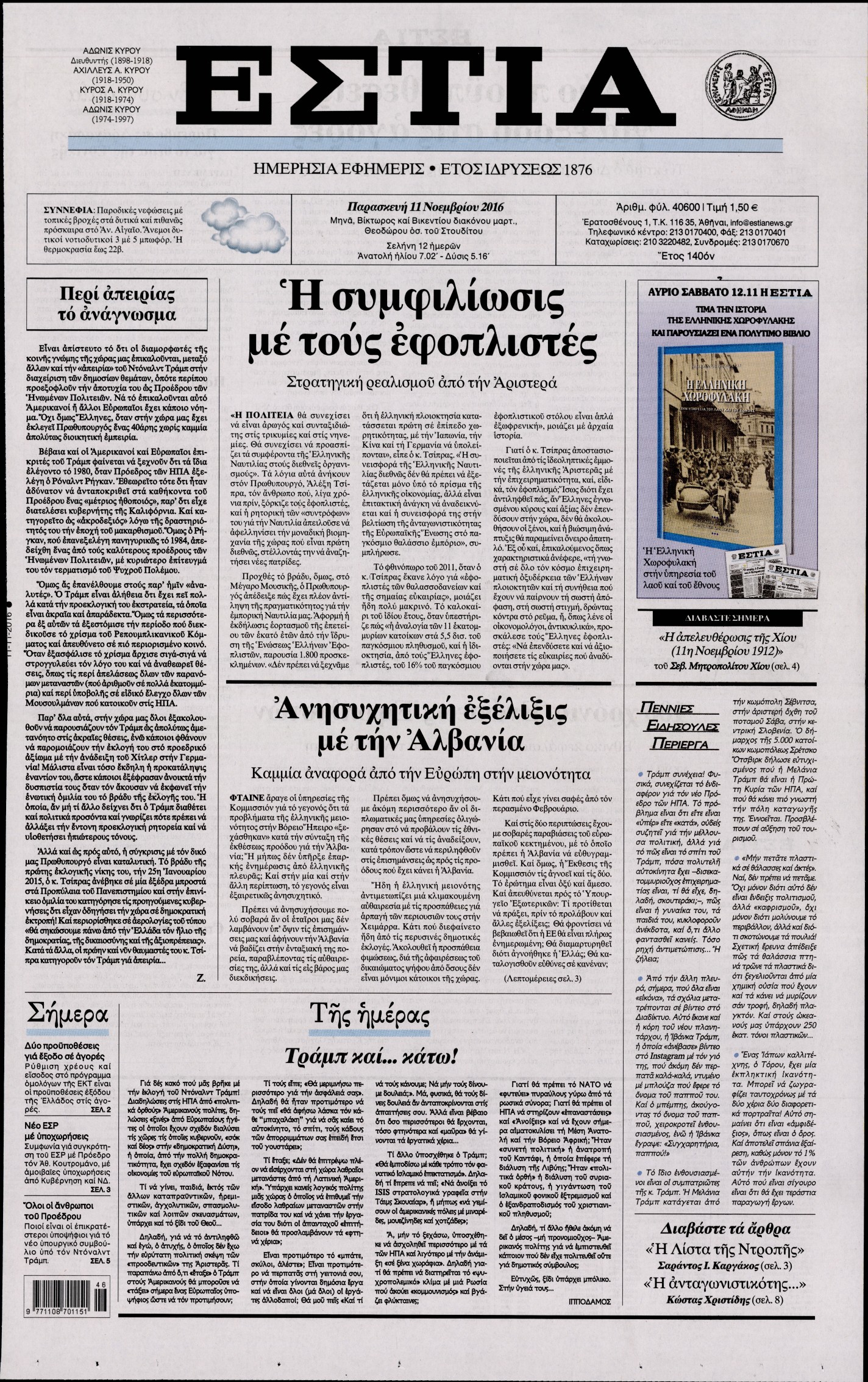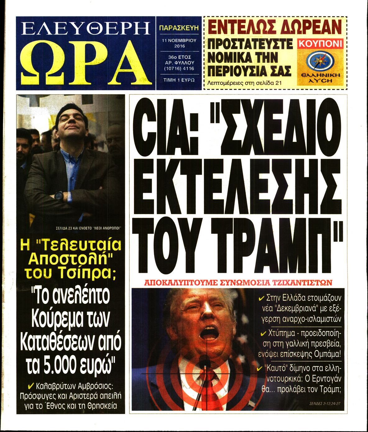 Οι πολιτικές εφημερίδες 11/11/2016 Enikos Newsroom 04:03, Παρασκευή 11 Νοεμβρίου 2016 Media Διαβάστε τα σημερινά πρωτοσέλιδα των πολιτικών εφημερίδων: ΠΟΛΙΤΙΚΕΣ ΕΦΗΜΕΡΙΔΕΣ ΠΡΩΤΟΣΕΛΙΔΑ Μοιράσου το: σχολίασε κι εσύ (0 σχόλια) Ακολουθήστε το enikos.gr στο Google News και μάθετε πρώτοι όλες τις ειδήσεις Δείτε όλες τις τελευταίες ειδήσεις από την Ελλάδα και τον Κόσμο στο enikos.gr Ειδήσεις Ροή Ειδήσεων 2 ώρες πριν Πώς δρούσε το κύκλωμα που διακινούσε ναρκωτικά σε σχολεία – Υπέβαλαν σε βασανιστήρια όσους δεν τηρούσαν τους «κανόνες πειθαρχίας» 3 ώρες πριν Αγρότες: Γιορτές στα μπλόκα με ανοιχτά διόδια – Δικογραφία στα Ιωάννινα για το σήκωμα των μπαρών 2 ώρες πριν Ζελένσκι: Οι Αμερικανοί πρότειναν συνάντηση Ουκρανίας, ΗΠΑ, Ρωσίας στο Μαϊάμι 2 ώρες πριν Αττική: Εξαρθρώθηκε εγκληματική οργάνωση που έκλεβε οχήματα, τα παραποιούσε και τα μεταπωλούσε σε πολίτες – Πώς δρούσε το κύκλωμα 1 ώρα πριν Μικαέλα Μπέντχαους: Ο πρώτος άνθρωπος σε αναπηρικό αμαξίδιο που ταξίδεψε στο διάστημα – ΒΙΝΤΕΟ 3 ώρες πριν Η τύχη χαμογελά σε 3 ζώδια έως τις 28 Δεκεμβρίου – «Προσέξτε τις επιλογές σας και η επιμονή σας θα ανταμειφθεί» 7 ώρες πριν Διαιτολόγος αποκαλύπτει 9 πρωινές συνήθειες που «λιώνουν» το κοιλιακό λίπος – «Υποστηρίζουν την υγιεινή απώλεια βάρους» 4 ώρες πριν Μία ανεκμετάλλευτη πηγή θα μπορούσε να προσφέρει ανεξάντλητη ενέργεια – Οι επιστήμονες ίσως γνωρίζουν πώς να την ξεκλειδώσουν 10 ώρες πριν Enerwave: Το νέο «ρεύμα» στη λιανική ενέργειας που αλλάζει την εμπειρία του καταναλωτή 3 λεπτά πριν Πηνελόπη Πλάκα: Η εξομολόγηση για την προσωπική της ζωή – «Γούσταρα πάρα πολύ την ελευθερία μου» 15 λεπτά πριν Λούλα: Προειδοποιεί πως μια επέμβαση των ΗΠΑ στη Βενεζουέλα θα μπορούσε να είναι καταστροφική 24 λεπτά πριν Τραμπ: Πώς περνάει τις γιορτές των Χριστουγέννων – Τα δώρα που κάνει στα εγγόνια του 36 λεπτά πριν HOTΕΛ ΕΛVIRA: Η Ελβίρα μαθαίνει πως ο Χάρι μένει κρυφά στο ξενοδοχείο του Παντελή 46 λεπτά πριν Ερντογάν: «Δεν έχουμε βλέψεις στα εδάφη κανενός, αλλά δεν θα επιτρέψουμε να παραβιαστούν τα δικαιώματά μας» ENIKOS NETWORK Οι γυναίκες αποκαλύπτουν το πιο ελκυστικό πράγμα που μπορεί να κάνει ένας άνδρας Ομορφιά και αντιγήρανση: Ειδικοί μιλούν για συσκευές περιποίησης του δέρματος Ολοκληρώθηκαν πληρωμές 22,16 εκατ. ευρώ για το μεταφορικό ισοδύναμο – Κικίλιας: Στηρίζουμε τη νησιωτικότητα Η Realnews στο www.pressreader.com Χαρτογραφώντας το «σημείο χωρίς επιστροφή»: Για πρώτη φορά αποκαλύπτεται με λεπτομέρεια το ακανθώδες όριο της ατμόσφαιρας τ... Η Google καταργεί τη λειτουργία «dark web report» – Πώς θα μπορούν οι χρήστες να διαγράφουν τα δεδομένα τους περισσότερα 18:19 , Σάββατο 20 Δεκεμβρίου 2025 HOTΕΛ ΕΛVIRA: Η Ελβίρα μαθαίνει πως ο Χάρι μένει κρυφά στο ξενοδοχείο του Παντελή Συνεχίζονται οι εκλογές για πρόεδρο, στο νέο επεισόδιο της κωμικής σειράς του MEGA, HOTΕΛ ΕΛVI... 14:04 , Σάββατο 20 Δεκεμβρίου 2025 Η Realnews αυτής της Κυριακής (21/12/2025) Με τίτλο: «Ασπίδα προστασίας για την Ελλάδα» κυκλοφορεί, αυτήν την Κυριακή, η Realnews. Σημαντ... 12:53 , Σάββατο 20 Δεκεμβρίου 2025 Να μ’ αγαπάς: Το παρελθόν έρχεται στο φως – Καταιγιστικές εξελίξεις στα τελευταία επεισόδια του 2025 Ο Άγγελος αποκαλύπτεται, η Φωτεινή ανησυχεί για τον Λευτέρη και η Ζωή έρχεται αντιμέτωπη με το... 11:41 , Σάββατο 20 Δεκεμβρίου 2025 «Η αγάπη δεν χάνεται ποτέ»: Η μικρού μήκους ταινία κινουμένων σχεδίων που θέτει ερωτήματα για τη ζωή και τον θάνατο Ο θάνατος είναι ένα από τα πιο σκληρά θέματα που καλείται