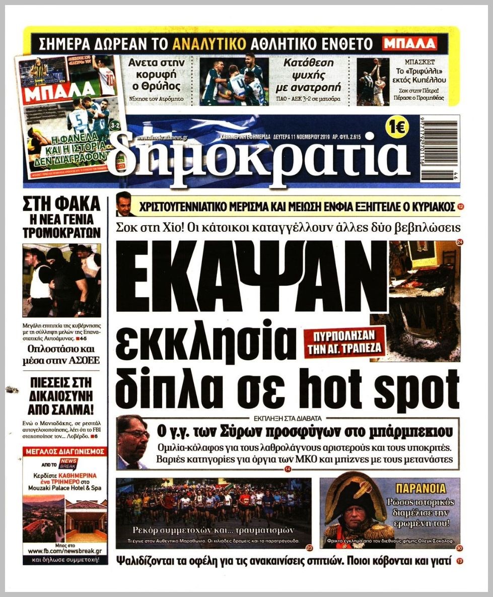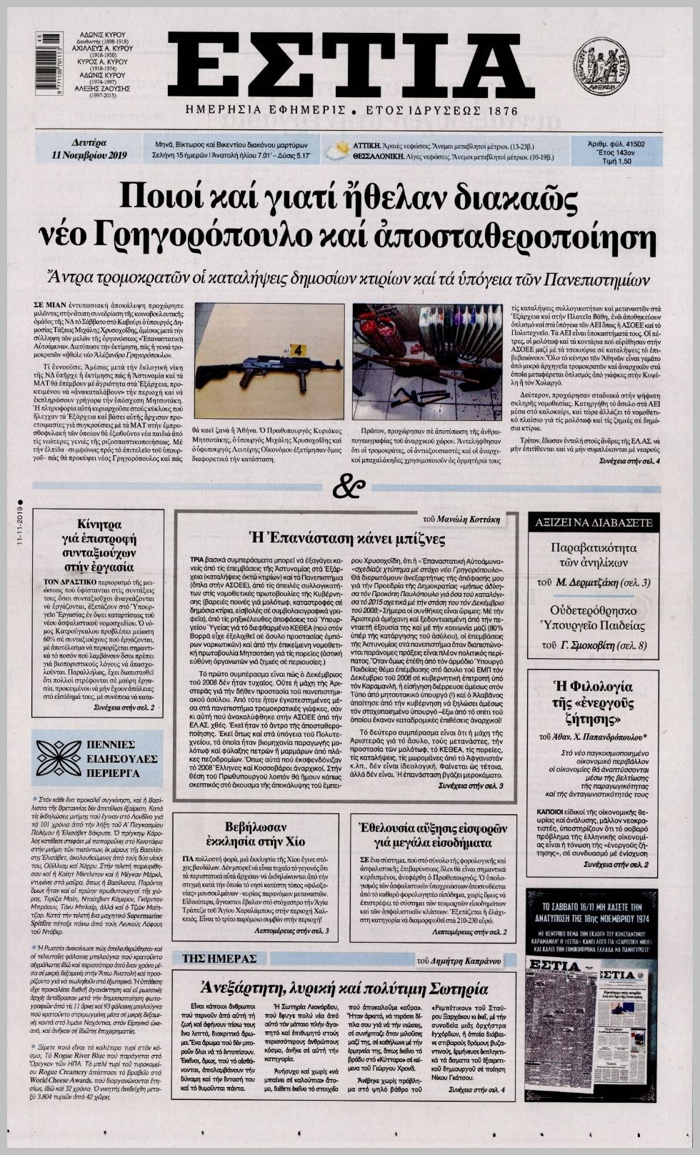 Οι πολιτικές εφημερίδες 11/11/2019 Κώστας Τεό 06:21, Δευτέρα 11 Νοεμβρίου 2019 Media Διαβάστε τα πρωτοσέλιδα των πολιτικών εφημερίδων: ΠΟΛΙΤΙΚΕΣ ΕΦΗΜΕΡΙΔΕΣ ΠΡΩΤΟΣΕΛΙΔΑ Μοιράσου το: σχολίασε κι εσύ (0 σχόλια) Ακολουθήστε το enikos.gr στο Google News και μάθετε πρώτοι όλες τις ειδήσεις Δείτε όλες τις τελευταίες ειδήσεις από την Ελλάδα και τον Κόσμο στο enikos.gr Ειδήσεις Ροή Ειδήσεων 4 ώρες πριν Χριστούγεννα στα μπλόκα: Επιμένουν στις κινητοποιήσεις τους οι αγρότες – Ανοίγουν τα διόδια το Σαββατοκύριακο 4 ώρες πριν Ουκρανία: Η άνευ προηγουμένου επίθεση σε ρωσικό τάνκερ στη Μεσόγειο και το μήνυμα προς στον Πούτιν – Το «μακρύ χέρι» του Κιέβου 3 ώρες πριν Πούτιν: Τα μηνύματα σε Ευρώπη και ΝΑΤΟ από το μαραθώνιο «σόου» του – Η απαίτηση για «σεβασμό» και η ειρήνη «με τους όρους» της Μόσχας 4 ώρες πριν Τραμπ: Δεν αποκλείει την πιθανότητα ενός πολέμου στη Βενεζουέλα – «Ο Μαδούρο ξέρει καλύτερα από τον καθένα τι ακριβώς θέλω» 5 ώρες πριν Συνεχίζει να προκαλεί ο Μίτσκοσκι: «Για μένα το όνομα Μακεδονία είναι ιερό» 3 ώρες πριν Ανακαλύφθηκαν αρχαία χρυσά νομίσματα 2.200 ετών που απεικονίζουν τον θεό Απόλλωνα – Η άγνωστη σύνδεση με τον Φίλιππο Β΄ της Μακεδονίας 4 ώρες πριν Ύπνος: Μια κρυφή κατάσταση του εγκεφάλου πριν από τον ύπνο μπορεί να είναι το “κλειδί” για υψηλή ευφυΐα και δημιουργικότητα 5 ώρες πριν Αριθμολογία: Οι άνθρωποι που έχουν γεννηθεί αυτές τις 4 ημερομηνίες, συχνά παρεξηγούνται – «Η καλοσύνη τους κρύβει τεράστια δύναμη» 6 ώρες πριν Ξεχάστε το καθάρισμα το Σαββατοκύριακο: Ο «κανόνας των 20 λεπτών» που θα σας λύσει τα χέρια 14 λεπτά πριν ΗΠΑ: Τραγωδία στην Αλαμπάμα – Σκότωσε την δημοσιογράφο σύζυγό του και αυτοκτόνησε μπροστά στον 3χρονο γιο τους 28 λεπτά πριν Πρόταση γάμου στο ΣΕΦ κατά την διάρκεια του αγώνα Ολυμπιακός-Βιλερμπάν – Δείτε βίντεο 43 λεπτά πριν Euroleague: Επέστρεψε στις νίκες ο Ολυμπιακός, πήρε την ματσάρα της χρονιάς η Μπάρτσα – Τα αποτελέσματα και η βαθμολογία 58 λεπτά πριν Συρία: Μαζικά πλήγματα των ΗΠΑ σε θέσεις του Ισλαμικού Κράτους – Χέγκσεθ: «Δεν είναι αρχή πολέμου, είναι μια δήλωση εκδίκησης» για το θάνατο των στρατιωτών μας 1 ώρα πριν Ουκρανία: Ολοκληρώθηκαν οι συνομιλίες με τους Αμερικανούς κι Ευρωπαίους διαπραγματευτές ENIKOS NETWORK Το ΕΚΑΒ τιμήθηκε από την Ακαδημία Αθηνών για τα 40 χρόνια προσφοράς του Έχετε πραγματικά μεγάλη καρδιά; 10 χαρακτηριστικά όσων έχουν καλοσύνη Αναστολή μέτρων αναγκαστικής εκτέλεσης για κτηνοτρόφους που πλήττονται από την ευλογιά των αιγοπροβάτων Πλήρης επάρκεια προϊόντων στις λαϊκές της Αττικής, παρά τις αγροτικές κινητοποιήσεις – Τι απαντούν οι πωλητές Χαρτογραφώντας το «σημείο χωρίς επιστροφή»: Για πρώτη φορά αποκαλύπτεται με λεπτομέρεια το ακανθώδες όριο της ατμόσφαιρας τ... Η Google καταργεί τη λειτουργία «dark web report» – Πώς θα μπορούν οι χρήστες να διαγράφουν τα δεδομένα τους περισσότερα 22:42 , Παρασκευή 19 Δεκεμβρίου 2025 Γιώργος Γιαννόπουλος για “Το σόι σου”: “Είναι ευτυχία και ευλογία αυτή η σειρά” «Είναι ευτυχία και ευλογία η συγκυρία αυτής της σειράς», θα πει ο Γιώργος Γιαννόπουλος -ο αγαπ... 20:37 , Παρασκευή 19 Δεκεμβρίου 2025 Don’t Forget The Lyrics: Η Έλλη Κοκκίνου υποδέχεται 4 παίκτες που θα κάνουν τα πάντα για να μη χάσουν ούτε… μισή λέξη από τους στίχους Το «Don’t Forget The Lyrics» επιστρέφει απόψε, Παρασκευή 19 Δεκεμβρίου, στις 21:00 με νέο επει... 19:31 , Παρασκευή 19 Δεκεμβρίου 2025 GNTM: Απόψε ο μεγάλος τελικός για τους 4 φιναλίστ Έπειτα από μήνες