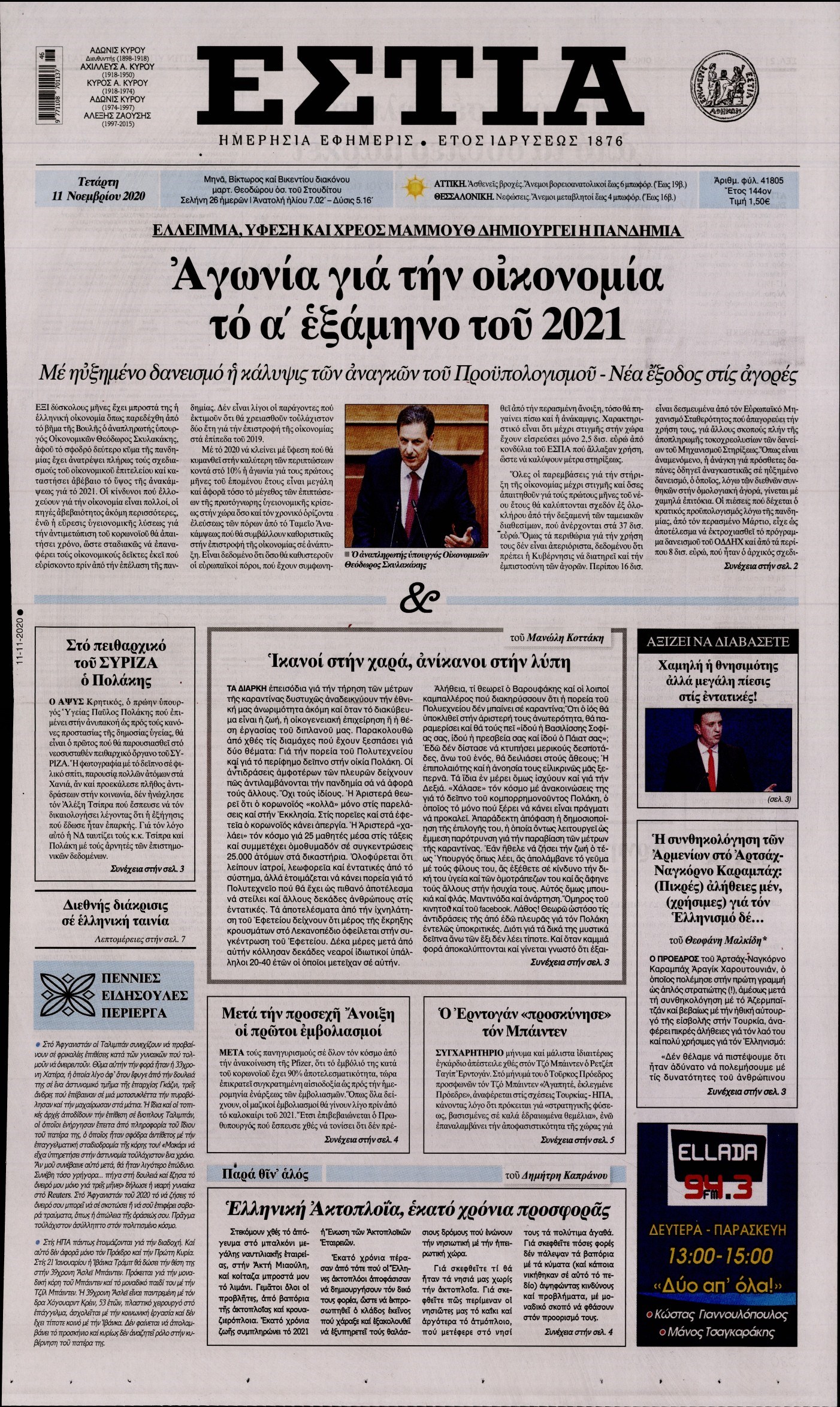 Οι πολιτικές εφημερίδες 11/11/2020 Διονύσης Νίκκας 06:08, Τετάρτη 11 Νοεμβρίου 2020 Media Διαβάστε τα πρωτοσέλιδα των πολιτικών εφημερίδων… ΕΦΗΜΕΡΙΔΕΣ ΠΟΛΙΤΙΚΕΣ ΕΦΗΜΕΡΙΔΕΣ ΠΡΩΤΟΣΕΛΙΔΑ Μοιράσου το: σχολίασε κι εσύ (0 σχόλια) Ακολουθήστε το enikos.gr στο Google News και μάθετε πρώτοι όλες τις ειδήσεις Δείτε όλες τις τελευταίες ειδήσεις από την Ελλάδα και τον Κόσμο στο enikos.gr Ειδήσεις Ροή Ειδήσεων 43 λεπτά πριν Υπόθεση Έπσταϊν: Το Υπουργείο Δικαιοσύνης δημοσιοποίησε μια σειρά από εξαιρετικά επεξεργασμένα αρχεία – «Λείπουν τα πιο σημαντικά έγγραφα», λένε οι Δημοκρατικοί 2 ώρες πριν Σαρωτικοί οι έλεγχοι στους δρόμους ενόψει εορτών – Μπλόκα της τροχαίας σε κεντρικές αρτηρίες της Αττικής 53 λεπτά πριν ΟΝΕΧ – MEGATUGS: Ξεκίνησε η ναυπήγηση ρυμουλκών στην Ελλάδα – Προθάλαμος πολεμικών πλοίων – Δείτε φωτογραφίες και βίντεο 45 λεπτά πριν Καιρός: Αλλαγή σκηνικού σήμερα με βροχές και πτώση της θερμοκρασίας – Οι προβλέψεις των μετεωρολόγων για τα Χριστούγεννα 10 ώρες πριν Χριστούγεννα στα μπλόκα: Επιμένουν στις κινητοποιήσεις τους οι αγρότες – Ανοίγουν τα διόδια το Σαββατοκύριακο 2 ώρες πριν Αυγά: Πόσα μπορείτε να τρώτε την ημέρα με ασφάλεια για μέγιστη πρόσληψη πρωτεΐνης 3 ώρες πριν Τα ζώδια σήμερα, Σάββατο 20 Δεκεμβρίου: Παρθένοι, το σύμπαν σας δίνει το κλειδί 2 ώρες πριν Οπτική ψευδαίσθηση: Μόνο αν είσαι ο Σέρλοκ Χολμς θα βρεις τον αριθμό «87» σε 7 δευτερόλεπτα 23 λεπτά πριν Αρχαιολόγοι ανακάλυψαν σε χωράφι απεικόνιση 600 ετών ενός Αγίου – Τα στοιχεία που δείχνουν ότι μαρτύρησε 7 λεπτά πριν MyHealth App: Τα στοιχεία για τον Προσωπικό Βοηθό Υγείας Πολίτη – Τι ερωτήματα έγιναν μέσα σε 7 ημέρες 15 λεπτά πριν Τρομεροί γονείς: Η Μαρία Καβογιάννη εισβάλλει στο σπίτι της οικογένειας Στεφανίδη 23 λεπτά πριν Αρχαιολόγοι ανακάλυψαν σε χωράφι απεικόνιση 600 ετών ενός Αγίου – Τα στοιχεία που δείχνουν ότι μαρτύρησε 30 λεπτά πριν Mega χριστουγεννιάτικη φορολοταρία: «Κλείδωσε» η ημερομηνία για την κλήρωση – Ερωτήσεις και απαντήσεις 37 λεπτά πριν ΗΠΑ: Τέσσερις μετανάστες πέθαναν σε κέντρα κράτησης – Αύξηση θανάτων σε επίπεδο ρεκόρ το 2025 ENIKOS NETWORK Το τεστ των 10 δευτερολέπτων που μπορεί να προβλέψει το προσδόκιμο ζωής σας – Τι λέει ειδικός του Cleveland Επιλέξτε καρέκλα για να μάθετε ποια είναι τα κρυφά χαρακτηριστικά σας – Τι αποκάλυψε για εσάς αυτό το τεστ προσωπικότητας; Mega χριστουγεννιάτικη φορολοταρία: «Κλείδωσε» η ημερομηνία για την κλήρωση – Ερωτήσεις και απαντήσεις Αναστολή μέτρων αναγκαστικής εκτέλεσης για κτηνοτρόφους που πλήττονται από την ευλογιά των αιγοπροβάτων Χαρτογραφώντας το «σημείο χωρίς επιστροφή»: Για πρώτη φορά αποκαλύπτεται με λεπτομέρεια το ακανθώδες όριο της ατμόσφαιρας τ... Η Google καταργεί τη λειτουργία «dark web report» – Πώς θα μπορούν οι χρήστες να διαγράφουν τα δεδομένα τους περισσότερα 08:14 , Σάββατο 20 Δεκεμβρίου 2025 Τρομεροί γονείς: Η Μαρία Καβογιάννη εισβάλλει στο σπίτι της οικογένειας Στεφανίδη Όσα θα δούμε στο νέο διπλό επεισόδιο της σειράς «Τρομεροί γονείς», σήμερα Σάββατο 20 Δεκεμβρίο... 05:48 , Σάββατο 20 Δεκεμβρίου 2025 Οι οικονομικές εφημερίδες 20/12/2025 Διαβάστε τα πρωτοσέλιδα από τις οικονομικές εφημερίδες, σήμερα 20/12/2025. 05:43 , Σάββατο 20 Δεκεμβρίου 2025 Οι αθλητικές εφημερίδες 20/12/2025 Διαβάστε τα πρωτοσέλιδα από τις αθλητικές εφημερίδες, σήμερα 20/12/2025. 05:38 , Σάββατο 20 Δεκεμβρίου 2025 Οι πολιτικές εφημερίδες 20/12/2025 Διαβάστε τα πρωτοσέλιδα από τις πολιτικές εφημερίδες, σήμερα 20/12/2025. Τ