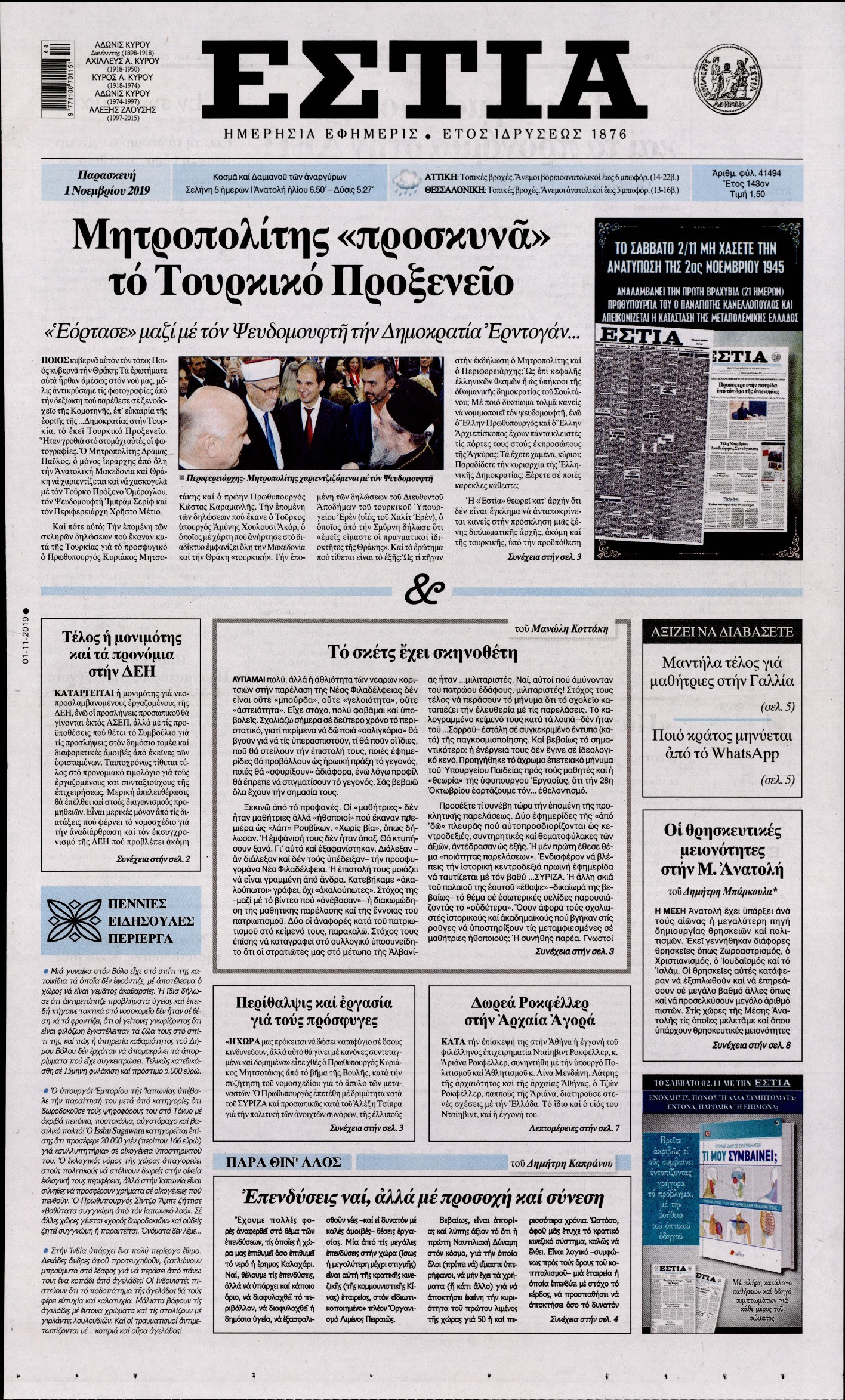 Οι πολιτικές εφημερίδες 1/11/19 Διονύσης Νίκκας 06:28, Παρασκευή 01 Νοεμβρίου 2019 Media Διαβάστε τα πρωτοσέλιδα των πολιτικών εφημερίδων… ΕΦΗΜΕΡΙΔΕΣ ΠΟΛΙΤΙΚΕΣ Μοιράσου το: σχολίασε κι εσύ (0 σχόλια) Ακολουθήστε το enikos.gr στο Google News και μάθετε πρώτοι όλες τις ειδήσεις Δείτε όλες τις τελευταίες ειδήσεις από την Ελλάδα και τον Κόσμο στο enikos.gr Ειδήσεις Ροή Ειδήσεων 50 λεπτά πριν Αυστραλία: Σχέσεις με το ISIS εκτιμάται πως είχαν οι δράστες της τρομοκρατικής επίθεσης στο Σίδνεϊ 56 λεπτά πριν Αγρότες: Αμετακίνητοι από τα μπλόκα σε τελωνεία και εθνικές οδούς – Ο χάρτης των κινητοποιήσεων και τα αιτήματά τους 1 ώρα πριν Σοκ στο Χόλιγουντ: Νεκροί από μαχαιριές ο σκηνοθέτης Ρομπ Ράινερ και η σύζυγός του – Αναφορές ότι τους σκότωσε ο γιος τους 1 ώρα πριν Δολοφονία στη Φοινικούντα: Απολογούνται σήμερα οι δύο συλληφθέντες – Στο «κάδρο» και δύο γυναίκες 2 ώρες πριν Δάνεια σε ελβετικό φράγκο: Ανακοινώνεται η ρύθμιση – Ποιοι και πόσο όφελος θα έχουν 1 ώρα πριν Κάτω από παλάτι κρυβόταν ένα άλλο μνημειώδες ανάκτορο: Οι ανασκαφές σε αρχαία πόλη αποκάλυψαν τα ερείπια και τα μυστικά του 3 ώρες πριν Οπτική ψευδαίσθηση: Μόνο το 1% των ανθρώπων θα βρει το ψάρι σε 12 δευτερόλεπτα 3 ώρες πριν Διατροφή: Γιατρός προειδοποιεί για 2 απλά λάθη που αυξάνουν τον κίνδυνο χρόνιων παθήσεων 4 ώρες πριν Τα ζώδια σήμερα, Δευτέρα 15 Δεκεμβρίου: Ιχθύες, ξεκινήστε από εκεί που η παρουσία σας έχει σημασία 6 λεπτά πριν Θρίλερ στη Φοινικούντα: Ετοίμαζαν τη δολοφονία από το 2022 11 λεπτά πριν Κληρονόμησε 2,8 εκατ. ευρώ και φοβάται ότι οι άνδρες θα την πλησιάζουν για τα λεφτά – «Μήπως καλύτερα να το κρατήσω μυστικό;» 16 λεπτά πριν Τι αλλάζει σε διαθήκες και περιουσιακές διεκδικήσεις 21 λεπτά πριν Αγρότες: Κλειστή η εθνική οδός Αθηνών – Θεσσαλονίκης στο ύψος της Νίκαιας – Κινητοποίηση στην πλατεία της Λάρισας 26 λεπτά πριν Τρόμος στην Κηφισιά: Ανήλικος ληστής έκανε κεφαλοκλείδωμα σε γυναίκα υπάλληλο φούρνου και άρπαξε χρήματα – ΒΙΝΤΕΟ ENIKOS NETWORK Έχετε καλή φυσική κατάσταση; Δείτε αν μπορείτε να κάνετε αυτές τις 5 κινήσεις 21χρονη που έγινε αγνώριστη χάνοντας 45 κιλά αποκαλύπτει το πρωινό που καίει λίπος Δάνεια σε ελβετικό φράγκο: Ανακοινώνεται η ρύθμιση- Ποιοι και πόσο θα έχουν όφελος – Όλες οι λεπτομέρειες Τέλος οι διώξεις για χρέη σε Εφορία και ΕΦΚΑ – Τι προβλέπει νέα διάταξη μετά την πτώχευση Σύγχρονος Νοστράδαμος: Προειδοποιεί για «μεγάλο γεγονός» τους επόμενους μήνες που θα συγκλονίσει τη Βρετανία και τον κόσμο Τεστ παρατηρητικότητας: Μπορείτε να βρείτε τις 3 διαφορές στις εικόνες με έναν πιγκουίνο σε 14 δευτερόλεπτα περισσότερα 07:42 , Δευτέρα 15 Δεκεμβρίου 2025 Την Κυριακή με τη Realnews: Δωροεπιταγή10€ Δωροεπιταγή αξίας 10€ για αγορές άνω των 60€ από τα πολυκαταστήματα FactoryOutlet H προσφορά ι... 07:17 , Δευτέρα 15 Δεκεμβρίου 2025 Αυτή την Κυριακή με τη Realnews: Instyle, μαζί Drive και Realnews Geopolitics Αυτή την Κυριακή με τη Realnews: Instyle, μαζί Drive και Realnews Geopolitics Instyle Η Άννα Ρ... 05:49 , Δευτέρα 15 Δεκεμβρίου 2025 Οι οικονομικές εφημερίδες 15/12/2025 Διαβάστε τα πρωτοσέλιδα από τις οικονομικές εφημερίδες, σήμερα 15/12/2025. 05:43 , Δευτέρα 15 Δεκεμβρίου 2025 Οι αθλητικές εφημερίδες 15/12/2025 Διαβάστε τα πρωτοσέλιδα από τις αθλητικές εφημερίδες, σήμερα 15/12/2025. ΤΕΛΕΥΤΑΙΕΣ ΕΙΔΗΣΕΙΣ 6 λεπτά πριν Θρίλερ στη Φοινικούντα: Ετοίμαζαν τη δολοφονία από το... 11 λεπτά πριν Κληρονόμησε 2,8 εκατ. ευρώ και φοβάται ότι οι άνδρες θα... 16 λεπτά πριν Τι αλλάζει σε διαθήκες και περιουσιακές διεκδική