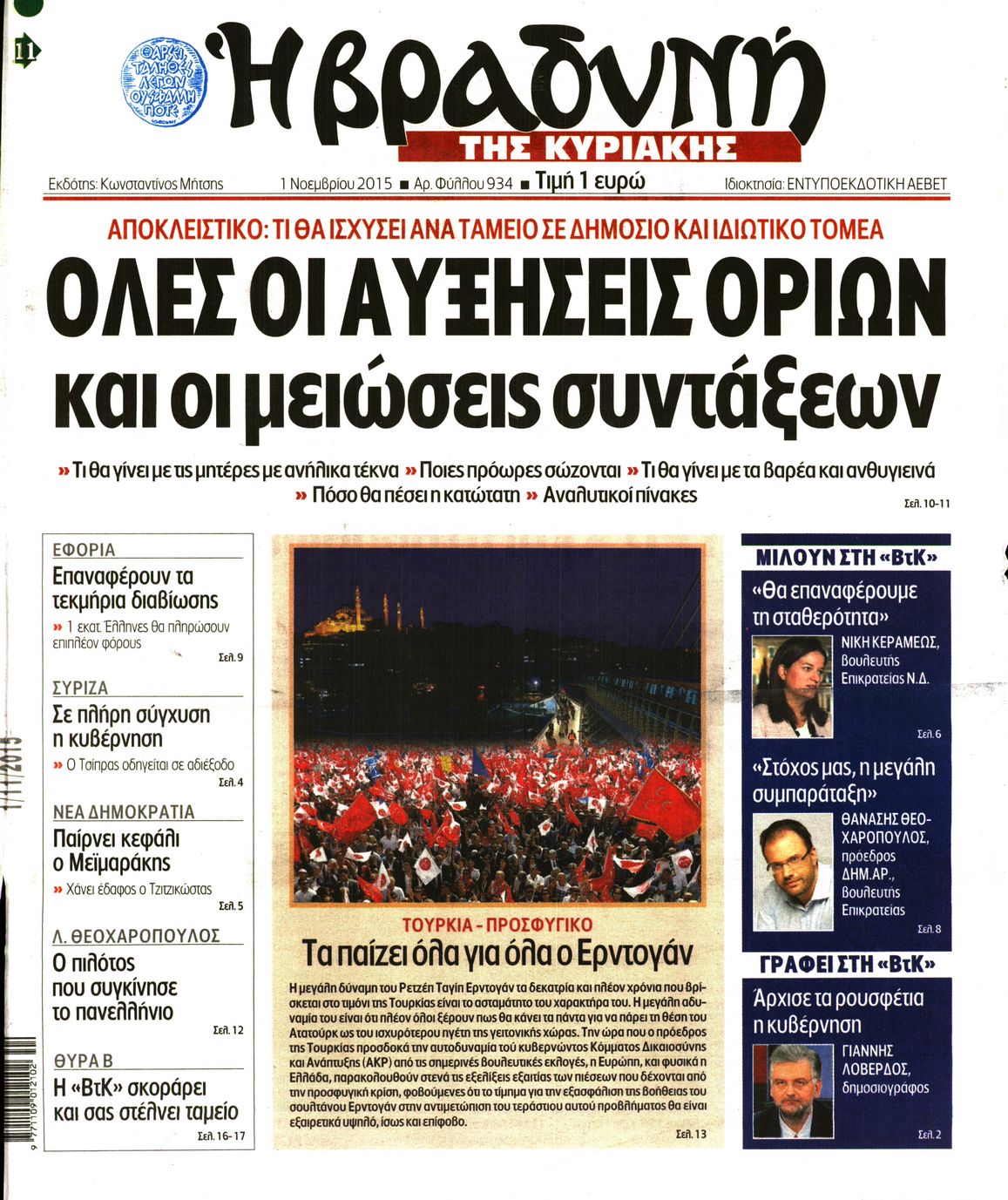 Οι πολιτικές εφημερίδες 1/11/2015 Enikos Newsroom 07:42, Κυριακή 01 Νοεμβρίου 2015 Media Διαβάστε τα σημερινά πρωτοσέλιδα των πολιτικών εφημερίδων… ΕΦΗΜΕΡΙΔΕΣ ΠΡΩΤΟΣΕΛΙΔΑ Μοιράσου το: σχολίασε κι εσύ (0 σχόλια) Ακολουθήστε το enikos.gr στο Google News και μάθετε πρώτοι όλες τις ειδήσεις Δείτε όλες τις τελευταίες ειδήσεις από την Ελλάδα και τον Κόσμο στο enikos.gr Ειδήσεις Ροή Ειδήσεων 8 ώρες πριν Χριστούγεννα στα μπλόκα: Επιμένουν στις κινητοποιήσεις τους οι αγρότες – Ανοίγουν τα διόδια το Σαββατοκύριακο 9 ώρες πριν Ουκρανία: Η άνευ προηγουμένου επίθεση σε ρωσικό τάνκερ στη Μεσόγειο και το μήνυμα προς στον Πούτιν – Το «μακρύ χέρι» του Κιέβου 8 ώρες πριν Πούτιν: Τα μηνύματα σε Ευρώπη και ΝΑΤΟ από το μαραθώνιο «σόου» του – Η απαίτηση για «σεβασμό» και η ειρήνη «με τους όρους» της Μόσχας 7 ώρες πριν ΗΠΑ: Η κυβέρνηση του Ντόναλντ Τραμπ άρχισε να δημοσιοποιεί τα αρχεία Έπσταϊν 7 ώρες πριν Άνω Λιόσια: Πυροβολισμοί σε επιχείρηση με χαλιά – Εντοπίστηκαν 10 κάλυκες 56 λεπτά πριν Αυγά: Πόσα μπορείτε να τρώτε την ημέρα με ασφάλεια για μέγιστη πρόσληψη πρωτεΐνης 1 ώρα πριν Τα ζώδια σήμερα, Σάββατο 20 Δεκεμβρίου: Παρθένοι, το σύμπαν σας δίνει το κλειδί 8 ώρες πριν Ανακαλύφθηκαν αρχαία χρυσά νομίσματα 2.200 ετών που απεικονίζουν τον θεό Απόλλωνα – Η άγνωστη σύνδεση με τον Φίλιππο Β΄ της Μακεδονίας 9 ώρες πριν Ύπνος: Μια κρυφή κατάσταση του εγκεφάλου πριν από τον ύπνο μπορεί να είναι το “κλειδί” για υψηλή ευφυΐα και δημιουργικότητα 2 λεπτά πριν Αναβολή συμφωνίας ΕΕ-Mercosur: Ο χρόνος «δεν είναι απεριόριστος» προειδοποιεί η Παραγουάη 17 λεπτά πριν Κίριλ Ντμίτριεφ: Στις ΗΠΑ ο απεσταλμένος της Ρωσίας για συνομιλίες με τους ομολόγους του, Γουίτκοφ και Κούσνερ 24 λεπτά πριν ΔΕΔΔΗΕ: Διακοπές ρεύματος σήμερα (20/12) στην Αθήνα και σε άλλες 7 περιοχές της Αττικής 33 λεπτά πριν Κολομβία: Είκοσι χρόνια κάθειρξη σε πρώην ανώτερο αξιωματικό για 72 εκτελέσεις αμάχων 40 λεπτά πριν Οπτική ψευδαίσθηση: Μόνο αν είσαι ο Σέρλοκ Χολμς θα βρεις τον αριθμό «87» σε 7 δευτερόλεπτα ENIKOS NETWORK Πρέπει να αποδέχεστε ή να απορρίπτετε όλα τα cookies; Ένας ειδικός εξηγεί Η αγαπημένη λιχουδιά των πόνι που μπορεί να ενισχύσει όραση, εγκέφαλο και ανοσοποιητικό Αναστολή μέτρων αναγκαστικής εκτέλεσης για κτηνοτρόφους που πλήττονται από την ευλογιά των αιγοπροβάτων Πλήρης επάρκεια προϊόντων στις λαϊκές της Αττικής, παρά τις αγροτικές κινητοποιήσεις – Τι απαντούν οι πωλητές Χαρτογραφώντας το «σημείο χωρίς επιστροφή»: Για πρώτη φορά αποκαλύπτεται με λεπτομέρεια το ακανθώδες όριο της ατμόσφαιρας τ... Η Google καταργεί τη λειτουργία «dark web report» – Πώς θα μπορούν οι χρήστες να διαγράφουν τα δεδομένα τους περισσότερα 05:48 , Σάββατο 20 Δεκεμβρίου 2025 Οι οικονομικές εφημερίδες 20/12/2025 Διαβάστε τα πρωτοσέλιδα από τις οικονομικές εφημερίδες, σήμερα 20/12/2025. 05:43 , Σάββατο 20 Δεκεμβρίου 2025 Οι αθλητικές εφημερίδες 20/12/2025 Διαβάστε τα πρωτοσέλιδα από τις αθλητικές εφημερίδες, σήμερα 20/12/2025. 05:38 , Σάββατο 20 Δεκεμβρίου 2025 Οι πολιτικές εφημερίδες 20/12/2025 Διαβάστε τα πρωτοσέλιδα από τις πολιτικές εφημερίδες, σήμερα 20/12/2025. 04:20 , Σάββατο 20 Δεκεμβρίου 2025 Αγγελική Νικολούλη: Τα συλλυπητήρια για την απώλεια της Ειρήνης Μαρινάκη Τα συλληπητήρια στον πρόεδρο του Mega, τον Βαγγέλη Μαρινάκη, για την απώλεια της μητέρας του Ε... ΤΕΛΕΥΤΑΙΕΣ ΕΙΔΗΣΕΙΣ 17 λεπτά πριν Κίριλ Ντμίτριεφ: Στις ΗΠΑ ο απεσταλμένος της Ρωσίας... 24 λεπτά πριν ΔΕΔΔΗΕ: Διακοπές ρεύματος σήμερα (20/12) στην Αθήνα και... 33 λεπ