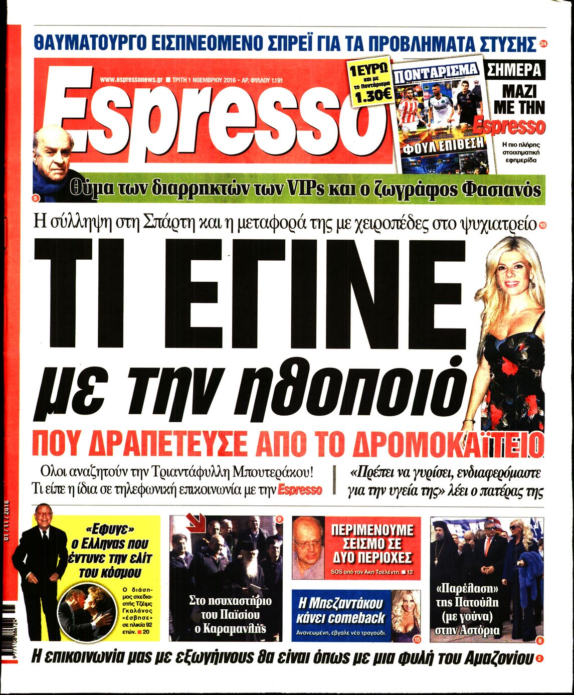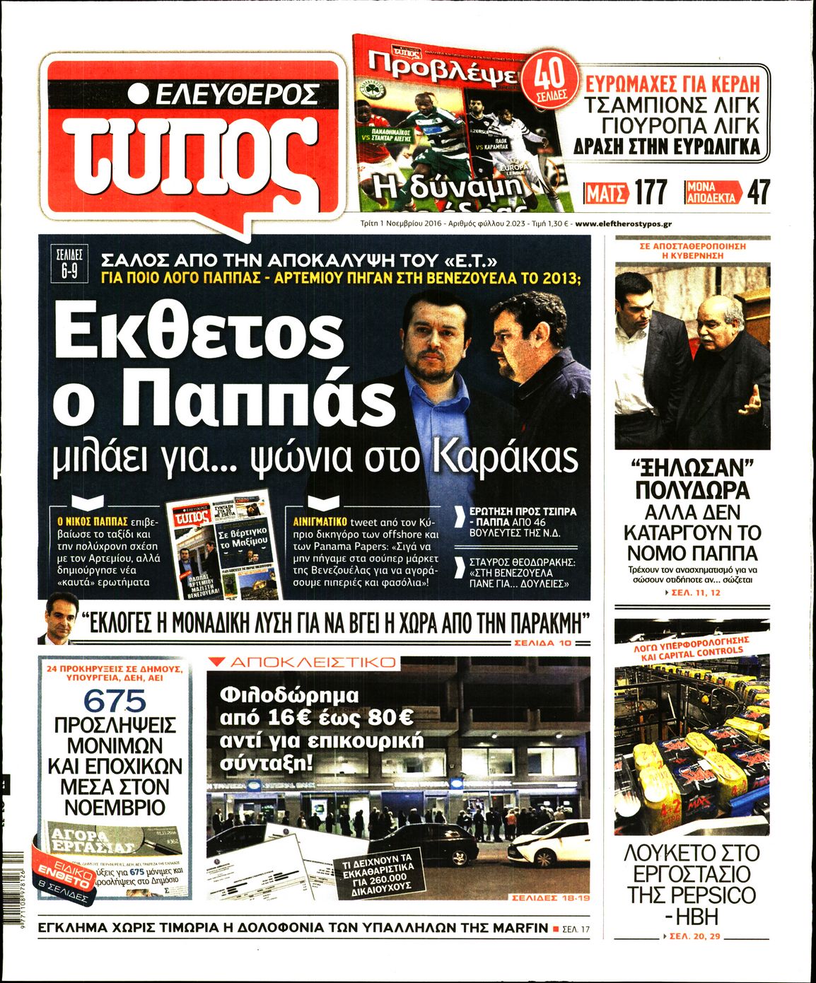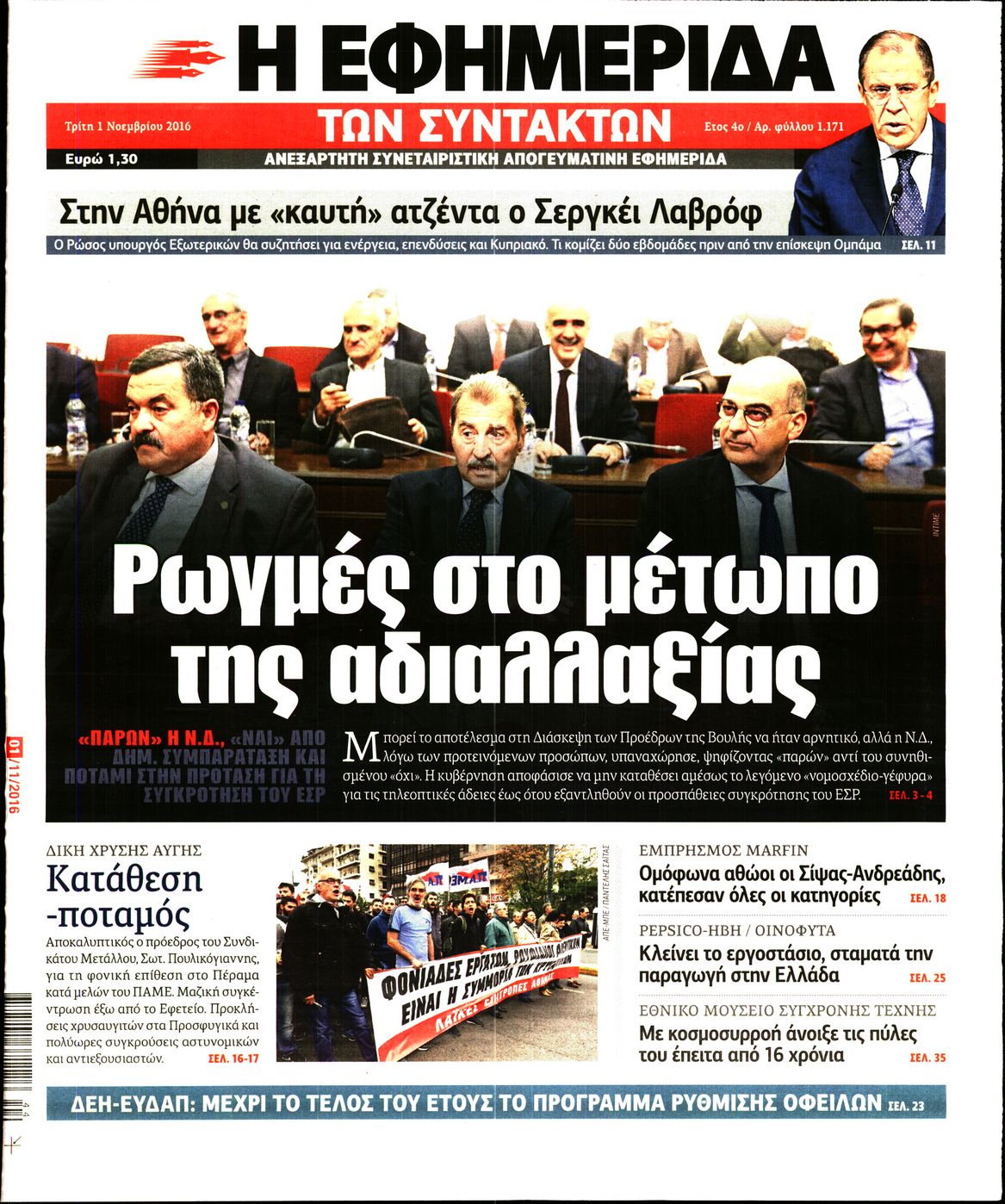 Οι πολιτικές εφημερίδες 1/11/2016 Κώστας Τεό 04:43, Τρίτη 01 Νοεμβρίου 2016 Media Διαβάστε τα σημερινά πρωτοσέλιδα των πολιτικών εφημερίδων: ΠΟΛΙΤΙΚΕΣ ΕΦΗΜΕΡΙΔΕΣ ΠΡΩΤΟΣΕΛΙΔΑ Μοιράσου το: σχολίασε κι εσύ (0 σχόλια) Ακολουθήστε το enikos.gr στο Google News και μάθετε πρώτοι όλες τις ειδήσεις Δείτε όλες τις τελευταίες ειδήσεις από την Ελλάδα και τον Κόσμο στο enikos.gr Ειδήσεις Ροή Ειδήσεων 2 ώρες πριν Χριστούγεννα στα μπλόκα: Επιμένουν στις κινητοποιήσεις τους οι αγρότες – Ανοίγουν τα διόδια το Σαββατοκύριακο 2 ώρες πριν Ουκρανία: Η άνευ προηγουμένου επίθεση σε ρωσικό τάνκερ στη Μεσόγειο και το μήνυμα προς στον Πούτιν – Το «μακρύ χέρι» του Κιέβου 1 ώρα πριν Πούτιν: Τα μηνύματα σε Ευρώπη και ΝΑΤΟ από το μαραθώνιο «σόου» του – Η απαίτηση για «σεβασμό» και η ειρήνη «με τους όρους» της Μόσχας 2 ώρες πριν Τραμπ: Δεν αποκλείει την πιθανότητα ενός πολέμου στη Βενεζουέλα – «Ο Μαδούρο ξέρει καλύτερα από τον καθένα τι ακριβώς θέλω» 3 ώρες πριν Συνεχίζει να προκαλεί ο Μίτσκοσκι: «Για μένα το όνομα Μακεδονία είναι ιερό» 1 ώρα πριν Ανακαλύφθηκαν αρχαία χρυσά νομίσματα 2.200 ετών που απεικονίζουν τον θεό Απόλλωνα – Η άγνωστη σύνδεση με τον Φίλιππο Β΄ της Μακεδονίας 2 ώρες πριν Ύπνος: Μια κρυφή κατάσταση του εγκεφάλου πριν από τον ύπνο μπορεί να είναι το “κλειδί” για υψηλή ευφυΐα και δημιουργικότητα 3 ώρες πριν Αριθμολογία: Οι άνθρωποι που έχουν γεννηθεί αυτές τις 4 ημερομηνίες, συχνά παρεξηγούνται – «Η καλοσύνη τους κρύβει τεράστια δύναμη» 4 ώρες πριν Ξεχάστε το καθάρισμα το Σαββατοκύριακο: Ο «κανόνας των 20 λεπτών» που θα σας λύσει τα χέρια 36 δευτερόλεπτα πριν Βασίλης Σπανούλης: Δεν εμφανίστηκε ούτε ένας δημοσιογράφος στην συνέντευξη Τύπου – «Καλησπέρα στον… κανέναν», δείτε βίντεο 12 λεπτά πριν Πόλεμος στην Ουκρανία: Εφτά νεκροί από ρωσική πυραυλική επίθεση στο λιμάνι της Οδησσού 15 λεπτά πριν ΗΠΑ: Η κυβέρνηση του Ντόναλντ Τραμπ άρχισε να δημοσιοποιεί τα αρχεία Έπσταϊν 27 λεπτά πριν Σάμος: Άνοιξε το μπλόκο των αγροτών στον κόμβο Κοκκαρίου – Σε νέα συνεδρίαση θα καθορίσουν την στάση τους 35 λεπτά πριν Άνω Λιόσια: Πυροβολισμοί σε επιχείρηση με χαλιά – Εντοπίστηκαν 10 κάλυκες ENIKOS NETWORK Το ΕΚΑΒ τιμήθηκε από την Ακαδημία Αθηνών για τα 40 χρόνια προσφοράς του Έχετε πραγματικά μεγάλη καρδιά; 10 χαρακτηριστικά όσων έχουν καλοσύνη Αναστολή μέτρων αναγκαστικής εκτέλεσης για κτηνοτρόφους που πλήττονται από την ευλογιά των αιγοπροβάτων Πλήρης επάρκεια προϊόντων στις λαϊκές της Αττικής, παρά τις αγροτικές κινητοποιήσεις – Τι απαντούν οι πωλητές Χαρτογραφώντας το «σημείο χωρίς επιστροφή»: Για πρώτη φορά αποκαλύπτεται με λεπτομέρεια το ακανθώδες όριο της ατμόσφαιρας τ... Η Google καταργεί τη λειτουργία «dark web report» – Πώς θα μπορούν οι χρήστες να διαγράφουν τα δεδομένα τους περισσότερα 22:42 , Παρασκευή 19 Δεκεμβρίου 2025 Γιώργος Γιαννόπουλος για “Το σόι σου”: “Είναι ευτυχία και ευλογία αυτή η σειρά” «Είναι ευτυχία και ευλογία η συγκυρία αυτής της σειράς», θα πει ο Γιώργος Γιαννόπουλος -ο αγαπ... 20:37 , Παρασκευή 19 Δεκεμβρίου 2025 Don’t Forget The Lyrics: Η Έλλη Κοκκίνου υποδέχεται 4 παίκτες που θα κάνουν τα πάντα για να μη χάσουν ούτε… μισή λέξη από τους στίχους Το «Don’t Forget The Lyrics» επιστρέφει απόψε, Παρασκευή 19 Δεκεμβρίου, στις 21:00 με νέο επει... 19:31 , Παρασκευή 19 Δεκεμβρίου 2025 GNTM: Απόψε ο μεγάλος τελικός για τους 4 φιναλίστ Έπειτα από μήνες γεμάτους μόδα, δημιουργία και έντονες αναμετρήσεις, το GNTM 2025 κορυφώνεται,... 18:11 