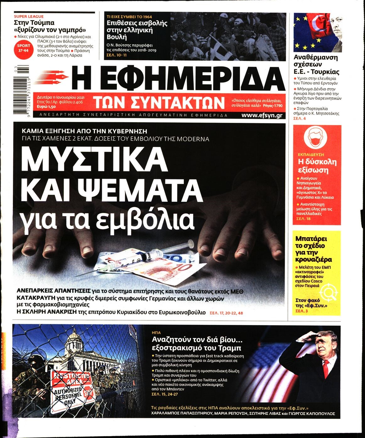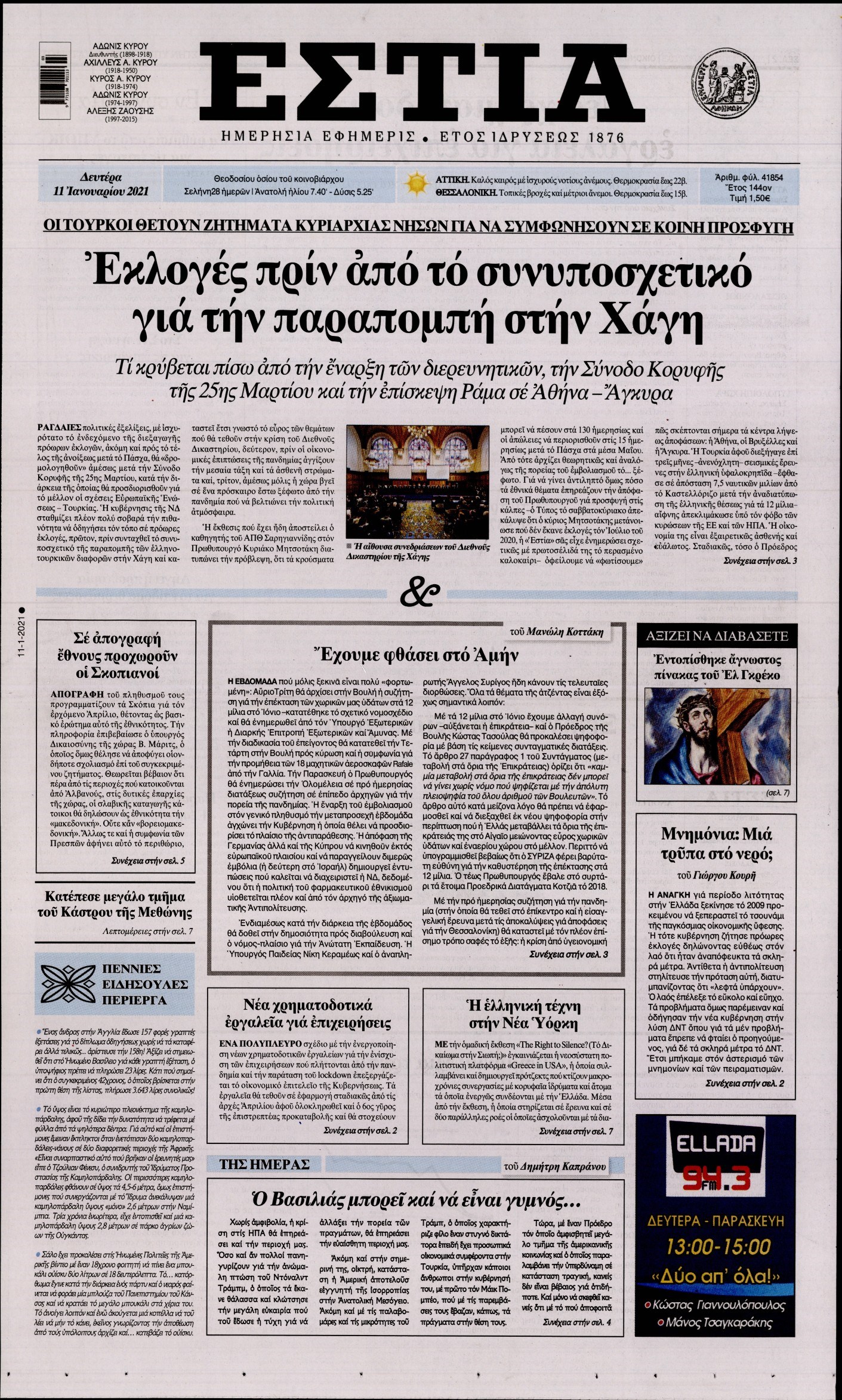 Οι πολιτικές εφημερίδες 11/1/2021 Διονύσης Νίκκας 06:12, Δευτέρα 11 Ιανουαρίου 2021 Media Διαβάστε τα πρωτοσέλιδα των πολιτικών εφημερίδων… ΕΦΗΜΕΡΙΔΕΣ ΠΟΛΙΤΙΚΕΣ ΕΦΗΜΕΡΙΔΕΣ ΠΡΩΤΟΣΕΛΙΔΑ Μοιράσου το: σχολίασε κι εσύ (0 σχόλια) Ακολουθήστε το enikos.gr στο Google News και μάθετε πρώτοι όλες τις ειδήσεις Δείτε όλες τις τελευταίες ειδήσεις από την Ελλάδα και τον Κόσμο στο enikos.gr Ειδήσεις Ροή Ειδήσεων 36 λεπτά πριν Μεσόγειος: Η διαδρομή του ρωσικού τάνκερ «Qendil» και η στοχευμένη επίθεση της Ουκρανίας με drone – Ο Πούτιν προειδοποίησε για αντίποινα 30 λεπτά πριν Αττική: Θρίλερ με νεκρό βρέφος 5 μηνών – Κοιμόταν στο ίδιο κρεβάτι με τους γονείς του 1 ώρα πριν Από το Ορμένιο ως τα Μάλγαρα κι από τη Σιάτιστα μέχρι τη Νίκαια: Μπλόκα σε όλη την Ελλάδα – Το Σάββατο ανοίγουν τα διόδια οι αγρότες 1 ώρα πριν «Έλληνας Εσκομπάρ»: Φωτογραφίες με τους 4 τόνους κοκαΐνης που κατασχέθηκαν από το σκάφος «Ουρανία» 3 ώρες πριν Πούτιν: Σαρκαστικά μηνύματα, παράπονα και απρόοπτα στη συνέντευξη Τύπου – Η πρόταση γάμου on air και οι ερωτήσεις για τα αγγούρια και τους… εξωγήινους 3 ώρες πριν Τα 5 ζώδια που ευνοούνται στην ερωτική ζωή τους την επόμενη εβδομάδα – «Η ενέργεια του Αιγόκερου φέρνει αγάπη και σταθερότητα» 7 ώρες πριν Ειδικός μοιράζεται 6 κόλπα για να διατηρείστε σε φόρμα με πάνω από 40 ώρες εργασίας την εβδομάδα: «Προπονηθείτε πριν από τη δουλειά, όχι μετά» 4 ώρες πριν Αυτό το έξυπνο μαθηματικό κόλπο θα μπορούσε να αλλάξει τον τρόπο με τον οποίο οι επιστήμονες μελετούν τους σεισμούς 1 ώρα πριν Κουίζ για την παλιά Αθήνα: Αναγνωρίζετε την περιοχή; Έχετε περάσει 100% από εκεί 5 λεπτά πριν Επίσημη η «βόμβα»: Ο ΠΑΟΚ ανακοίνωσε την απόκτηση του Πάτρικ Μπέβερλι 9 λεπτά πριν Θεσσαλονίκη: Πατέρας εγκαλεί τον Ιατρικό Σύλλογο για ποινές «χάδι» σε γιατρό που κατηγορείται για τον θάνατο του παιδιού του 16 λεπτά πριν Κερατσίνι: Αστυνομικός εκτός υπηρεσίας απέτρεψε κλοπή μηχανών – Συνελήφθησαν τρεις ανήλικοι 19 λεπτά πριν Το σόι σου: Ο Άρης έρχεται στην Ελλάδα για τις γιορτές των Χριστουγέννων – Τι θα δούμε στο αποψινό εορταστικό επεισόδιο 26 λεπτά πριν ΠΑΣΟΚ σε Μαρινάκη: Δεν νομιμοποιούμε πολιτικές επιλογές που μεταφέρουν το πρόβλημα από υπηρεσία σε υπηρεσία ENIKOS NETWORK «Η σούπερ» γρίπη εξαπλώνεται στην Ευρώπη-Στοιχεία για την αποτελεσματικότητα του εμβολίου από το ECDC ΕΛΣΤΑΤ: Αύξηση κατά 1,7% των επαγγελματιών υγείας το 2024 Η απάντηση της κυβέρνησης στα αιτήματα των αγροτών: 16 έχουν ικανοποιηθεί, 4 βρίσκονται υπό επεξεργασία και 7 δεν είναι εφι... Μισθολογική διαφάνεια: Το 68% των εργαζομένων αγνοεί τη νέα οδηγία – Αναλυτικά τα στοιχεία έρευνας Χαρτογραφώντας το «σημείο χωρίς επιστροφή»: Για πρώτη φορά αποκαλύπτεται με λεπτομέρεια το ακανθώδες όριο της ατμόσφαιρας τ... Η Google καταργεί τη λειτουργία «dark web report» – Πώς θα μπορούν οι χρήστες να διαγράφουν τα δεδομένα τους περισσότερα 18:11 , Παρασκευή 19 Δεκεμβρίου 2025 Το σόι σου: Ο Άρης έρχεται στην Ελλάδα για τις γιορτές των Χριστουγέννων – Τι θα δούμε στο αποψινό εορταστικό επεισόδιο Ένα απολαυστικό, εορταστικό επεισόδιο της σειράς “Το σόι σου”, γεμάτο ευτράπελα αλ... 15:15 , Παρασκευή 19 Δεκεμβρίου 2025 Την Κυριακή με τη Realnews: Ό,τι και αν αγοράσεις, σκανάρεις και κερδίζεις! Την Κυριακή με τη Realnews: Ό,τι και αν αγοράσεις, σκανάρεις και κερδίζεις! Με το PADU app, το... 08:00 , Παρασκευή 19 Δεκεμβρίου 2025 Την Κυριακή με τη Realnews: Δωροεπιταγή 10€ Δωροεπιταγή αξίας 10€ για αγορές άνω των 60€ από τα 