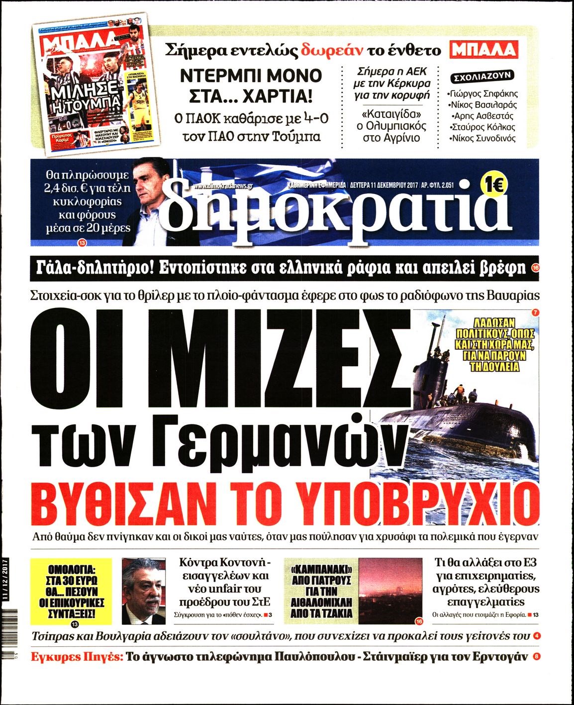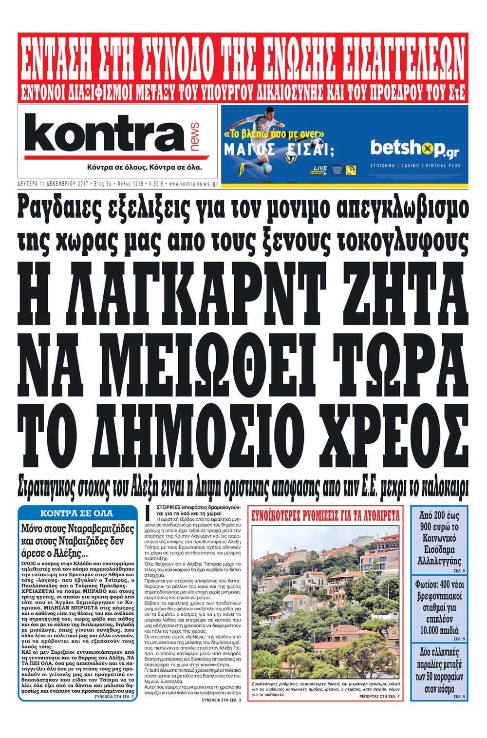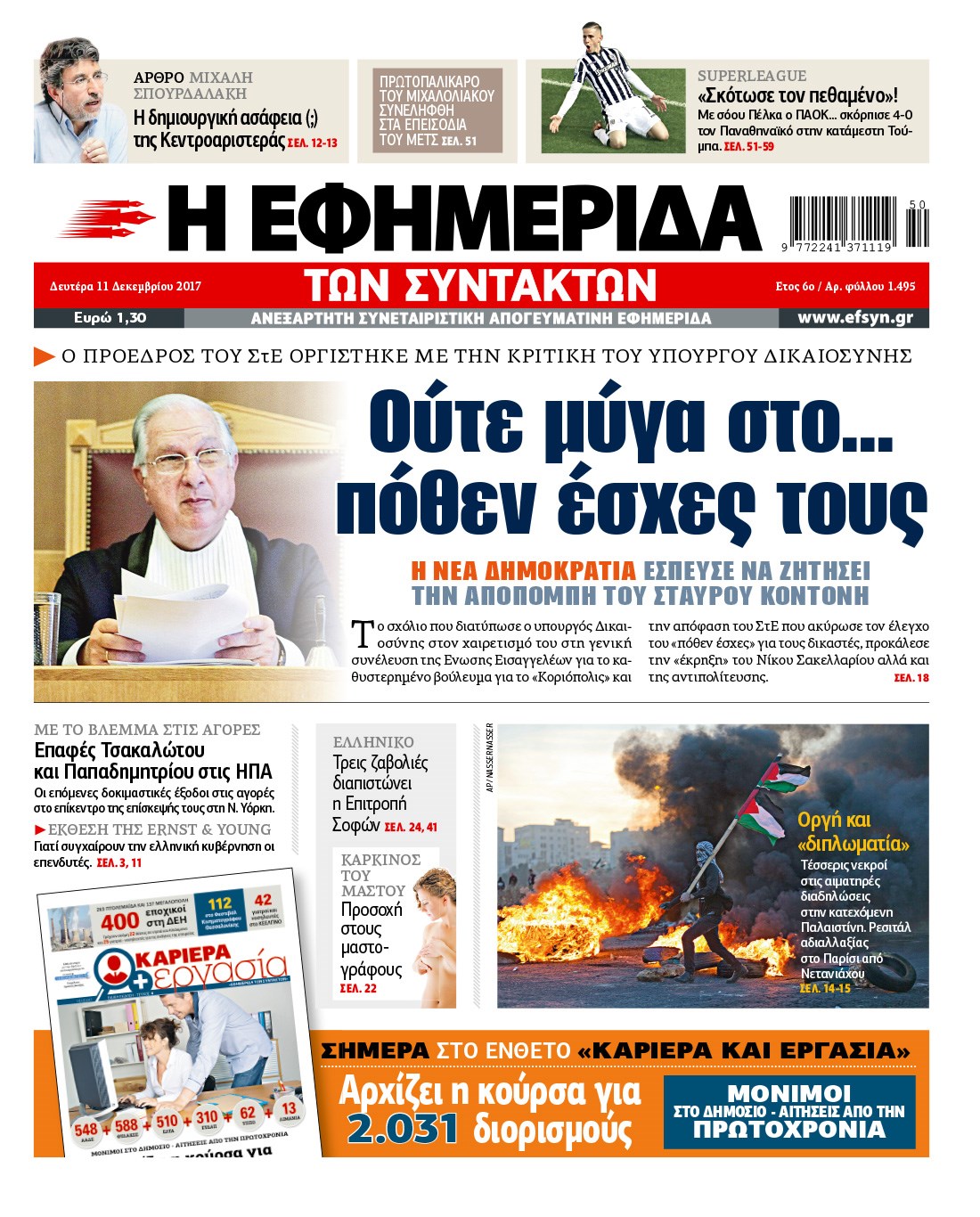 Οι πολιτικές εφημερίδες 11/12/2017 Κώστας Τεό 07:02, Δευτέρα 11 Δεκεμβρίου 2017 Media Διαβάστε τα σημερινά πρωτοσέλιδα των πολιτικών εφημερίδων: ΠΟΛΙΤΙΚΕΣ ΕΦΗΜΕΡΙΔΕΣ ΠΡΩΤΟΣΕΛΙΔΑ Μοιράσου το: σχολίασε κι εσύ (0 σχόλια) Ακολουθήστε το enikos.gr στο Google News και μάθετε πρώτοι όλες τις ειδήσεις Δείτε όλες τις τελευταίες ειδήσεις από την Ελλάδα και τον Κόσμο στο enikos.gr Ειδήσεις Ροή Ειδήσεων 4 ώρες πριν Χριστούγεννα στα μπλόκα: Επιμένουν στις κινητοποιήσεις τους οι αγρότες – Ανοίγουν τα διόδια το Σαββατοκύριακο 4 ώρες πριν Ουκρανία: Η άνευ προηγουμένου επίθεση σε ρωσικό τάνκερ στη Μεσόγειο και το μήνυμα προς στον Πούτιν – Το «μακρύ χέρι» του Κιέβου 3 ώρες πριν Πούτιν: Τα μηνύματα σε Ευρώπη και ΝΑΤΟ από το μαραθώνιο «σόου» του – Η απαίτηση για «σεβασμό» και η ειρήνη «με τους όρους» της Μόσχας 4 ώρες πριν Τραμπ: Δεν αποκλείει την πιθανότητα ενός πολέμου στη Βενεζουέλα – «Ο Μαδούρο ξέρει καλύτερα από τον καθένα τι ακριβώς θέλω» 5 ώρες πριν Συνεχίζει να προκαλεί ο Μίτσκοσκι: «Για μένα το όνομα Μακεδονία είναι ιερό» 3 ώρες πριν Ανακαλύφθηκαν αρχαία χρυσά νομίσματα 2.200 ετών που απεικονίζουν τον θεό Απόλλωνα – Η άγνωστη σύνδεση με τον Φίλιππο Β΄ της Μακεδονίας 4 ώρες πριν Ύπνος: Μια κρυφή κατάσταση του εγκεφάλου πριν από τον ύπνο μπορεί να είναι το “κλειδί” για υψηλή ευφυΐα και δημιουργικότητα 5 ώρες πριν Αριθμολογία: Οι άνθρωποι που έχουν γεννηθεί αυτές τις 4 ημερομηνίες, συχνά παρεξηγούνται – «Η καλοσύνη τους κρύβει τεράστια δύναμη» 6 ώρες πριν Ξεχάστε το καθάρισμα το Σαββατοκύριακο: Ο «κανόνας των 20 λεπτών» που θα σας λύσει τα χέρια 14 λεπτά πριν ΗΠΑ: Τραγωδία στην Αλαμπάμα – Σκότωσε την δημοσιογράφο σύζυγό του και αυτοκτόνησε μπροστά στον 3χρονο γιο τους 28 λεπτά πριν Πρόταση γάμου στο ΣΕΦ κατά την διάρκεια του αγώνα Ολυμπιακός-Βιλερμπάν – Δείτε βίντεο 43 λεπτά πριν Euroleague: Επέστρεψε στις νίκες ο Ολυμπιακός, πήρε την ματσάρα της χρονιάς η Μπάρτσα – Τα αποτελέσματα και η βαθμολογία 58 λεπτά πριν Συρία: Μαζικά πλήγματα των ΗΠΑ σε θέσεις του Ισλαμικού Κράτους – Χέγκσεθ: «Δεν είναι αρχή πολέμου, είναι μια δήλωση εκδίκησης» για το θάνατο των στρατιωτών μας 1 ώρα πριν Ουκρανία: Ολοκληρώθηκαν οι συνομιλίες με τους Αμερικανούς κι Ευρωπαίους διαπραγματευτές ENIKOS NETWORK Το ΕΚΑΒ τιμήθηκε από την Ακαδημία Αθηνών για τα 40 χρόνια προσφοράς του Έχετε πραγματικά μεγάλη καρδιά; 10 χαρακτηριστικά όσων έχουν καλοσύνη Αναστολή μέτρων αναγκαστικής εκτέλεσης για κτηνοτρόφους που πλήττονται από την ευλογιά των αιγοπροβάτων Πλήρης επάρκεια προϊόντων στις λαϊκές της Αττικής, παρά τις αγροτικές κινητοποιήσεις – Τι απαντούν οι πωλητές Χαρτογραφώντας το «σημείο χωρίς επιστροφή»: Για πρώτη φορά αποκαλύπτεται με λεπτομέρεια το ακανθώδες όριο της ατμόσφαιρας τ... Η Google καταργεί τη λειτουργία «dark web report» – Πώς θα μπορούν οι χρήστες να διαγράφουν τα δεδομένα τους περισσότερα 22:42 , Παρασκευή 19 Δεκεμβρίου 2025 Γιώργος Γιαννόπουλος για “Το σόι σου”: “Είναι ευτυχία και ευλογία αυτή η σειρά” «Είναι ευτυχία και ευλογία η συγκυρία αυτής της σειράς», θα πει ο Γιώργος Γιαννόπουλος -ο αγαπ... 20:37 , Παρασκευή 19 Δεκεμβρίου 2025 Don’t Forget The Lyrics: Η Έλλη Κοκκίνου υποδέχεται 4 παίκτες που θα κάνουν τα πάντα για να μη χάσουν ούτε… μισή λέξη από τους στίχους Το «Don’t Forget The Lyrics» επιστρέφει απόψε, Παρασκευή 19 Δεκεμβρίου, στις 21:00 με νέο επει... 19:31 , Παρασκευή 19 Δεκεμβρίου 2025 GNTM: Απόψε ο μεγάλος τελικός για τους 4 φιναλίστ Έπειτ