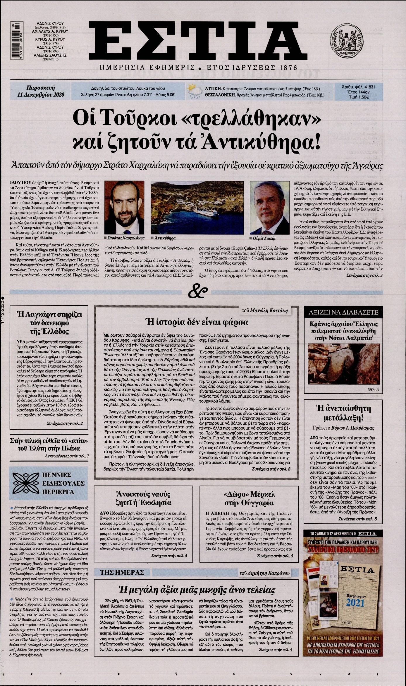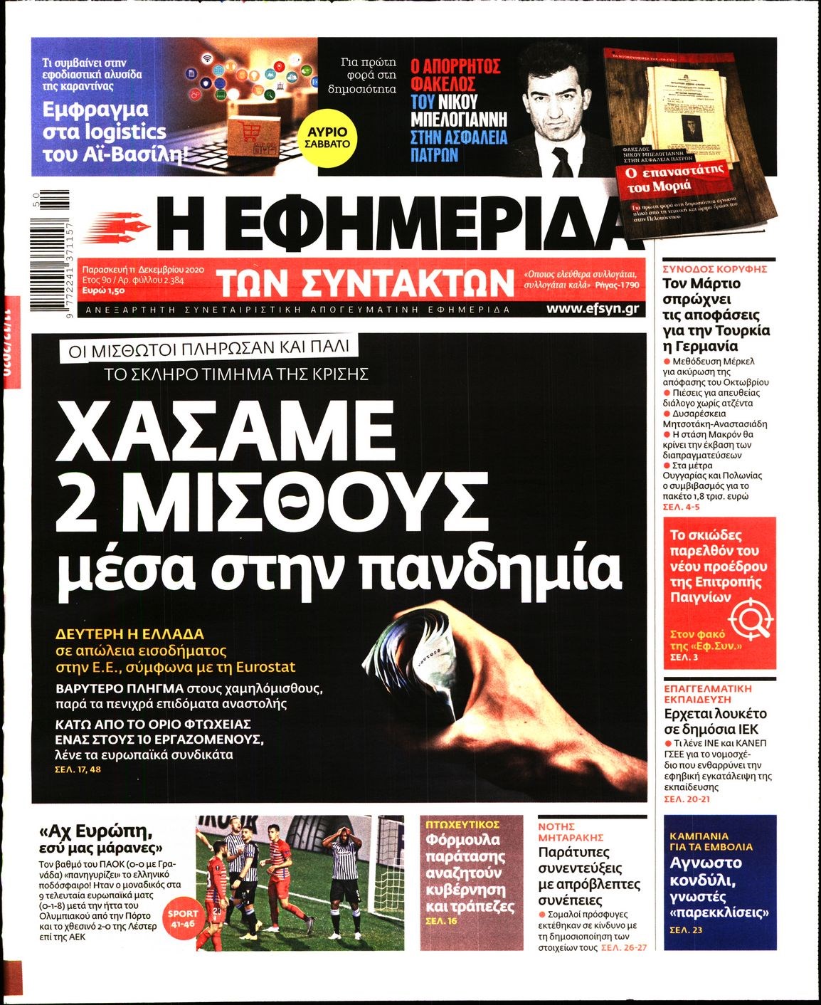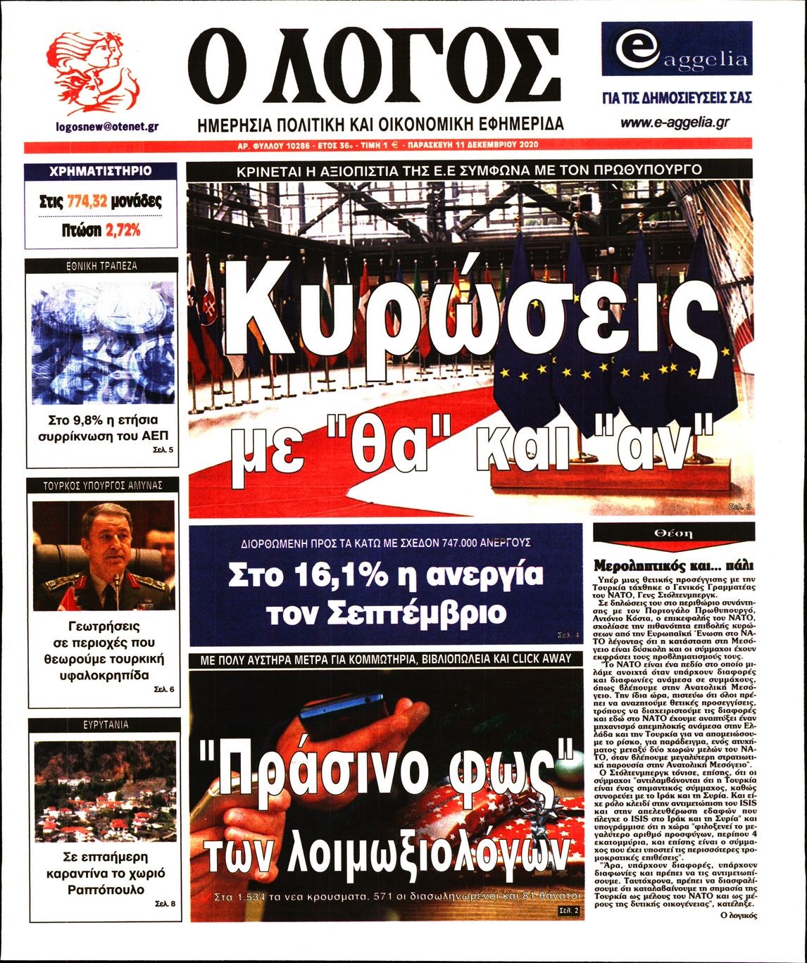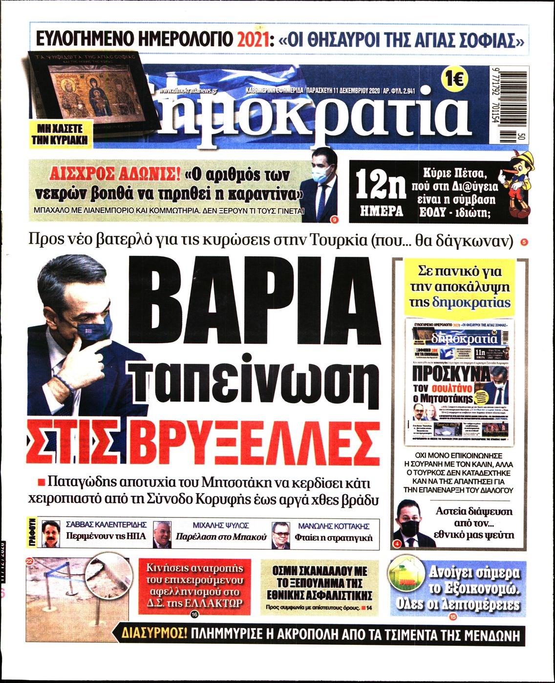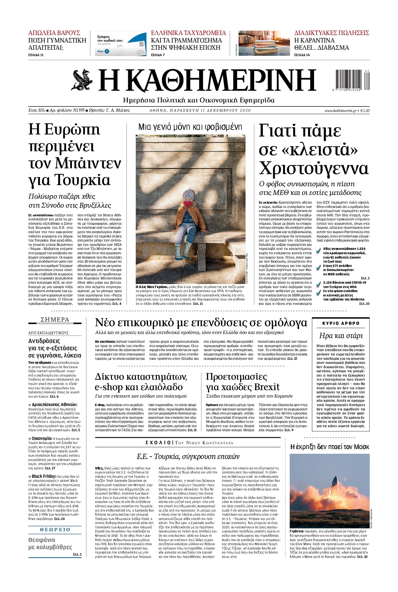 Οι πολιτικές εφημερίδες 11/12/2020 Διονύσης Νίκκας 06:05, Παρασκευή 11 Δεκεμβρίου 2020 Media Διαβάστε τα πρωτοσέλιδα των πολιτικών εφημερίδων… ΠΟΛΙΤΙΚΕΣ ΕΦΗΜΕΡΙΔΕΣ ΠΡΩΤΟΣΕΛΙΔΑ Μοιράσου το: σχολίασε κι εσύ (0 σχόλια) Ακολουθήστε το enikos.gr στο Google News και μάθετε πρώτοι όλες τις ειδήσεις Δείτε όλες τις τελευταίες ειδήσεις από την Ελλάδα και τον Κόσμο στο enikos.gr Ειδήσεις Ροή Ειδήσεων 37 λεπτά πριν Μεσόγειος: Η διαδρομή του ρωσικού τάνκερ «Qendil» και η στοχευμένη επίθεση της Ουκρανίας με drone – Ο Πούτιν προειδοποίησε για αντίποινα 31 λεπτά πριν Αττική: Θρίλερ με νεκρό βρέφος 5 μηνών – Κοιμόταν στο ίδιο κρεβάτι με τους γονείς του 1 ώρα πριν Από το Ορμένιο ως τα Μάλγαρα κι από τη Σιάτιστα μέχρι τη Νίκαια: Μπλόκα σε όλη την Ελλάδα – Το Σάββατο ανοίγουν τα διόδια οι αγρότες 2 ώρες πριν «Έλληνας Εσκομπάρ»: Φωτογραφίες με τους 4 τόνους κοκαΐνης που κατασχέθηκαν από το σκάφος «Ουρανία» 3 ώρες πριν Πούτιν: Σαρκαστικά μηνύματα, παράπονα και απρόοπτα στη συνέντευξη Τύπου – Η πρόταση γάμου on air και οι ερωτήσεις για τα αγγούρια και τους… εξωγήινους 3 ώρες πριν Τα 5 ζώδια που ευνοούνται στην ερωτική ζωή τους την επόμενη εβδομάδα – «Η ενέργεια του Αιγόκερου φέρνει αγάπη και σταθερότητα» 7 ώρες πριν Ειδικός μοιράζεται 6 κόλπα για να διατηρείστε σε φόρμα με πάνω από 40 ώρες εργασίας την εβδομάδα: «Προπονηθείτε πριν από τη δουλειά, όχι μετά» 4 ώρες πριν Αυτό το έξυπνο μαθηματικό κόλπο θα μπορούσε να αλλάξει τον τρόπο με τον οποίο οι επιστήμονες μελετούν τους σεισμούς 1 ώρα πριν Κουίζ για την παλιά Αθήνα: Αναγνωρίζετε την περιοχή; Έχετε περάσει 100% από εκεί 6 λεπτά πριν Επίσημη η «βόμβα»: Ο ΠΑΟΚ ανακοίνωσε την απόκτηση του Πάτρικ Μπέβερλι 10 λεπτά πριν Θεσσαλονίκη: Πατέρας εγκαλεί τον Ιατρικό Σύλλογο για ποινές «χάδι» σε γιατρό που κατηγορείται για τον θάνατο του παιδιού του 17 λεπτά πριν Κερατσίνι: Αστυνομικός εκτός υπηρεσίας απέτρεψε κλοπή μηχανών – Συνελήφθησαν τρεις ανήλικοι 20 λεπτά πριν Το σόι σου: Ο Άρης έρχεται στην Ελλάδα για τις γιορτές των Χριστουγέννων – Τι θα δούμε στο αποψινό εορταστικό επεισόδιο 27 λεπτά πριν ΠΑΣΟΚ σε Μαρινάκη: Δεν νομιμοποιούμε πολιτικές επιλογές που μεταφέρουν το πρόβλημα από υπηρεσία σε υπηρεσία ENIKOS NETWORK «Η σούπερ» γρίπη εξαπλώνεται στην Ευρώπη-Στοιχεία για την αποτελεσματικότητα του εμβολίου από το ECDC ΕΛΣΤΑΤ: Αύξηση κατά 1,7% των επαγγελματιών υγείας το 2024 Η απάντηση της κυβέρνησης στα αιτήματα των αγροτών: 16 έχουν ικανοποιηθεί, 4 βρίσκονται υπό επεξεργασία και 7 δεν είναι εφι... Μισθολογική διαφάνεια: Το 68% των εργαζομένων αγνοεί τη νέα οδηγία – Αναλυτικά τα στοιχεία έρευνας Χαρτογραφώντας το «σημείο χωρίς επιστροφή»: Για πρώτη φορά αποκαλύπτεται με λεπτομέρεια το ακανθώδες όριο της ατμόσφαιρας τ... Η Google καταργεί τη λειτουργία «dark web report» – Πώς θα μπορούν οι χρήστες να διαγράφουν τα δεδομένα τους περισσότερα 18:11 , Παρασκευή 19 Δεκεμβρίου 2025 Το σόι σου: Ο Άρης έρχεται στην Ελλάδα για τις γιορτές των Χριστουγέννων – Τι θα δούμε στο αποψινό εορταστικό επεισόδιο Ένα απολαυστικό, εορταστικό επεισόδιο της σειράς “Το σόι σου”, γεμάτο ευτράπελα αλ... 15:15 , Παρασκευή 19 Δεκεμβρίου 2025 Την Κυριακή με τη Realnews: Ό,τι και αν αγοράσεις, σκανάρεις και κερδίζεις! Την Κυριακή με τη Realnews: Ό,τι και αν αγοράσεις, σκανάρεις και κερδίζεις! Με το PADU app, το... 08:00 , Παρασκευή 19 Δεκεμβρίου 2025 Την Κυριακή με τη Realnews: Δωροεπιταγή 10€ Δωροεπιταγή αξίας 10€ για αγορές άνω των 60€ από τα πολυκα