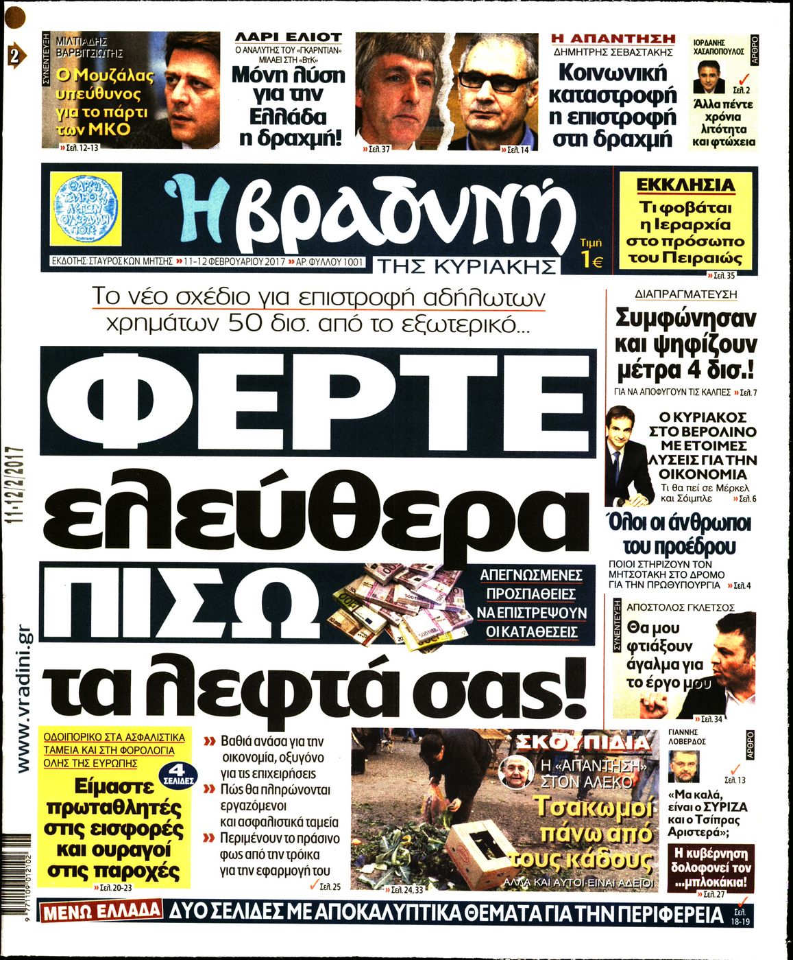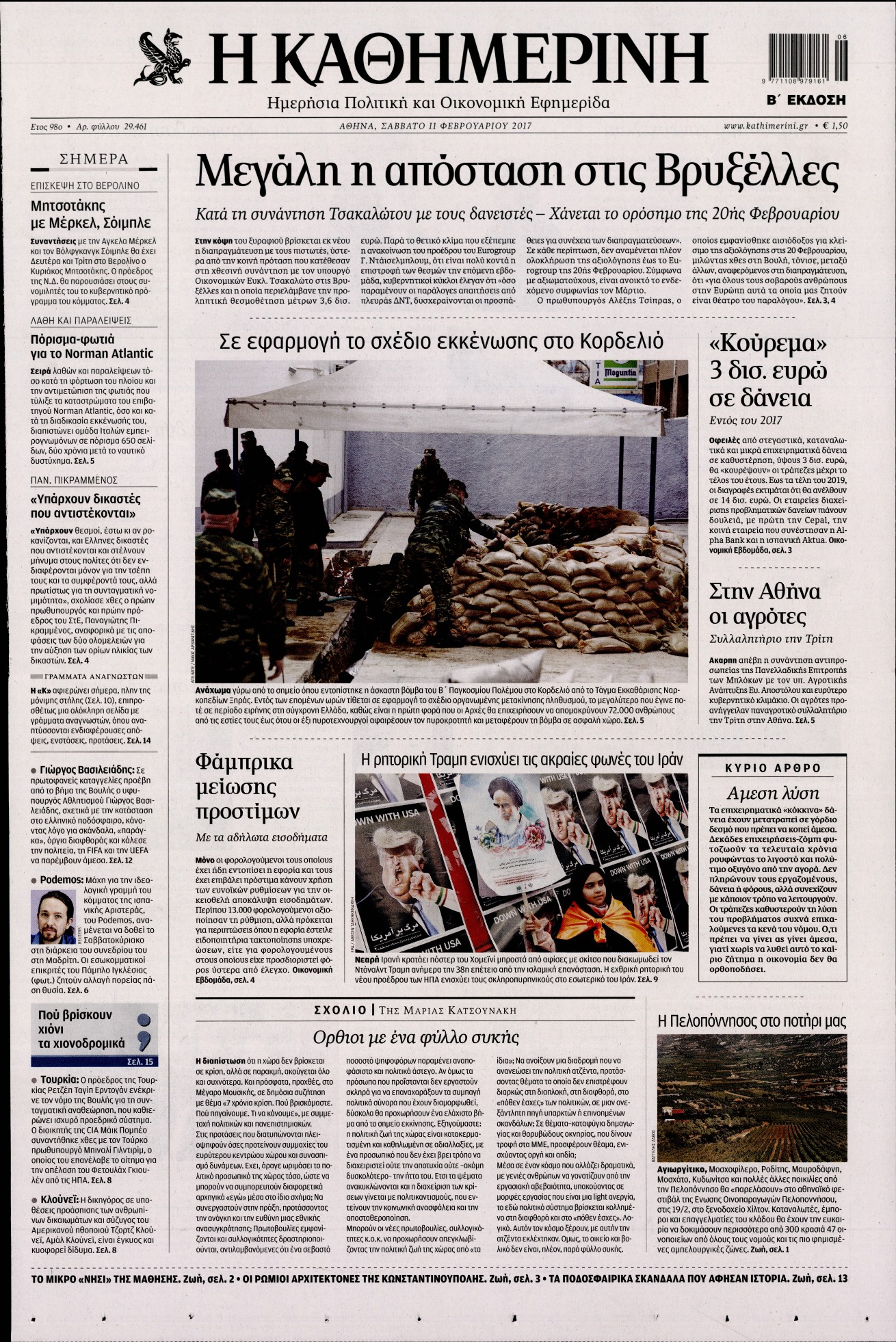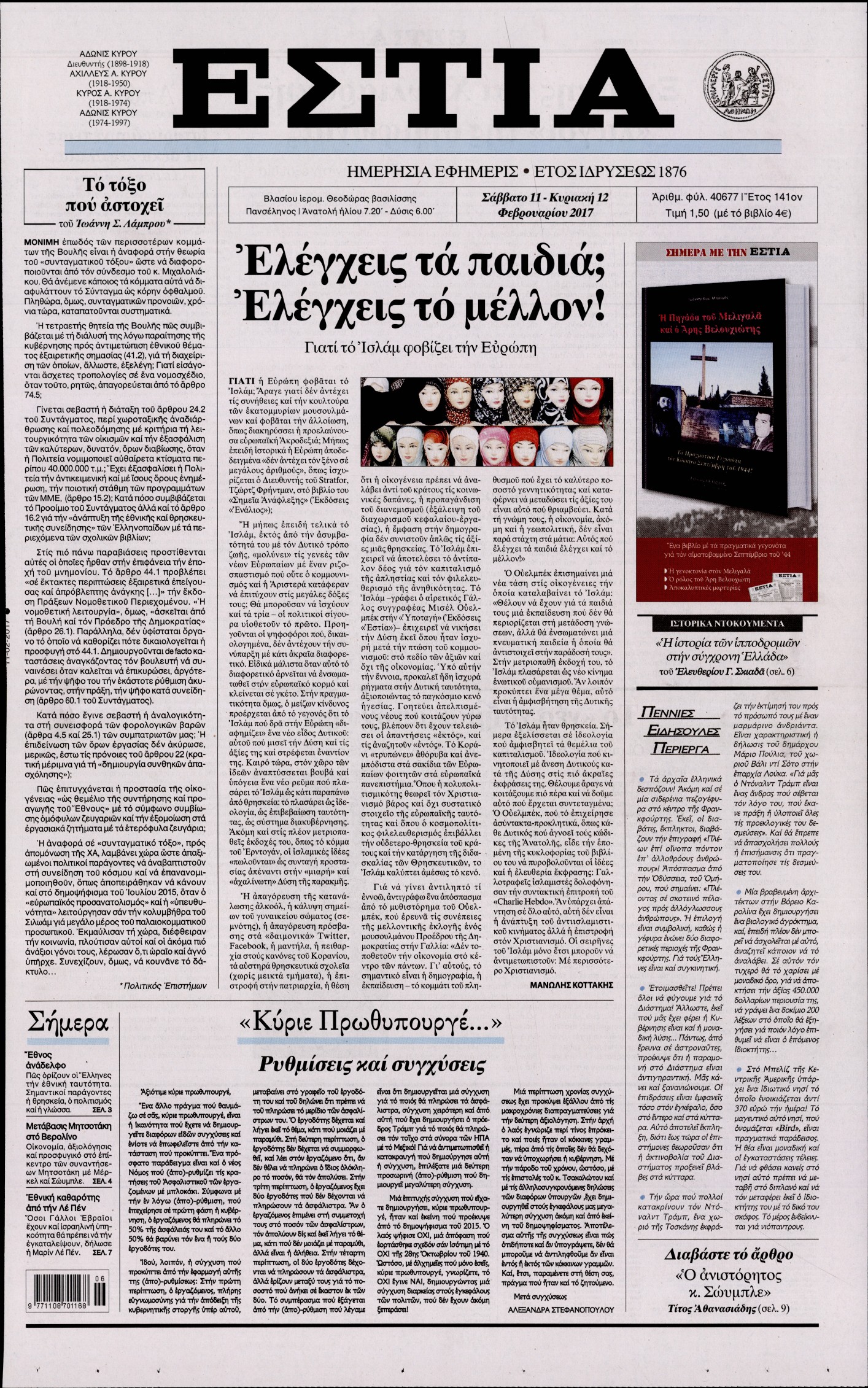 Οι πολιτικές εφημερίδες 11/2/2017 Enikos Newsroom 01:32, Σάββατο 11 Φεβρουαρίου 2017 Media Διαβάστε τα σημερινά πρωτοσέλιδα των πολιτικών εφημερίδων: ΠΟΛΙΤΙΚΕΣ ΕΦΗΜΕΡΙΔΕΣ ΠΡΩΤΟΣΕΛΙΔΑ Μοιράσου το: σχολίασε κι εσύ (0 σχόλια) Ακολουθήστε το enikos.gr στο Google News και μάθετε πρώτοι όλες τις ειδήσεις Δείτε όλες τις τελευταίες ειδήσεις από την Ελλάδα και τον Κόσμο στο enikos.gr Ειδήσεις Ροή Ειδήσεων 1 ώρα πριν Υπόθεση Έπσταϊν: Το Υπουργείο Δικαιοσύνης δημοσιοποίησε μια σειρά από εξαιρετικά επεξεργασμένα αρχεία – «Λείπουν τα πιο σημαντικά έγγραφα», λένε οι Δημοκρατικοί 38 λεπτά πριν Ο «χάρτης» με τις αυξήσεις και τις φοροελαφρύνσεις του 2026 – Ποιοι και πόσα κερδίζουν 11 ώρες πριν Χριστούγεννα στα μπλόκα: Επιμένουν στις κινητοποιήσεις τους οι αγρότες – Ανοίγουν τα διόδια το Σαββατοκύριακο 2 ώρες πριν ΟΝΕΧ – MEGATUGS: Ξεκίνησε η ναυπήγηση ρυμουλκών στην Ελλάδα – Προθάλαμος πολεμικών πλοίων – Δείτε φωτογραφίες και βίντεο 2 ώρες πριν Καιρός: Αλλαγή σκηνικού σήμερα με βροχές και πτώση της θερμοκρασίας – Οι προβλέψεις των μετεωρολόγων για τα Χριστούγεννα 3 ώρες πριν Αυγά: Πόσα μπορείτε να τρώτε την ημέρα με ασφάλεια για μέγιστη πρόσληψη πρωτεΐνης 4 ώρες πριν Τα ζώδια σήμερα, Σάββατο 20 Δεκεμβρίου: Παρθένοι, το σύμπαν σας δίνει το κλειδί 3 ώρες πριν Οπτική ψευδαίσθηση: Μόνο αν είσαι ο Σέρλοκ Χολμς θα βρεις τον αριθμό «87» σε 7 δευτερόλεπτα 1 ώρα πριν Αρχαιολόγοι ανακάλυψαν σε χωράφι απεικόνιση 600 ετών ενός Αγίου – Τα στοιχεία που δείχνουν ότι μαρτύρησε 1 λεπτό πριν Ουκρανία: Drones έπληξαν εξέδρα πετρελαίου και πολεμικό πλοίο της Ρωσίας στην Κασπία 10 λεπτά πριν Παιδική υπέρταση: Μια σιωπηλή απειλή που αυξάνεται διεθνώς 10 λεπτά πριν Αγχώνεται για το χριστουγεννιάτικο δώρο που πήρε στην πλούσια σύντροφό του – «Φοβάμαι πως θα το βρει φθηνιάρικο, φοράει βραχιόλια Cartier» 17 λεπτά πριν Enerwave: Το νέο «ρεύμα» στη λιανική ενέργειας που αλλάζει την εμπειρία του καταναλωτή 22 λεπτά πριν Γιώργος Μαζωνάκης: Τη Δευτέρα η μήνυση του τραγουδιστή κατά του 22χρονου ENIKOS NETWORK Πόσα κιλά παίρνουμε πραγματικά τα Χριστούγεννα, σύμφωνα με την επιστήμη – Πώς να το αποτρέψουμε; Το δημοφιλές ρόφημα που αυξάνει την πίεση πιο γρήγορα και από το αλάτι Mega χριστουγεννιάτικη φορολοταρία: «Κλείδωσε» η ημερομηνία για την κλήρωση – Ερωτήσεις και απαντήσεις Αναστολή μέτρων αναγκαστικής εκτέλεσης για κτηνοτρόφους που πλήττονται από την ευλογιά των αιγοπροβάτων Χαρτογραφώντας το «σημείο χωρίς επιστροφή»: Για πρώτη φορά αποκαλύπτεται με λεπτομέρεια το ακανθώδες όριο της ατμόσφαιρας τ... Η Google καταργεί τη λειτουργία «dark web report» – Πώς θα μπορούν οι χρήστες να διαγράφουν τα δεδομένα τους περισσότερα 08:14 , Σάββατο 20 Δεκεμβρίου 2025 Τρομεροί γονείς: Η Μαρία Καβογιάννη εισβάλλει στο σπίτι της οικογένειας Στεφανίδη Όσα θα δούμε στο νέο διπλό επεισόδιο της σειράς «Τρομεροί γονείς», σήμερα Σάββατο 20 Δεκεμβρίο... 05:48 , Σάββατο 20 Δεκεμβρίου 2025 Οι οικονομικές εφημερίδες 20/12/2025 Διαβάστε τα πρωτοσέλιδα από τις οικονομικές εφημερίδες, σήμερα 20/12/2025. 05:43 , Σάββατο 20 Δεκεμβρίου 2025 Οι αθλητικές εφημερίδες 20/12/2025 Διαβάστε τα πρωτοσέλιδα από τις αθλητικές εφημερίδες, σήμερα 20/12/2025. 05:38 , Σάββατο 20 Δεκεμβρίου 2025 Οι πολιτικές εφημερίδες 20/12/2025 Διαβάστε τα πρωτοσέλιδα από τις πολιτικές εφημερίδες, σήμερα 20/12/2025. ΤΕΛΕΥΤΑΙΕΣ ΕΙΔΗΣΕΙΣ 10 λεπτά πριν Παιδική υπέρταση: Μια σιωπηλή απειλή που αυξάνεται... 10 λεπτά πριν Αγχώνεται για το χριστουγεννιάτικο δώρο που