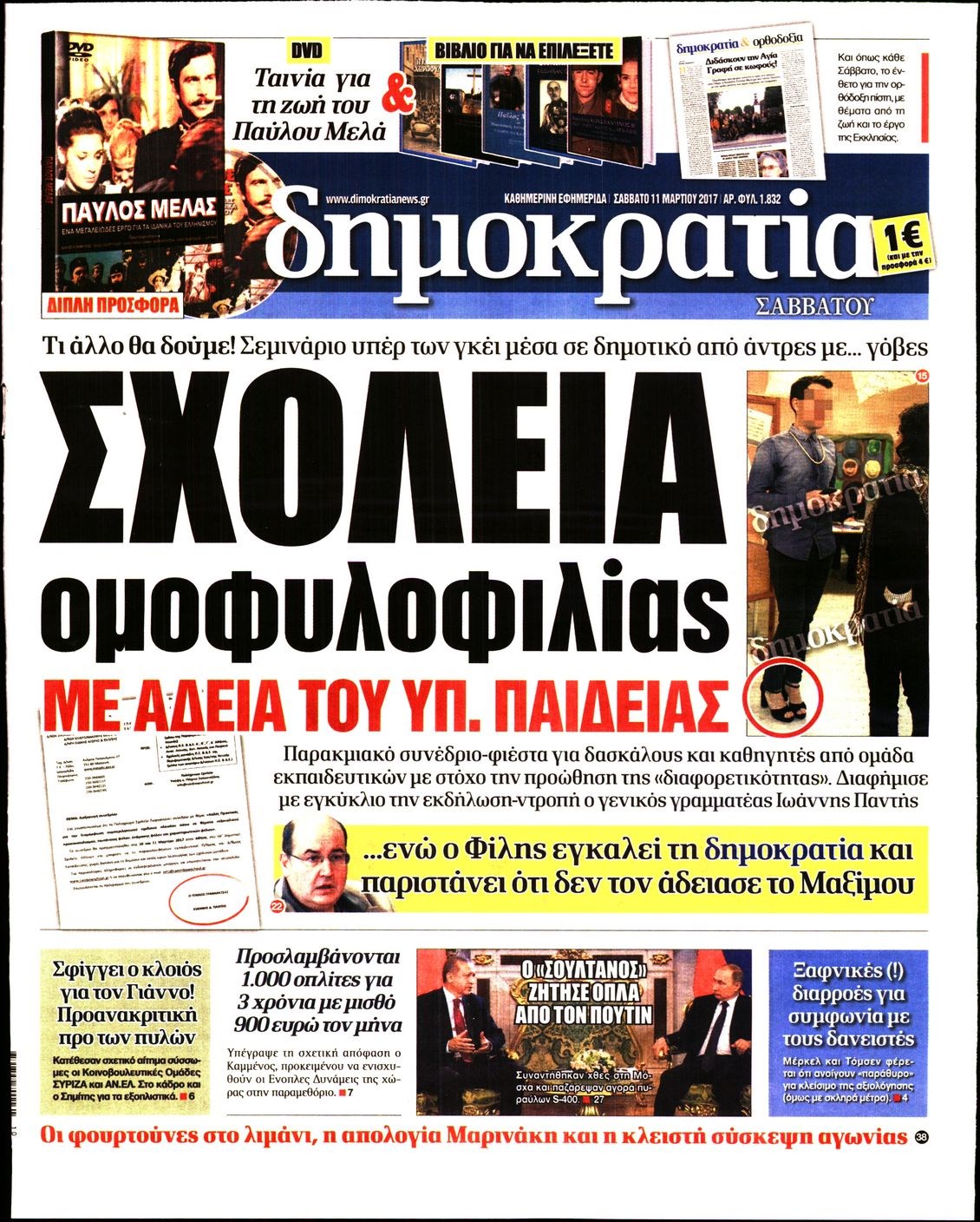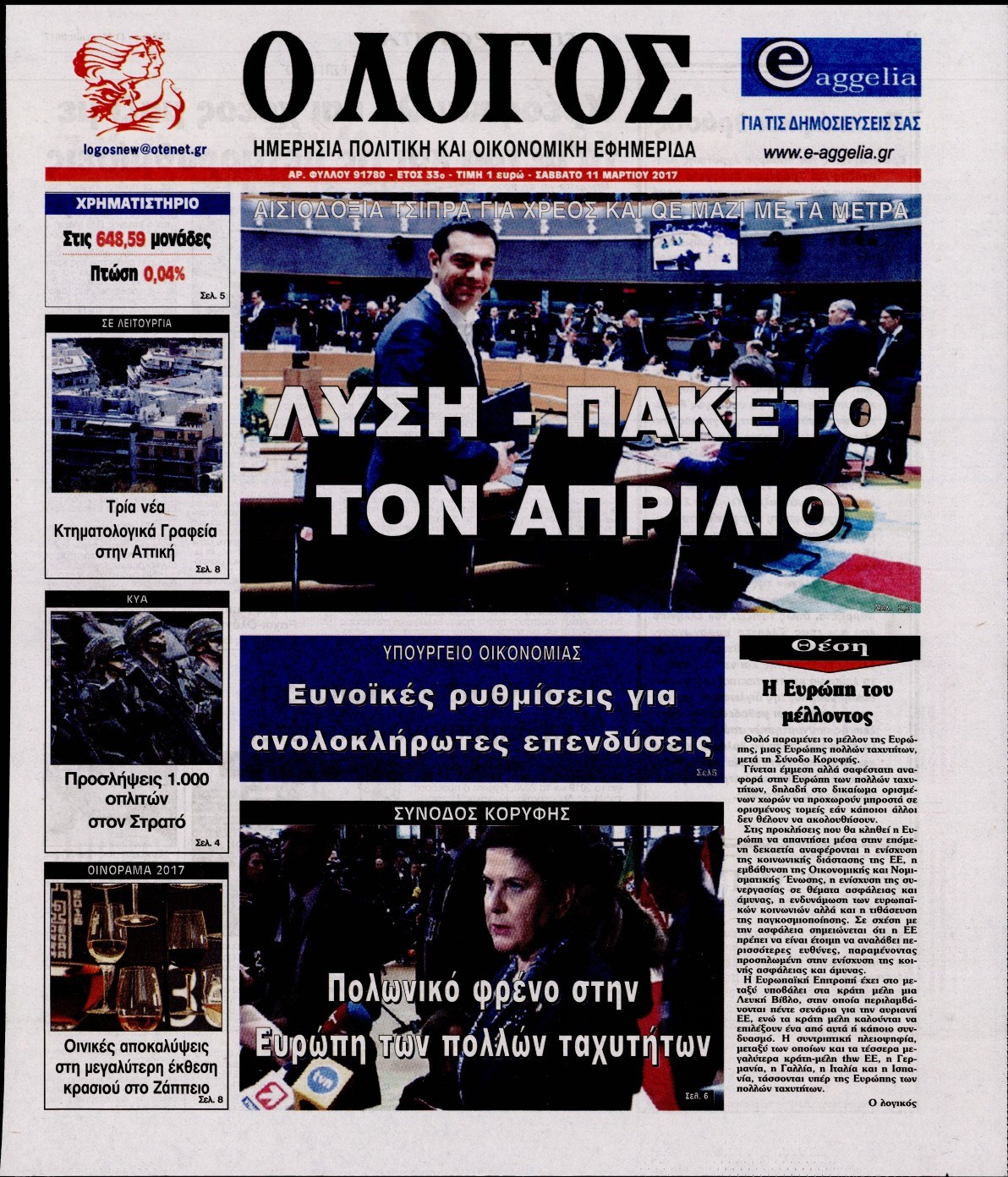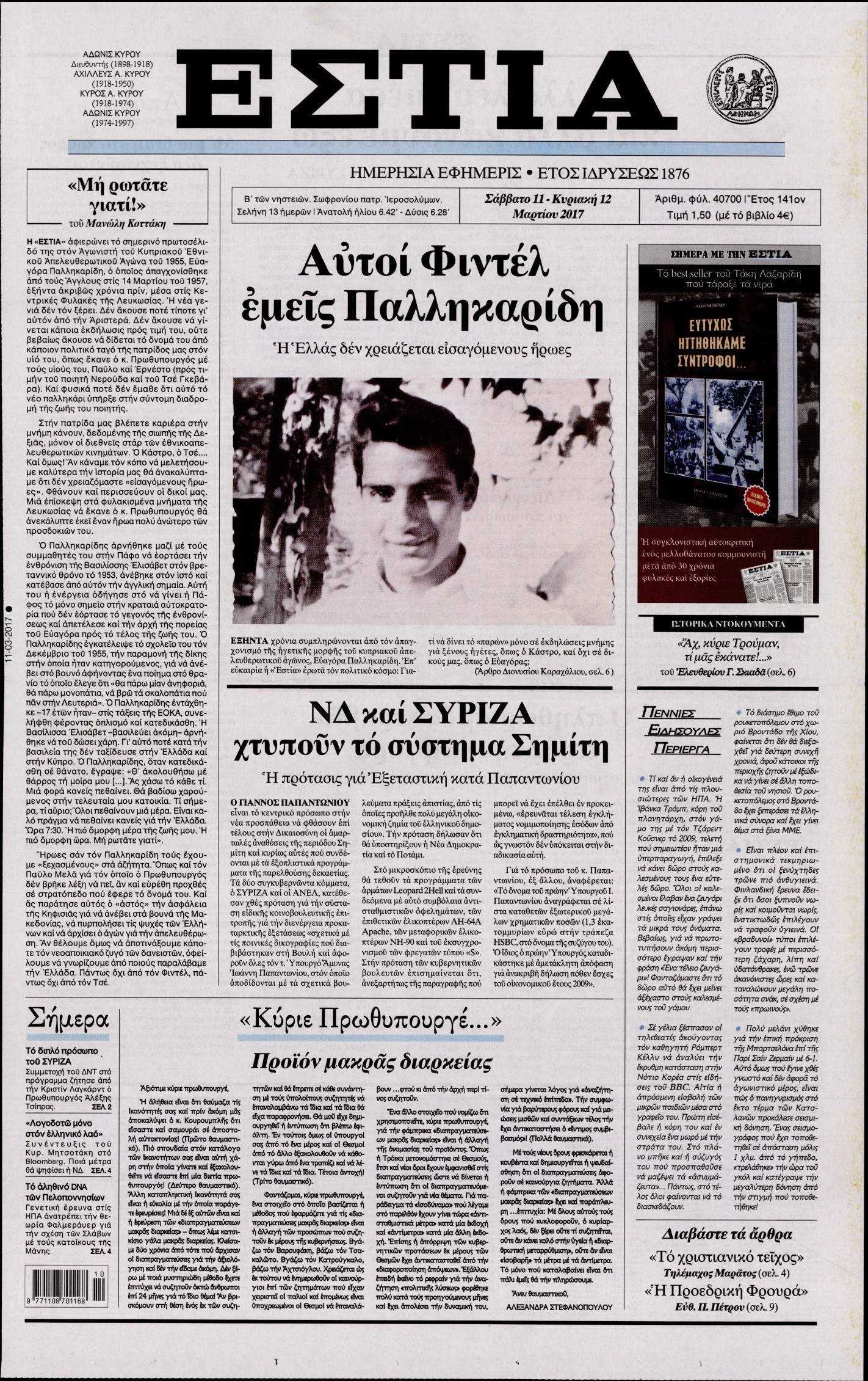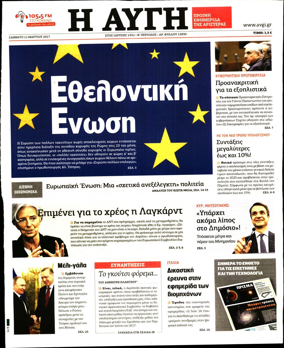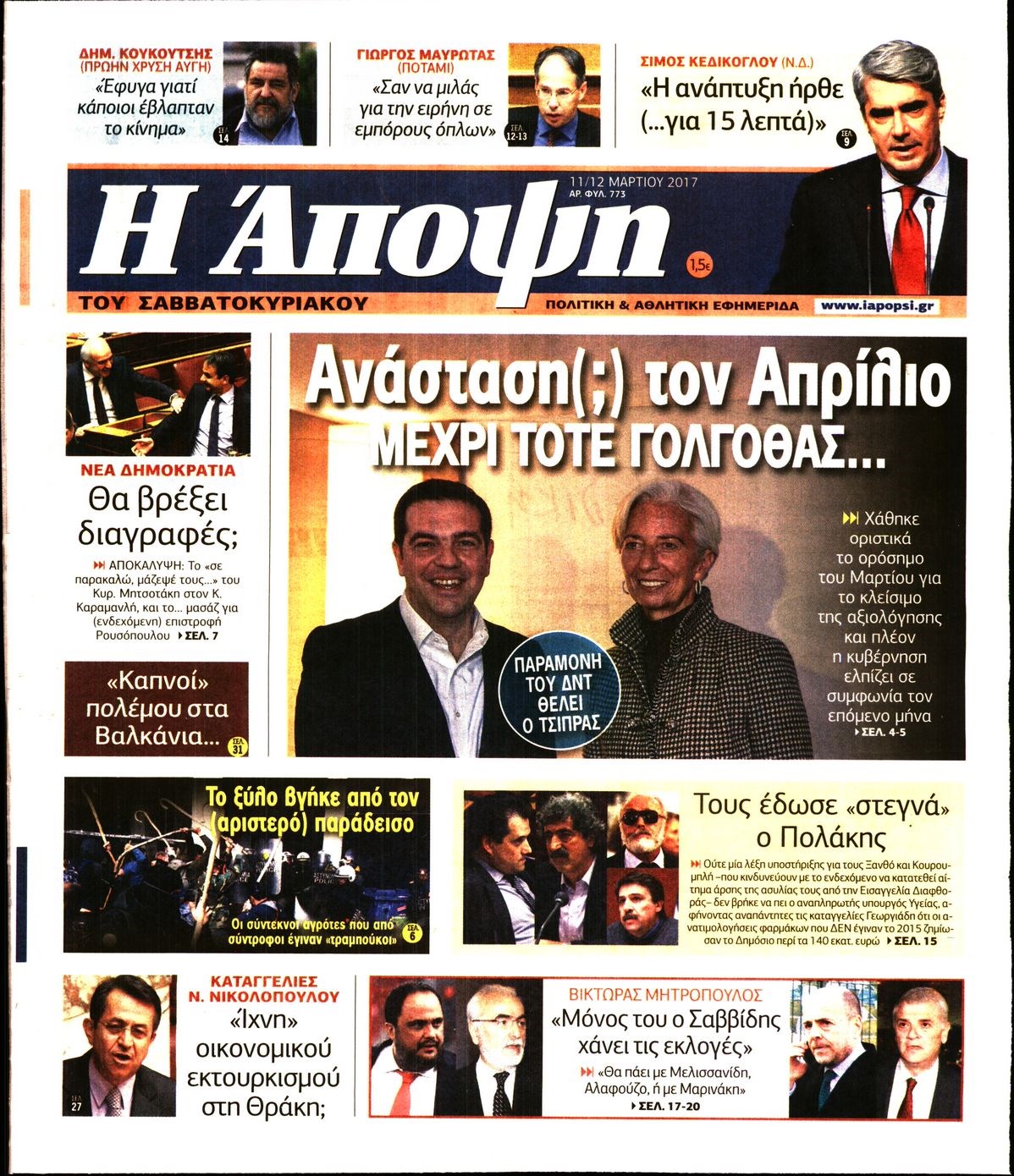 Οι πολιτικές εφημερίδες 11/3/2017 Enikos Newsroom 07:48, Σάββατο 11 Μαρτίου 2017 Media Διαβάστε τα σημερινά πρωτοσέλιδα των πολιτικών εφημερίδων: ΠΟΛΙΤΙΚΕΣ ΕΦΗΜΕΡΙΔΕΣ ΠΡΩΤΟΣΕΛΙΔΑ Μοιράσου το: σχολίασε κι εσύ (0 σχόλια) Ακολουθήστε το enikos.gr στο Google News και μάθετε πρώτοι όλες τις ειδήσεις Δείτε όλες τις τελευταίες ειδήσεις από την Ελλάδα και τον Κόσμο στο enikos.gr Ειδήσεις Ροή Ειδήσεων 5 ώρες πριν Εκτός ευρωομάδας ΣΥΡΙΖΑ ο Νίκος Παππάς μετά την επίθεση στον δημοσιογράφο Νίκο Γιαννόπουλο – Η μήνυση και οι νέες δηλώσεις 6 ώρες πριν «Αγριεύουν» οι αγρότες: «Δεν συντρέχει λόγος συνάντησης με τον πρωθυπουργό» – Ώρα αποφάσεων στη σύσκεψη της Πέμπτης 6 ώρες πριν Κυψέλη: Χωρίς την οικογένειά της δίπλα της απολογήθηκε η 16χρονη – «Της είχε επιτεθεί κάποιος για να την βιάσει, φοβήθηκε και κυκλοφορούσε με μαχαίρι» 5 ώρες πριν Politico: Το πρόβλημα της Ευρώπης δεν είναι το Βέλγιο αλλά ο Ντόναλντ Τραμπ 7 ώρες πριν Αλεξανδρούπολη: Πολυοργανική ανεπάρκεια λόγω υποσιτισμού η αιτία θανάτου του 3χρονου αγοριού 6 ώρες πριν Μυστήριο με τεράστιες κυκλικές πέτρες 200 κιλών – Ανακαλύφθηκαν τυχαία κατά τη διάρκεια οδικών έργων και κανείς δεν ξέρει από πού προέρχονται 7 ώρες πριν Ύπνος: Ειδικός εξηγεί τον πραγματικό λόγο που ξυπνάτε στις 4 τα ξημερώματα – Ο ρόλος των ορμονών και του κιρκάδιου ρυθμού 8 ώρες πριν Αριθμολογία: Οι άνθρωποι που έχουν γεννηθεί αυτές τις 4 ημερομηνίες, είναι τρυφεροί και αγαπούν ανιδιοτελώς 19 ώρες πριν 20 χρόνια τα Χριστούγεννα ξεκινούν στα Public με μεγάλη ποικιλία σε δώρα! 7 λεπτά πριν Κτηνοτρόφοι: Με δάκρυα στα μάτια ζουν τον εφιάλτη των άδειων στάβλων – «Καταστράφηκαν οι ζωές μας» 22 λεπτά πριν Νέο αμερικανικό πλήγμα σε σκάφος που φέρεται να μετέφερε ναρκωτικά στον Ειρηνικό – Τέσσερις νεκροί 37 λεπτά πριν Αλ Τσαντίρι Νιουζ: «Λύγισε» ο Δημήτρης Λάλος για τον Δημήτρη Ήμελλο – «Τον μνημονεύω, να ‘ναι καλά εκεί που είναι» 52 λεπτά πριν GNTM: Με δάκρυα τον αποχαιρέτησε η Ηλιάνα Παπαγεωργίου πριν από τον ημιτελικό – «Αισθάνομαι πολύ παράξενα» 1 ώρα πριν Αμερικανικά στρατεύματα στον Ισημερινό για «προσωρινή» επιχείρηση κατά των ναρκωτικών ENIKOS NETWORK Αϋπνία: Το κόλπο που θα σας βοηθήσει να κοιμηθείτε απόψε – Είναι απλό και έχει αποτέλεσμα 2,6 εκατομμύρια πολίτες έχουν ήδη εμβολιαστεί κατά της γρίπης ΕΛΣΤΑΤ: Τι δείχνουν τα νέα στοιχεία για τις ηλεκτρονικές παραγγελίες των επιχειρήσεων ΚΕΠΕ: Οι 3 διακριτές συμβολές των ΜμΕ και της μεταποίησης στην ελληνική οικονομία Χαρτογραφώντας το «σημείο χωρίς επιστροφή»: Για πρώτη φορά αποκαλύπτεται με λεπτομέρεια το ακανθώδες όριο της ατμόσφαιρας τ... Η Google καταργεί τη λειτουργία «dark web report» – Πώς θα μπορούν οι χρήστες να διαγράφουν τα δεδομένα τους περισσότερα 02:30 , Πέμπτη 18 Δεκεμβρίου 2025 Αλ Τσαντίρι Νιουζ: Η κόρη της Πάολα στο κοινό – Η ατάκα Λαζόπουλου που την έκανε να «κοκκινήσει» Γιορτινή διάθεση και ευχάριστες στιγμές γέμισε η αποψινή, τελευταία για το 2025, εκπομπή του «... 22:24 , Τετάρτη 17 Δεκεμβρίου 2025 Το Σπίτι Δίπλα Στο Ποτάμι: Σε κίνδυνο η υγεία του Απόστολου – Τι θα δούμε απόψε “Το Σπίτι Δίπλα στο Ποτάμι” ξετυλίγει το νήμα της ζωής των πέντε αδελφών με καταισ... 21:14 , Τετάρτη 17 Δεκεμβρίου 2025 Παιχνίδια Εκδίκησης: Θα καταφέρει ο Χρήστος να κλονίσει την εμπιστοσύνη της Μάγιας απέναντι στον Άγη; Τα «Παιχνίδια Εκδίκησης» έρχονται απόψε στις 22:30, στον Αντ1, με το τελευταίο επεισόδιο της χ... 20:57 , Τετάρτη 17 Δεκεμβρίου 2025 Άγιος Έρωτας: Η Χλόη κα