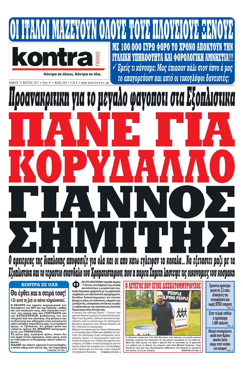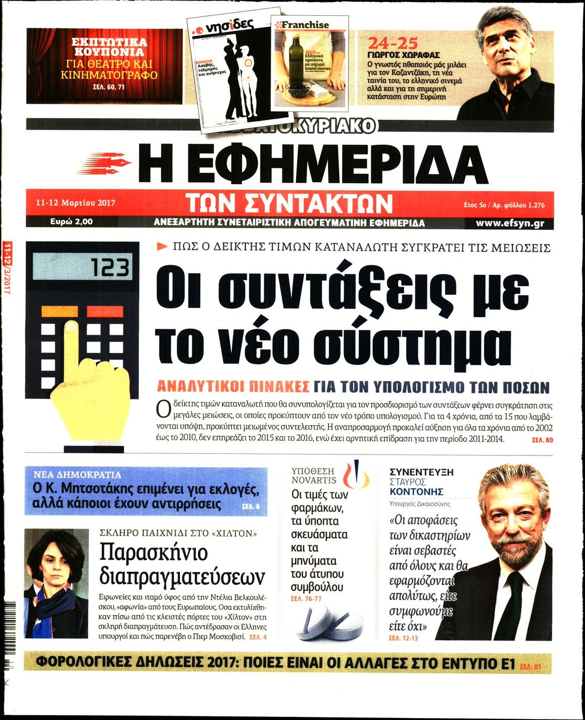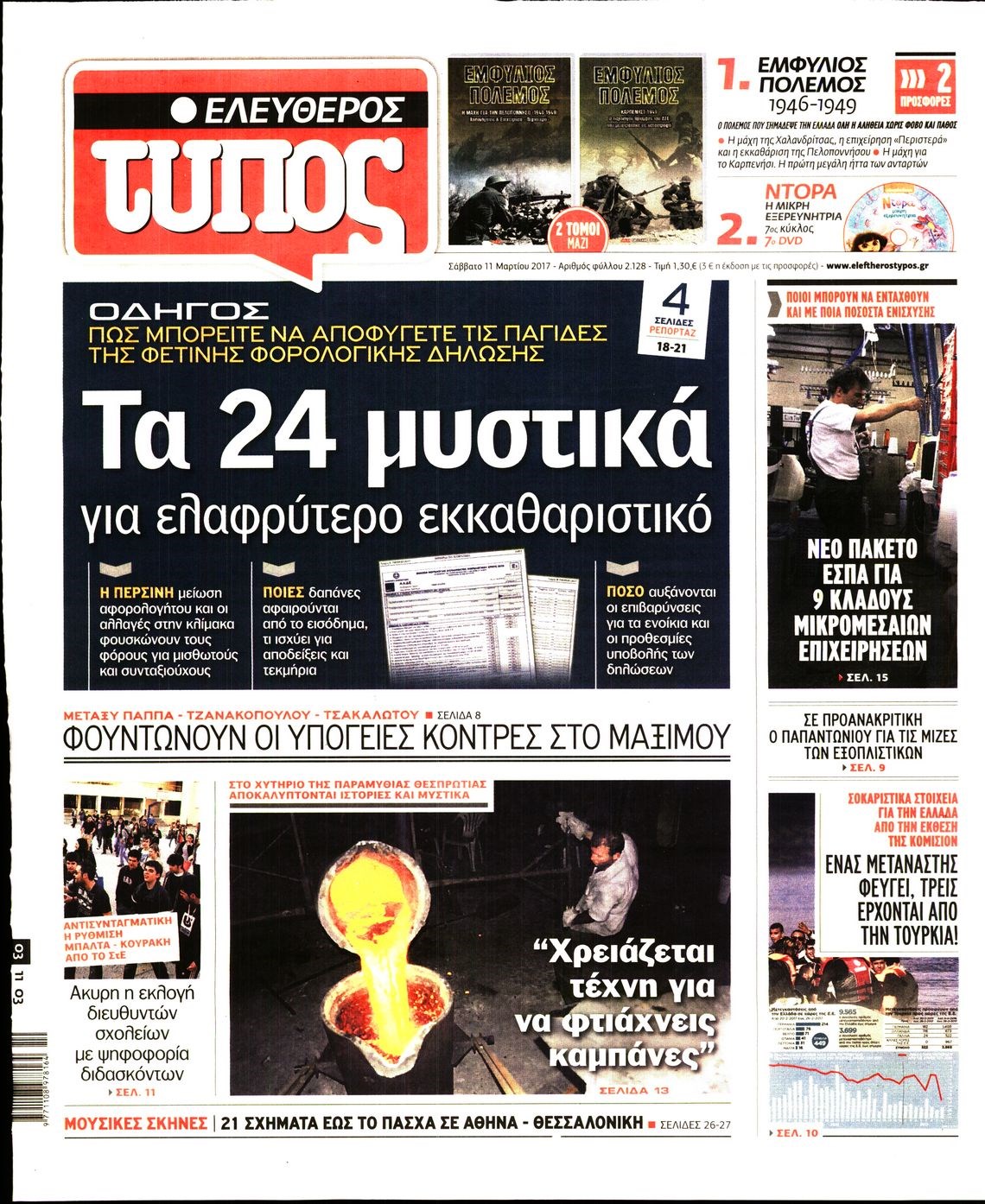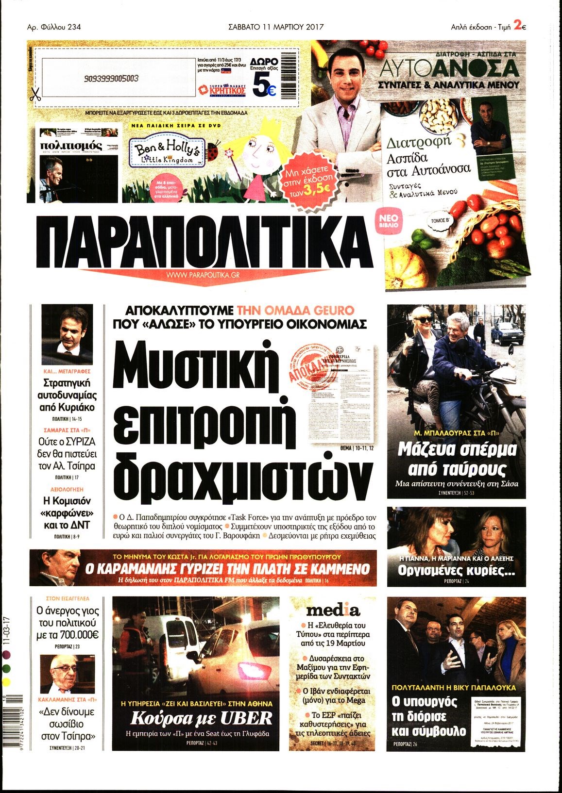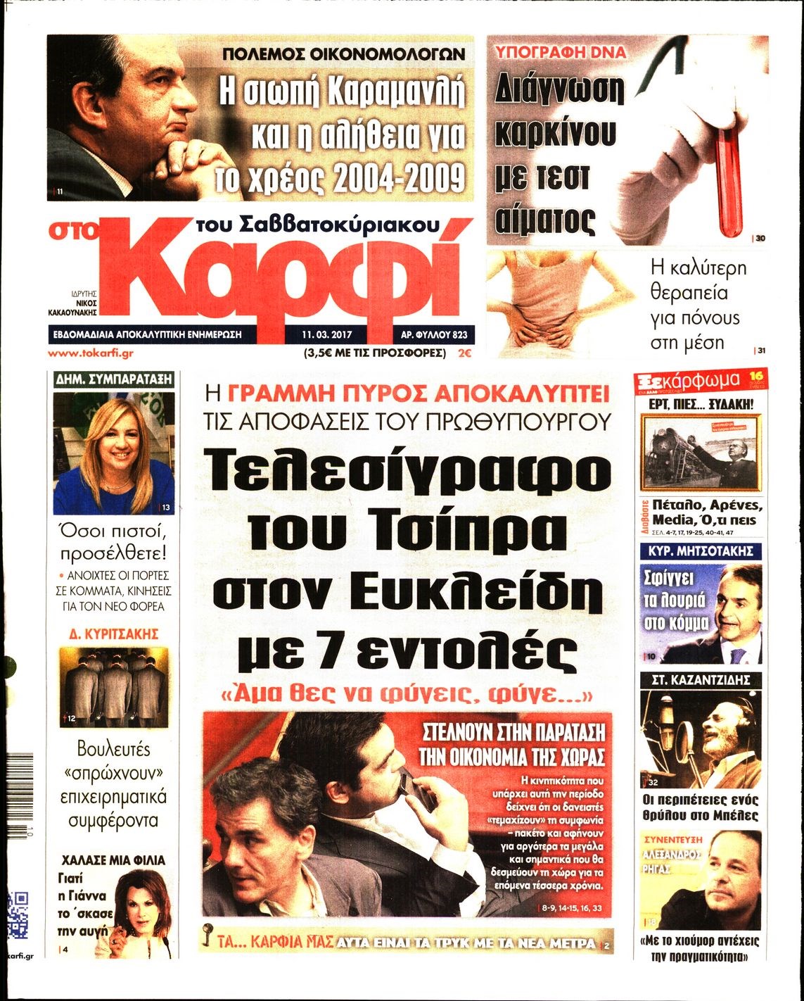 Οι πολιτικές εφημερίδες 11/3/2017 Enikos Newsroom 07:48, Σάββατο 11 Μαρτίου 2017 Media Διαβάστε τα σημερινά πρωτοσέλιδα των πολιτικών εφημερίδων: ΠΟΛΙΤΙΚΕΣ ΕΦΗΜΕΡΙΔΕΣ ΠΡΩΤΟΣΕΛΙΔΑ Μοιράσου το: σχολίασε κι εσύ (0 σχόλια) Ακολουθήστε το enikos.gr στο Google News και μάθετε πρώτοι όλες τις ειδήσεις Δείτε όλες τις τελευταίες ειδήσεις από την Ελλάδα και τον Κόσμο στο enikos.gr Ειδήσεις Ροή Ειδήσεων 5 ώρες πριν Εκτός ευρωομάδας ΣΥΡΙΖΑ ο Νίκος Παππάς μετά την επίθεση στον δημοσιογράφο Νίκο Γιαννόπουλο – Η μήνυση και οι νέες δηλώσεις 6 ώρες πριν «Αγριεύουν» οι αγρότες: «Δεν συντρέχει λόγος συνάντησης με τον πρωθυπουργό» – Ώρα αποφάσεων στη σύσκεψη της Πέμπτης 6 ώρες πριν Κυψέλη: Χωρίς την οικογένειά της δίπλα της απολογήθηκε η 16χρονη – «Της είχε επιτεθεί κάποιος για να την βιάσει, φοβήθηκε και κυκλοφορούσε με μαχαίρι» 5 ώρες πριν Politico: Το πρόβλημα της Ευρώπης δεν είναι το Βέλγιο αλλά ο Ντόναλντ Τραμπ 7 ώρες πριν Αλεξανδρούπολη: Πολυοργανική ανεπάρκεια λόγω υποσιτισμού η αιτία θανάτου του 3χρονου αγοριού 6 ώρες πριν Μυστήριο με τεράστιες κυκλικές πέτρες 200 κιλών – Ανακαλύφθηκαν τυχαία κατά τη διάρκεια οδικών έργων και κανείς δεν ξέρει από πού προέρχονται 7 ώρες πριν Ύπνος: Ειδικός εξηγεί τον πραγματικό λόγο που ξυπνάτε στις 4 τα ξημερώματα – Ο ρόλος των ορμονών και του κιρκάδιου ρυθμού 8 ώρες πριν Αριθμολογία: Οι άνθρωποι που έχουν γεννηθεί αυτές τις 4 ημερομηνίες, είναι τρυφεροί και αγαπούν ανιδιοτελώς 19 ώρες πριν 20 χρόνια τα Χριστούγεννα ξεκινούν στα Public με μεγάλη ποικιλία σε δώρα! 7 λεπτά πριν Κτηνοτρόφοι: Με δάκρυα στα μάτια ζουν τον εφιάλτη των άδειων στάβλων – «Καταστράφηκαν οι ζωές μας» 22 λεπτά πριν Νέο αμερικανικό πλήγμα σε σκάφος που φέρεται να μετέφερε ναρκωτικά στον Ειρηνικό – Τέσσερις νεκροί 37 λεπτά πριν Αλ Τσαντίρι Νιουζ: «Λύγισε» ο Δημήτρης Λάλος για τον Δημήτρη Ήμελλο – «Τον μνημονεύω, να ‘ναι καλά εκεί που είναι» 52 λεπτά πριν GNTM: Με δάκρυα τον αποχαιρέτησε η Ηλιάνα Παπαγεωργίου πριν από τον ημιτελικό – «Αισθάνομαι πολύ παράξενα» 1 ώρα πριν Αμερικανικά στρατεύματα στον Ισημερινό για «προσωρινή» επιχείρηση κατά των ναρκωτικών ENIKOS NETWORK Αϋπνία: Το κόλπο που θα σας βοηθήσει να κοιμηθείτε απόψε – Είναι απλό και έχει αποτέλεσμα 2,6 εκατομμύρια πολίτες έχουν ήδη εμβολιαστεί κατά της γρίπης ΕΛΣΤΑΤ: Τι δείχνουν τα νέα στοιχεία για τις ηλεκτρονικές παραγγελίες των επιχειρήσεων ΚΕΠΕ: Οι 3 διακριτές συμβολές των ΜμΕ και της μεταποίησης στην ελληνική οικονομία Χαρτογραφώντας το «σημείο χωρίς επιστροφή»: Για πρώτη φορά αποκαλύπτεται με λεπτομέρεια το ακανθώδες όριο της ατμόσφαιρας τ... Η Google καταργεί τη λειτουργία «dark web report» – Πώς θα μπορούν οι χρήστες να διαγράφουν τα δεδομένα τους περισσότερα 02:30 , Πέμπτη 18 Δεκεμβρίου 2025 Αλ Τσαντίρι Νιουζ: Η κόρη της Πάολα στο κοινό – Η ατάκα Λαζόπουλου που την έκανε να «κοκκινήσει» Γιορτινή διάθεση και ευχάριστες στιγμές γέμισε η αποψινή, τελευταία για το 2025, εκπομπή του «... 22:24 , Τετάρτη 17 Δεκεμβρίου 2025 Το Σπίτι Δίπλα Στο Ποτάμι: Σε κίνδυνο η υγεία του Απόστολου – Τι θα δούμε απόψε “Το Σπίτι Δίπλα στο Ποτάμι” ξετυλίγει το νήμα της ζωής των πέντε αδελφών με καταισ... 21:14 , Τετάρτη 17 Δεκεμβρίου 2025 Παιχνίδια Εκδίκησης: Θα καταφέρει ο Χρήστος να κλονίσει την εμπιστοσύνη της Μάγιας απέναντι στον Άγη; Τα «Παιχνίδια Εκδίκησης» έρχονται απόψε στις 22:30, στον Αντ1, με το τελευταίο επεισόδιο της χ... 20:57 , Τετάρτη 17 Δεκεμβρίου 2025 Άγιος Έρωτας: Η Χλόη κα