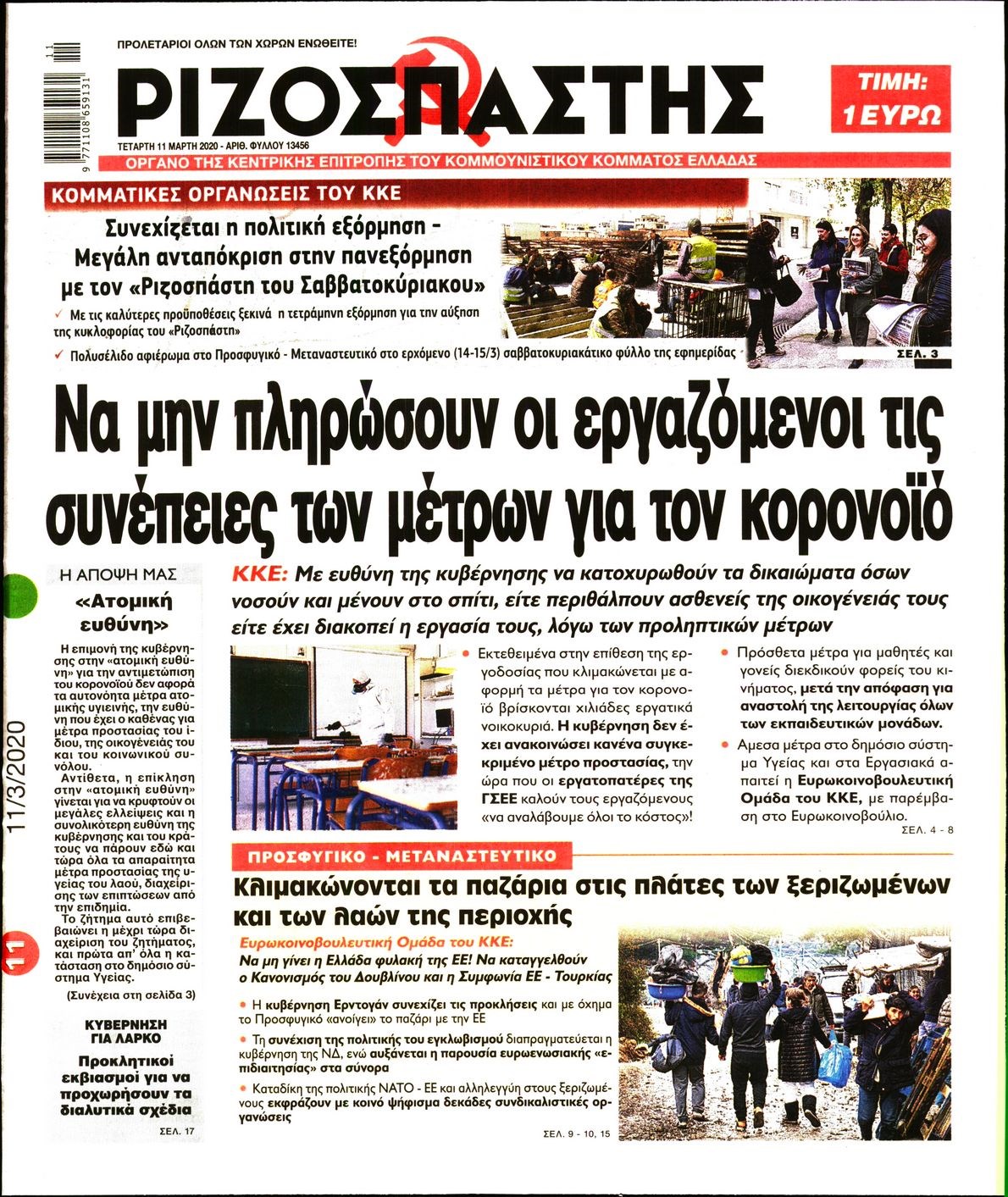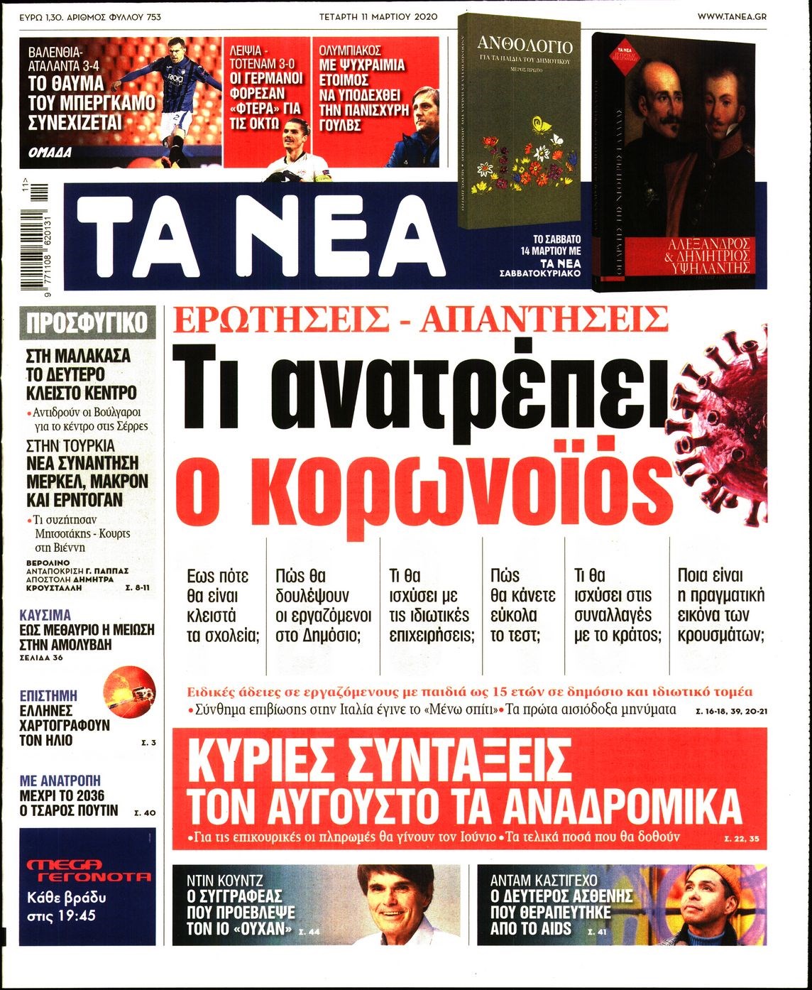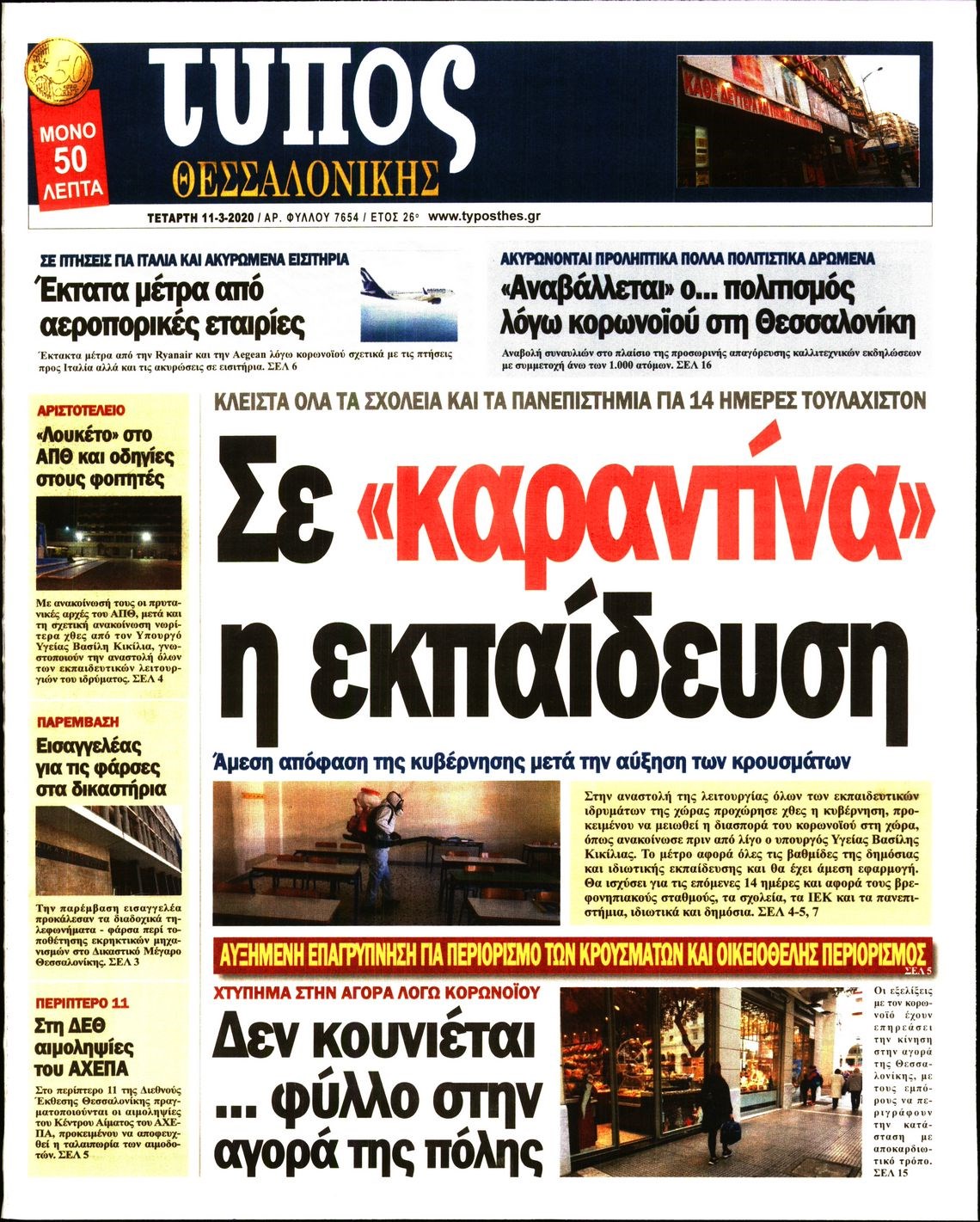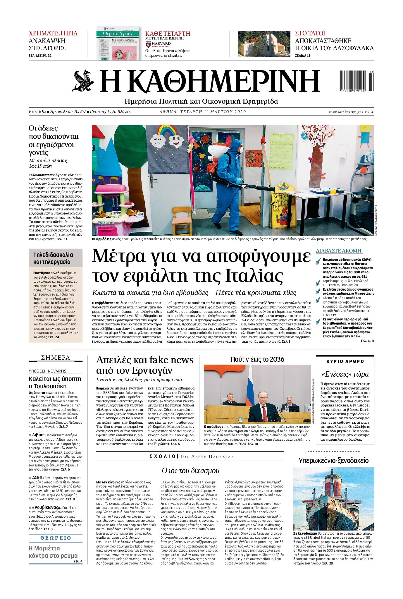 Οι πολιτικές εφημερίδες 11/3/2020 Διονύσης Νίκκας 06:39, Τετάρτη 11 Μαρτίου 2020 Media Διαβάστε τα πρωτοσέλιδα των πολιτικών εφημερίδων… ΠΟΛΙΤΙΚΕΣ ΕΦΗΜΕΡΙΔΕΣ ΠΡΩΤΟΣΕΛΙΔΑ Μοιράσου το: σχολίασε κι εσύ (0 σχόλια) Ακολουθήστε το enikos.gr στο Google News και μάθετε πρώτοι όλες τις ειδήσεις Δείτε όλες τις τελευταίες ειδήσεις από την Ελλάδα και τον Κόσμο στο enikos.gr Ειδήσεις Ροή Ειδήσεων 5 ώρες πριν Χριστούγεννα στα μπλόκα: Επιμένουν στις κινητοποιήσεις τους οι αγρότες – Ανοίγουν τα διόδια το Σαββατοκύριακο 5 ώρες πριν Ουκρανία: Η άνευ προηγουμένου επίθεση σε ρωσικό τάνκερ στη Μεσόγειο και το μήνυμα προς στον Πούτιν – Το «μακρύ χέρι» του Κιέβου 4 ώρες πριν Πούτιν: Τα μηνύματα σε Ευρώπη και ΝΑΤΟ από το μαραθώνιο «σόου» του – Η απαίτηση για «σεβασμό» και η ειρήνη «με τους όρους» της Μόσχας 5 ώρες πριν Τραμπ: Δεν αποκλείει την πιθανότητα ενός πολέμου στη Βενεζουέλα – «Ο Μαδούρο ξέρει καλύτερα από τον καθένα τι ακριβώς θέλω» 6 ώρες πριν Συνεχίζει να προκαλεί ο Μίτσκοσκι: «Για μένα το όνομα Μακεδονία είναι ιερό» 4 ώρες πριν Ανακαλύφθηκαν αρχαία χρυσά νομίσματα 2.200 ετών που απεικονίζουν τον θεό Απόλλωνα – Η άγνωστη σύνδεση με τον Φίλιππο Β΄ της Μακεδονίας 5 ώρες πριν Ύπνος: Μια κρυφή κατάσταση του εγκεφάλου πριν από τον ύπνο μπορεί να είναι το “κλειδί” για υψηλή ευφυΐα και δημιουργικότητα 6 ώρες πριν Αριθμολογία: Οι άνθρωποι που έχουν γεννηθεί αυτές τις 4 ημερομηνίες, συχνά παρεξηγούνται – «Η καλοσύνη τους κρύβει τεράστια δύναμη» 7 ώρες πριν Ξεχάστε το καθάρισμα το Σαββατοκύριακο: Ο «κανόνας των 20 λεπτών» που θα σας λύσει τα χέρια 2 λεπτά πριν Ταμίλα Κουλίεβα: «Δεν θέλω να είμαι κάποια που πορεύεται συνεχώς με τις ίδιες αναφορές» 17 λεπτά πριν Η Ελλάδα προσχωρεί στη Διεθνή Επιτροπή Αποζημιώσεων για την Ουκρανία 32 λεπτά πριν GNTM: Η Ξένια Τσίρκοβα αναδείχθηκε μεγάλη νικήτρια και πήρε τις 50.000 ευρώ – Ποιος βρέθηκε σε απόσταση αναπνοής; 47 λεπτά πριν Θεσσαλονίκη: Εξαφανίστηκε 13χρονος από χώρο φιλοξενίας ασυνόδευτων ανηλίκων στο Ωραιόκαστρο 57 λεπτά πριν Ντόναλντ Τραμπ: «Πολύ βαριά αντίποινα» στη Συρία – «Πλήττουμε πολύ δυνατά οχυρά του Ισλαμικού Κράτους» ENIKOS NETWORK Το ΕΚΑΒ τιμήθηκε από την Ακαδημία Αθηνών για τα 40 χρόνια προσφοράς του Έχετε πραγματικά μεγάλη καρδιά; 10 χαρακτηριστικά όσων έχουν καλοσύνη Αναστολή μέτρων αναγκαστικής εκτέλεσης για κτηνοτρόφους που πλήττονται από την ευλογιά των αιγοπροβάτων Πλήρης επάρκεια προϊόντων στις λαϊκές της Αττικής, παρά τις αγροτικές κινητοποιήσεις – Τι απαντούν οι πωλητές Χαρτογραφώντας το «σημείο χωρίς επιστροφή»: Για πρώτη φορά αποκαλύπτεται με λεπτομέρεια το ακανθώδες όριο της ατμόσφαιρας τ... Η Google καταργεί τη λειτουργία «dark web report» – Πώς θα μπορούν οι χρήστες να διαγράφουν τα δεδομένα τους περισσότερα 02:50 , Σάββατο 20 Δεκεμβρίου 2025 GNTM: Η Ξένια Τσίρκοβα αναδείχθηκε μεγάλη νικήτρια και πήρε τις 50.000 ευρώ – Ποιος βρέθηκε σε απόσταση αναπνοής; Με φαντασμαγορικό τρόπο ολοκληρώθηκε το βράδυ της Παρασκευής ο μεγάλος τελικός του GNTM, μέσα ... 22:42 , Παρασκευή 19 Δεκεμβρίου 2025 Γιώργος Γιαννόπουλος για “Το σόι σου”: “Είναι ευτυχία και ευλογία αυτή η σειρά” «Είναι ευτυχία και ευλογία η συγκυρία αυτής της σειράς», θα πει ο Γιώργος Γιαννόπουλος -ο αγαπ... 20:37 , Παρασκευή 19 Δεκεμβρίου 2025 Don’t Forget The Lyrics: Η Έλλη Κοκκίνου υποδέχεται 4 παίκτες που θα κάνουν τα πάντα για να μη χάσουν ούτε… μισή λέξη από τους στίχους Το «Don’t Forget The Lyrics» επιστρέφει απόψε, 