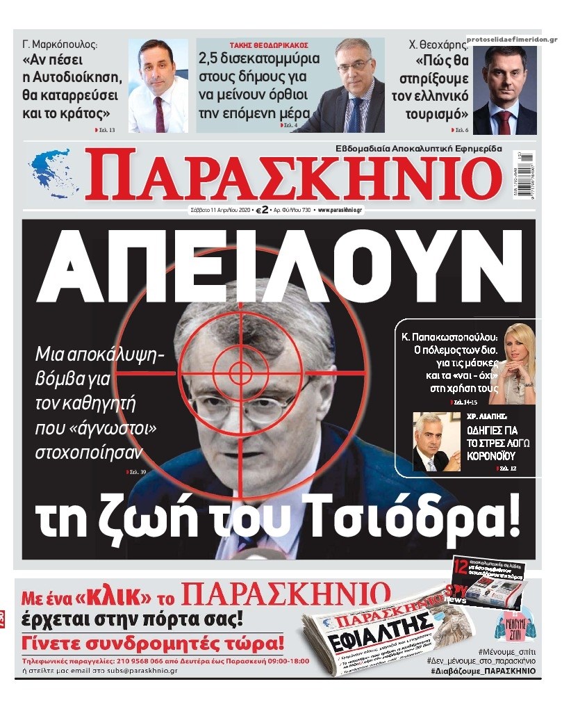 Οι πολιτικές εφημερίδες 11/4/2020 Διονύσης Νίκκας 07:04, Σάββατο 11 Απριλίου 2020 Media Διαβάστε τα πρωτοσέλιδα των πολιτικών εφημερίδων… ΠΟΛΙΤΙΚΕΣ ΕΦΗΜΕΡΙΔΕΣ ΠΡΩΤΟΣΕΛΙΔΑ Μοιράσου το: σχολίασε κι εσύ (0 σχόλια) Ακολουθήστε το enikos.gr στο Google News και μάθετε πρώτοι όλες τις ειδήσεις Δείτε όλες τις τελευταίες ειδήσεις από την Ελλάδα και τον Κόσμο στο enikos.gr Ειδήσεις Ροή Ειδήσεων 53 λεπτά πριν Χριστούγεννα στα μπλόκα: Επιμένουν στις κινητοποιήσεις τους οι αγρότες – Ανοίγουν τα διόδια το Σαββατοκύριακο 1 ώρα πριν Ουκρανία: Η άνευ προηγουμένου επίθεση σε ρωσικό τάνκερ στη Μεσόγειο και το μήνυμα προς στον Πούτιν – Το «μακρύ χέρι» του Κιέβου 30 λεπτά πριν Πούτιν: Τα μηνύματα σε Ευρώπη και ΝΑΤΟ από το μαραθώνιο «σόου» του – Η απαίτηση για «σεβασμό» και η ειρήνη «με τους όρους» της Μόσχας 1 ώρα πριν Τραμπ: Δεν αποκλείει την πιθανότητα ενός πολέμου στη Βενεζουέλα – «Ο Μαδούρο ξέρει καλύτερα από τον καθένα τι ακριβώς θέλω» 2 ώρες πριν Συνεχίζει να προκαλεί ο Μίτσκοσκι: «Για μένα το όνομα Μακεδονία είναι ιερό» 4 ώρες πριν Πούτιν: «Ναι, είμαι ερωτευμένος» – Βίντεο από τη σπάνια προσωπική παραδοχή του 3 ώρες πριν Αριθμολογία: Οι άνθρωποι που έχουν γεννηθεί αυτές τις 4 ημερομηνίες, συχνά παρεξηγούνται – «Η καλοσύνη τους κρύβει τεράστια δύναμη» 2 ώρες πριν Ύπνος: Μια κρυφή κατάσταση του εγκεφάλου πριν από τον ύπνο μπορεί να είναι το “κλειδί” για υψηλή ευφυΐα και δημιουργικότητα 4 ώρες πριν Ξεχάστε το καθάρισμα το Σαββατοκύριακο: Ο «κανόνας των 20 λεπτών» που θα σας λύσει τα χέρια 31 λεπτά πριν Ανακαλύφθηκαν αρχαία χρυσά νομίσματα 2.200 ετών που απεικονίζουν τον θεό Απόλλωνα – Η άγνωστη σύνδεση με τον Φίλιππο Β΄ της Μακεδονίας 47 δευτερόλεπτα πριν Γάζα: Ισραηλινό πλήγμα σε σχολείο που είχαν καταφύγει εκτοπισμένοι – Τουλάχιστον έξι νεκροί 15 λεπτά πριν Ολυμπιακός – Βιλερμπάν 107-84: Επιστροφή στις νίκες με… προπόνηση 21 λεπτά πριν Νέος Κόσμος: Συνελήφθη 41χρονος με ένταλμα από την Τουρκία για εμπόριο ναρκωτικών και ληστεία 30 λεπτά πριν Πούτιν: Τα μηνύματα σε Ευρώπη και ΝΑΤΟ από το μαραθώνιο «σόου» του – Η απαίτηση για «σεβασμό» και η ειρήνη «με τους όρους» της Μόσχας 31 λεπτά πριν Ανακαλύφθηκαν αρχαία χρυσά νομίσματα 2.200 ετών που απεικονίζουν τον θεό Απόλλωνα – Η άγνωστη σύνδεση με τον Φίλιππο Β΄ της Μακεδονίας ENIKOS NETWORK Το ΕΚΑΒ τιμήθηκε από την Ακαδημία Αθηνών για τα 40 χρόνια προσφοράς του Έχετε πραγματικά μεγάλη καρδιά; 10 χαρακτηριστικά όσων έχουν καλοσύνη Αναστολή μέτρων αναγκαστικής εκτέλεσης για κτηνοτρόφους που πλήττονται από την ευλογιά των αιγοπροβάτων Πλήρης επάρκεια προϊόντων στις λαϊκές της Αττικής, παρά τις αγροτικές κινητοποιήσεις – Τι απαντούν οι πωλητές Χαρτογραφώντας το «σημείο χωρίς επιστροφή»: Για πρώτη φορά αποκαλύπτεται με λεπτομέρεια το ακανθώδες όριο της ατμόσφαιρας τ... Η Google καταργεί τη λειτουργία «dark web report» – Πώς θα μπορούν οι χρήστες να διαγράφουν τα δεδομένα τους περισσότερα 22:42 , Παρασκευή 19 Δεκεμβρίου 2025 Γιώργος Γιαννόπουλος για “Το σόι σου”: “Είναι ευτυχία και ευλογία αυτή η σειρά” «Είναι ευτυχία και ευλογία η συγκυρία αυτής της σειράς», θα πει ο Γιώργος Γιαννόπουλος -ο αγαπ... 20:37 , Παρασκευή 19 Δεκεμβρίου 2025 Don’t Forget The Lyrics: Η Έλλη Κοκκίνου υποδέχεται 4 παίκτες που θα κάνουν τα πάντα για να μη χάσουν ούτε… μισή λέξη από τους στίχους Το «Don’t Forget The Lyrics» επιστρέφει απόψε, Παρασκευή 19 Δεκεμβρίου, στις 21:00 με νέο επει... 19:31 , Παρασκευή 19 Δεκεμβρίου 2025 G