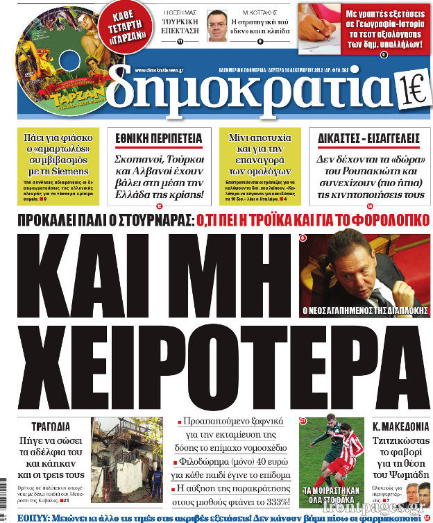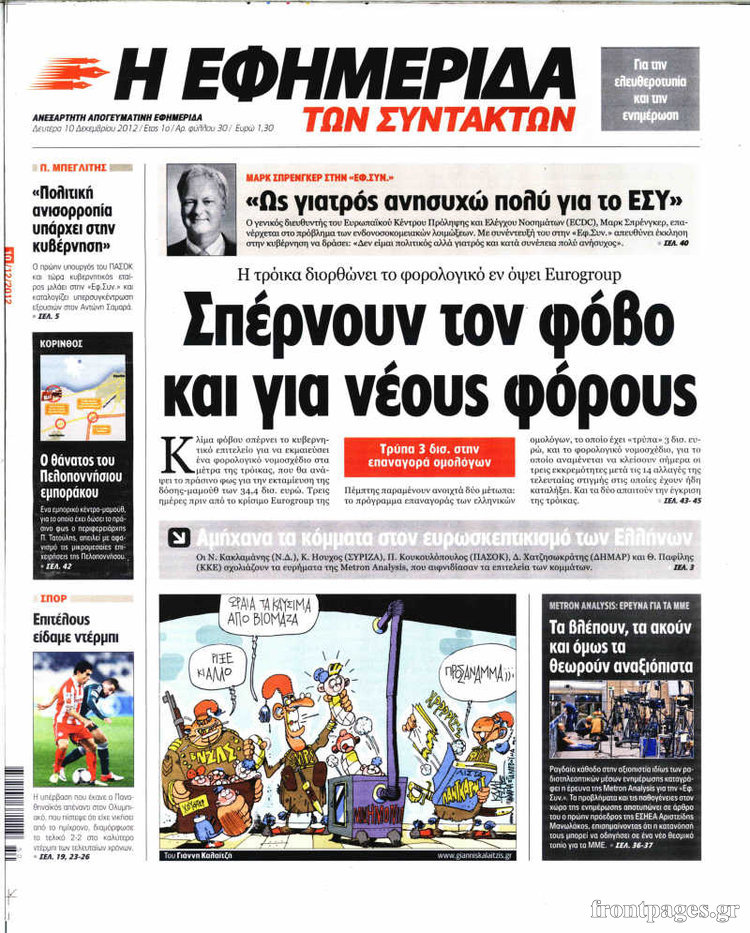 Οι πολιτικές εφημερίδες Enikos Newsroom 09:15, Δευτέρα 10 Δεκεμβρίου 2012 Media Οι πολιτικές εφημερίδες Τα σημερινά πρωτοσέλιδα των πολιτικών εφημερίδων. ΕΦΗΜΕΡΙΔΕΣ ΟΙ ΠΟΛΙΤΙΚΕΣ ΕΦΗΜΕΡΙΔΕΣ ΠΡΩΤΟΣΕΛΙΔΑ Μοιράσου το: σχολίασε κι εσύ (0 σχόλια) Ακολουθήστε το enikos.gr στο Google News και μάθετε πρώτοι όλες τις ειδήσεις Δείτε όλες τις τελευταίες ειδήσεις από την Ελλάδα και τον Κόσμο στο enikos.gr Ειδήσεις Ροή Ειδήσεων 42 λεπτά πριν Αγρότες: Σήκωσαν τις μπάρες στα διόδια των Αφιδνών – ΦΩΤΟ και ΒΙΝΤΕΟ 4 ώρες πριν Διάλογοι-σοκ από το κύκλωμα που διακινούσε ναρκωτικά σε σχολεία – «Αν δεν είσαι εκεί σε 5 λεπτά, θα φας πολύ ξύλο μπρο» 1 ώρα πριν Κωνσταντίνος Ανεστίδης: «Είμαι αθώος, είμαι καθαρός σαν αστραπή και η αστραπή θα πέσει στο κεφάλι τους» – ΒΙΝΤΕΟ 2 ώρες πριν Εγκαινιάστηκε ο αρχαιολογικός χώρος του Ανακτόρου της Πέλλας – Παρουσιάστηκαν για πρώτη φορά δύο ελληνιστικά αγάλματα 2 ώρες πριν Δήμος Αθηναίων: Ξεκινά τη Δευτέρα η επιστροφή πινακίδων οχημάτων από τη Δημοτική Αστυνομία 4 ώρες πριν Αν ανήκετε σε ένα από αυτά τα 3 ζώδια, το 2026 θα είναι η χρονιά σας – «Η ζωή σας βελτιώνεται σε όλους τους τομείς» 49 λεπτά πριν Είσοδος σπιτιού: Πώς να οργανώσετε το χώρο πριν έρθουν οι καλεσμένοι σας – Η ρουτίνα 3 βημάτων 5 ώρες πριν Ένα πλάσμα στα βάθη της θάλασσας απορροφά άνθρακα από την ατμόσφαιρα – «Δεν είχαμε ιδέα για την ύπαρξή του» 1 ημέρα πριν Enerwave: Το νέο «ρεύμα» στη λιανική ενέργειας που αλλάζει την εμπειρία του καταναλωτή 11 λεπτά πριν Πέθανε ο πρωτοπόρος οινοποιός Νίκος Λαζαρίδης 22 λεπτά πριν Ανυποχώρητοι οι αγρότες στα μπλόκα της Δυτικής Θεσσαλίας – «Δεν πρόκειται να κάνουμε πίσω» 31 λεπτά πριν Μακρόν: Η Γαλλία θα ναυπηγήσει ένα μεγαλύτερο και πιο σύγχρονο αεροπλανοφόρο που θα αντικαταστήσει το «Charles De Gaulle» 42 λεπτά πριν Αγρότες: Σήκωσαν τις μπάρες στα διόδια των Αφιδνών – ΦΩΤΟ και ΒΙΝΤΕΟ 49 λεπτά πριν Είσοδος σπιτιού: Πώς να οργανώσετε το χώρο πριν έρθουν οι καλεσμένοι σας – Η ρουτίνα 3 βημάτων ENIKOS NETWORK Οι γυναίκες έχουν βρει μια νέα απόλαυση στην κρεβατοκάμαρα που οι περισσότεροι άνδρες αγνοούν Christmas glow: 5 χρυσές συμβουλές για επιδερμίδα που λάμπει από ομορφιά τα Χριστούγεννα Νέα έρευνα: Οκτώ στους δέκα Έλληνες αγοράζουν από online πλατφόρμες χωρών εκτός ΕΕ – Temu και Shein οι κορυφαίες επιλογές Αττική: Πού μπήκαν οι πρώτες «έξυπνες κάμερες» – Πώς θα φτάνει η κλήση στους παραβάτες Χαρτογραφώντας το «σημείο χωρίς επιστροφή»: Για πρώτη φορά αποκαλύπτεται με λεπτομέρεια το ακανθώδες όριο της ατμόσφαιρας τ... Η Google καταργεί τη λειτουργία «dark web report» – Πώς θα μπορούν οι χρήστες να διαγράφουν τα δεδομένα τους περισσότερα 17:18 , Κυριακή 21 Δεκεμβρίου 2025 «Η Μεγάλη Χίμαιρα»: Μάγεψε το κοινό κατά την avant-première της προβολής της Την Πρωτοχρονιά (Πέμπτη 1η Ιανουαρίου 2026) στο ERTFLIX θα γίνει η πρεμιέρα της πολυαναμενόμεν... 15:08 , Κυριακή 21 Δεκεμβρίου 2025 Μια νύχτα μόνο: Η Αρετή και ο Οδυσσέας έρχονται και πάλι κοντά Το νέο επεισόδιο της δραματικής σειράς του MEGA «Μια νύχτα μόνο», θα προβληθεί απόψε Κυριακή 2... 14:24 , Κυριακή 21 Δεκεμβρίου 2025 IQ 160: Ο φάκελος με το τεστ πατρότητας ανοίγει, απόψε στις 21:00 στο Star Ανατρεπτικό το νέο διπλό επεισόδιο της σειράς “IQ 160” στις 21:00 στο Star. Ο Τηλέ... 09:43 , Κυριακή 21 Δεκεμβρίου 2025 Το λάθος στην ταινία Die Hard που άφησε άναυδους τους θαυμαστές του Μπρους Γουίλις Ένας φανατικός των ταινιών άφησε άναυδους τους θαυμαστές του Die Hard, επισημαίνοντας τρία βασ... ΤΕΛΕΥΤΑΙΕΣ ΕΙΔΗΣΕΙΣ 11 λεπτά πρ