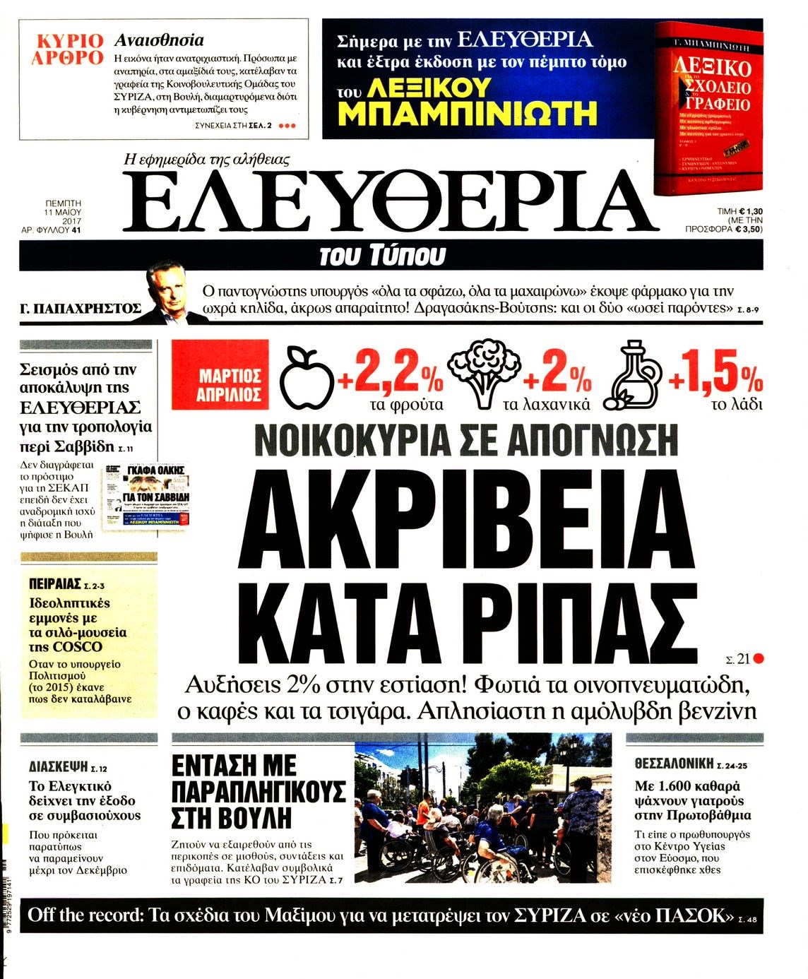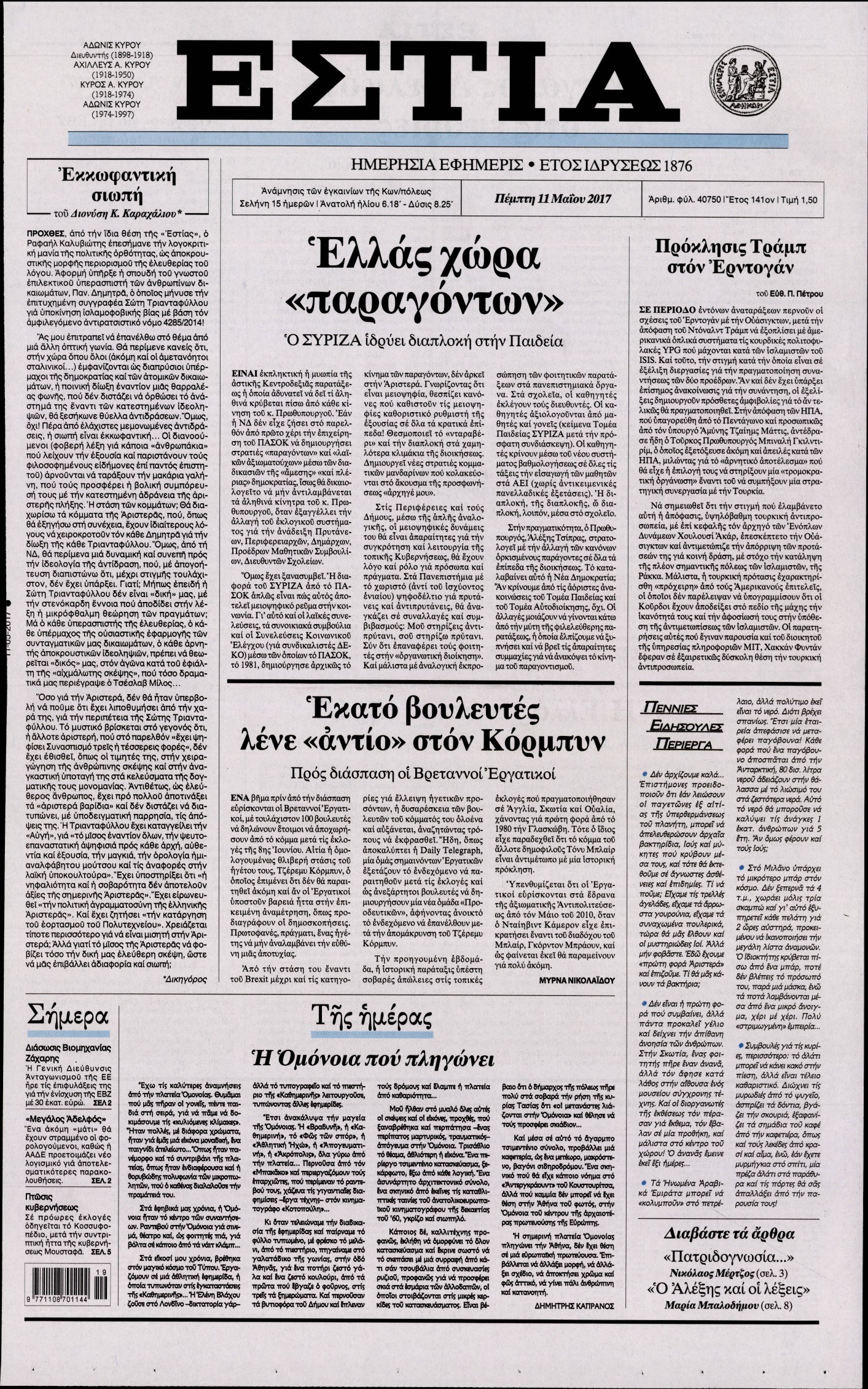 Οι πολιτικές εφημερίδες 11/5/2017 Enikos Newsroom 07:05, Πέμπτη 11 Μαΐου 2017 Media Διαβάστε τα σημερινά πρωτοσέλιδα των πολιτικών εφημερίδων: ΠΟΛΙΤΙΚΕΣ ΕΦΗΜΕΡΙΔΕΣ ΠΡΩΤΟΣΕΛΙΔΑ Μοιράσου το: σχολίασε κι εσύ (0 σχόλια) Ακολουθήστε το enikos.gr στο Google News και μάθετε πρώτοι όλες τις ειδήσεις Δείτε όλες τις τελευταίες ειδήσεις από την Ελλάδα και τον Κόσμο στο enikos.gr Ειδήσεις Ροή Ειδήσεων 1 ώρα πριν Ευρωπαϊκή Ένωση: Συμφωνία για δάνειο 90 δισ. ευρώ στην Ουκρανία τη διετία 2026-2027 6 ώρες πριν ΟΠΕΚΕΠΕ: Προφυλακιστέος ο φερόμενος αρχηγός και ο λογιστής της εγκληματικής οργάνωσης 7 ώρες πριν Αυξάνουν την πίεση προς την κυβέρνηση οι αγρότες: Κλείνουν παρακαμπτήριους και ανοίγουν διόδια – Τι θα γίνει τις γιορτές 7 ώρες πριν Φοινικούντα: Το Σάββατο απολογείται ο 30χρονος γιος γνωστού επιχειρηματία της Πλάκας που παραδόθηκε – Όσα είπε στους αστυνομικούς και ο ρόλος του στο έγκλημα 5 ώρες πριν ΑΕΚ – Κραϊόβα 3-2: Επική ανατροπή και πρόκριση στους «16» του Conference League η Ένωση 7 ώρες πριν Αρχαιολόγοι ανακάλυψαν ρωμαϊκά τεχνουργήματα από μια πόλη που δεν υπήρξε ποτέ – Τα τρία εντυπωσιακά κτίρια και ο αμφορέας με τις… σαρδέλες 8 ώρες πριν Ύπνος: Η απλή βραδινή ρουτίνα για να προστατεύσετε τα μαλλιά σας από το κρύο κατά τη διάρκεια του χειμώνα 9 ώρες πριν Manifesting: Πώς να συναντήσετε τον σύντροφο της ζωής σας, ανάλογα με τον μήνα γέννησής σας 2 ημέρες πριν 20 χρόνια τα Χριστούγεννα ξεκινούν στα Public με μεγάλη ποικιλία σε δώρα! 2 λεπτά πριν Τα ζώδια σήμερα, Παρασκευή 19 Δεκεμβρίου: Τοξότες, με τη Νέα Σελήνη έρχεται η προσωπική ανανέωσή σας 10 λεπτά πριν Εφημερεύοντα φαρμακεία σε Αθήνα και Θεσσαλονίκη (19/12) 17 λεπτά πριν Η TikTok στις ΗΠΑ πωλείται σε Oracle, Silver Lake και MGX – Οι λεπτομέρειες του «deal» 25 λεπτά πριν Αλεξάντερ Λουκασένκο: Η Λευκορωσία βρίσκεται κοντά στην αποκατάσταση των σχέσεών της με τις ΗΠΑ 40 λεπτά πριν Αυστραλία: Κήρυξε την Κυριακή (21/12) ημέρα εθνικού πένθους για τη φονική επίθεση στην παραλία Μπόνταϊ ENIKOS NETWORK Σε περίοδο αυξημένης δραστηριότητας η γρίπη στην Ελλάδα-Μέτρα προστασίας από τον ΕΟΔΥ Σκέφτεστε συνέχεια συζητήσεις που έχετε κάνει; Τι σημαίνει αυτό, σύμφωνα με ειδικό Στεγαστικό: Τι λέει η ΠΟΜΙΔΑ για τα νέα μέτρα που ανακοίνωσε ο Κυριάκος Μητσοτάκης Λαγκάρντ: Αισιόδοξη για την ανάπτυξη της Ευρωζώνης, αβέβαιη για τον πληθωρισμό Χαρτογραφώντας το «σημείο χωρίς επιστροφή»: Για πρώτη φορά αποκαλύπτεται με λεπτομέρεια το ακανθώδες όριο της ατμόσφαιρας τ... Η Google καταργεί τη λειτουργία «dark web report» – Πώς θα μπορούν οι χρήστες να διαγράφουν τα δεδομένα τους περισσότερα 02:50 , Παρασκευή 19 Δεκεμβρίου 2025 GNTM: «Κλείδωσαν» οι τέσσερις φιναλίστ – Μεγάλη ανατροπή στις τελευταίες αποχωρήσεις Για προτελευταία φορά εμφανίστηκαν στο πλατό του GNTM οι φιναλίστ του φετινού κύκλου, το βράδυ... 17:45 , Πέμπτη 18 Δεκεμβρίου 2025 ROUK ZOUK: Εορταστικό επεισόδιο με καλεσμένους τους πρωταγωνιστές του «Γιατί ρε πατέρα» Το Σάββατο 20 Δεκεμβρίου στις 21:00, η Ζέτα Μακρυπούλια υποδέχεται εκλεκτούς ηθοποιούς που όλο... 17:20 , Πέμπτη 18 Δεκεμβρίου 2025 Άγιος έρωτας: Η Χριστίνα εξομολογείται στον πατέρα Νικόλαο, απόψε στις 21:00 στον Alpha Η Νότα αποφασίζει να εκδικηθεί τον Πέτρο και τον Στέφανο, για χάρη του Λούη, όμως τα πράγματα ... 16:50 , Πέμπτη 18 Δεκεμβρίου 2025 Να μ’ αγαπάς: Ζωή και Φωτεινή συμφιλιώνονται ως μάνα με κόρη, απόψε στις 20:00 Η ταυτότητα του Άγγελου αποκαλύπτεται στο νέο επεισόδιο της σειράς “Να μ’ αγαπάς... ΤΕΛΕΥΤΑΙΕΣ ΕΙΔΗΣΕΙΣ 2 λεπτά πρι