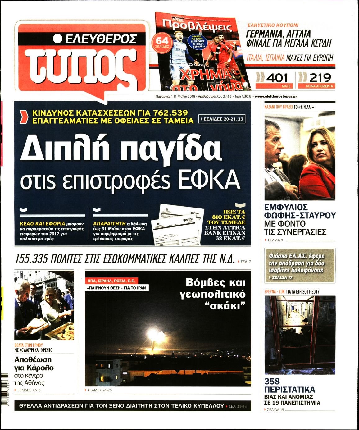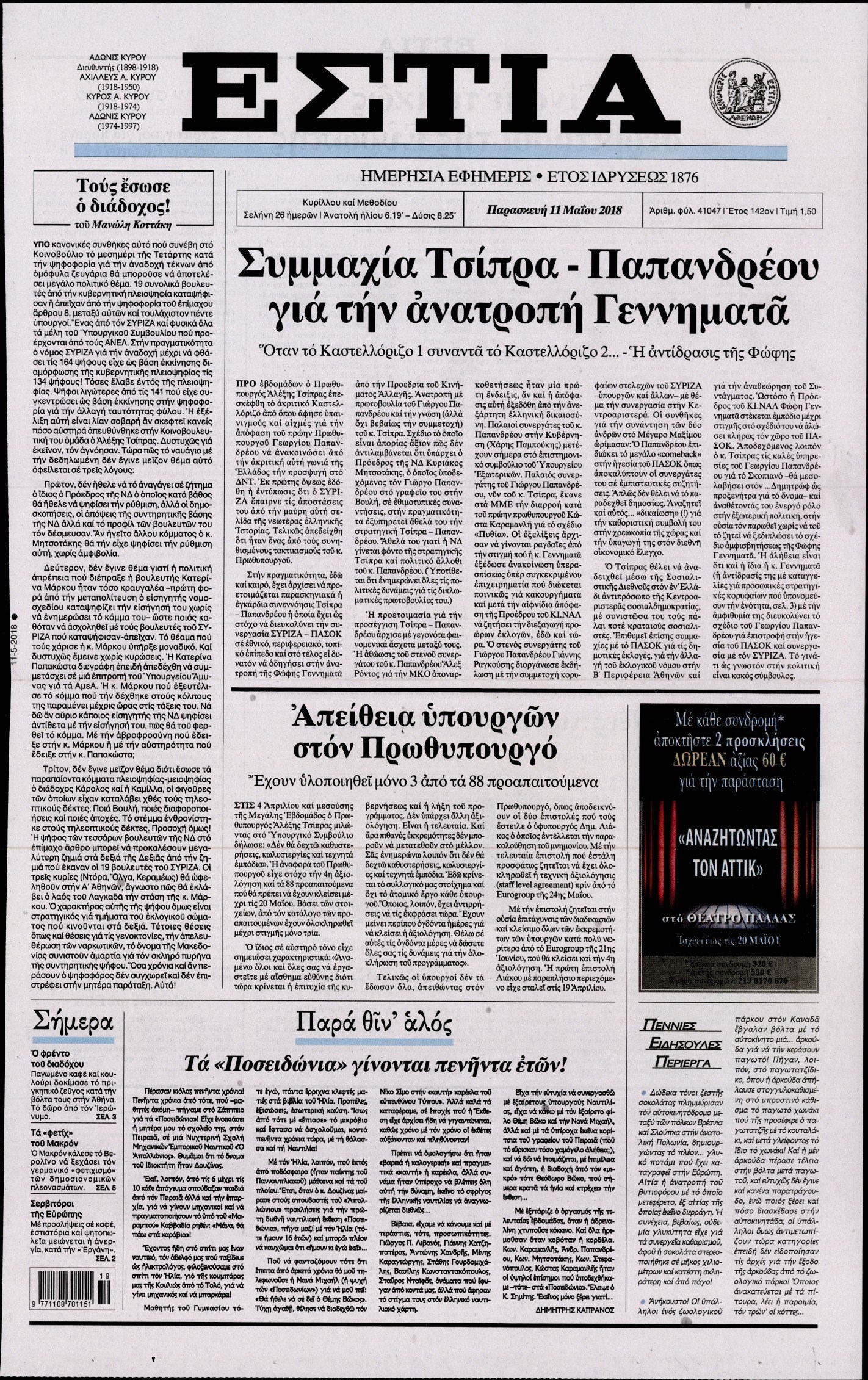 Οι πολιτικές εφημερίδες 11/5/2018 Enikos Newsroom 07:56, Παρασκευή 11 Μαΐου 2018 Media Διαβάστε τα σημερινά πρωτοσέλιδα των πολιτικών εφημερίδων: ΠΟΛΙΤΙΚΕΣ ΕΦΗΜΕΡΙΔΕΣ ΠΡΩΤΟΣΕΛΙΔΑ Μοιράσου το: σχολίασε κι εσύ (0 σχόλια) Ακολουθήστε το enikos.gr στο Google News και μάθετε πρώτοι όλες τις ειδήσεις Δείτε όλες τις τελευταίες ειδήσεις από την Ελλάδα και τον Κόσμο στο enikos.gr Ειδήσεις Ροή Ειδήσεων 13 λεπτά πριν Ζελένσκι: Μόνο οι ΗΠΑ και ο Τραμπ μπορούν να πιέσουν τη Ρωσία να βάλει τέλος στον πόλεμο 32 λεπτά πριν Φοινικούντα: Προφυλακιστέος ο 30χρονος για συνέργεια στη διπλή δολοφονία – Και άλλα πρόσωπα στο «μικροσκόπιο» 2 ώρες πριν Κυριάκος Μητσοτάκης: Στην Ιερουσαλήμ την Τρίτη ο Πρωθυπουργός για την τριμερή Ελλάδας, Κύπρου, Ισραήλ – Θα συναντηθεί και με τον Αμπάς 5 ώρες πριν Πώς δρούσε το κύκλωμα που διακινούσε ναρκωτικά σε σχολεία – Υπέβαλαν σε βασανιστήρια όσους δεν τηρούσαν τους «κανόνες πειθαρχίας» 1 ώρα πριν Πάπας Λέων: Όταν έχει αϋπνίες επενδύει παραγωγικά τον χρόνο του – Ποιο παιχνίδι παίζει στο κινητό 23 λεπτά πριν Αριθμολογία: Ο αριθμός του φύλακα αγγέλου σας, με βάση τον μήνα γέννησής σας – «Έτσι σας στέλνει σημάδια το σύμπαν» 1 ώρα πριν Πώς να απαλλαγείτε από τη μυρωδιά του τηγανητού φαγητού: Το μυστικό βρίσκεται στην κουζίνα σας 2 ώρες πριν Μήπως οι γιορτές σας δεν είναι τόσο τέλειες; 7 χριστουγεννιάτικες συνήθειες που μαρτυρούν ότι μια οικογένεια είναι δυσλειτουργική 12 ώρες πριν Enerwave: Το νέο «ρεύμα» στη λιανική ενέργειας που αλλάζει την εμπειρία του καταναλωτή 6 λεπτά πριν Εριέττα Μανούρη: «Έχω νιώσει ανταγωνισμό από άντρες, μύθος αυτό που λένε για τις γυναίκες» 13 λεπτά πριν Ζελένσκι: Μόνο οι ΗΠΑ και ο Τραμπ μπορούν να πιέσουν τη Ρωσία να βάλει τέλος στον πόλεμο 23 λεπτά πριν Αριθμολογία: Ο αριθμός του φύλακα αγγέλου σας, με βάση τον μήνα γέννησής σας – «Έτσι σας στέλνει σημάδια το σύμπαν» 32 λεπτά πριν Φοινικούντα: Προφυλακιστέος ο 30χρονος για συνέργεια στη διπλή δολοφονία – Και άλλα πρόσωπα στο «μικροσκόπιο» 43 λεπτά πριν Super League: Ο Σιαμπάνης «κατέβασε ρολά» και ο Βόλος νίκησε 1-0 τον Παναιτωλικό ENIKOS NETWORK Οι γυναίκες αποκαλύπτουν το πιο ελκυστικό πράγμα που μπορεί να κάνει ένας άνδρας Ομορφιά και αντιγήρανση: Ειδικοί μιλούν για συσκευές περιποίησης του δέρματος Εφορία: 7 αλλαγές σε δηλώσεις και ελέγχους ακινήτων – Όλα όσα πρέπει να γνωρίζετε Πορτοκαλί τιμολόγια ρεύματος: Τα σημεία που πρέπει να προσέξουν οι καταναλωτές – Πότε θα εφαρμοστούν Χαρτογραφώντας το «σημείο χωρίς επιστροφή»: Για πρώτη φορά αποκαλύπτεται με λεπτομέρεια το ακανθώδες όριο της ατμόσφαιρας τ... Η Google καταργεί τη λειτουργία «dark web report» – Πώς θα μπορούν οι χρήστες να διαγράφουν τα δεδομένα τους περισσότερα 20:30 , Σάββατο 20 Δεκεμβρίου 2025 Αυτή την Κυριακή με τη Realnews: Instyle, μαζί Drive και Realnews Geopolitics Αυτή την Κυριακή με τη Realnews: Instyle, μαζί Drive και Realnews Geopolitics Instyle Η Άννα Ρ... 20:28 , Σάββατο 20 Δεκεμβρίου 2025 Ο ΑΝΤ1 γεμίζει τις γιορτές με μουσική – Ποιους καλλιτέχνες θα απολαύσουμε Φέτος στον ΑΝΤ1 γιορτάζουμε τις νύχτες μας παρέα με αγαπημένους καλλιτέχνες και μεγάλες μουσι... 18:19 , Σάββατο 20 Δεκεμβρίου 2025 HOTΕΛ ΕΛVIRA: Η Ελβίρα μαθαίνει πως ο Χάρι μένει κρυφά στο ξενοδοχείο του Παντελή Συνεχίζονται οι εκλογές για πρόεδρο, στο νέο επεισόδιο της κωμικής σειράς του MEGA, HOTΕΛ ΕΛVI... 14:04 , Σάββατο 20 Δεκεμβρίου 2025 Η Realnews αυτής της Κυριακής (21/12/2025) Με τίτλο: «Ασπίδα προστασίας για την Ελλάδα» κυκλοφορεί, αυτήν την Κυριακή, η Realnews. 