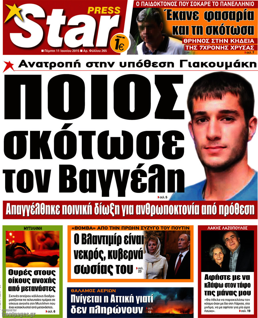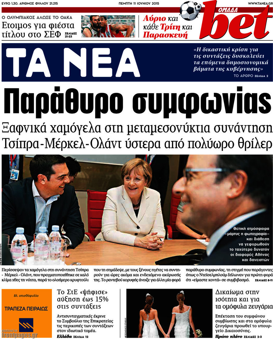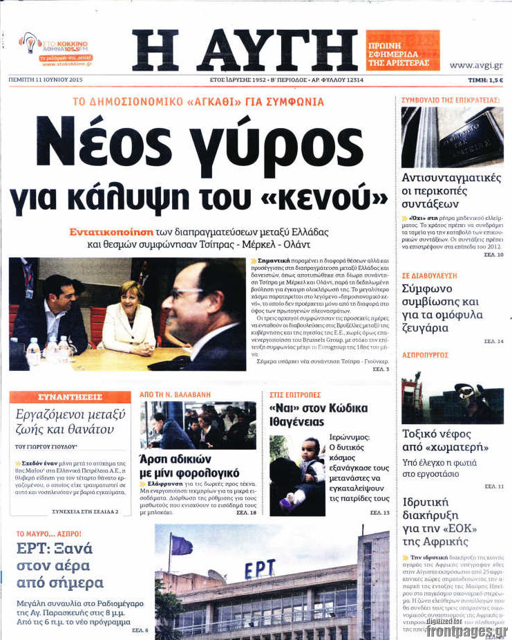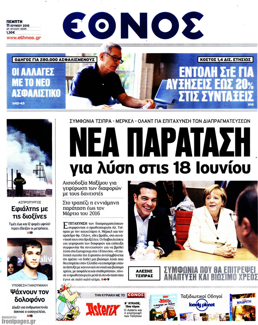 Οι πολιτικές εφημερίδες 11/6/2015 Enikos Newsroom 07:48, Πέμπτη 11 Ιουνίου 2015 Media Διαβάστε τα σημερινά πρωτοσέλιδα των πολιτικών εφημερίδων: ΠΟΛΙΤΙΚΕΣ ΕΦΗΜΕΡΙΔΕΣ ΠΡΩΤΟΣΕΛΙΔΑ Μοιράσου το: σχολίασε κι εσύ (0 σχόλια) Ακολουθήστε το enikos.gr στο Google News και μάθετε πρώτοι όλες τις ειδήσεις Δείτε όλες τις τελευταίες ειδήσεις από την Ελλάδα και τον Κόσμο στο enikos.gr Ειδήσεις Ροή Ειδήσεων 50 λεπτά πριν Χριστούγεννα στα μπλόκα: Επιμένουν στις κινητοποιήσεις τους οι αγρότες – Ανοίγουν τα διόδια το Σαββατοκύριακο 1 ώρα πριν Ουκρανία: Η άνευ προηγουμένου επίθεση σε ρωσικό τάνκερ στη Μεσόγειο και το μήνυμα προς στον Πούτιν – Το «μακρύ χέρι» του Κιέβου 27 λεπτά πριν Πούτιν: Τα μηνύματα σε Ευρώπη και ΝΑΤΟ από το μαραθώνιο «σόου» του – Η απαίτηση για «σεβασμό» και η ειρήνη «με τους όρους» της Μόσχας 1 ώρα πριν Τραμπ: Δεν αποκλείει την πιθανότητα ενός πολέμου στη Βενεζουέλα – «Ο Μαδούρο ξέρει καλύτερα από τον καθένα τι ακριβώς θέλω» 2 ώρες πριν Συνεχίζει να προκαλεί ο Μίτσκοσκι: «Για μένα το όνομα Μακεδονία είναι ιερό» 4 ώρες πριν Πούτιν: «Ναι, είμαι ερωτευμένος» – Βίντεο από τη σπάνια προσωπική παραδοχή του 2 ώρες πριν Αριθμολογία: Οι άνθρωποι που έχουν γεννηθεί αυτές τις 4 ημερομηνίες, συχνά παρεξηγούνται – «Η καλοσύνη τους κρύβει τεράστια δύναμη» 1 ώρα πριν Ύπνος: Μια κρυφή κατάσταση του εγκεφάλου πριν από τον ύπνο μπορεί να είναι το “κλειδί” για υψηλή ευφυΐα και δημιουργικότητα 3 ώρες πριν Ξεχάστε το καθάρισμα το Σαββατοκύριακο: Ο «κανόνας των 20 λεπτών» που θα σας λύσει τα χέρια 28 λεπτά πριν Ανακαλύφθηκαν αρχαία χρυσά νομίσματα 2.200 ετών που απεικονίζουν τον θεό Απόλλωνα – Η άγνωστη σύνδεση με τον Φίλιππο Β΄ της Μακεδονίας 13 λεπτά πριν Ολυμπιακός – Βιλερμπάν 107-84: Επιστροφή στις νίκες με… προπόνηση 18 λεπτά πριν Νέος Κόσμος: Συνελήφθη 41χρονος με ένταλμα από την Τουρκία για εμπόριο ναρκωτικών και ληστεία 27 λεπτά πριν Πούτιν: Τα μηνύματα σε Ευρώπη και ΝΑΤΟ από το μαραθώνιο «σόου» του – Η απαίτηση για «σεβασμό» και η ειρήνη «με τους όρους» της Μόσχας 28 λεπτά πριν Ανακαλύφθηκαν αρχαία χρυσά νομίσματα 2.200 ετών που απεικονίζουν τον θεό Απόλλωνα – Η άγνωστη σύνδεση με τον Φίλιππο Β΄ της Μακεδονίας 33 λεπτά πριν Νίκος Ξυλούρης: Συγκινεί η χήρα του σπουδαίου καλλιτέχνη – «Ευχαριστώ όλο τον κόσμο που τον κρατάει ζωντανό 45 χρόνια» ENIKOS NETWORK Το ΕΚΑΒ τιμήθηκε από την Ακαδημία Αθηνών για τα 40 χρόνια προσφοράς του Έχετε πραγματικά μεγάλη καρδιά; 10 χαρακτηριστικά όσων έχουν καλοσύνη Αναστολή μέτρων αναγκαστικής εκτέλεσης για κτηνοτρόφους που πλήττονται από την ευλογιά των αιγοπροβάτων Πλήρης επάρκεια προϊόντων στις λαϊκές της Αττικής, παρά τις αγροτικές κινητοποιήσεις – Τι απαντούν οι πωλητές Χαρτογραφώντας το «σημείο χωρίς επιστροφή»: Για πρώτη φορά αποκαλύπτεται με λεπτομέρεια το ακανθώδες όριο της ατμόσφαιρας τ... Η Google καταργεί τη λειτουργία «dark web report» – Πώς θα μπορούν οι χρήστες να διαγράφουν τα δεδομένα τους περισσότερα 22:42 , Παρασκευή 19 Δεκεμβρίου 2025 Γιώργος Γιαννόπουλος για “Το σόι σου”: “Είναι ευτυχία και ευλογία αυτή η σειρά” «Είναι ευτυχία και ευλογία η συγκυρία αυτής της σειράς», θα πει ο Γιώργος Γιαννόπουλος -ο αγαπ... 20:37 , Παρασκευή 19 Δεκεμβρίου 2025 Don’t Forget The Lyrics: Η Έλλη Κοκκίνου υποδέχεται 4 παίκτες που θα κάνουν τα πάντα για να μη χάσουν ούτε… μισή λέξη από τους στίχους Το «Don’t Forget The Lyrics» επιστρέφει απόψε, Παρασκευή 19 Δεκεμβρίου, στις 21:00 με νέο επει... 19:31 , Παρασκευή 19 