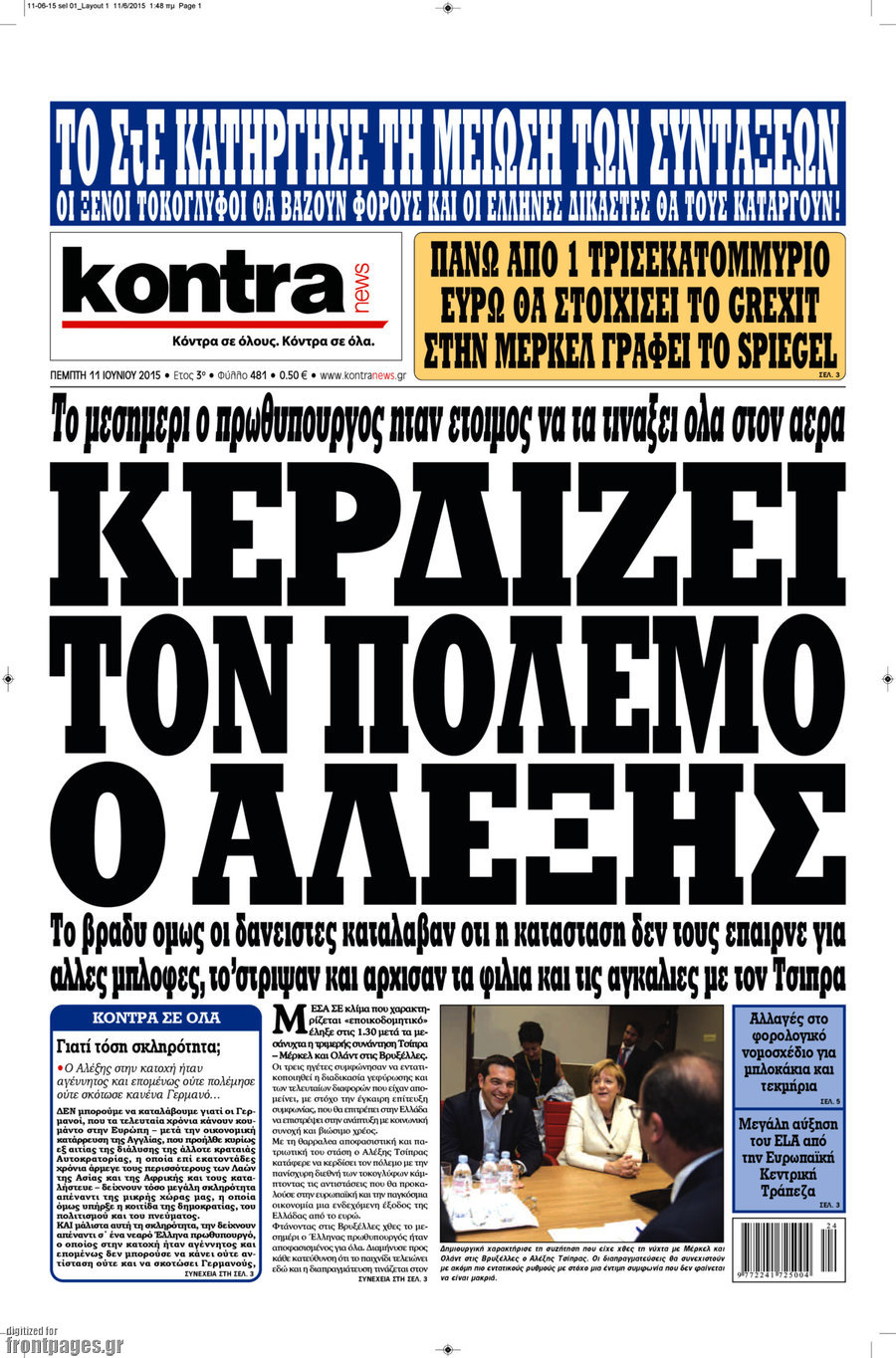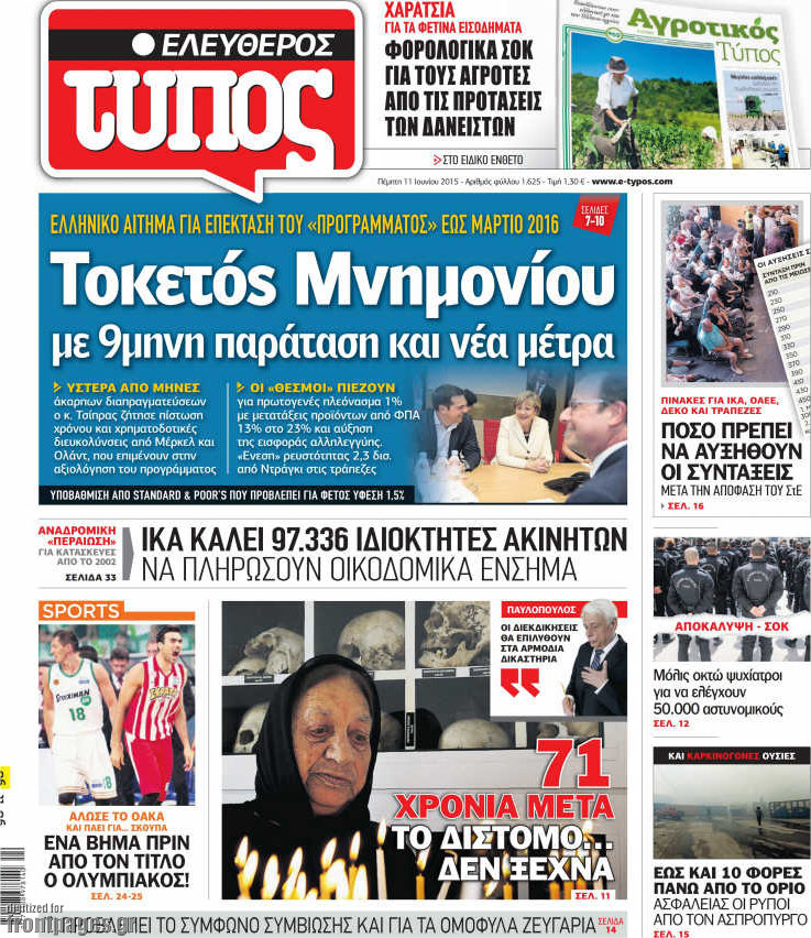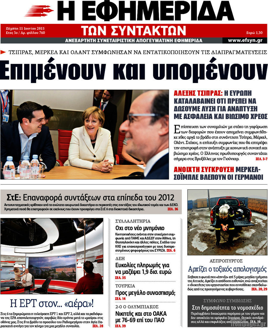 Οι πολιτικές εφημερίδες 11/6/2015 Enikos Newsroom 07:48, Πέμπτη 11 Ιουνίου 2015 Media Διαβάστε τα σημερινά πρωτοσέλιδα των πολιτικών εφημερίδων: ΠΟΛΙΤΙΚΕΣ ΕΦΗΜΕΡΙΔΕΣ ΠΡΩΤΟΣΕΛΙΔΑ Μοιράσου το: σχολίασε κι εσύ (0 σχόλια) Ακολουθήστε το enikos.gr στο Google News και μάθετε πρώτοι όλες τις ειδήσεις Δείτε όλες τις τελευταίες ειδήσεις από την Ελλάδα και τον Κόσμο στο enikos.gr Ειδήσεις Ροή Ειδήσεων 50 λεπτά πριν Χριστούγεννα στα μπλόκα: Επιμένουν στις κινητοποιήσεις τους οι αγρότες – Ανοίγουν τα διόδια το Σαββατοκύριακο 1 ώρα πριν Ουκρανία: Η άνευ προηγουμένου επίθεση σε ρωσικό τάνκερ στη Μεσόγειο και το μήνυμα προς στον Πούτιν – Το «μακρύ χέρι» του Κιέβου 27 λεπτά πριν Πούτιν: Τα μηνύματα σε Ευρώπη και ΝΑΤΟ από το μαραθώνιο «σόου» του – Η απαίτηση για «σεβασμό» και η ειρήνη «με τους όρους» της Μόσχας 1 ώρα πριν Τραμπ: Δεν αποκλείει την πιθανότητα ενός πολέμου στη Βενεζουέλα – «Ο Μαδούρο ξέρει καλύτερα από τον καθένα τι ακριβώς θέλω» 2 ώρες πριν Συνεχίζει να προκαλεί ο Μίτσκοσκι: «Για μένα το όνομα Μακεδονία είναι ιερό» 4 ώρες πριν Πούτιν: «Ναι, είμαι ερωτευμένος» – Βίντεο από τη σπάνια προσωπική παραδοχή του 2 ώρες πριν Αριθμολογία: Οι άνθρωποι που έχουν γεννηθεί αυτές τις 4 ημερομηνίες, συχνά παρεξηγούνται – «Η καλοσύνη τους κρύβει τεράστια δύναμη» 1 ώρα πριν Ύπνος: Μια κρυφή κατάσταση του εγκεφάλου πριν από τον ύπνο μπορεί να είναι το “κλειδί” για υψηλή ευφυΐα και δημιουργικότητα 3 ώρες πριν Ξεχάστε το καθάρισμα το Σαββατοκύριακο: Ο «κανόνας των 20 λεπτών» που θα σας λύσει τα χέρια 28 λεπτά πριν Ανακαλύφθηκαν αρχαία χρυσά νομίσματα 2.200 ετών που απεικονίζουν τον θεό Απόλλωνα – Η άγνωστη σύνδεση με τον Φίλιππο Β΄ της Μακεδονίας 13 λεπτά πριν Ολυμπιακός – Βιλερμπάν 107-84: Επιστροφή στις νίκες με… προπόνηση 18 λεπτά πριν Νέος Κόσμος: Συνελήφθη 41χρονος με ένταλμα από την Τουρκία για εμπόριο ναρκωτικών και ληστεία 27 λεπτά πριν Πούτιν: Τα μηνύματα σε Ευρώπη και ΝΑΤΟ από το μαραθώνιο «σόου» του – Η απαίτηση για «σεβασμό» και η ειρήνη «με τους όρους» της Μόσχας 28 λεπτά πριν Ανακαλύφθηκαν αρχαία χρυσά νομίσματα 2.200 ετών που απεικονίζουν τον θεό Απόλλωνα – Η άγνωστη σύνδεση με τον Φίλιππο Β΄ της Μακεδονίας 33 λεπτά πριν Νίκος Ξυλούρης: Συγκινεί η χήρα του σπουδαίου καλλιτέχνη – «Ευχαριστώ όλο τον κόσμο που τον κρατάει ζωντανό 45 χρόνια» ENIKOS NETWORK Το ΕΚΑΒ τιμήθηκε από την Ακαδημία Αθηνών για τα 40 χρόνια προσφοράς του Έχετε πραγματικά μεγάλη καρδιά; 10 χαρακτηριστικά όσων έχουν καλοσύνη Αναστολή μέτρων αναγκαστικής εκτέλεσης για κτηνοτρόφους που πλήττονται από την ευλογιά των αιγοπροβάτων Πλήρης επάρκεια προϊόντων στις λαϊκές της Αττικής, παρά τις αγροτικές κινητοποιήσεις – Τι απαντούν οι πωλητές Χαρτογραφώντας το «σημείο χωρίς επιστροφή»: Για πρώτη φορά αποκαλύπτεται με λεπτομέρεια το ακανθώδες όριο της ατμόσφαιρας τ... Η Google καταργεί τη λειτουργία «dark web report» – Πώς θα μπορούν οι χρήστες να διαγράφουν τα δεδομένα τους περισσότερα 22:42 , Παρασκευή 19 Δεκεμβρίου 2025 Γιώργος Γιαννόπουλος για “Το σόι σου”: “Είναι ευτυχία και ευλογία αυτή η σειρά” «Είναι ευτυχία και ευλογία η συγκυρία αυτής της σειράς», θα πει ο Γιώργος Γιαννόπουλος -ο αγαπ... 20:37 , Παρασκευή 19 Δεκεμβρίου 2025 Don’t Forget The Lyrics: Η Έλλη Κοκκίνου υποδέχεται 4 παίκτες που θα κάνουν τα πάντα για να μη χάσουν ούτε… μισή λέξη από τους στίχους Το «Don’t Forget The Lyrics» επιστρέφει απόψε, Παρασκευή 19 Δεκεμβρίου, στις 21:00 με νέο επει... 19:31 , Παρασκευή 19 