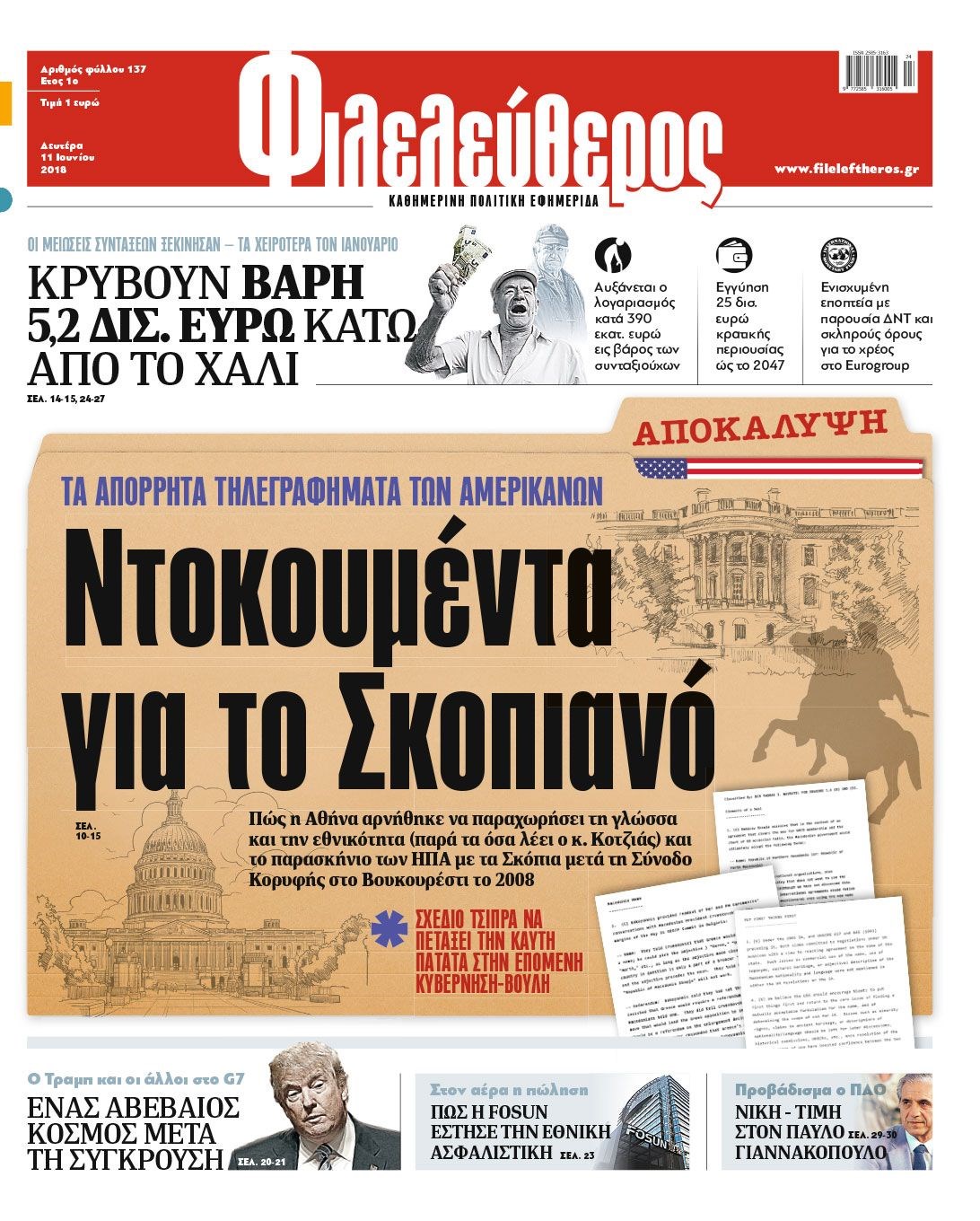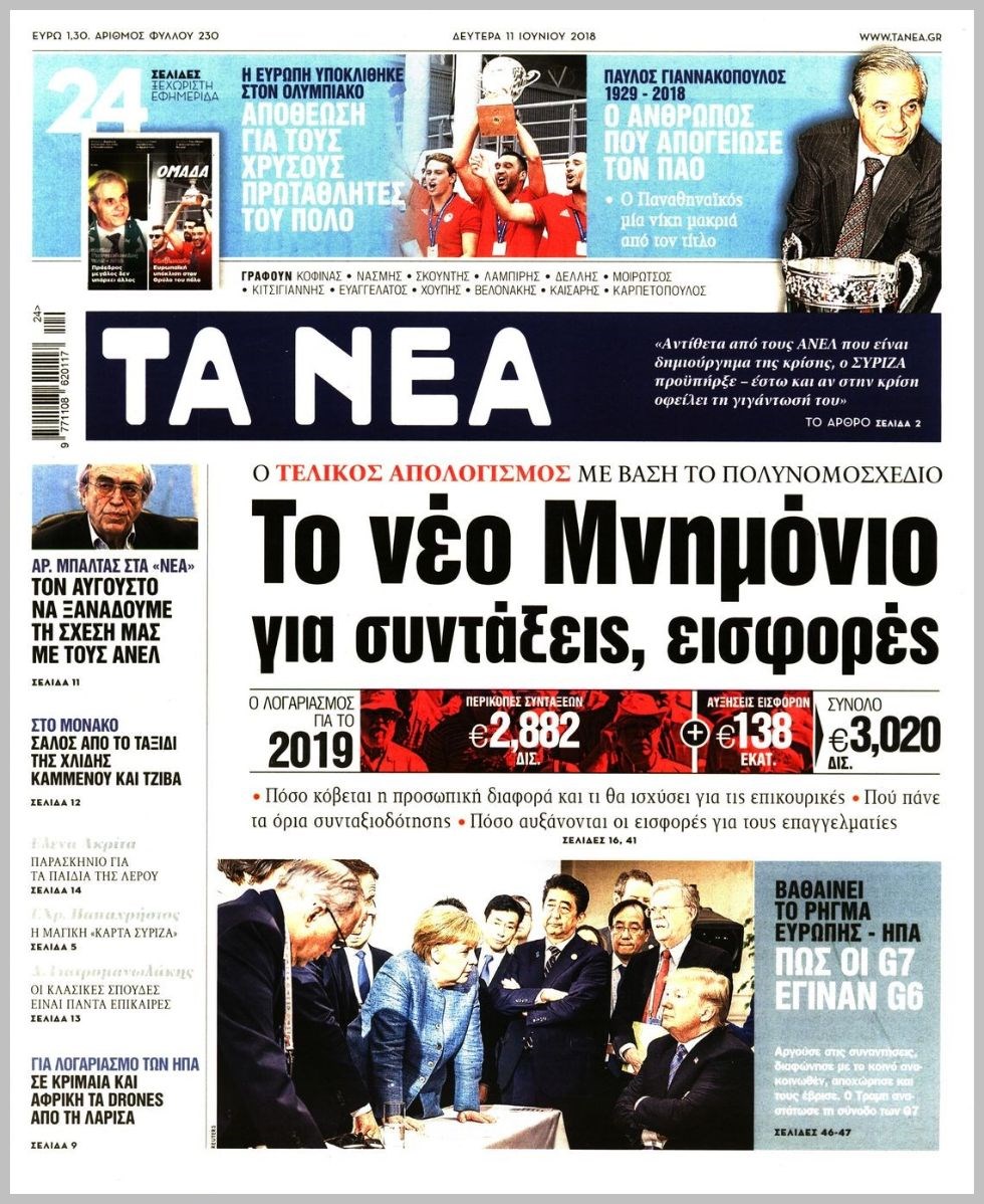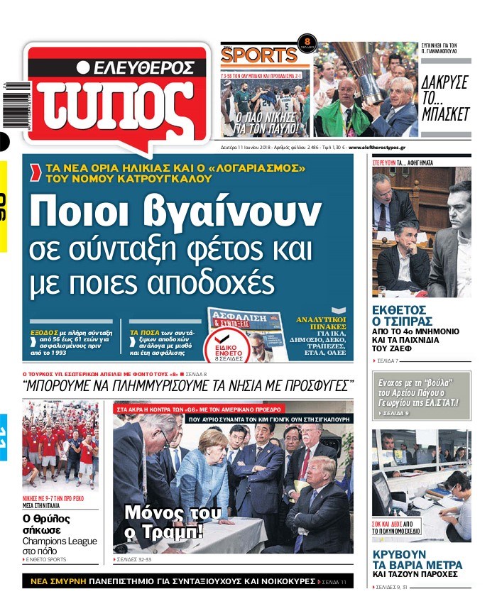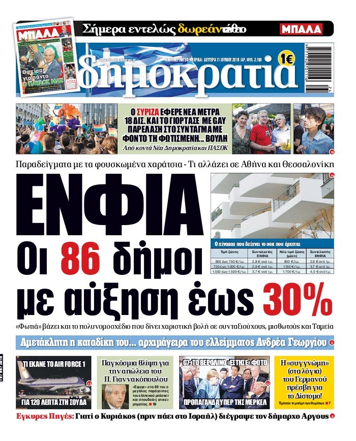 Οι πολιτικές εφημερίδες 11/6/2018 Enikos Newsroom 06:20, Δευτέρα 11 Ιουνίου 2018 Media Διαβάστε τα σημερινά πρωτοσέλιδα των πολιτικών εφημερίδων. ΕΦΗΜΕΡΙΔΕΣ ΠΟΛΙΤΙΚΕΣ ΕΦΗΜΕΡΙΔΕΣ ΠΡΩΤΟΣΕΛΙΔΑ Μοιράσου το: σχολίασε κι εσύ (0 σχόλια) Ακολουθήστε το enikos.gr στο Google News και μάθετε πρώτοι όλες τις ειδήσεις Δείτε όλες τις τελευταίες ειδήσεις από την Ελλάδα και τον Κόσμο στο enikos.gr Ειδήσεις Ροή Ειδήσεων 3 ώρες πριν Υπόθεση Έπσταϊν: Το Υπουργείο Δικαιοσύνης δημοσιοποίησε μια σειρά από εξαιρετικά επεξεργασμένα αρχεία – «Λείπουν τα πιο σημαντικά έγγραφα», λένε οι Δημοκρατικοί 25 λεπτά πριν Γιορτές με μπλόκα για τους αγρότες: Ανοίγουν διόδια και μοιράζουν προϊόντα στους ταξιδιώτες 58 λεπτά πριν Εξαφάνιση 33χρονου γιατρού στην Κρήτη: «Άναψα τα φώτα, τρόμαξε και άρχισε να τρέχει στα χωράφια» – Η τελευταία διαδρομή και η μαρτυρία «κλειδί» 2 ώρες πριν Ο «χάρτης» με τις αυξήσεις και τις φοροελαφρύνσεις του 2026 – Ποιοι και πόσα κερδίζουν 42 λεπτά πριν Τα αρχεία του Έπσταϊν αποκαλύπτουν φωτογραφία του έκπτωτου πρίγκιπα Άντριου – Είναι ξαπλωμένος στην αγκαλιά 5 γυναικών 49 λεπτά πριν Μία νέα «χρυσή» περίοδος αρχίζει για 3 ζώδια από σήμερα – «Μία αναπάντεχη ευκαιρία οδηγεί στην επιτυχία» 5 ώρες πριν Αυγά: Πόσα μπορείτε να τρώτε την ημέρα με ασφάλεια για μέγιστη πρόσληψη πρωτεΐνης 3 ώρες πριν Αρχαιολόγοι ανακάλυψαν σε χωράφι απεικόνιση 600 ετών ενός Αγίου – Τα στοιχεία που δείχνουν ότι μαρτύρησε 2 ώρες πριν Αγχώνεται για το χριστουγεννιάτικο δώρο που πήρε στην πλούσια σύντροφό του – «Φοβάμαι πως θα το βρει φθηνιάρικο, φοράει βραχιόλια Cartier» 2 λεπτά πριν Τηλεθέαση (19/12): Ανατροπές και πρωτιές στην πρωινή ζώνη 10 λεπτά πριν Πώς η κλιματική αλλαγή επηρεάζει εγκύους και βρέφη – Οι επιπτώσεις των υψηλών θερμοκρασιών 18 λεπτά πριν e-ΕΦΚΑ και ΔΥΠΑ: Οι πληρωμές από 22 έως 24 Δεκεμβρίου – Ποιοι θα δουν χρήματα στους λογαριασμούς τους 25 λεπτά πριν Συνελήφθη οδηγός μηχανής που έτρεχε με 161 χλμ στη Συγγρού – Τον έπιασε το ραντάρ της Τροχαίας 25 λεπτά πριν Γιορτές με μπλόκα για τους αγρότες: Ανοίγουν διόδια και μοιράζουν προϊόντα στους ταξιδιώτες ENIKOS NETWORK Είστε μόνιμα απρόσεκτοι; 3 σημάδια που δείχνουν ότι μπορεί να είναι σύμπτωμα πάθησης Πόσα κιλά παίρνουμε πραγματικά τα Χριστούγεννα, σύμφωνα με την επιστήμη – Πώς να το αποτρέψουμε; Επίδομα παιδιού: Τι αλλάζει από το 2026 – Το όφελος από τις φορολογικές ελαφρύνσεις Mega χριστουγεννιάτικη φορολοταρία: «Κλείδωσε» η ημερομηνία για την κλήρωση – Ερωτήσεις και απαντήσεις Χαρτογραφώντας το «σημείο χωρίς επιστροφή»: Για πρώτη φορά αποκαλύπτεται με λεπτομέρεια το ακανθώδες όριο της ατμόσφαιρας τ... Η Google καταργεί τη λειτουργία «dark web report» – Πώς θα μπορούν οι χρήστες να διαγράφουν τα δεδομένα τους περισσότερα 09:30 , Σάββατο 20 Δεκεμβρίου 2025 «Porto Leone: Στη γειτονιά με τα κόκκινα φανάρια» – Ο Χρόνης αποκαλύπτει στην Αλεξάνδρα το μυστικό για το παιδί της Λένας Η μεγάλη δραματική σειρά του Apha «Porto Leone: Στη γειτονιά με τα κόκκινα φανάρια» μας μεταφέ... 08:14 , Σάββατο 20 Δεκεμβρίου 2025 Τρομεροί γονείς: Η Μαρία Καβογιάννη εισβάλλει στο σπίτι της οικογένειας Στεφανίδη Όσα θα δούμε στο νέο διπλό επεισόδιο της σειράς «Τρομεροί γονείς», σήμερα Σάββατο 20 Δεκεμβρίο... 05:48 , Σάββατο 20 Δεκεμβρίου 2025 Οι οικονομικές εφημερίδες 20/12/2025 Διαβάστε τα πρωτοσέλιδα από τις οικονομικές εφημερίδες, σήμερα 20/12/2025. 05:43 , Σάββατο 20 Δεκεμβρίου 2025 Οι αθλητικές εφημερίδες 20/12/2025 Διαβάστε τα πρωτοσέλιδα α