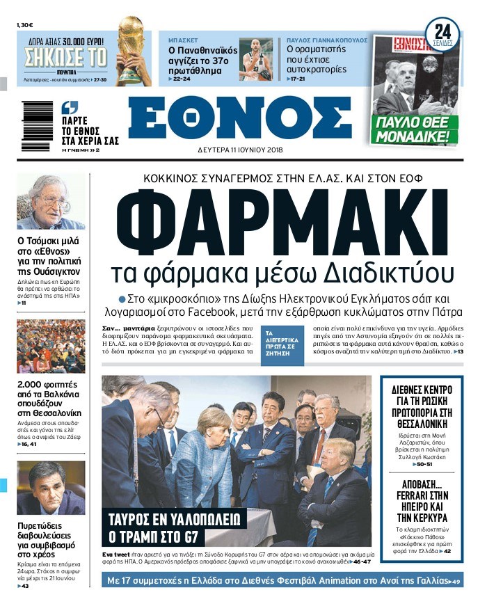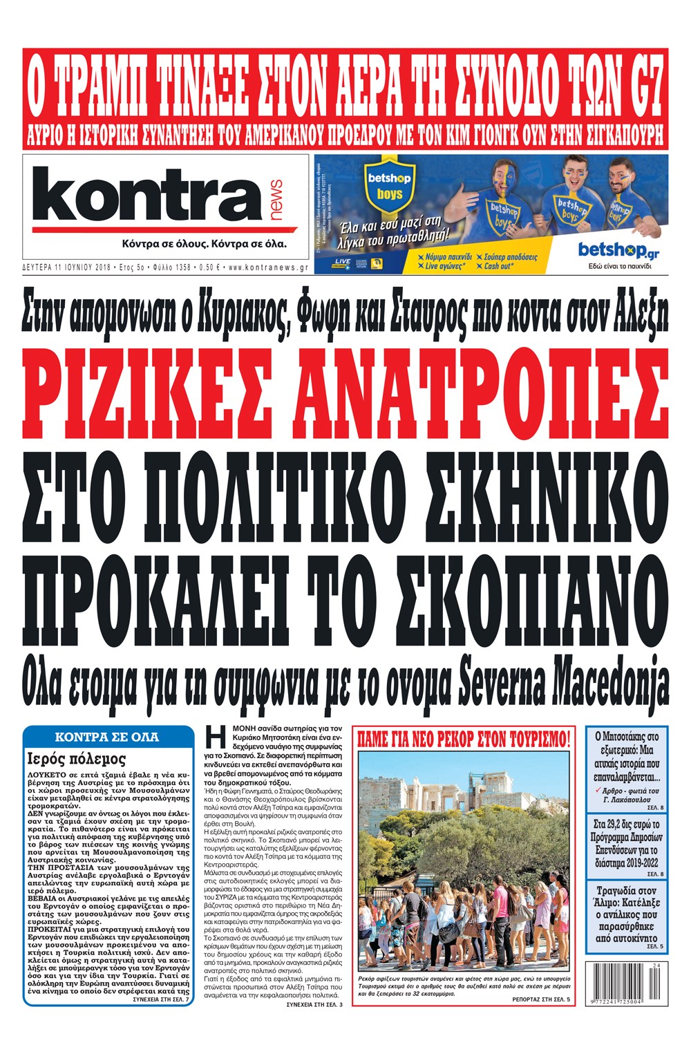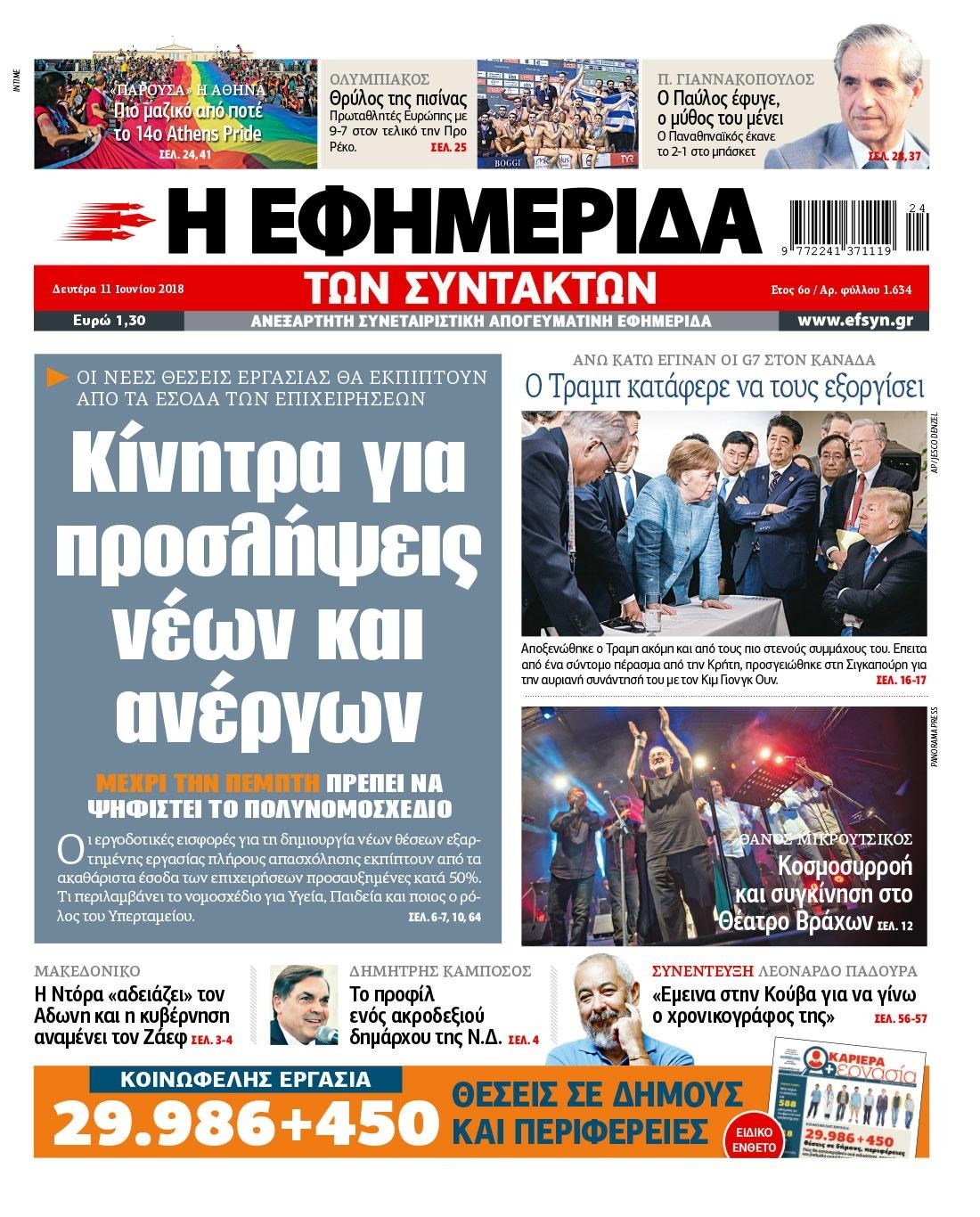 Οι πολιτικές εφημερίδες 11/6/2018 Enikos Newsroom 06:20, Δευτέρα 11 Ιουνίου 2018 Media Διαβάστε τα σημερινά πρωτοσέλιδα των πολιτικών εφημερίδων. ΕΦΗΜΕΡΙΔΕΣ ΠΟΛΙΤΙΚΕΣ ΕΦΗΜΕΡΙΔΕΣ ΠΡΩΤΟΣΕΛΙΔΑ Μοιράσου το: σχολίασε κι εσύ (0 σχόλια) Ακολουθήστε το enikos.gr στο Google News και μάθετε πρώτοι όλες τις ειδήσεις Δείτε όλες τις τελευταίες ειδήσεις από την Ελλάδα και τον Κόσμο στο enikos.gr Ειδήσεις Ροή Ειδήσεων 3 ώρες πριν Υπόθεση Έπσταϊν: Το Υπουργείο Δικαιοσύνης δημοσιοποίησε μια σειρά από εξαιρετικά επεξεργασμένα αρχεία – «Λείπουν τα πιο σημαντικά έγγραφα», λένε οι Δημοκρατικοί 25 λεπτά πριν Γιορτές με μπλόκα για τους αγρότες: Ανοίγουν διόδια και μοιράζουν προϊόντα στους ταξιδιώτες 58 λεπτά πριν Εξαφάνιση 33χρονου γιατρού στην Κρήτη: «Άναψα τα φώτα, τρόμαξε και άρχισε να τρέχει στα χωράφια» – Η τελευταία διαδρομή και η μαρτυρία «κλειδί» 2 ώρες πριν Ο «χάρτης» με τις αυξήσεις και τις φοροελαφρύνσεις του 2026 – Ποιοι και πόσα κερδίζουν 42 λεπτά πριν Τα αρχεία του Έπσταϊν αποκαλύπτουν φωτογραφία του έκπτωτου πρίγκιπα Άντριου – Είναι ξαπλωμένος στην αγκαλιά 5 γυναικών 49 λεπτά πριν Μία νέα «χρυσή» περίοδος αρχίζει για 3 ζώδια από σήμερα – «Μία αναπάντεχη ευκαιρία οδηγεί στην επιτυχία» 5 ώρες πριν Αυγά: Πόσα μπορείτε να τρώτε την ημέρα με ασφάλεια για μέγιστη πρόσληψη πρωτεΐνης 3 ώρες πριν Αρχαιολόγοι ανακάλυψαν σε χωράφι απεικόνιση 600 ετών ενός Αγίου – Τα στοιχεία που δείχνουν ότι μαρτύρησε 2 ώρες πριν Αγχώνεται για το χριστουγεννιάτικο δώρο που πήρε στην πλούσια σύντροφό του – «Φοβάμαι πως θα το βρει φθηνιάρικο, φοράει βραχιόλια Cartier» 2 λεπτά πριν Τηλεθέαση (19/12): Ανατροπές και πρωτιές στην πρωινή ζώνη 10 λεπτά πριν Πώς η κλιματική αλλαγή επηρεάζει εγκύους και βρέφη – Οι επιπτώσεις των υψηλών θερμοκρασιών 18 λεπτά πριν e-ΕΦΚΑ και ΔΥΠΑ: Οι πληρωμές από 22 έως 24 Δεκεμβρίου – Ποιοι θα δουν χρήματα στους λογαριασμούς τους 25 λεπτά πριν Συνελήφθη οδηγός μηχανής που έτρεχε με 161 χλμ στη Συγγρού – Τον έπιασε το ραντάρ της Τροχαίας 25 λεπτά πριν Γιορτές με μπλόκα για τους αγρότες: Ανοίγουν διόδια και μοιράζουν προϊόντα στους ταξιδιώτες ENIKOS NETWORK Είστε μόνιμα απρόσεκτοι; 3 σημάδια που δείχνουν ότι μπορεί να είναι σύμπτωμα πάθησης Πόσα κιλά παίρνουμε πραγματικά τα Χριστούγεννα, σύμφωνα με την επιστήμη – Πώς να το αποτρέψουμε; Επίδομα παιδιού: Τι αλλάζει από το 2026 – Το όφελος από τις φορολογικές ελαφρύνσεις Mega χριστουγεννιάτικη φορολοταρία: «Κλείδωσε» η ημερομηνία για την κλήρωση – Ερωτήσεις και απαντήσεις Χαρτογραφώντας το «σημείο χωρίς επιστροφή»: Για πρώτη φορά αποκαλύπτεται με λεπτομέρεια το ακανθώδες όριο της ατμόσφαιρας τ... Η Google καταργεί τη λειτουργία «dark web report» – Πώς θα μπορούν οι χρήστες να διαγράφουν τα δεδομένα τους περισσότερα 09:30 , Σάββατο 20 Δεκεμβρίου 2025 «Porto Leone: Στη γειτονιά με τα κόκκινα φανάρια» – Ο Χρόνης αποκαλύπτει στην Αλεξάνδρα το μυστικό για το παιδί της Λένας Η μεγάλη δραματική σειρά του Apha «Porto Leone: Στη γειτονιά με τα κόκκινα φανάρια» μας μεταφέ... 08:14 , Σάββατο 20 Δεκεμβρίου 2025 Τρομεροί γονείς: Η Μαρία Καβογιάννη εισβάλλει στο σπίτι της οικογένειας Στεφανίδη Όσα θα δούμε στο νέο διπλό επεισόδιο της σειράς «Τρομεροί γονείς», σήμερα Σάββατο 20 Δεκεμβρίο... 05:48 , Σάββατο 20 Δεκεμβρίου 2025 Οι οικονομικές εφημερίδες 20/12/2025 Διαβάστε τα πρωτοσέλιδα από τις οικονομικές εφημερίδες, σήμερα 20/12/2025. 05:43 , Σάββατο 20 Δεκεμβρίου 2025 Οι αθλητικές εφημερίδες 20/12/2025 Διαβάστε τα πρωτοσέλιδα α