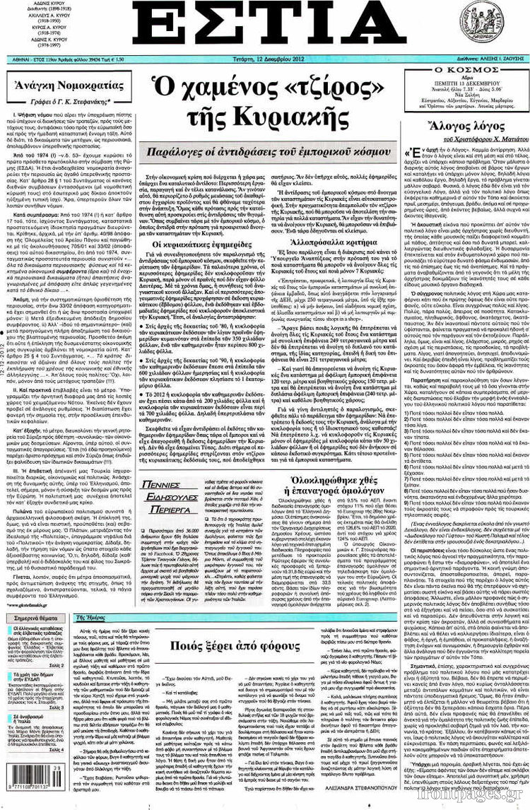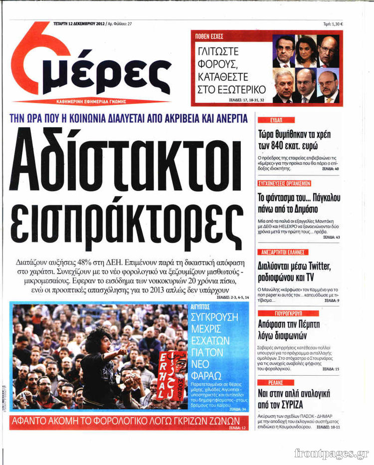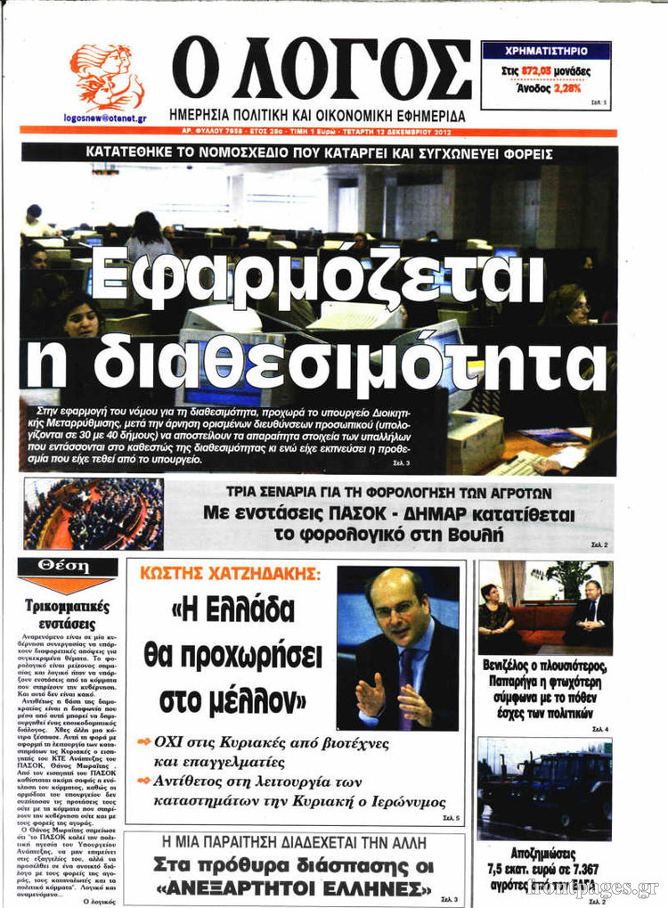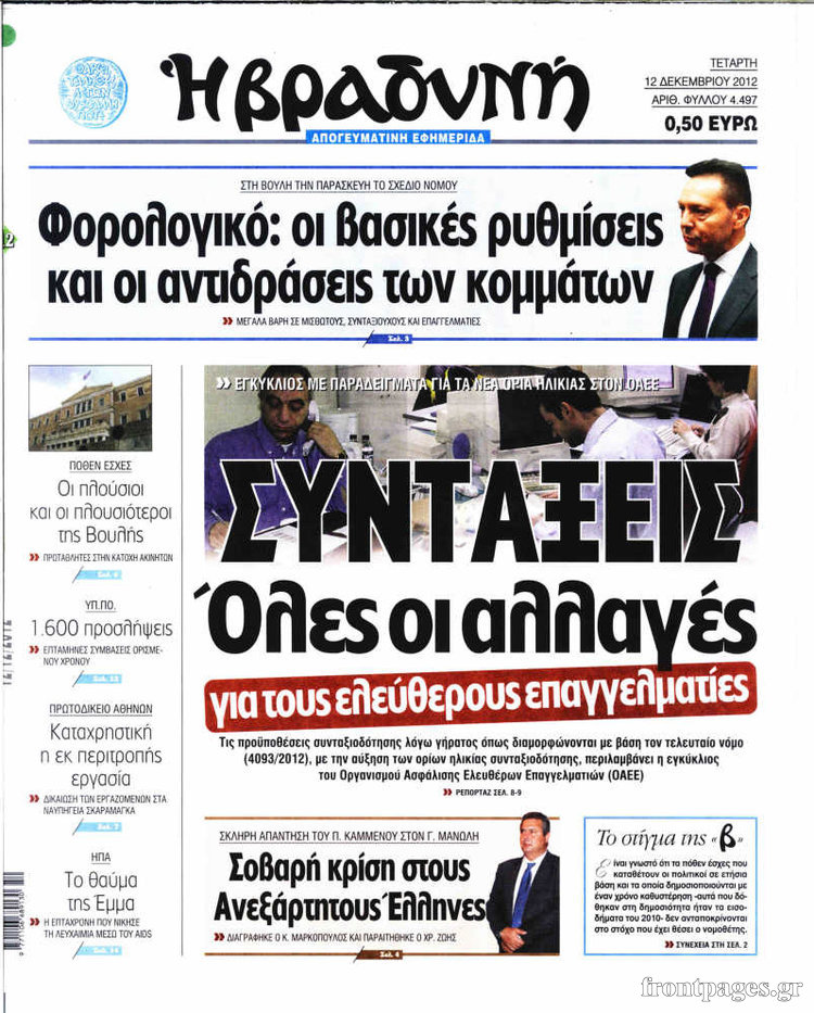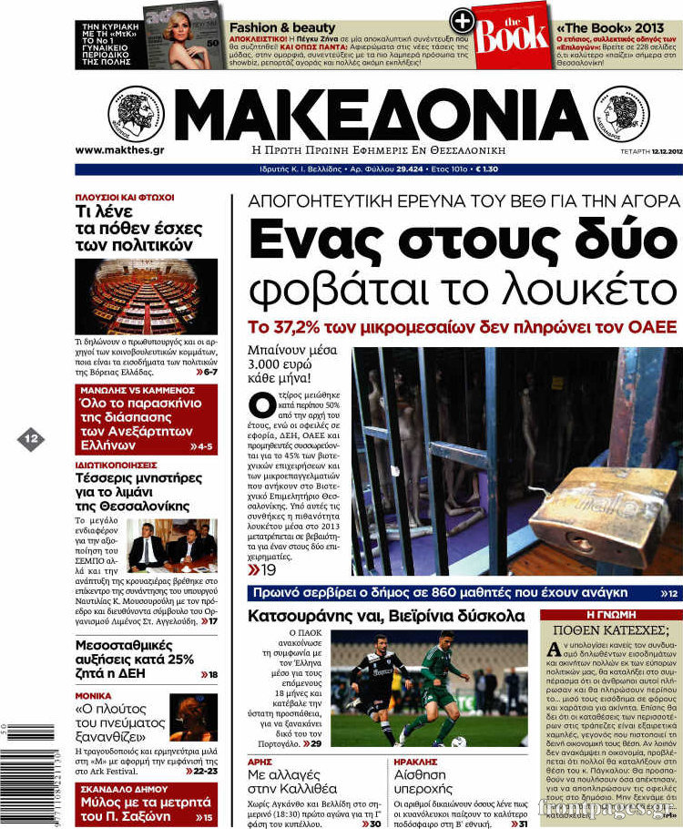 Οι πολιτικές εφημερίδες Enikos Newsroom 09:02, Τετάρτη 12 Δεκεμβρίου 2012 Media Οι πολιτικές εφημερίδες ΕΦΗΜΕΡΙΔΕΣ ΠΟΛΙΤΙΚΕΣ ΕΦΗΜΕΡΙΔΕΣ ΠΡΩΤΟΣΕΛΙΔΑ Μοιράσου το: σχολίασε κι εσύ (0 σχόλια) Ακολουθήστε το enikos.gr στο Google News και μάθετε πρώτοι όλες τις ειδήσεις Δείτε όλες τις τελευταίες ειδήσεις από την Ελλάδα και τον Κόσμο στο enikos.gr Ειδήσεις Ροή Ειδήσεων 2 ώρες πριν «Βιολάντα:» Οι ανατριχιαστικοί διάλογοι λίγες ώρες πριν από την φονική έκρηξη για «μυρωδιά σαν υγραέριο» – «Μου έλεγαν ότι δεν ήταν κάτι ανησυχητικό» κατέθεσε ο υπεύθυνος βάρδιας 3 ώρες πριν Ο Κυριάκος Μητσοτάκης ανοίγει τα χαρτιά του για τη Συνταγματική Αναθεώρηση – Στο τραπέζι και η μονιμότητα των δημοσίων υπαλλήλων 1 ώρα πριν Νέα Πέραμος: Προσπάθησαν να κάψουν το πτώμα του 27χρονου – Οι έρευνες στο εργασιακό του περιβάλλον και η εκτέλεση «καρμπόν» πριν από 2 χρόνια στη Μάνδρα 2 ώρες πριν Κακοκαιρία: Νέο έκτακτο δελτίο της ΕΜΥ – Σε ποιες περιοχές θα συνεχιστούν τα έντονα φαινόμενα 1 ώρα πριν Γκίλφοϊλ: Προανήγγειλε επίσκεψη Τραμπ στην Ελλάδα – «Ελπίζω να έρθει και η Μελάνια» 3 ώρες πριν Αριθμολογία: Οι 3 «καταραμένες» διευθύνσεις σπιτιού – «Τα νούμερα αυτά συνδέονται με αναταραχές και αρνητική ενέργεια» 4 ώρες πριν Τα 11 ψέματα που λένε πάντα οι άνδρες για να σας πείσουν ότι έχετε εσείς το πρόβλημα 2 ώρες πριν Ύπνος: Γιατί πρέπει να κοιμάστε με την πόρτα του υπνοδωματίου σας κλειστή 1 ώρα πριν Στο φως η θρυλική πόλη που ίδρυσε ο Μέγας Αλέξανδρος στο Ιράκ – Το «φάντασμα» του Τίγρη αποκαλύπτεται 14 λεπτά πριν Ο πρόεδρος Τραμπ βλέπει μια συμφωνία με την Κούβα μετά τις απειλές 36 λεπτά πριν ΑΕΚ – Ολυμπιακός 1-1: Ισοπαλία στο ντέρμπι με πέναλτυ στο 90+16′ για τους Πειραιώτες – Έντονες διαμαρτυρίες των γηπεδούχων 48 λεπτά πριν Επίδομα παιδιού 2026: Πότε ανοίγει η πλατφόρμα για τις νέες αιτήσεις – Τι πρέπει να γνωρίζετε 1 ώρα πριν Στο φως η θρυλική πόλη που ίδρυσε ο Μέγας Αλέξανδρος στο Ιράκ – Το «φάντασμα» του Τίγρη αποκαλύπτεται 1 ώρα πριν Νέα Πέραμος: Προσπάθησαν να κάψουν το πτώμα του 27χρονου – Οι έρευνες στο εργασιακό του περιβάλλον και η εκτέλεση «καρμπόν» πριν από 2 χρόνια στη Μάνδρα ENIKOS NETWORK Γελάτε, κλαίτε ή ανοίγει η μύτη σας μετά τον οργασμό – Πού οφείλεται, σύμφωνα με μελέτη; Πώς να ξεφορτωθείτε τις σακούλες κάτω από τα μάτια – Tips που δουλεύουν Τη Δευτέρα οι ανακοινώσεις του Κυριάκου Μητσοτάκη για τη συνταγματική αναθεώρηση – Ποια άρθρα θα προτείνει να αλλάξουν Ο καιρός της Δευτέρας: Ισχυρές καταιγίδες και χιονοπτώσεις – Σε ποιες περιοχές χρειάζεται προσοχή Σπαζοκεφαλιά: Βρες πόσα 9 υπάρχουν στην εικόνα σε 8 δευτερόλεπτα Τεστ IQ: Μπορείς να εντοπίσεις τον αριθμό 999 ανάμεσα στα 99Q σε 15 δευτερόλεπτα; περισσότερα 17:13 , Κυριακή 01 Φεβρουαρίου 2026 Σία Κοσιώνη: Το πρώτο μήνυμα μετά την περιπέτεια με την υγεία της – «Τα καταφέραμε» Για έναν δύσκολο Ιανουάριο που της φάνηκε σαν ένας ολόκληρος χρόνος κάνει λόγο η Σία Κοσιώνη σ... 15:05 , Κυριακή 01 Φεβρουαρίου 2026 Από Ήλιο σε Ήλιο: Πότε κάνει τελικά πρεμιέρα η νέα σειρά της ΕΡΤ1; Το αρχικό πλάνο και η μετακίνηση της προβολής. Της Νάντιας Ρηγάτου Μπορεί η Μεγάλη Χίμαιρα να ... 15:04 , Κυριακή 01 Φεβρουαρίου 2026 Στο real taste & style που κυκλοφορεί με τη Realnews Στο real taste & style που κυκλοφορεί με τη Realnews. Τον Φεβρουάριο, η πατάτα βγαίνει μπρ... 13:47 , Κυριακή 01 Φεβρουαρίου 2026 Άγιος Έρωτας: Ο πατέρας Νικόλαος και η Χλόη παραδίνονται στον έρωτα – ‘Ολες οι εξελίξεις Καταιγιστικές εξελίξεις την επό