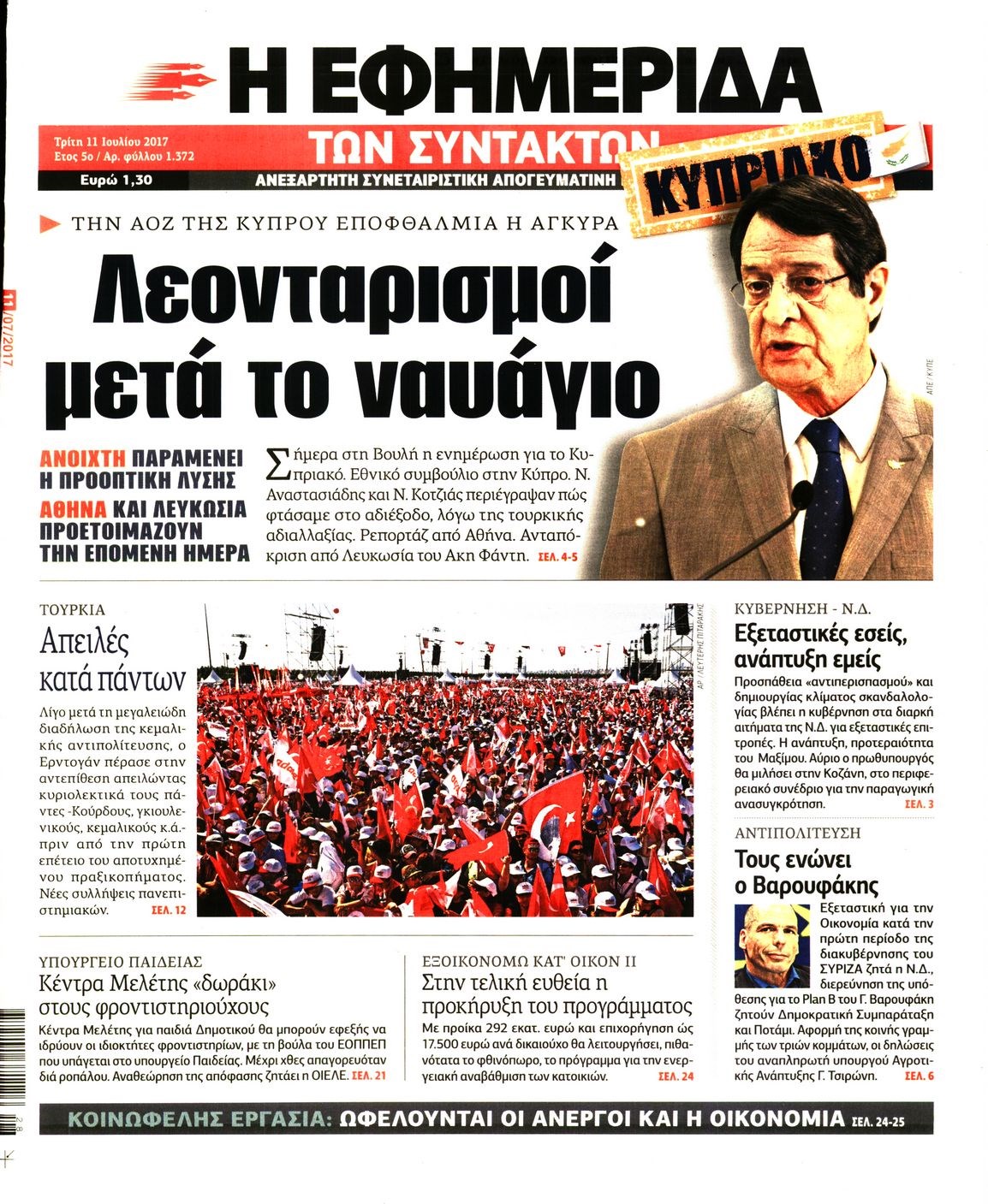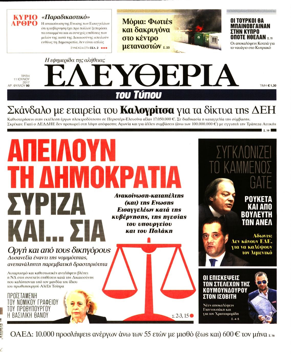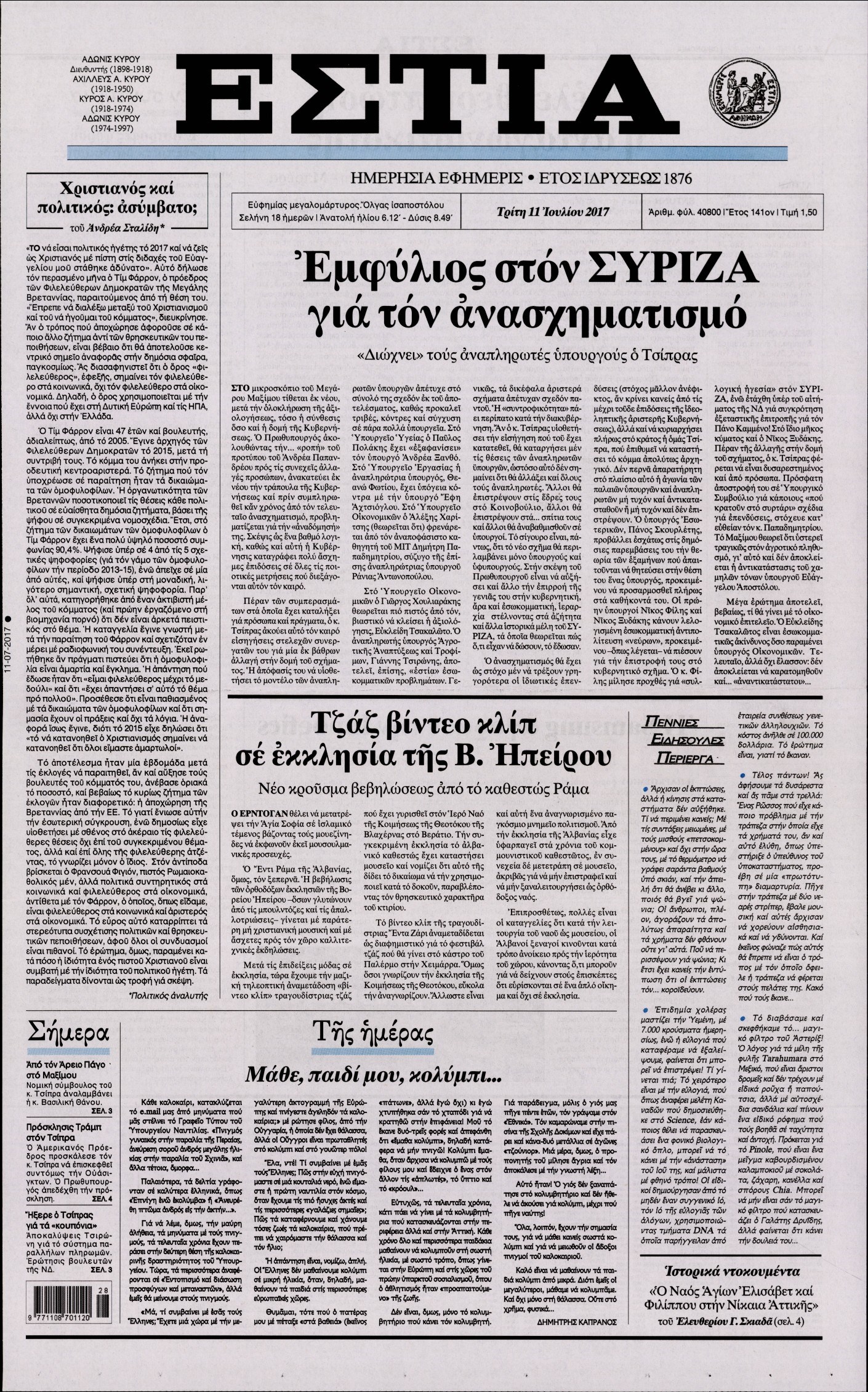 Οι πολιτικές εφημερίδες 11/7/2017 Enikos Newsroom 07:44, Τρίτη 11 Ιουλίου 2017 Media Διαβάστε τα σημερινά πρωτοσέλιδα των πολιτικών εφημερίδων: ΠΟΛΙΤΙΚΕΣ ΕΦΗΜΕΡΙΔΕΣ ΠΡΩΤΟΣΕΛΙΔΑ Μοιράσου το: σχολίασε κι εσύ (0 σχόλια) Ακολουθήστε το enikos.gr στο Google News και μάθετε πρώτοι όλες τις ειδήσεις Δείτε όλες τις τελευταίες ειδήσεις από την Ελλάδα και τον Κόσμο στο enikos.gr Ειδήσεις Ροή Ειδήσεων 2 ώρες πριν Μπλόκα: Οι αγρότες σηκώνουν τις μπάρες σε διόδια για τους εκδρομείς των Χριστουγέννων και μοιράζουν προϊόντα – Βίντεο 2 ώρες πριν Τσιάρας προς αγρότες: Τα μπλόκα και τα πείσματα δεν ωφελούν – Οι λύσεις περνούν μέσα από τον διάλογο 3 ώρες πριν Αρχεία Έπσταϊν: Οι συγκλονιστικές φωτογραφίες – Ο Μάικλ Τζάκσον, ο Μικ Τζάγκερ και ο Κέβιν Σπέισι ανάμεσα στους διάσημους που απεικονίζονται 1 ώρα πριν Μαθητές διακινούσαν κοκαΐνη και χασίς σε σχολείο της Αττικής – 12 συλλήψεις 1 ώρα πριν Βέλγιο: Άγνωστοι έριξαν κόκκινη μπογιά στο προξενείο της Πολωνίας στις Βρυξέλλες 5 ώρες πριν Μία νέα «χρυσή» περίοδος αρχίζει για 3 ζώδια από σήμερα – «Μία αναπάντεχη ευκαιρία οδηγεί στην επιτυχία» 4 ώρες πριν Διαιτολόγος αποκαλύπτει 9 πρωινές συνήθειες που «λιώνουν» το κοιλιακό λίπος – «Υποστηρίζουν την υγιεινή απώλεια βάρους» 5 ώρες πριν Οι 7 φράσεις που δεν λένε ποτέ οι συναισθηματικά έξυπνοι άνθρωποι κατά τη διάρκεια ενός καβγά 7 ώρες πριν Enerwave: Το νέο «ρεύμα» στη λιανική ενέργειας που αλλάζει την εμπειρία του καταναλωτή 44 δευτερόλεπτα πριν Πακιστάν: Σε κάθειρξη 17 ετών καταδικάστηκαν ο πρώην πρωθυπουργός Ίμραν Χαν και η σύζυγός του 9 λεπτά πριν Μαρινάκης στον Realfm 97,8: Η κυβέρνηση σέβεται κάθε λογική διεκδίκηση των αγροτών, αλλά και το αίτημα των πολιτών να μην ταλαιπωρούνται 15 λεπτά πριν O Πάντερ MVP της 17ης αγωνιστικής στην Euroleague 24 λεπτά πριν Πέθανε η τραγουδίστρια Κλαούντια Ντελμέρ 32 λεπτά πριν Μία ανεκμετάλλευτη πηγή θα μπορούσε να προσφέρει ανεξάντλητη ενέργεια – Οι επιστήμονες ίσως γνωρίζουν πώς να την ξεκλειδώσουν ENIKOS NETWORK Η αποχή από την αναπαραγωγή παρατείνει τη ζωή στα ζώα, σύμφωνα με μελέτη – Τι ισχύει για τους ανθρώπους; Σημαντικές επαφές στις ΗΠΑ είχε ο υπουργός Υγείας Άδωνις Γεωργιάδης Ευλογιά αιγοπροβάτων: Παρατεταμένη επιζωοτία, αυστηρά μέτρα – Τι ισχύει για τον εμβολιασμό και την ανασύσταση του ζωικού κε... Τσιάρας προς αγρότες: Έχει ικανοποιηθεί το 74% των αιτημάτων – Τα μπλόκα και τα πείσματα δεν ωφελούν Χαρτογραφώντας το «σημείο χωρίς επιστροφή»: Για πρώτη φορά αποκαλύπτεται με λεπτομέρεια το ακανθώδες όριο της ατμόσφαιρας τ... Η Google καταργεί τη λειτουργία «dark web report» – Πώς θα μπορούν οι χρήστες να διαγράφουν τα δεδομένα τους περισσότερα 14:04 , Σάββατο 20 Δεκεμβρίου 2025 Η Realnews αυτής της Κυριακής (21/12/2025) Με τίτλο: «Ασπίδα προστασίας για την Ελλάδα» κυκλοφορεί, αυτήν την Κυριακή, η Realnews. Σημαντ... 12:53 , Σάββατο 20 Δεκεμβρίου 2025 Να μ’ αγαπάς: Το παρελθόν έρχεται στο φως – Καταιγιστικές εξελίξεις στα τελευταία επεισόδια του 2025 Ο Άγγελος αποκαλύπτεται, η Φωτεινή ανησυχεί για τον Λευτέρη και η Ζωή έρχεται αντιμέτωπη με το... 11:41 , Σάββατο 20 Δεκεμβρίου 2025 «Η αγάπη δεν χάνεται ποτέ»: Η μικρού μήκους ταινία κινουμένων σχεδίων που θέτει ερωτήματα για τη ζωή και τον θάνατο Ο θάνατος είναι ένα από τα πιο σκληρά θέματα που καλείται να διαχειριστεί κάποιος στη διάρκεια... 09:30 , Σάββατο 20 Δεκεμβρίου 2025 «Porto Leone: Στη γειτονιά με τα κόκκινα φανάρια» – Ο Χρόνης αποκαλύπτει στην Αλεξάνδρα το μυστικό για το 
