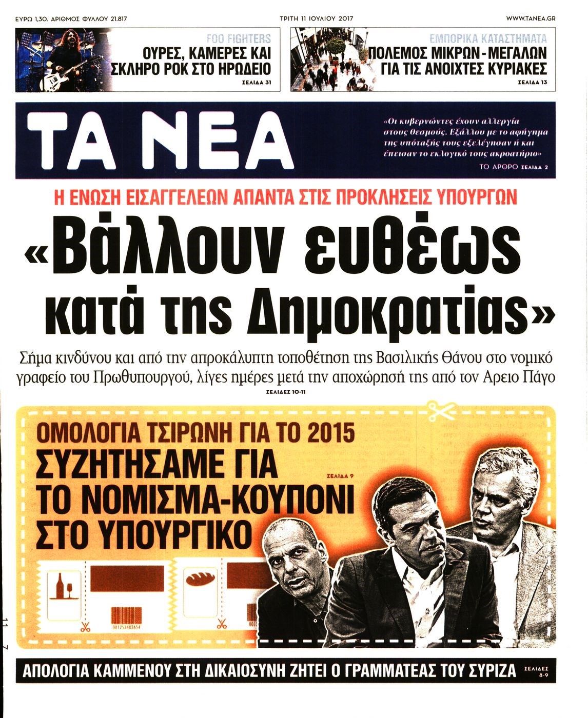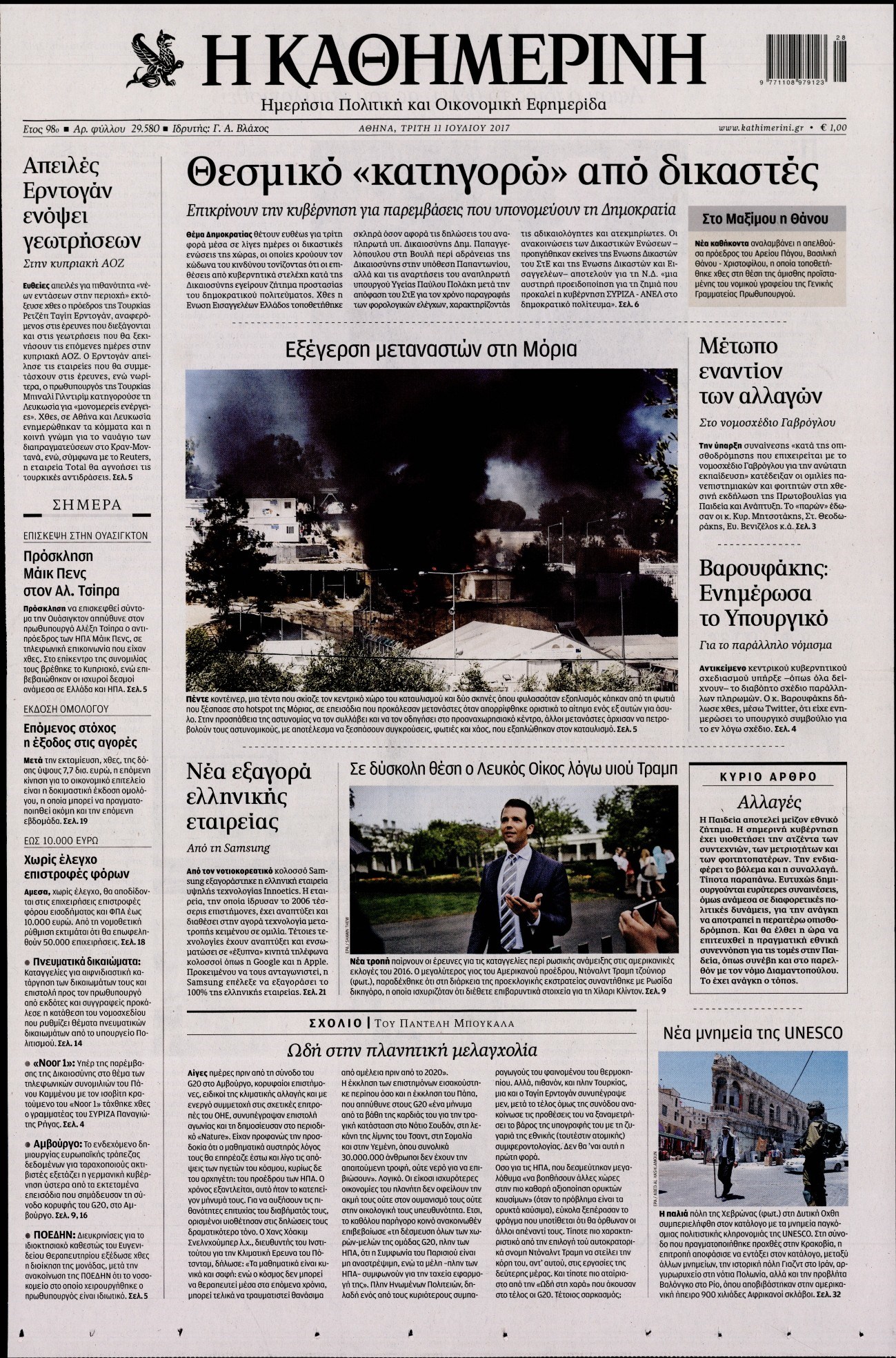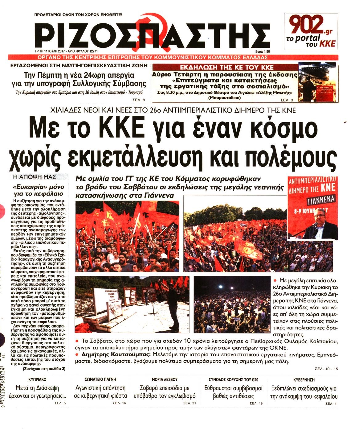 Οι πολιτικές εφημερίδες 11/7/2017 Enikos Newsroom 07:44, Τρίτη 11 Ιουλίου 2017 Media Διαβάστε τα σημερινά πρωτοσέλιδα των πολιτικών εφημερίδων: ΠΟΛΙΤΙΚΕΣ ΕΦΗΜΕΡΙΔΕΣ ΠΡΩΤΟΣΕΛΙΔΑ Μοιράσου το: σχολίασε κι εσύ (0 σχόλια) Ακολουθήστε το enikos.gr στο Google News και μάθετε πρώτοι όλες τις ειδήσεις Δείτε όλες τις τελευταίες ειδήσεις από την Ελλάδα και τον Κόσμο στο enikos.gr Ειδήσεις Ροή Ειδήσεων 2 ώρες πριν Μπλόκα: Οι αγρότες σηκώνουν τις μπάρες σε διόδια για τους εκδρομείς των Χριστουγέννων και μοιράζουν προϊόντα – Βίντεο 2 ώρες πριν Τσιάρας προς αγρότες: Τα μπλόκα και τα πείσματα δεν ωφελούν – Οι λύσεις περνούν μέσα από τον διάλογο 3 ώρες πριν Αρχεία Έπσταϊν: Οι συγκλονιστικές φωτογραφίες – Ο Μάικλ Τζάκσον, ο Μικ Τζάγκερ και ο Κέβιν Σπέισι ανάμεσα στους διάσημους που απεικονίζονται 1 ώρα πριν Μαθητές διακινούσαν κοκαΐνη και χασίς σε σχολείο της Αττικής – 12 συλλήψεις 1 ώρα πριν Βέλγιο: Άγνωστοι έριξαν κόκκινη μπογιά στο προξενείο της Πολωνίας στις Βρυξέλλες 5 ώρες πριν Μία νέα «χρυσή» περίοδος αρχίζει για 3 ζώδια από σήμερα – «Μία αναπάντεχη ευκαιρία οδηγεί στην επιτυχία» 4 ώρες πριν Διαιτολόγος αποκαλύπτει 9 πρωινές συνήθειες που «λιώνουν» το κοιλιακό λίπος – «Υποστηρίζουν την υγιεινή απώλεια βάρους» 5 ώρες πριν Οι 7 φράσεις που δεν λένε ποτέ οι συναισθηματικά έξυπνοι άνθρωποι κατά τη διάρκεια ενός καβγά 7 ώρες πριν Enerwave: Το νέο «ρεύμα» στη λιανική ενέργειας που αλλάζει την εμπειρία του καταναλωτή 44 δευτερόλεπτα πριν Πακιστάν: Σε κάθειρξη 17 ετών καταδικάστηκαν ο πρώην πρωθυπουργός Ίμραν Χαν και η σύζυγός του 9 λεπτά πριν Μαρινάκης στον Realfm 97,8: Η κυβέρνηση σέβεται κάθε λογική διεκδίκηση των αγροτών, αλλά και το αίτημα των πολιτών να μην ταλαιπωρούνται 15 λεπτά πριν O Πάντερ MVP της 17ης αγωνιστικής στην Euroleague 24 λεπτά πριν Πέθανε η τραγουδίστρια Κλαούντια Ντελμέρ 32 λεπτά πριν Μία ανεκμετάλλευτη πηγή θα μπορούσε να προσφέρει ανεξάντλητη ενέργεια – Οι επιστήμονες ίσως γνωρίζουν πώς να την ξεκλειδώσουν ENIKOS NETWORK Η αποχή από την αναπαραγωγή παρατείνει τη ζωή στα ζώα, σύμφωνα με μελέτη – Τι ισχύει για τους ανθρώπους; Σημαντικές επαφές στις ΗΠΑ είχε ο υπουργός Υγείας Άδωνις Γεωργιάδης Ευλογιά αιγοπροβάτων: Παρατεταμένη επιζωοτία, αυστηρά μέτρα – Τι ισχύει για τον εμβολιασμό και την ανασύσταση του ζωικού κε... Τσιάρας προς αγρότες: Έχει ικανοποιηθεί το 74% των αιτημάτων – Τα μπλόκα και τα πείσματα δεν ωφελούν Χαρτογραφώντας το «σημείο χωρίς επιστροφή»: Για πρώτη φορά αποκαλύπτεται με λεπτομέρεια το ακανθώδες όριο της ατμόσφαιρας τ... Η Google καταργεί τη λειτουργία «dark web report» – Πώς θα μπορούν οι χρήστες να διαγράφουν τα δεδομένα τους περισσότερα 14:04 , Σάββατο 20 Δεκεμβρίου 2025 Η Realnews αυτής της Κυριακής (21/12/2025) Με τίτλο: «Ασπίδα προστασίας για την Ελλάδα» κυκλοφορεί, αυτήν την Κυριακή, η Realnews. Σημαντ... 12:53 , Σάββατο 20 Δεκεμβρίου 2025 Να μ’ αγαπάς: Το παρελθόν έρχεται στο φως – Καταιγιστικές εξελίξεις στα τελευταία επεισόδια του 2025 Ο Άγγελος αποκαλύπτεται, η Φωτεινή ανησυχεί για τον Λευτέρη και η Ζωή έρχεται αντιμέτωπη με το... 11:41 , Σάββατο 20 Δεκεμβρίου 2025 «Η αγάπη δεν χάνεται ποτέ»: Η μικρού μήκους ταινία κινουμένων σχεδίων που θέτει ερωτήματα για τη ζωή και τον θάνατο Ο θάνατος είναι ένα από τα πιο σκληρά θέματα που καλείται να διαχειριστεί κάποιος στη διάρκεια... 09:30 , Σάββατο 20 Δεκεμβρίου 2025 «Porto Leone: Στη γειτονιά με τα κόκκινα φανάρια» – Ο Χρόνης αποκαλύπτει στην Αλεξάνδρα το μυστικό για το 