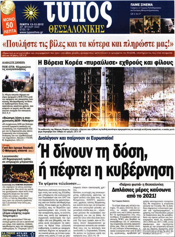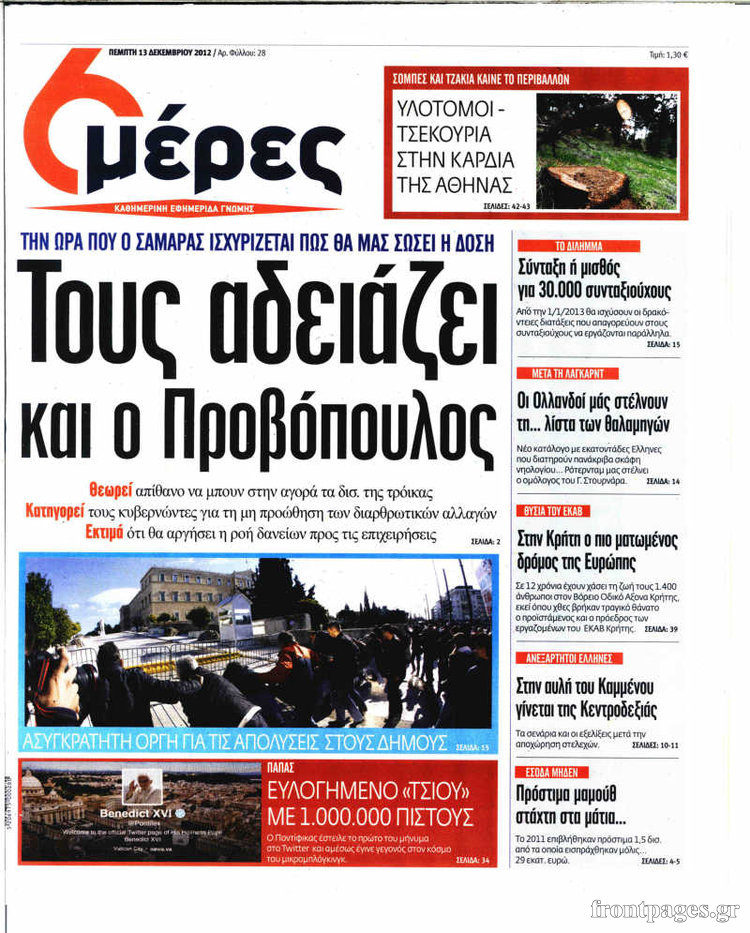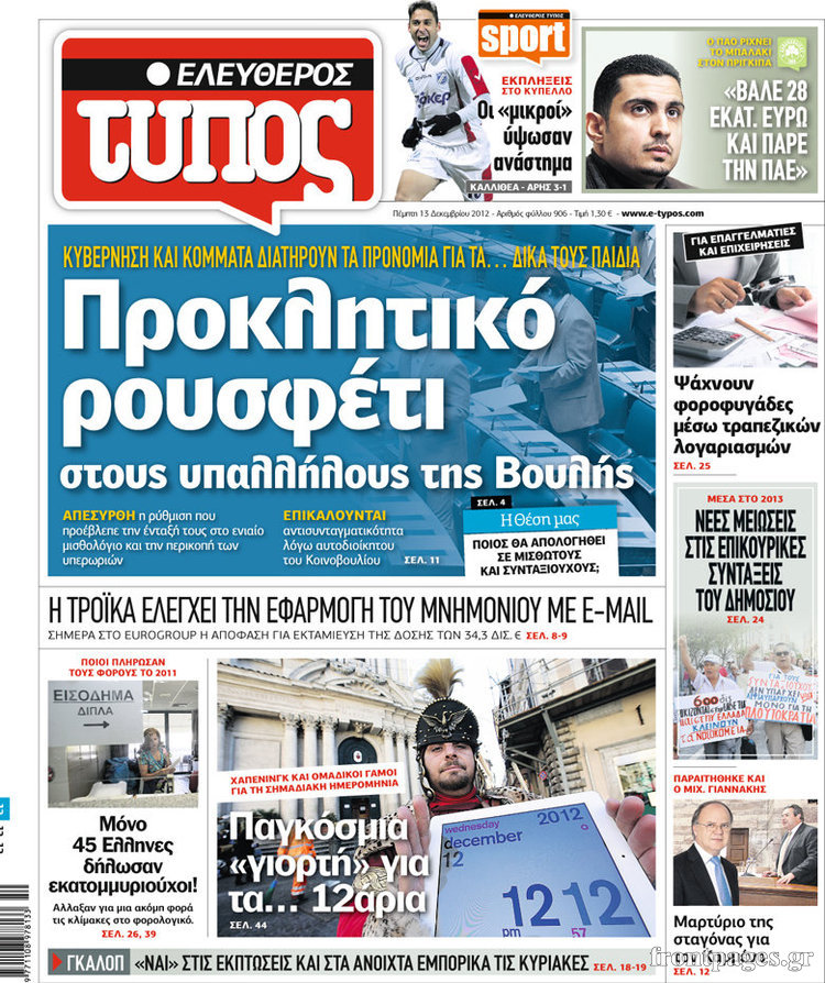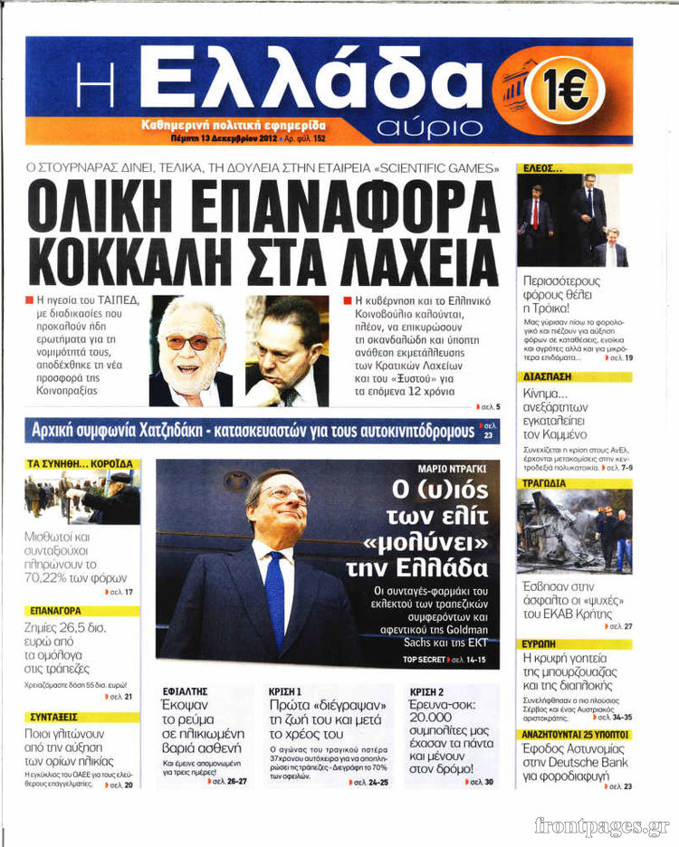 Οι πολιτικές εφημερίδες Enikos Newsroom 09:10, Πέμπτη 13 Δεκεμβρίου 2012 Media Οι πολιτικές εφημερίδες Τα πρωτοσέλιδα των πολιτικών εφημερίδων. ΕΦΗΜΕΡΙΔΕΣ ΟΙ ΠΟΛΙΤΙΚΕΣ ΕΦΗΜΕΡΙΔΕΣ ΠΡΩΤΟΣΕΛΙΔΑ Μοιράσου το: σχολίασε κι εσύ (0 σχόλια) Ακολουθήστε το enikos.gr στο Google News και μάθετε πρώτοι όλες τις ειδήσεις Δείτε όλες τις τελευταίες ειδήσεις από την Ελλάδα και τον Κόσμο στο enikos.gr Ειδήσεις Ροή Ειδήσεων 3 ώρες πριν Αγρότες: Σήκωσαν τις μπάρες στα διόδια των Αφιδνών – ΦΩΤΟ και ΒΙΝΤΕΟ 6 ώρες πριν Διάλογοι-σοκ από το κύκλωμα που διακινούσε ναρκωτικά σε σχολεία – «Αν δεν είσαι εκεί σε 5 λεπτά, θα φας πολύ ξύλο μπρο» 3 ώρες πριν Κωνσταντίνος Ανεστίδης: «Είμαι αθώος, είμαι καθαρός σαν αστραπή και η αστραπή θα πέσει στο κεφάλι τους» – ΒΙΝΤΕΟ 4 ώρες πριν Εγκαινιάστηκε ο αρχαιολογικός χώρος του Ανακτόρου της Πέλλας – Παρουσιάστηκαν για πρώτη φορά δύο ελληνιστικά αγάλματα 4 ώρες πριν Δήμος Αθηναίων: Ξεκινά τη Δευτέρα η επιστροφή πινακίδων οχημάτων από τη Δημοτική Αστυνομία 6 ώρες πριν Αν ανήκετε σε ένα από αυτά τα 3 ζώδια, το 2026 θα είναι η χρονιά σας – «Η ζωή σας βελτιώνεται σε όλους τους τομείς» 3 ώρες πριν Είσοδος σπιτιού: Πώς να οργανώσετε το χώρο πριν έρθουν οι καλεσμένοι σας – Η ρουτίνα 3 βημάτων 2 ώρες πριν Οι άνθρωποι που βιώνουν χρόνια μοναξιά, κάνουν αυτά τα 7 πράγματα τα Χριστούγεννα, χωρίς να το καταλαβαίνουν 2 ημέρες πριν Enerwave: Το νέο «ρεύμα» στη λιανική ενέργειας που αλλάζει την εμπειρία του καταναλωτή 6 λεπτά πριν ΠΑΟΚ – Παναθηναϊκός 2-0: Βραδινός… περίπατος για τον Δικέφαλο του Βορρά 16 λεπτά πριν Μαριέτα Γκεοργκίεβα: Έγινε η πρώτη γυναίκα από τη Βουλγαρία που ολοκλήρωσε τη διαδρομή από την «τελευταία μοίρα» μέχρι τον Νότιο Πόλο 26 λεπτά πριν Βρετανία: Τηλεφωνική επικοινωνία Στάρμερ – Τραμπ για τον πόλεμο στην Ουκρανία 36 λεπτά πριν Λαμία: Αποχώρησαν οι αγρότες από τα διόδια Τραγάνας 44 λεπτά πριν Αριθμολογία: Οι άνθρωποι που έχουν γεννηθεί αυτές τις 4 ημερομηνίες, είναι οι πιο πιστοί και αφοσιωμένοι σύντροφοι ENIKOS NETWORK Οι γυναίκες έχουν βρει μια νέα απόλαυση στην κρεβατοκάμαρα που οι περισσότεροι άνδρες αγνοούν Christmas glow: 5 χρυσές συμβουλές για επιδερμίδα που λάμπει από ομορφιά τα Χριστούγεννα Πόσο θα αυξηθούν οι μισθοί στον ιδιωτικό τομέα από το 2026 – Πού θα φτάσει ο κατώτατος Λιανεμπόριο: Οι προσδοκίες της αγοράς για τα Χριστούγεννα – Στόχος ο τζίρος να ξεπεράσει τα 4,5 δισ. ευρώ τον Δεκέμβριο Χαρτογραφώντας το «σημείο χωρίς επιστροφή»: Για πρώτη φορά αποκαλύπτεται με λεπτομέρεια το ακανθώδες όριο της ατμόσφαιρας τ... Η Google καταργεί τη λειτουργία «dark web report» – Πώς θα μπορούν οι χρήστες να διαγράφουν τα δεδομένα τους περισσότερα 17:18 , Κυριακή 21 Δεκεμβρίου 2025 «Η Μεγάλη Χίμαιρα»: Μάγεψε το κοινό κατά την avant-première της προβολής της Την Πρωτοχρονιά (Πέμπτη 1η Ιανουαρίου 2026) στο ERTFLIX θα γίνει η πρεμιέρα της πολυαναμενόμεν... 15:08 , Κυριακή 21 Δεκεμβρίου 2025 Μια νύχτα μόνο: Η Αρετή και ο Οδυσσέας έρχονται και πάλι κοντά Το νέο επεισόδιο της δραματικής σειράς του MEGA «Μια νύχτα μόνο», θα προβληθεί απόψε Κυριακή 2... 14:24 , Κυριακή 21 Δεκεμβρίου 2025 IQ 160: Ο φάκελος με το τεστ πατρότητας ανοίγει, απόψε στις 21:00 στο Star Ανατρεπτικό το νέο διπλό επεισόδιο της σειράς “IQ 160” στις 21:00 στο Star. Ο Τηλέ... 09:43 , Κυριακή 21 Δεκεμβρίου 2025 Το λάθος στην ταινία Die Hard που άφησε άναυδους τους θαυμαστές του Μπρους Γουίλις Ένας φανατικός των ταινιών άφησε άναυδους τους θαυμαστές του Die Hard, επισημαίνοντας τρία βασ... ΤΕΛΕΥΤ
