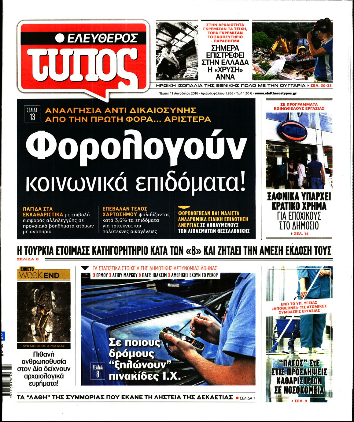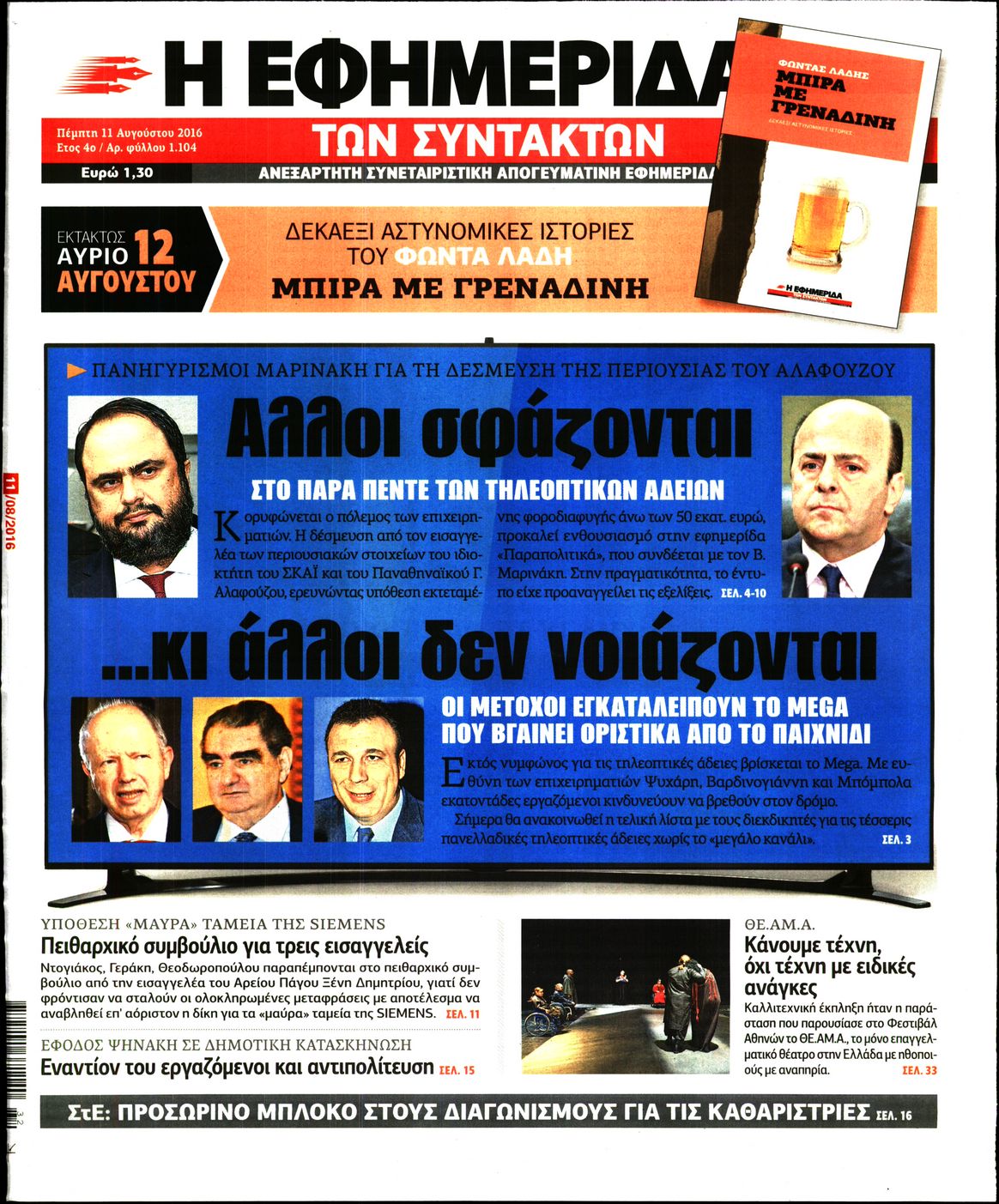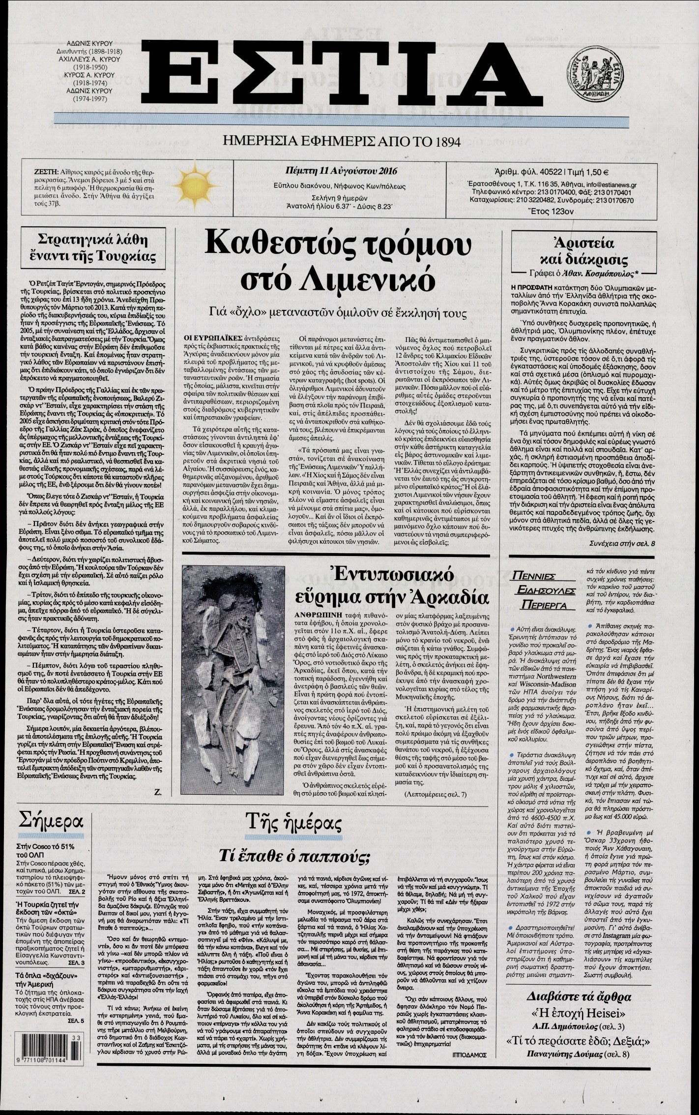 Οι πολιτικές εφημερίδες 11/8/2016 Enikos Newsroom 06:14, Πέμπτη 11 Αυγούστου 2016 Media Διαβάστε τα σημερινά πρωτοσέλιδα των πολιτικών εφημερίδων: ΠΟΛΙΤΙΚΕΣ ΕΦΗΜΕΡΙΔΕΣ ΠΡΩΤΟΣΕΛΙΔΑ Μοιράσου το: σχολίασε κι εσύ (0 σχόλια) Ακολουθήστε το enikos.gr στο Google News και μάθετε πρώτοι όλες τις ειδήσεις Δείτε όλες τις τελευταίες ειδήσεις από την Ελλάδα και τον Κόσμο στο enikos.gr Ειδήσεις Ροή Ειδήσεων 14 λεπτά πριν Ευρωπαϊκή Ένωση: Συμφωνία για δάνειο 90 δισ. ευρώ στην Ουκρανία τη διετία 2026-2027 5 ώρες πριν ΟΠΕΚΕΠΕ: Προφυλακιστέος ο φερόμενος αρχηγός και ο λογιστής της εγκληματικής οργάνωσης 6 ώρες πριν Αυξάνουν την πίεση προς την κυβέρνηση οι αγρότες: Κλείνουν παρακαμπτήριους και ανοίγουν διόδια – Τι θα γίνει τις γιορτές 6 ώρες πριν Φοινικούντα: Το Σάββατο απολογείται ο 30χρονος γιος γνωστού επιχειρηματία της Πλάκας που παραδόθηκε – Όσα είπε στους αστυνομικούς και ο ρόλος του στο έγκλημα 4 ώρες πριν ΑΕΚ – Κραϊόβα 3-2: Επική ανατροπή και πρόκριση στους «16» του Conference League η Ένωση 5 ώρες πριν Αρχαιολόγοι ανακάλυψαν ρωμαϊκά τεχνουργήματα από μια πόλη που δεν υπήρξε ποτέ – Τα τρία εντυπωσιακά κτίρια και ο αμφορέας με τις… σαρδέλες 6 ώρες πριν Ύπνος: Η απλή βραδινή ρουτίνα για να προστατεύσετε τα μαλλιά σας από το κρύο κατά τη διάρκεια του χειμώνα 7 ώρες πριν Manifesting: Πώς να συναντήσετε τον σύντροφο της ζωής σας, ανάλογα με τον μήνα γέννησής σας 2 ημέρες πριν 20 χρόνια τα Χριστούγεννα ξεκινούν στα Public με μεγάλη ποικιλία σε δώρα! 2 λεπτά πριν Γουατεμάλα: Εξαρθρώθηκε κύκλωμα διακίνησης μεταναστών προς τις ΗΠΑ – Συνελήφθησαν 14 άτομα 7 λεπτά πριν Βουλγαρία: Χιλιάδες πολίτες στους δρόμους κατά της απερχόμενης κυβέρνησης και της διαφθοράς 14 λεπτά πριν Ευρωπαϊκή Ένωση: Συμφωνία για δάνειο 90 δισ. ευρώ στην Ουκρανία τη διετία 2026-2027 37 λεπτά πριν Αιματηρή βομβιστική επίθεση στην Υεμένη: Τουλάχιστον τρεις νεκροί και 13 τραυματίες 41 λεπτά πριν Στη Φλόριντα σήμερα οι διαβουλεύσεις σχετικά με τα επόμενα στάδια για τη Λωρίδα της Γάζας ENIKOS NETWORK Σε περίοδο αυξημένης δραστηριότητας η γρίπη στην Ελλάδα-Μέτρα προστασίας από τον ΕΟΔΥ Σκέφτεστε συνέχεια συζητήσεις που έχετε κάνει; Τι σημαίνει αυτό, σύμφωνα με ειδικό Στεγαστικό: Τι λέει η ΠΟΜΙΔΑ για τα νέα μέτρα που ανακοίνωσε ο Κυριάκος Μητσοτάκης Λαγκάρντ: Αισιόδοξη για την ανάπτυξη της Ευρωζώνης, αβέβαιη για τον πληθωρισμό Χαρτογραφώντας το «σημείο χωρίς επιστροφή»: Για πρώτη φορά αποκαλύπτεται με λεπτομέρεια το ακανθώδες όριο της ατμόσφαιρας τ... Η Google καταργεί τη λειτουργία «dark web report» – Πώς θα μπορούν οι χρήστες να διαγράφουν τα δεδομένα τους περισσότερα 02:50 , Παρασκευή 19 Δεκεμβρίου 2025 GNTM: «Κλείδωσαν» οι τέσσερις φιναλίστ – Μεγάλη ανατροπή στις τελευταίες αποχωρήσεις Για προτελευταία φορά εμφανίστηκαν στο πλατό του GNTM οι φιναλίστ του φετινού κύκλου, το βράδυ... 17:45 , Πέμπτη 18 Δεκεμβρίου 2025 ROUK ZOUK: Εορταστικό επεισόδιο με καλεσμένους τους πρωταγωνιστές του «Γιατί ρε πατέρα» Το Σάββατο 20 Δεκεμβρίου στις 21:00, η Ζέτα Μακρυπούλια υποδέχεται εκλεκτούς ηθοποιούς που όλο... 17:20 , Πέμπτη 18 Δεκεμβρίου 2025 Άγιος έρωτας: Η Χριστίνα εξομολογείται στον πατέρα Νικόλαο, απόψε στις 21:00 στον Alpha Η Νότα αποφασίζει να εκδικηθεί τον Πέτρο και τον Στέφανο, για χάρη του Λούη, όμως τα πράγματα ... 16:50 , Πέμπτη 18 Δεκεμβρίου 2025 Να μ’ αγαπάς: Ζωή και Φωτεινή συμφιλιώνονται ως μάνα με κόρη, απόψε στις 20:00 Η ταυτότητα του Άγγελου αποκαλύπτεται στο νέο επεισόδιο της σειράς “Να μ’ αγαπάς... ΤΕΛΕΥΤ