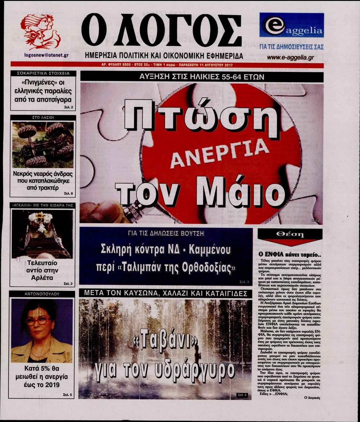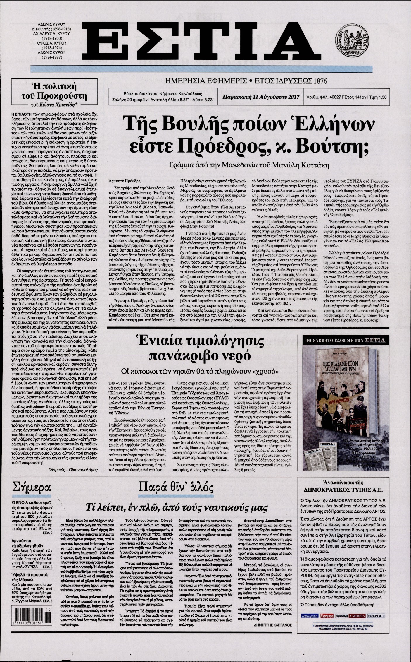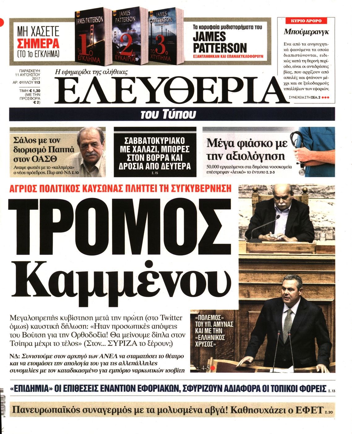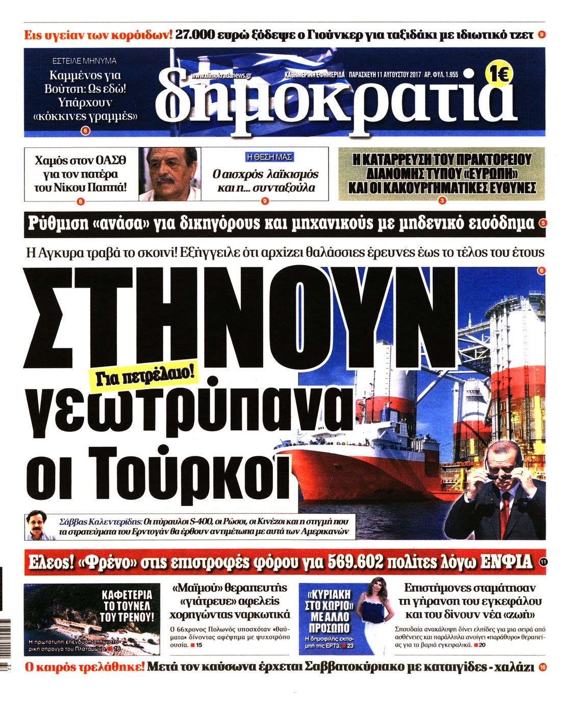 Οι πολιτικές εφημερίδες 11/8/2017 Κώστας Τεό 06:59, Παρασκευή 11 Αυγούστου 2017 Media Διαβάστε τα σημερινά πρωτοσέλιδα των πολιτικών εφημερίδων: ΠΟΛΙΤΙΚΕΣ ΕΦΗΜΕΡΙΔΕΣ ΠΡΩΤΟΣΕΛΙΔΑ Μοιράσου το: σχολίασε κι εσύ (0 σχόλια) Ακολουθήστε το enikos.gr στο Google News και μάθετε πρώτοι όλες τις ειδήσεις Δείτε όλες τις τελευταίες ειδήσεις από την Ελλάδα και τον Κόσμο στο enikos.gr Ειδήσεις Ροή Ειδήσεων 1 ώρα πριν Μεσόγειος: Η διαδρομή του ρωσικού τάνκερ «Qendil» και η στοχευμένη επίθεση της Ουκρανίας με drone – Ο Πούτιν προειδοποίησε για αντίποινα 1 ώρα πριν Αττική: Θρίλερ με νεκρό βρέφος 5 μηνών – Κοιμόταν στο ίδιο κρεβάτι με τους γονείς του 2 ώρες πριν Από το Ορμένιο ως τα Μάλγαρα κι από τη Σιάτιστα μέχρι τη Νίκαια: Μπλόκα σε όλη την Ελλάδα – Το Σάββατο ανοίγουν τα διόδια οι αγρότες 2 ώρες πριν «Έλληνας Εσκομπάρ»: Φωτογραφίες με τους 4 τόνους κοκαΐνης που κατασχέθηκαν από το σκάφος «Ουρανία» 4 ώρες πριν Πούτιν: Σαρκαστικά μηνύματα, παράπονα και απρόοπτα στη συνέντευξη Τύπου – Η πρόταση γάμου on air και οι ερωτήσεις για τα αγγούρια και τους… εξωγήινους 3 ώρες πριν Τα 5 ζώδια που ευνοούνται στην ερωτική ζωή τους την επόμενη εβδομάδα – «Η ενέργεια του Αιγόκερου φέρνει αγάπη και σταθερότητα» 7 ώρες πριν Ειδικός μοιράζεται 6 κόλπα για να διατηρείστε σε φόρμα με πάνω από 40 ώρες εργασίας την εβδομάδα: «Προπονηθείτε πριν από τη δουλειά, όχι μετά» 4 ώρες πριν Αυτό το έξυπνο μαθηματικό κόλπο θα μπορούσε να αλλάξει τον τρόπο με τον οποίο οι επιστήμονες μελετούν τους σεισμούς 2 ώρες πριν Κουίζ για την παλιά Αθήνα: Αναγνωρίζετε την περιοχή; Έχετε περάσει 100% από εκεί 4 λεπτά πριν Νέα σειρά γραμματοσήμων «ΕΛΠΙΔΑ-Μαριάννα Β. Βαρδινογιάννη» 8 λεπτά πριν Ιταλία: Με εισιτήριο από την 1η Φεβρουαρίου 2026 η πρόσβαση στη Φοντάνα ντι Τρέβι – Πόσο θα κοστίζει 16 λεπτά πριν Μήπως έχετε χάσει τον εαυτό σας στη σχέση σας; 7 «αθόρυβες» υποχωρήσεις που μάλλον κάνατε, χωρίς να το συνειδητοποιήσετε 22 λεπτά πριν Λάρισα: Ασθενοφόρο έπεσε πάνω σε κλούβα της ΕΛ.ΑΣ στον Πλατύκαμπο – Τραυματίστηκε ο συνοδηγός – ΒΙΝΤΕΟ 28 λεπτά πριν Τέμπη: Διεκόπη για τις 9 Ιανουαρίου η δίκη για τα χαμένα βίντεο της εμπορικής αμαξοστοιχίας – «Απαιτούμε να μας σέβονται» ENIKOS NETWORK «Η σούπερ» γρίπη εξαπλώνεται στην Ευρώπη-Στοιχεία από το ECDC για την αποτελεσματικότητα του εμβολίου ΕΛΣΤΑΤ: Αύξηση κατά 1,7% των επαγγελματιών υγείας το 2024 Προκήρυξη ΑΣΕΠ για 397 μόνιμες προσλήψεις στο Δημόσιο: Βγήκαν τα προσωρινά αποτελέσματα – Πότε αρχίζει η υποβολή ενστάσεων Η απάντηση της κυβέρνησης στα αιτήματα των αγροτών: 16 έχουν ικανοποιηθεί, 4 βρίσκονται υπό επεξεργασία και 7 δεν είναι εφι... Χαρτογραφώντας το «σημείο χωρίς επιστροφή»: Για πρώτη φορά αποκαλύπτεται με λεπτομέρεια το ακανθώδες όριο της ατμόσφαιρας τ... Η Google καταργεί τη λειτουργία «dark web report» – Πώς θα μπορούν οι χρήστες να διαγράφουν τα δεδομένα τους περισσότερα 18:11 , Παρασκευή 19 Δεκεμβρίου 2025 Το σόι σου: Ο Άρης έρχεται στην Ελλάδα για τις γιορτές των Χριστουγέννων – Τι θα δούμε στο αποψινό εορταστικό επεισόδιο Ένα απολαυστικό, εορταστικό επεισόδιο της σειράς “Το σόι σου”, γεμάτο ευτράπελα αλ... 15:15 , Παρασκευή 19 Δεκεμβρίου 2025 Την Κυριακή με τη Realnews: Ό,τι και αν αγοράσεις, σκανάρεις και κερδίζεις! Την Κυριακή με τη Realnews: Ό,τι και αν αγοράσεις, σκανάρεις και κερδίζεις! Με το PADU app, το... 08:00 , Παρασκευή 19 Δεκεμβρίου 2025 Την Κυριακή με τη Realnews: Δωροεπιταγή 10€ Δωροεπιταγή αξίας 10€ για αγορές άνω των 60€ από τα 