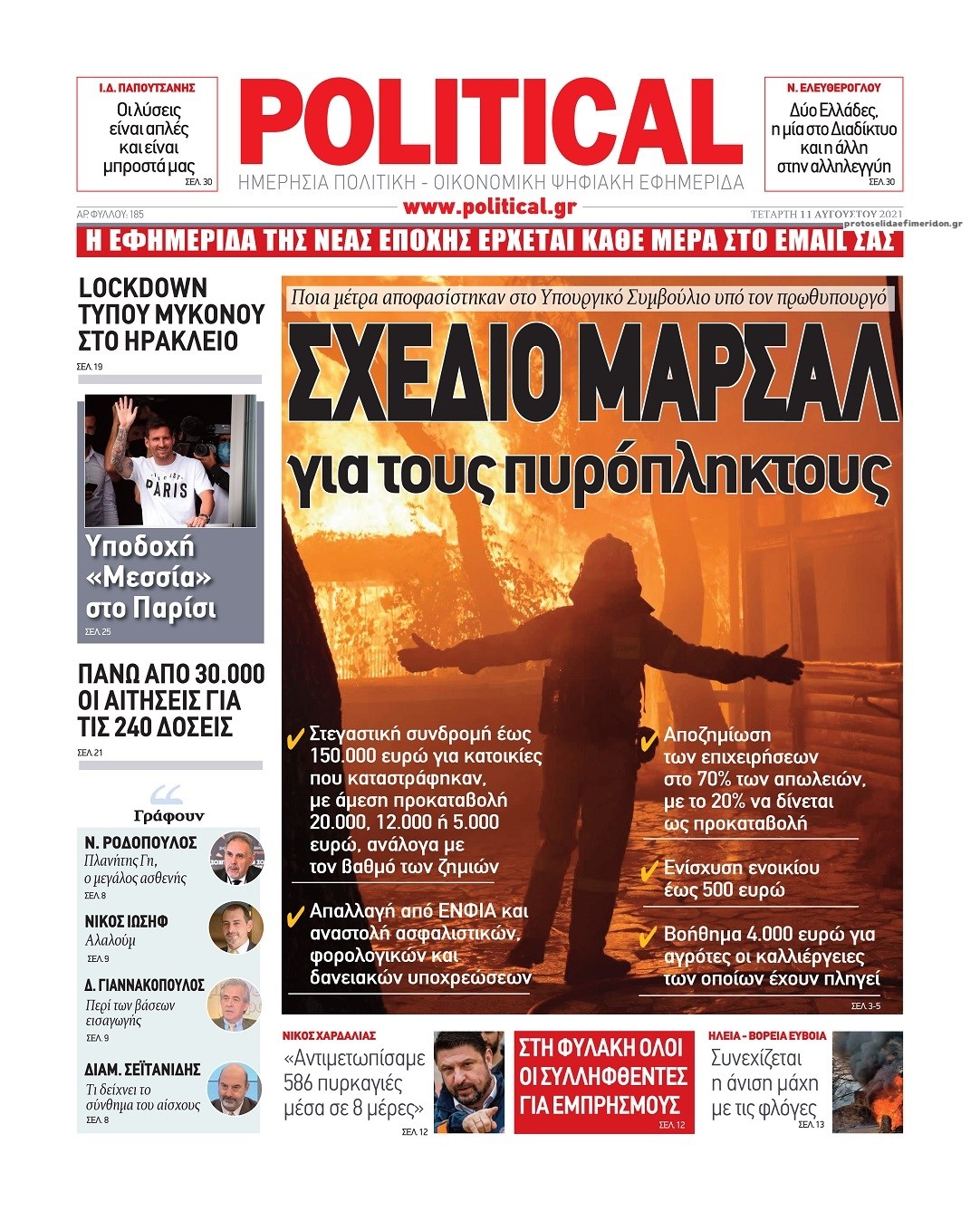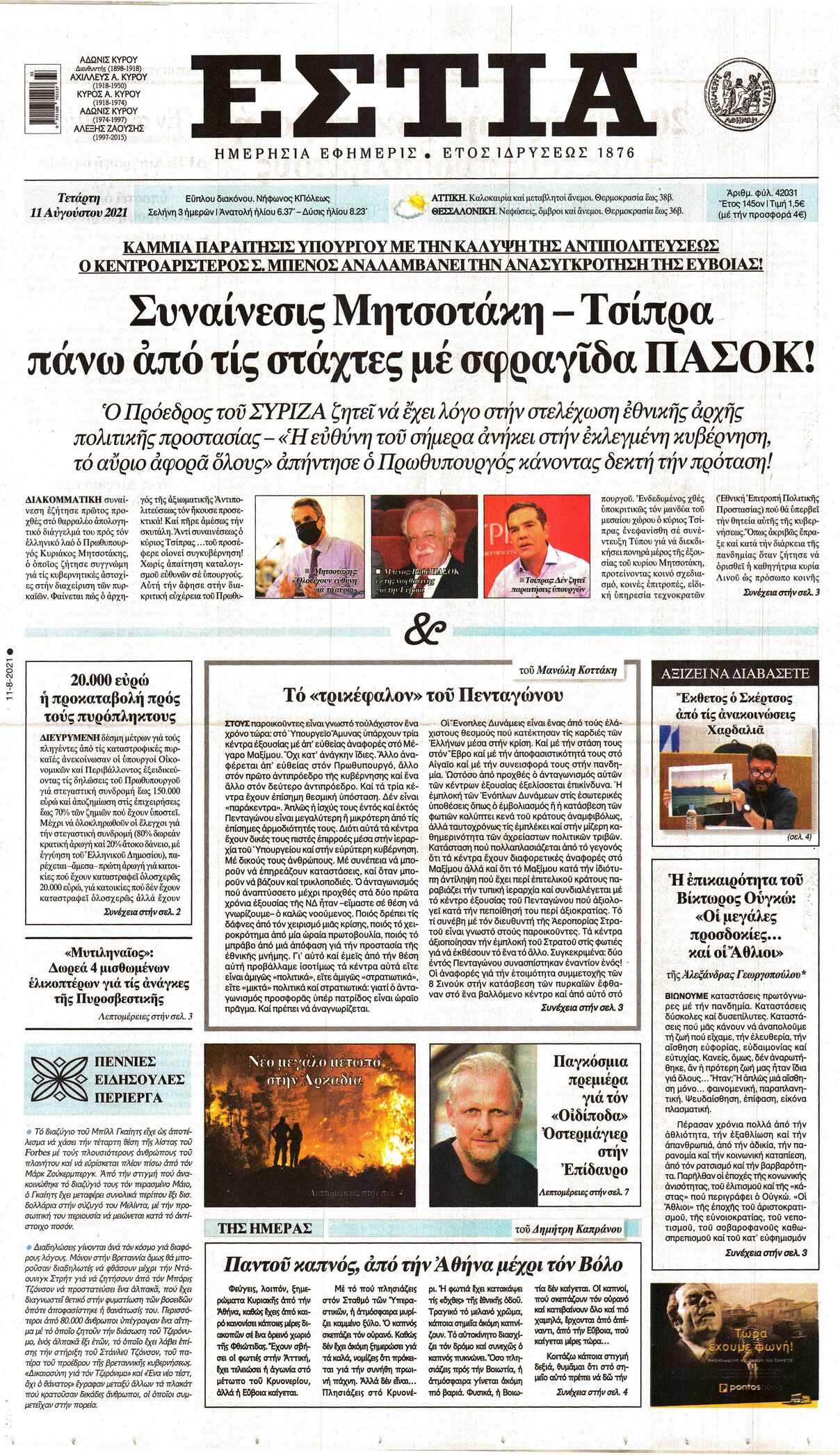 Οι πολιτικές εφημερίδες 11/8/2021 Σήφης Γαρυφαλάκης 06:41, Τετάρτη 11 Αυγούστου 2021 Media Διαβάστε τα πρωτοσέλιδα των πολιτικών εφημερίδων. ΕΦΗΜΕΡΙΔΕΣ ΠΟΛΙΤΙΚΕΣ ΕΦΗΜΕΡΙΔΕΣ ΠΡΩΤΟΣΕΛΙΔΑ ΠΡΩΤΟΣΕΛΙΔΑ ΕΦΗΜΕΡΙΔΩΝ Μοιράσου το: σχολίασε κι εσύ (0 σχόλια) Ακολουθήστε το enikos.gr στο Google News και μάθετε πρώτοι όλες τις ειδήσεις Δείτε όλες τις τελευταίες ειδήσεις από την Ελλάδα και τον Κόσμο στο enikos.gr Ειδήσεις Ροή Ειδήσεων 5 ώρες πριν Εκτός ευρωομάδας ΣΥΡΙΖΑ ο Νίκος Παππάς μετά την επίθεση στον δημοσιογράφο Νίκο Γιαννόπουλο – Η μήνυση και οι νέες δηλώσεις 6 ώρες πριν «Αγριεύουν» οι αγρότες: «Δεν συντρέχει λόγος συνάντησης με τον πρωθυπουργό» – Ώρα αποφάσεων στη σύσκεψη της Πέμπτης 6 ώρες πριν Κυψέλη: Χωρίς την οικογένειά της δίπλα της απολογήθηκε η 16χρονη – «Της είχε επιτεθεί κάποιος για να την βιάσει, φοβήθηκε και κυκλοφορούσε με μαχαίρι» 5 ώρες πριν Politico: Το πρόβλημα της Ευρώπης δεν είναι το Βέλγιο αλλά ο Ντόναλντ Τραμπ 7 ώρες πριν Αλεξανδρούπολη: Πολυοργανική ανεπάρκεια λόγω υποσιτισμού η αιτία θανάτου του 3χρονου αγοριού 6 ώρες πριν Μυστήριο με τεράστιες κυκλικές πέτρες 200 κιλών – Ανακαλύφθηκαν τυχαία κατά τη διάρκεια οδικών έργων και κανείς δεν ξέρει από πού προέρχονται 7 ώρες πριν Ύπνος: Ειδικός εξηγεί τον πραγματικό λόγο που ξυπνάτε στις 4 τα ξημερώματα – Ο ρόλος των ορμονών και του κιρκάδιου ρυθμού 8 ώρες πριν Αριθμολογία: Οι άνθρωποι που έχουν γεννηθεί αυτές τις 4 ημερομηνίες, είναι τρυφεροί και αγαπούν ανιδιοτελώς 19 ώρες πριν 20 χρόνια τα Χριστούγεννα ξεκινούν στα Public με μεγάλη ποικιλία σε δώρα! 8 λεπτά πριν Κτηνοτρόφοι: Με δάκρυα στα μάτια ζουν τον εφιάλτη των άδειων στάβλων – «Καταστράφηκαν οι ζωές μας» 22 λεπτά πριν Νέο αμερικανικό πλήγμα σε σκάφος που φέρεται να μετέφερε ναρκωτικά στον Ειρηνικό – Τέσσερις νεκροί 38 λεπτά πριν Αλ Τσαντίρι Νιουζ: «Λύγισε» ο Δημήτρης Λάλος για τον Δημήτρη Ήμελλο – «Τον μνημονεύω, να ‘ναι καλά εκεί που είναι» 52 λεπτά πριν GNTM: Με δάκρυα τον αποχαιρέτησε η Ηλιάνα Παπαγεωργίου πριν από τον ημιτελικό – «Αισθάνομαι πολύ παράξενα» 1 ώρα πριν Αμερικανικά στρατεύματα στον Ισημερινό για «προσωρινή» επιχείρηση κατά των ναρκωτικών ENIKOS NETWORK Αϋπνία: Το κόλπο που θα σας βοηθήσει να κοιμηθείτε απόψε – Είναι απλό και έχει αποτέλεσμα 2,6 εκατομμύρια πολίτες έχουν ήδη εμβολιαστεί κατά της γρίπης ΕΛΣΤΑΤ: Τι δείχνουν τα νέα στοιχεία για τις ηλεκτρονικές παραγγελίες των επιχειρήσεων ΚΕΠΕ: Οι 3 διακριτές συμβολές των ΜμΕ και της μεταποίησης στην ελληνική οικονομία Χαρτογραφώντας το «σημείο χωρίς επιστροφή»: Για πρώτη φορά αποκαλύπτεται με λεπτομέρεια το ακανθώδες όριο της ατμόσφαιρας τ... Η Google καταργεί τη λειτουργία «dark web report» – Πώς θα μπορούν οι χρήστες να διαγράφουν τα δεδομένα τους περισσότερα 02:30 , Πέμπτη 18 Δεκεμβρίου 2025 Αλ Τσαντίρι Νιουζ: Η κόρη της Πάολα στο κοινό – Η ατάκα Λαζόπουλου που την έκανε να «κοκκινήσει» Γιορτινή διάθεση και ευχάριστες στιγμές γέμισε η αποψινή, τελευταία για το 2025, εκπομπή του «... 22:24 , Τετάρτη 17 Δεκεμβρίου 2025 Το Σπίτι Δίπλα Στο Ποτάμι: Σε κίνδυνο η υγεία του Απόστολου – Τι θα δούμε απόψε “Το Σπίτι Δίπλα στο Ποτάμι” ξετυλίγει το νήμα της ζωής των πέντε αδελφών με καταισ... 21:14 , Τετάρτη 17 Δεκεμβρίου 2025 Παιχνίδια Εκδίκησης: Θα καταφέρει ο Χρήστος να κλονίσει την εμπιστοσύνη της Μάγιας απέναντι στον Άγη; Τα «Παιχνίδια Εκδίκησης» έρχονται απόψε στις 22:30, στον Αντ1, με το τελευταίο επεισόδιο της χ... 20:57 , Τετάρτη 1