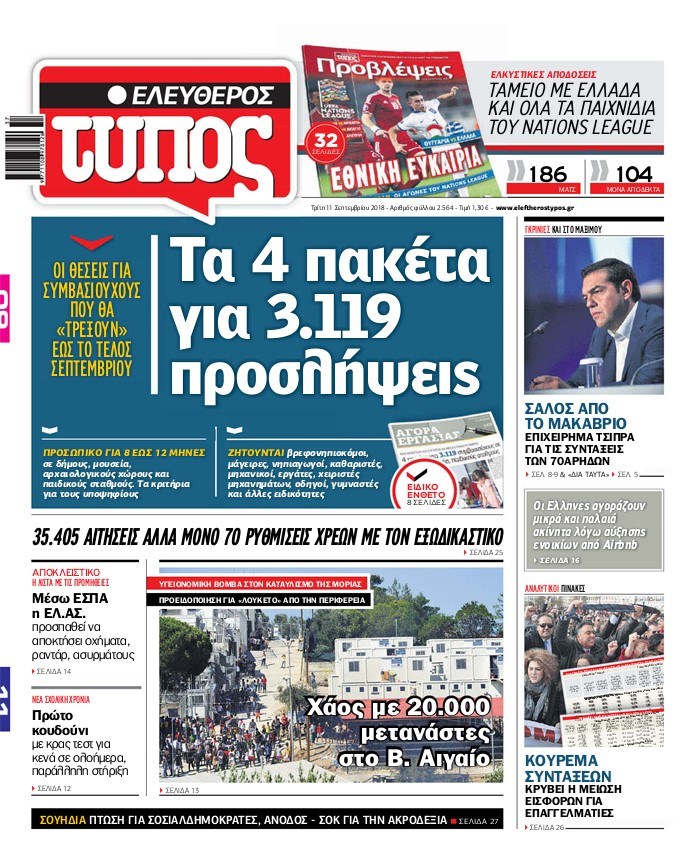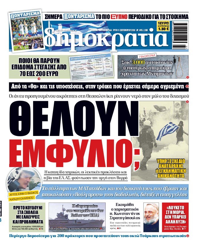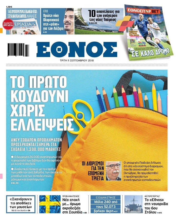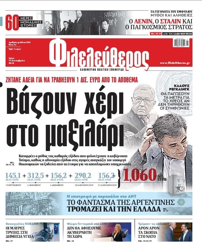 Οι πολιτικές εφημερίδες 11/9/2018 Κώστας Τεό 06:26, Τρίτη 11 Σεπτεμβρίου 2018 Media Διαβάστε τα σημερινά πρωτοσέλιδα των πολιτικών εφημερίδων: ΠΟΛΙΤΙΚΕΣ ΕΦΗΜΕΡΙΔΕΣ ΠΡΩΤΟΣΕΛΙΔΑ Μοιράσου το: σχολίασε κι εσύ (0 σχόλια) Ακολουθήστε το enikos.gr στο Google News και μάθετε πρώτοι όλες τις ειδήσεις Δείτε όλες τις τελευταίες ειδήσεις από την Ελλάδα και τον Κόσμο στο enikos.gr Ειδήσεις Ροή Ειδήσεων 22 λεπτά πριν Ζελένσκι: Μόνο οι ΗΠΑ και ο Τραμπ μπορούν να πιέσουν τη Ρωσία να βάλει τέλος στον πόλεμο 41 λεπτά πριν Φοινικούντα: Προφυλακιστέος ο 30χρονος για συνέργεια στη διπλή δολοφονία – Και άλλα πρόσωπα στο «μικροσκόπιο» 2 ώρες πριν Κυριάκος Μητσοτάκης: Στην Ιερουσαλήμ την Τρίτη ο Πρωθυπουργός για την τριμερή Ελλάδας, Κύπρου, Ισραήλ – Θα συναντηθεί και με τον Αμπάς 5 ώρες πριν Πώς δρούσε το κύκλωμα που διακινούσε ναρκωτικά σε σχολεία – Υπέβαλαν σε βασανιστήρια όσους δεν τηρούσαν τους «κανόνες πειθαρχίας» 1 ώρα πριν Πάπας Λέων: Όταν έχει αϋπνίες επενδύει παραγωγικά τον χρόνο του – Ποιο παιχνίδι παίζει στο κινητό 32 λεπτά πριν Αριθμολογία: Ο αριθμός του φύλακα αγγέλου σας, με βάση τον μήνα γέννησής σας – «Έτσι σας στέλνει σημάδια το σύμπαν» 2 ώρες πριν Πώς να απαλλαγείτε από τη μυρωδιά του τηγανητού φαγητού: Το μυστικό βρίσκεται στην κουζίνα σας 3 ώρες πριν Μήπως οι γιορτές σας δεν είναι τόσο τέλειες; 7 χριστουγεννιάτικες συνήθειες που μαρτυρούν ότι μια οικογένεια είναι δυσλειτουργική 13 ώρες πριν Enerwave: Το νέο «ρεύμα» στη λιανική ενέργειας που αλλάζει την εμπειρία του καταναλωτή 15 λεπτά πριν Εριέττα Μανούρη: «Έχω νιώσει ανταγωνισμό από άντρες, μύθος αυτό που λένε για τις γυναίκες» 22 λεπτά πριν Ζελένσκι: Μόνο οι ΗΠΑ και ο Τραμπ μπορούν να πιέσουν τη Ρωσία να βάλει τέλος στον πόλεμο 32 λεπτά πριν Αριθμολογία: Ο αριθμός του φύλακα αγγέλου σας, με βάση τον μήνα γέννησής σας – «Έτσι σας στέλνει σημάδια το σύμπαν» 41 λεπτά πριν Φοινικούντα: Προφυλακιστέος ο 30χρονος για συνέργεια στη διπλή δολοφονία – Και άλλα πρόσωπα στο «μικροσκόπιο» 52 λεπτά πριν Super League: Ο Σιαμπάνης «κατέβασε ρολά» και ο Βόλος νίκησε 1-0 τον Παναιτωλικό ENIKOS NETWORK Οι γυναίκες αποκαλύπτουν το πιο ελκυστικό πράγμα που μπορεί να κάνει ένας άνδρας Ομορφιά και αντιγήρανση: Ειδικοί μιλούν για συσκευές περιποίησης του δέρματος Εφορία: 7 αλλαγές σε δηλώσεις και ελέγχους ακινήτων – Όλα όσα πρέπει να γνωρίζετε Πορτοκαλί τιμολόγια ρεύματος: Τα σημεία που πρέπει να προσέξουν οι καταναλωτές – Πότε θα εφαρμοστούν Χαρτογραφώντας το «σημείο χωρίς επιστροφή»: Για πρώτη φορά αποκαλύπτεται με λεπτομέρεια το ακανθώδες όριο της ατμόσφαιρας τ... Η Google καταργεί τη λειτουργία «dark web report» – Πώς θα μπορούν οι χρήστες να διαγράφουν τα δεδομένα τους περισσότερα 20:30 , Σάββατο 20 Δεκεμβρίου 2025 Αυτή την Κυριακή με τη Realnews: Instyle, μαζί Drive και Realnews Geopolitics Αυτή την Κυριακή με τη Realnews: Instyle, μαζί Drive και Realnews Geopolitics Instyle Η Άννα Ρ... 20:28 , Σάββατο 20 Δεκεμβρίου 2025 Ο ΑΝΤ1 γεμίζει τις γιορτές με μουσική – Ποιους καλλιτέχνες θα απολαύσουμε Φέτος στον ΑΝΤ1 γιορτάζουμε τις νύχτες μας παρέα με αγαπημένους καλλιτέχνες και μεγάλες μουσι... 18:19 , Σάββατο 20 Δεκεμβρίου 2025 HOTΕΛ ΕΛVIRA: Η Ελβίρα μαθαίνει πως ο Χάρι μένει κρυφά στο ξενοδοχείο του Παντελή Συνεχίζονται οι εκλογές για πρόεδρο, στο νέο επεισόδιο της κωμικής σειράς του MEGA, HOTΕΛ ΕΛVI... 14:04 , Σάββατο 20 Δεκεμβρίου 2025 Η Realnews αυτής της Κυριακής (21/12/2025) Με τίτλο: «Ασπίδα προστασίας για την Ελλάδα» κυκλοφορεί, αυτήν την Κυριακή, η 