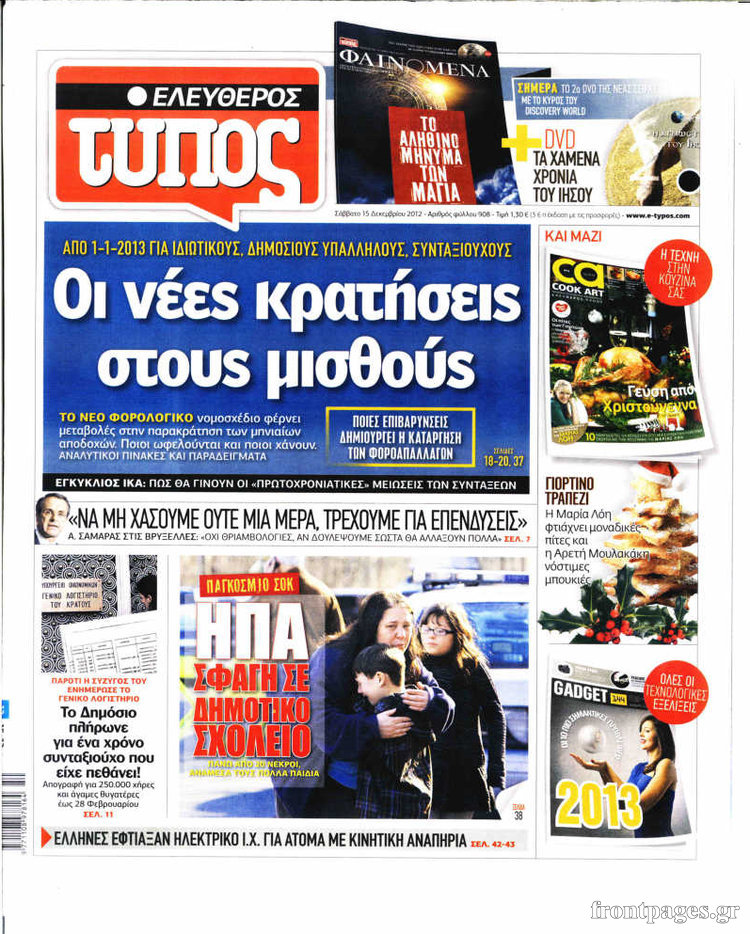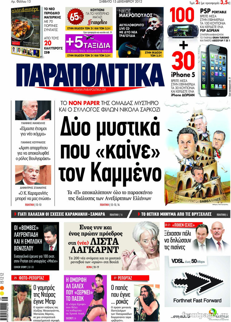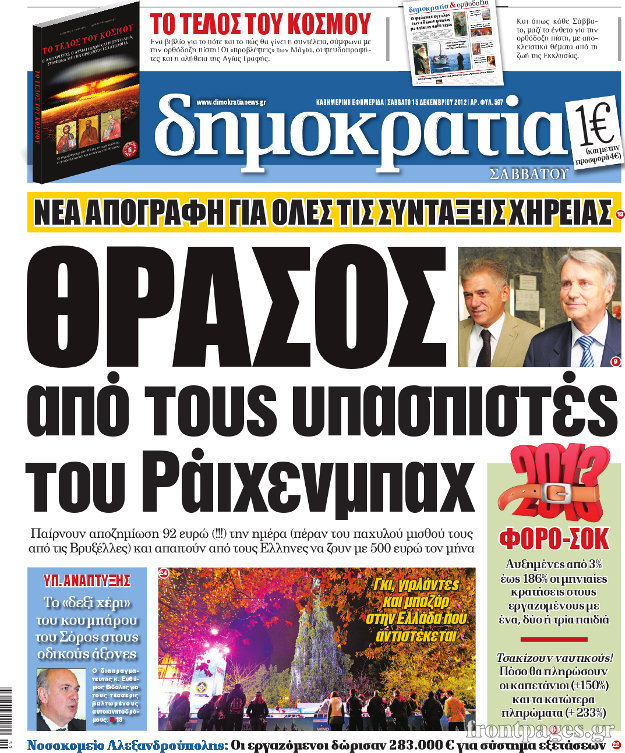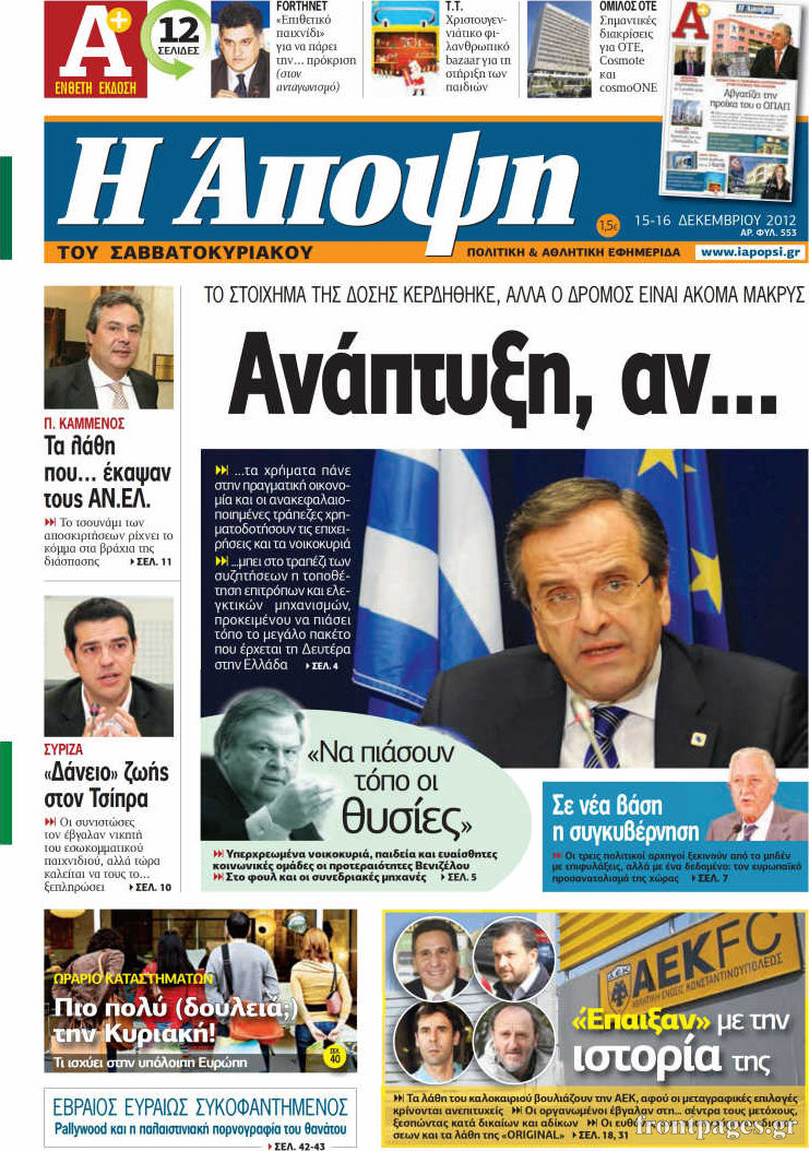 Οι πολιτικές εφημερίδες Enikos Newsroom 09:22, Σάββατο 15 Δεκεμβρίου 2012 Media Οι πολιτικές εφημερίδες ΠΟΛΙΤΙΚΕΣ ΕΦΗΜΕΡΙΔΕΣ ΠΡΩΤΟΣΕΛΙΔΑ Μοιράσου το: σχολίασε κι εσύ (0 σχόλια) Ακολουθήστε το enikos.gr στο Google News και μάθετε πρώτοι όλες τις ειδήσεις Δείτε όλες τις τελευταίες ειδήσεις από την Ελλάδα και τον Κόσμο στο enikos.gr Ειδήσεις Ροή Ειδήσεων 2 ώρες πριν «Βιολάντα:» Οι ανατριχιαστικοί διάλογοι λίγες ώρες πριν από την φονική έκρηξη για «μυρωδιά σαν υγραέριο» – «Μου έλεγαν ότι δεν ήταν κάτι ανησυχητικό» κατέθεσε ο υπεύθυνος βάρδιας 3 ώρες πριν Ο Κυριάκος Μητσοτάκης ανοίγει τα χαρτιά του για τη Συνταγματική Αναθεώρηση – Στο τραπέζι και η μονιμότητα των δημοσίων υπαλλήλων 1 ώρα πριν Νέα Πέραμος: Προσπάθησαν να κάψουν το πτώμα του 27χρονου – Οι έρευνες στο εργασιακό του περιβάλλον και η εκτέλεση «καρμπόν» πριν από 2 χρόνια στη Μάνδρα 2 ώρες πριν Κακοκαιρία: Νέο έκτακτο δελτίο της ΕΜΥ – Σε ποιες περιοχές θα συνεχιστούν τα έντονα φαινόμενα 1 ώρα πριν Γκίλφοϊλ: Προανήγγειλε επίσκεψη Τραμπ στην Ελλάδα – «Ελπίζω να έρθει και η Μελάνια» 3 ώρες πριν Αριθμολογία: Οι 3 «καταραμένες» διευθύνσεις σπιτιού – «Τα νούμερα αυτά συνδέονται με αναταραχές και αρνητική ενέργεια» 4 ώρες πριν Τα 11 ψέματα που λένε πάντα οι άνδρες για να σας πείσουν ότι έχετε εσείς το πρόβλημα 2 ώρες πριν Ύπνος: Γιατί πρέπει να κοιμάστε με την πόρτα του υπνοδωματίου σας κλειστή 1 ώρα πριν Στο φως η θρυλική πόλη που ίδρυσε ο Μέγας Αλέξανδρος στο Ιράκ – Το «φάντασμα» του Τίγρη αποκαλύπτεται 14 λεπτά πριν Ο πρόεδρος Τραμπ βλέπει μια συμφωνία με την Κούβα μετά τις απειλές 36 λεπτά πριν ΑΕΚ – Ολυμπιακός 1-1: Ισοπαλία στο ντέρμπι με πέναλτυ στο 90+16′ για τους Πειραιώτες – Έντονες διαμαρτυρίες των γηπεδούχων 49 λεπτά πριν Επίδομα παιδιού 2026: Πότε ανοίγει η πλατφόρμα για τις νέες αιτήσεις – Τι πρέπει να γνωρίζετε 1 ώρα πριν Στο φως η θρυλική πόλη που ίδρυσε ο Μέγας Αλέξανδρος στο Ιράκ – Το «φάντασμα» του Τίγρη αποκαλύπτεται 1 ώρα πριν Νέα Πέραμος: Προσπάθησαν να κάψουν το πτώμα του 27χρονου – Οι έρευνες στο εργασιακό του περιβάλλον και η εκτέλεση «καρμπόν» πριν από 2 χρόνια στη Μάνδρα ENIKOS NETWORK Γελάτε, κλαίτε ή ανοίγει η μύτη σας μετά τον οργασμό – Πού οφείλεται, σύμφωνα με μελέτη; Πώς να ξεφορτωθείτε τις σακούλες κάτω από τα μάτια – Tips που δουλεύουν Τη Δευτέρα οι ανακοινώσεις του Κυριάκου Μητσοτάκη για τη συνταγματική αναθεώρηση – Ποια άρθρα θα προτείνει να αλλάξουν Ο καιρός της Δευτέρας: Ισχυρές καταιγίδες και χιονοπτώσεις – Σε ποιες περιοχές χρειάζεται προσοχή Σπαζοκεφαλιά: Βρες πόσα 9 υπάρχουν στην εικόνα σε 8 δευτερόλεπτα Τεστ IQ: Μπορείς να εντοπίσεις τον αριθμό 999 ανάμεσα στα 99Q σε 15 δευτερόλεπτα; περισσότερα 17:13 , Κυριακή 01 Φεβρουαρίου 2026 Σία Κοσιώνη: Το πρώτο μήνυμα μετά την περιπέτεια με την υγεία της – «Τα καταφέραμε» Για έναν δύσκολο Ιανουάριο που της φάνηκε σαν ένας ολόκληρος χρόνος κάνει λόγο η Σία Κοσιώνη σ... 15:05 , Κυριακή 01 Φεβρουαρίου 2026 Από Ήλιο σε Ήλιο: Πότε κάνει τελικά πρεμιέρα η νέα σειρά της ΕΡΤ1; Το αρχικό πλάνο και η μετακίνηση της προβολής. Της Νάντιας Ρηγάτου Μπορεί η Μεγάλη Χίμαιρα να ... 15:04 , Κυριακή 01 Φεβρουαρίου 2026 Στο real taste & style που κυκλοφορεί με τη Realnews Στο real taste & style που κυκλοφορεί με τη Realnews. Τον Φεβρουάριο, η πατάτα βγαίνει μπρ... 13:47 , Κυριακή 01 Φεβρουαρίου 2026 Άγιος Έρωτας: Ο πατέρας Νικόλαος και η Χλόη παραδίνονται στον έρωτα – ‘Ολες οι εξελίξεις Καταιγιστικές εξελίξεις την επόμενη εβδομά