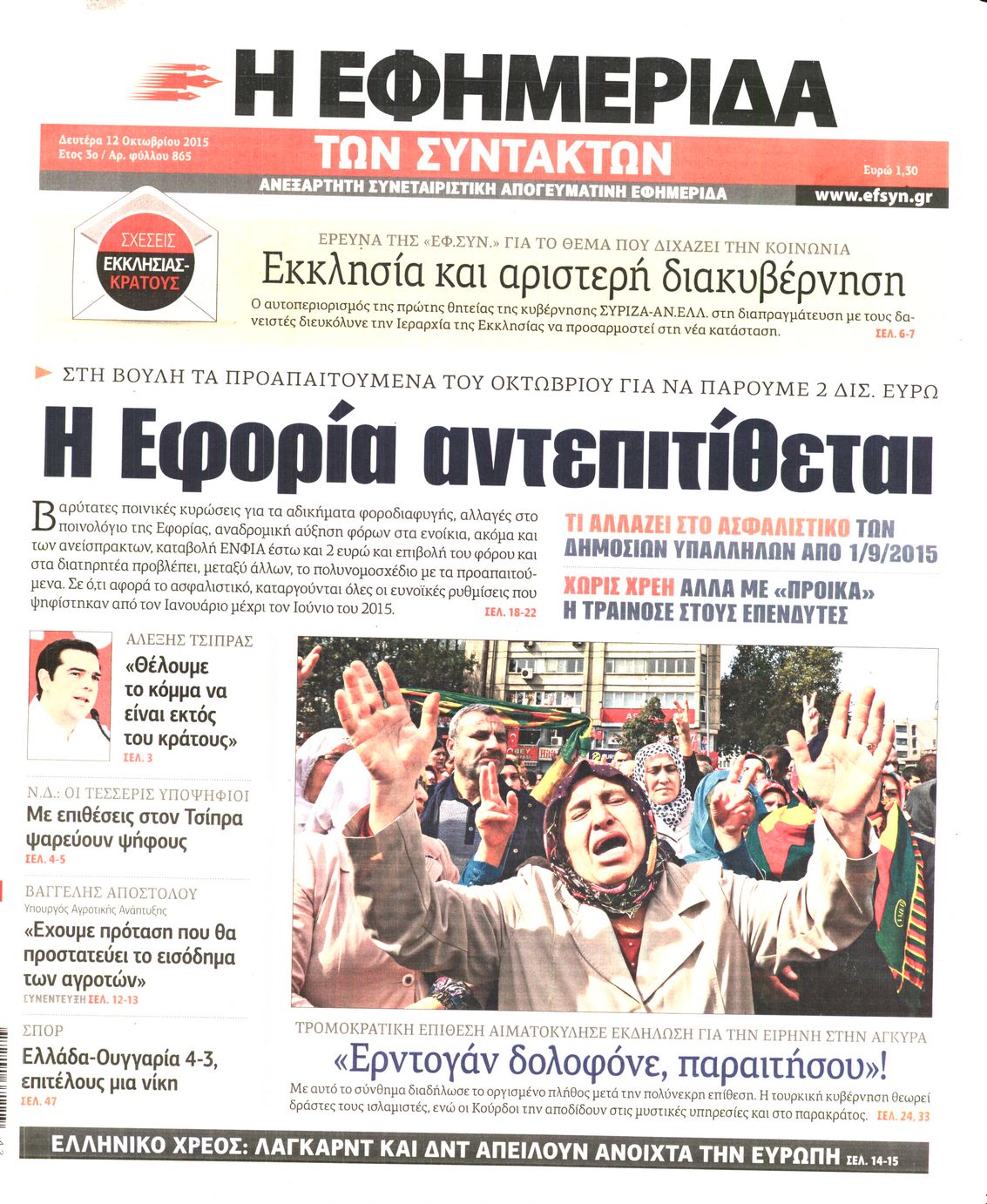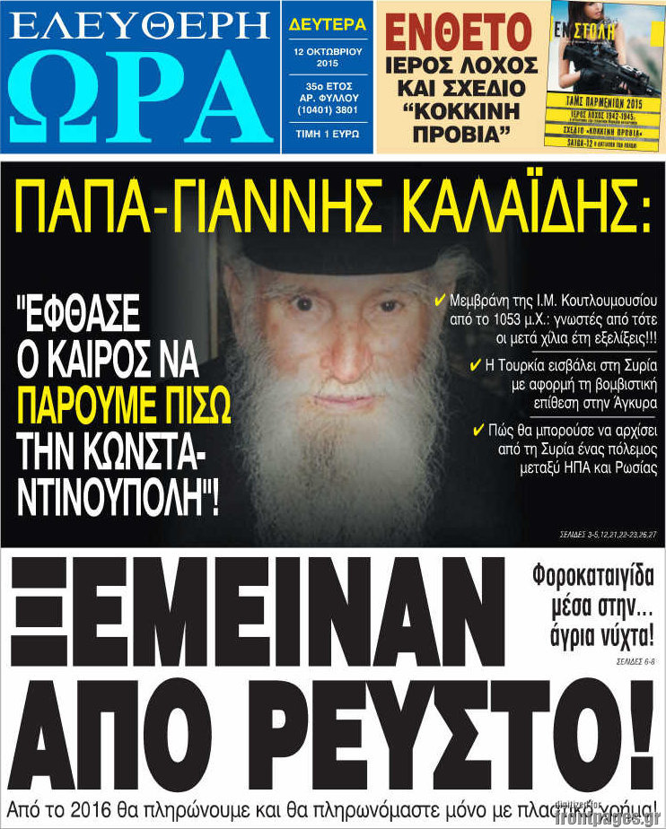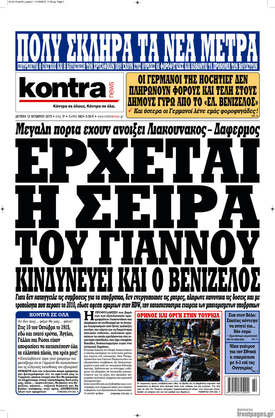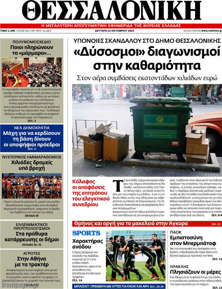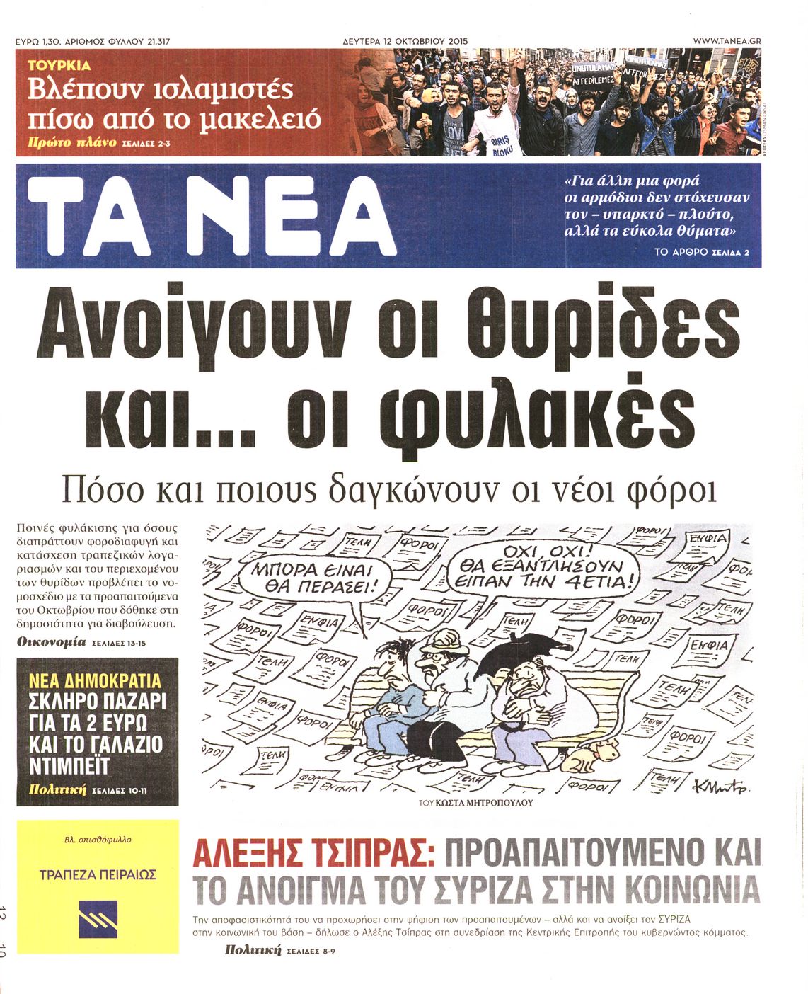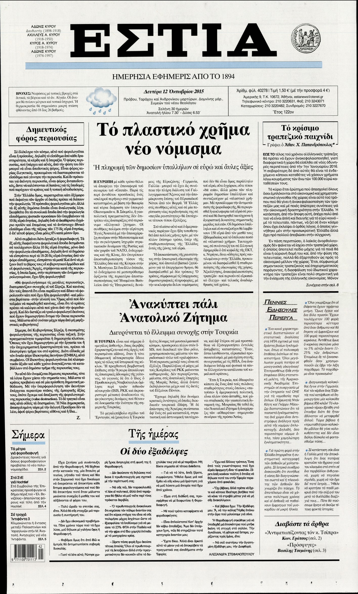 Οι πολιτικές εφημερίδες 12/10/2015 Enikos Newsroom 08:12, Δευτέρα 12 Οκτωβρίου 2015 Media Διαβάστε τα σημερινά πρωτοσέλιδα των πολιτικών εφημερίδων: ΠΟΛΙΤΙΚΕΣ ΕΦΗΜΕΡΙΔΕΣ ΠΡΩΤΟΣΕΛΙΔΑ Μοιράσου το: σχολίασε κι εσύ (0 σχόλια) Ακολουθήστε το enikos.gr στο Google News και μάθετε πρώτοι όλες τις ειδήσεις Δείτε όλες τις τελευταίες ειδήσεις από την Ελλάδα και τον Κόσμο στο enikos.gr Ειδήσεις Ροή Ειδήσεων 2 ώρες πριν Χριστούγεννα στα μπλόκα: Επιμένουν στις κινητοποιήσεις τους οι αγρότες – Ανοίγουν τα διόδια το Σαββατοκύριακο 2 ώρες πριν Ουκρανία: Η άνευ προηγουμένου επίθεση σε ρωσικό τάνκερ στη Μεσόγειο και το μήνυμα προς στον Πούτιν – Το «μακρύ χέρι» του Κιέβου 2 ώρες πριν Πούτιν: Τα μηνύματα σε Ευρώπη και ΝΑΤΟ από το μαραθώνιο «σόου» του – Η απαίτηση για «σεβασμό» και η ειρήνη «με τους όρους» της Μόσχας 3 ώρες πριν Τραμπ: Δεν αποκλείει την πιθανότητα ενός πολέμου στη Βενεζουέλα – «Ο Μαδούρο ξέρει καλύτερα από τον καθένα τι ακριβώς θέλω» 3 ώρες πριν Συνεχίζει να προκαλεί ο Μίτσκοσκι: «Για μένα το όνομα Μακεδονία είναι ιερό» 2 ώρες πριν Ανακαλύφθηκαν αρχαία χρυσά νομίσματα 2.200 ετών που απεικονίζουν τον θεό Απόλλωνα – Η άγνωστη σύνδεση με τον Φίλιππο Β΄ της Μακεδονίας 3 ώρες πριν Ύπνος: Μια κρυφή κατάσταση του εγκεφάλου πριν από τον ύπνο μπορεί να είναι το “κλειδί” για υψηλή ευφυΐα και δημιουργικότητα 4 ώρες πριν Αριθμολογία: Οι άνθρωποι που έχουν γεννηθεί αυτές τις 4 ημερομηνίες, συχνά παρεξηγούνται – «Η καλοσύνη τους κρύβει τεράστια δύναμη» 5 ώρες πριν Ξεχάστε το καθάρισμα το Σαββατοκύριακο: Ο «κανόνας των 20 λεπτών» που θα σας λύσει τα χέρια 18 λεπτά πριν Φαίη Σκορδά: «Παλιότερα τα κομπλιμέντα τα προσπερνούσα, τώρα τα έχω ανάγκη» 34 λεπτά πριν Βασίλης Σπανούλης: Δεν εμφανίστηκε ούτε ένας δημοσιογράφος στην συνέντευξη Τύπου – «Καλησπέρα στον… κανέναν», δείτε βίντεο 45 λεπτά πριν Πόλεμος στην Ουκρανία: Εφτά νεκροί από ρωσική πυραυλική επίθεση στο λιμάνι της Οδησσού 48 λεπτά πριν ΗΠΑ: Η κυβέρνηση του Ντόναλντ Τραμπ άρχισε να δημοσιοποιεί τα αρχεία Έπσταϊν 60 λεπτά πριν Σάμος: Άνοιξε το μπλόκο των αγροτών στον κόμβο Κοκκαρίου – Σε νέα συνεδρίαση θα καθορίσουν την στάση τους ENIKOS NETWORK Το ΕΚΑΒ τιμήθηκε από την Ακαδημία Αθηνών για τα 40 χρόνια προσφοράς του Έχετε πραγματικά μεγάλη καρδιά; 10 χαρακτηριστικά όσων έχουν καλοσύνη Αναστολή μέτρων αναγκαστικής εκτέλεσης για κτηνοτρόφους που πλήττονται από την ευλογιά των αιγοπροβάτων Πλήρης επάρκεια προϊόντων στις λαϊκές της Αττικής, παρά τις αγροτικές κινητοποιήσεις – Τι απαντούν οι πωλητές Χαρτογραφώντας το «σημείο χωρίς επιστροφή»: Για πρώτη φορά αποκαλύπτεται με λεπτομέρεια το ακανθώδες όριο της ατμόσφαιρας τ... Η Google καταργεί τη λειτουργία «dark web report» – Πώς θα μπορούν οι χρήστες να διαγράφουν τα δεδομένα τους περισσότερα 22:42 , Παρασκευή 19 Δεκεμβρίου 2025 Γιώργος Γιαννόπουλος για “Το σόι σου”: “Είναι ευτυχία και ευλογία αυτή η σειρά” «Είναι ευτυχία και ευλογία η συγκυρία αυτής της σειράς», θα πει ο Γιώργος Γιαννόπουλος -ο αγαπ... 20:37 , Παρασκευή 19 Δεκεμβρίου 2025 Don’t Forget The Lyrics: Η Έλλη Κοκκίνου υποδέχεται 4 παίκτες που θα κάνουν τα πάντα για να μη χάσουν ούτε… μισή λέξη από τους στίχους Το «Don’t Forget The Lyrics» επιστρέφει απόψε, Παρασκευή 19 Δεκεμβρίου, στις 21:00 με νέο επει... 19:31 , Παρασκευή 19 Δεκεμβρίου 2025 GNTM: Απόψε ο μεγάλος τελικός για τους 4 φιναλίστ Έπειτα από μήνες γεμάτους μόδα, δημιουργία και έντονες αναμετρήσεις, το GNTM 2025 κορυφώνεται,... 18:11 , Π