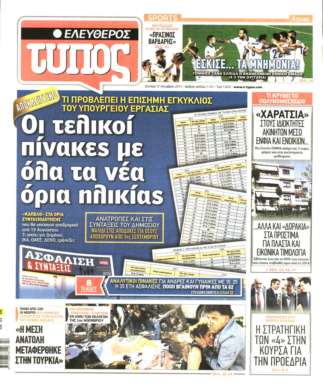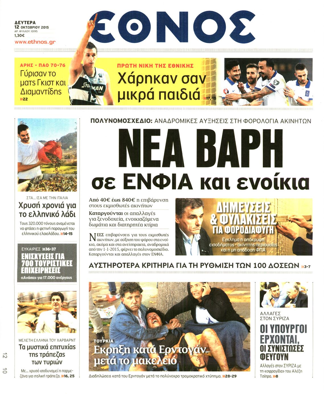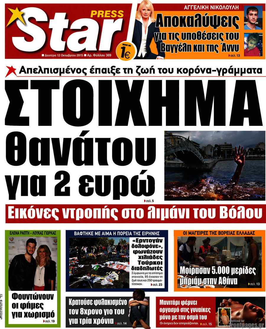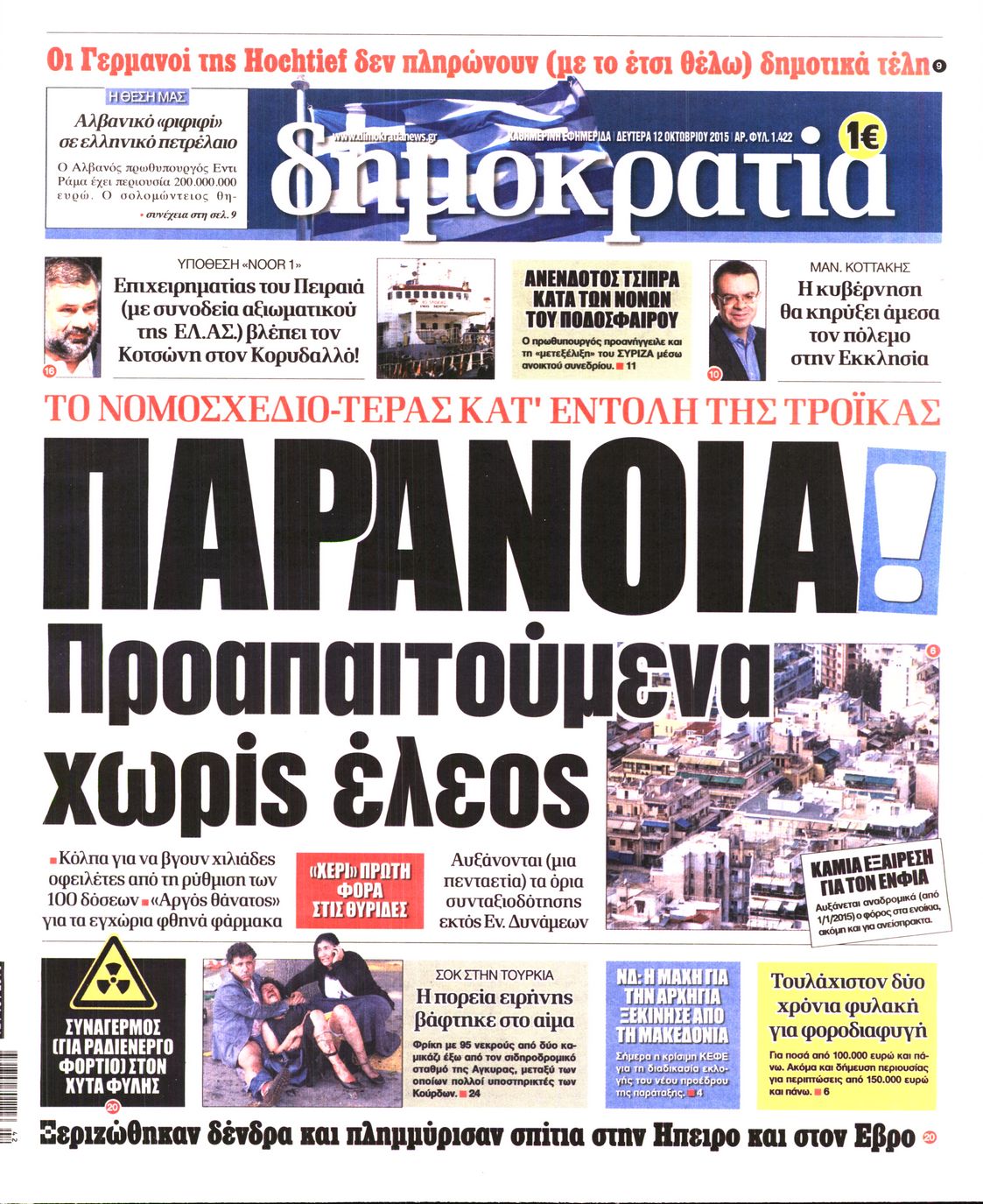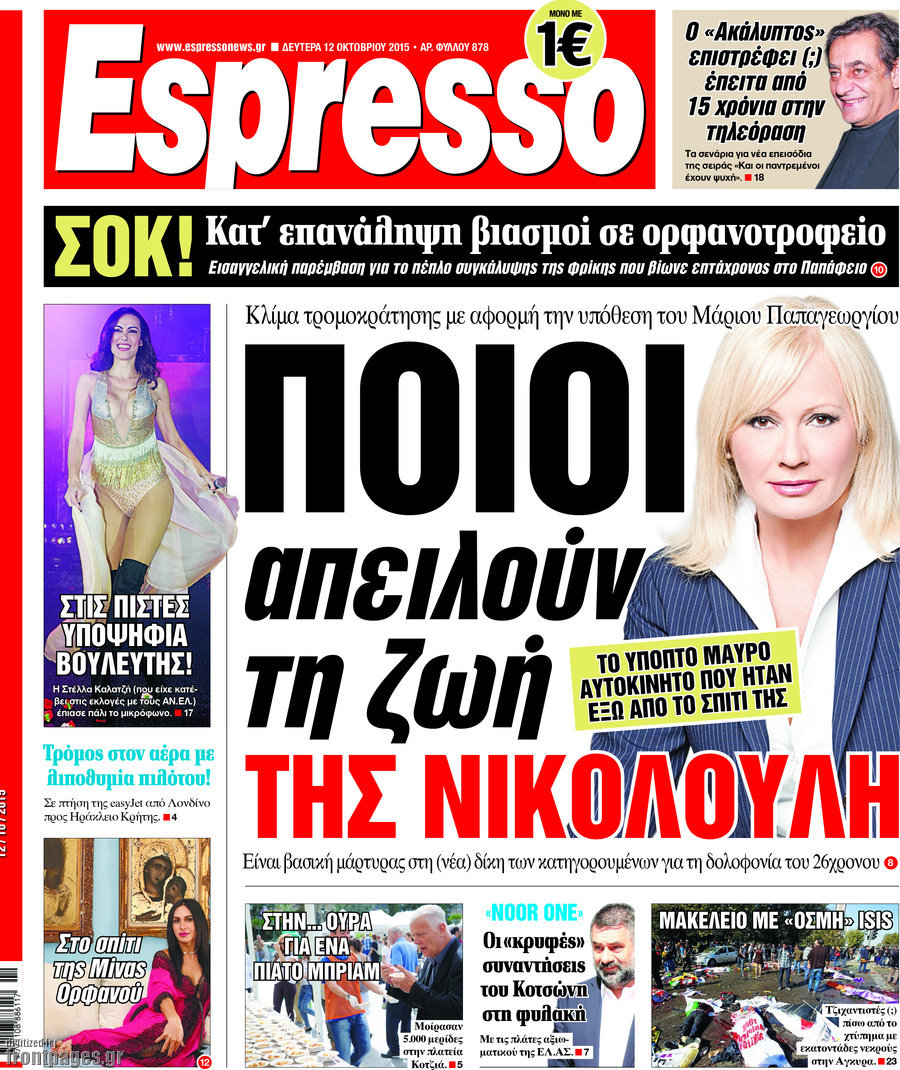 Οι πολιτικές εφημερίδες 12/10/2015 Enikos Newsroom 08:12, Δευτέρα 12 Οκτωβρίου 2015 Media Διαβάστε τα σημερινά πρωτοσέλιδα των πολιτικών εφημερίδων: ΠΟΛΙΤΙΚΕΣ ΕΦΗΜΕΡΙΔΕΣ ΠΡΩΤΟΣΕΛΙΔΑ Μοιράσου το: σχολίασε κι εσύ (0 σχόλια) Ακολουθήστε το enikos.gr στο Google News και μάθετε πρώτοι όλες τις ειδήσεις Δείτε όλες τις τελευταίες ειδήσεις από την Ελλάδα και τον Κόσμο στο enikos.gr Ειδήσεις Ροή Ειδήσεων 2 ώρες πριν Χριστούγεννα στα μπλόκα: Επιμένουν στις κινητοποιήσεις τους οι αγρότες – Ανοίγουν τα διόδια το Σαββατοκύριακο 2 ώρες πριν Ουκρανία: Η άνευ προηγουμένου επίθεση σε ρωσικό τάνκερ στη Μεσόγειο και το μήνυμα προς στον Πούτιν – Το «μακρύ χέρι» του Κιέβου 2 ώρες πριν Πούτιν: Τα μηνύματα σε Ευρώπη και ΝΑΤΟ από το μαραθώνιο «σόου» του – Η απαίτηση για «σεβασμό» και η ειρήνη «με τους όρους» της Μόσχας 3 ώρες πριν Τραμπ: Δεν αποκλείει την πιθανότητα ενός πολέμου στη Βενεζουέλα – «Ο Μαδούρο ξέρει καλύτερα από τον καθένα τι ακριβώς θέλω» 3 ώρες πριν Συνεχίζει να προκαλεί ο Μίτσκοσκι: «Για μένα το όνομα Μακεδονία είναι ιερό» 2 ώρες πριν Ανακαλύφθηκαν αρχαία χρυσά νομίσματα 2.200 ετών που απεικονίζουν τον θεό Απόλλωνα – Η άγνωστη σύνδεση με τον Φίλιππο Β΄ της Μακεδονίας 3 ώρες πριν Ύπνος: Μια κρυφή κατάσταση του εγκεφάλου πριν από τον ύπνο μπορεί να είναι το “κλειδί” για υψηλή ευφυΐα και δημιουργικότητα 4 ώρες πριν Αριθμολογία: Οι άνθρωποι που έχουν γεννηθεί αυτές τις 4 ημερομηνίες, συχνά παρεξηγούνται – «Η καλοσύνη τους κρύβει τεράστια δύναμη» 5 ώρες πριν Ξεχάστε το καθάρισμα το Σαββατοκύριακο: Ο «κανόνας των 20 λεπτών» που θα σας λύσει τα χέρια 18 λεπτά πριν Φαίη Σκορδά: «Παλιότερα τα κομπλιμέντα τα προσπερνούσα, τώρα τα έχω ανάγκη» 34 λεπτά πριν Βασίλης Σπανούλης: Δεν εμφανίστηκε ούτε ένας δημοσιογράφος στην συνέντευξη Τύπου – «Καλησπέρα στον… κανέναν», δείτε βίντεο 45 λεπτά πριν Πόλεμος στην Ουκρανία: Εφτά νεκροί από ρωσική πυραυλική επίθεση στο λιμάνι της Οδησσού 48 λεπτά πριν ΗΠΑ: Η κυβέρνηση του Ντόναλντ Τραμπ άρχισε να δημοσιοποιεί τα αρχεία Έπσταϊν 60 λεπτά πριν Σάμος: Άνοιξε το μπλόκο των αγροτών στον κόμβο Κοκκαρίου – Σε νέα συνεδρίαση θα καθορίσουν την στάση τους ENIKOS NETWORK Το ΕΚΑΒ τιμήθηκε από την Ακαδημία Αθηνών για τα 40 χρόνια προσφοράς του Έχετε πραγματικά μεγάλη καρδιά; 10 χαρακτηριστικά όσων έχουν καλοσύνη Αναστολή μέτρων αναγκαστικής εκτέλεσης για κτηνοτρόφους που πλήττονται από την ευλογιά των αιγοπροβάτων Πλήρης επάρκεια προϊόντων στις λαϊκές της Αττικής, παρά τις αγροτικές κινητοποιήσεις – Τι απαντούν οι πωλητές Χαρτογραφώντας το «σημείο χωρίς επιστροφή»: Για πρώτη φορά αποκαλύπτεται με λεπτομέρεια το ακανθώδες όριο της ατμόσφαιρας τ... Η Google καταργεί τη λειτουργία «dark web report» – Πώς θα μπορούν οι χρήστες να διαγράφουν τα δεδομένα τους περισσότερα 22:42 , Παρασκευή 19 Δεκεμβρίου 2025 Γιώργος Γιαννόπουλος για “Το σόι σου”: “Είναι ευτυχία και ευλογία αυτή η σειρά” «Είναι ευτυχία και ευλογία η συγκυρία αυτής της σειράς», θα πει ο Γιώργος Γιαννόπουλος -ο αγαπ... 20:37 , Παρασκευή 19 Δεκεμβρίου 2025 Don’t Forget The Lyrics: Η Έλλη Κοκκίνου υποδέχεται 4 παίκτες που θα κάνουν τα πάντα για να μη χάσουν ούτε… μισή λέξη από τους στίχους Το «Don’t Forget The Lyrics» επιστρέφει απόψε, Παρασκευή 19 Δεκεμβρίου, στις 21:00 με νέο επει... 19:31 , Παρασκευή 19 Δεκεμβρίου 2025 GNTM: Απόψε ο μεγάλος τελικός για τους 4 φιναλίστ Έπειτα από μήνες γεμάτους μόδα, δημιουργία και έντονες αναμετρήσεις, το GNTM 2025 κορυφώνεται,... 18:11 , Π
