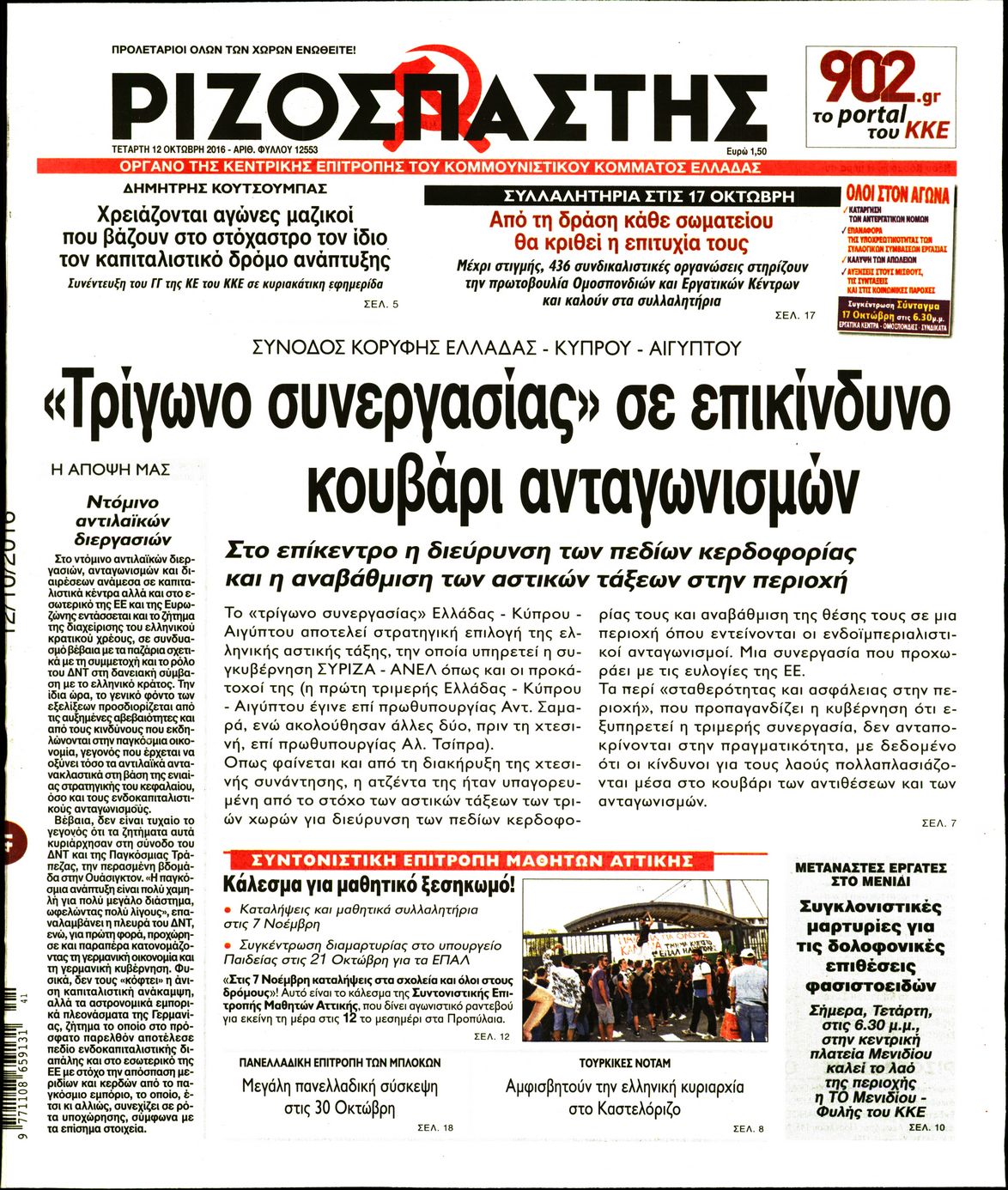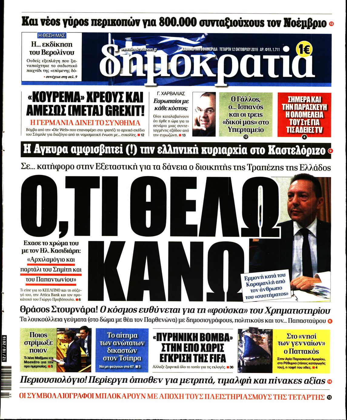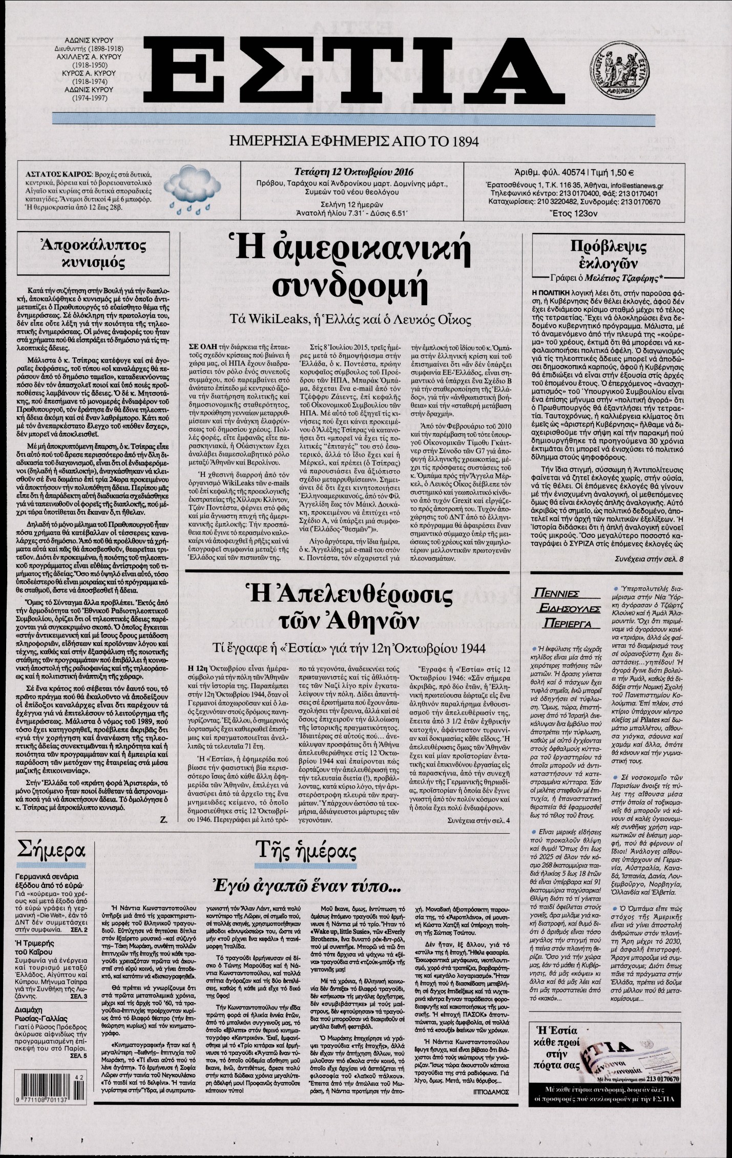 Οι πολιτικές εφημερίδες 12/10/2016 Enikos Newsroom 05:23, Τετάρτη 12 Οκτωβρίου 2016 Media Διαβάστε τα σημερινά πρωτοσέλιδα των πολιτικών εφημερίδων: ΠΟΛΙΤΙΚΕΣ ΕΦΗΜΕΡΙΔΕΣ ΠΡΩΤΟΣΕΛΙΔΑ Μοιράσου το: σχολίασε κι εσύ (0 σχόλια) Ακολουθήστε το enikos.gr στο Google News και μάθετε πρώτοι όλες τις ειδήσεις Δείτε όλες τις τελευταίες ειδήσεις από την Ελλάδα και τον Κόσμο στο enikos.gr Ειδήσεις Ροή Ειδήσεων 1 ώρα πριν Οι αγρότες έκλεισαν την σήραγγα των Τεμπών για τα φορτηγά – Εκτροπή της κυκλοφορίας όλων των οχημάτων από την Αστυνομία – ΦΩΤΟ και ΒΙΝΤΕΟ 1 ώρα πριν Χριστουγεννιάτικο «θαύμα» στη Φουρνά Ευρυτανίας: Πώς γέμισε ξανά με παιδικά χαμόγελα – «Νιώθω περήφανη» λέει η δασκάλα που «ανέστησε» το ορεινό χωριό 54 λεπτά πριν Τσιάρας στον Realfm 97,8: Ο διάλογος είναι πράξη ευθύνης – Η ανακατανομή των διαθέσιμων πόρων μπορεί να γίνει σε συνεννόηση με τους αγρότες 3 ώρες πριν Μόσχα: Πιθανή εμπλοκή της Ουκρανίας στην έκρηξη βόμβας που σκότωσε Ρώσο στρατηγό 2 ώρες πριν Από τα μέσα Ιανουαρίου τα πρώτα «ραβασάκια» στους οδηγούς από τις έξυπνες κάμερες – Τι δήλωσε ο Παπαστεργίου 4 ώρες πριν Τα 4 ζώδια που παίρνουν επιτέλους την αναγνώριση που τους αξίζει – «Απρόσμενες ευκαιρίες, που μοιάζουν με δώρα από το σύμπαν» 2 ώρες πριν Γυναίκα που έχασε 18 κιλά αποκαλύπτει τα μυστικά της επιτυχίας της: «Σταματήστε να γυμνάζεστε απλώς για να ολοκληρώσετε την προπόνηση» 3 ώρες πριν Έχετε κρατήσει αυτά 8 αντικείμενα από την παιδική ηλικία σας; Δείτε τι αποκαλύπτει για τον χαρακτήρα σας 2 ημέρες πριν Enerwave: Το νέο «ρεύμα» στη λιανική ενέργειας που αλλάζει την εμπειρία του καταναλωτή 40 δευτερόλεπτα πριν Συνάντηση Παπασταύρου – Γκιλφόιλ: Στο επίκεντρο ο ρόλος της Ελλάδας ως περιφερειακού ενεργειακού κόμβου 8 λεπτά πριν Κίνα: Eπιβάλλει προσωρινούς δασμούς σε εισαγωγές γαλακτοκομικών προϊόντων από την ΕΕ 15 λεπτά πριν Ζωγράφου: Επτά προσαγωγές στην Πολυτεχνειούπολη 18 λεπτά πριν Άγιος έρωτας – Μαρίνα Ψάλτη: «Κλείνει ένας κύκλος» 24 λεπτά πριν Στη Ραμάλα ο Κυριάκος Μητσοτάκης: Συνάντηση με τον Mαχμούντ Αμπάς – «Είμαστε έτοιμοι να συνεισφέρουμε» ENIKOS NETWORK Νέα μελέτη «αθωώνει» τα κορεσμένα λιπαρά; Τι ισχύει για βούτυρο, τυρί και κόκκινο κρέας Η χειμερινή δραστηριότητα που μπορεί να αυξήσει τον κίνδυνο καρδιακής προσβολής Συντάξεις Ιανουαρίου 2026 και επιδόματα από ΟΠΕΚΑ: Ποιοι πληρώνονται σήμερα Υπερταμείο: Αυτός είναι ο νέος Διευθύνων Σύμβουλος των Συγκοινωνιών Αθηνών – Ομίλου ΟΑΣΑ Χαρτογραφώντας το «σημείο χωρίς επιστροφή»: Για πρώτη φορά αποκαλύπτεται με λεπτομέρεια το ακανθώδες όριο της ατμόσφαιρας τ... Η Google καταργεί τη λειτουργία «dark web report» – Πώς θα μπορούν οι χρήστες να διαγράφουν τα δεδομένα τους περισσότερα 12:25 , Δευτέρα 22 Δεκεμβρίου 2025 Χαμός on air ανάμεσα στις πρωινές εκπομπές του Open και του Mega – «Έχω να δω κάτι τέτοιο από τη δεκαετία του 90’» – «Κάποιοι να κοιτάνε και λίγο στον καθρέφτη» Κόντρα στον… αέρα είχαν οι ενημερωτικές εκπομπές της πρωινής ζώνης στο Open και το Mega,... 10:15 , Δευτέρα 22 Δεκεμβρίου 2025 Πρωτοχρονιάτικο δώρο της ΕΡΤ η «Μεγάλη χίμαιρα» – Διπλή πρεμιέρα για την ακριβότερη ελληνική σειρά Με πρωτότυπο τρόπο και σπαστή πρεμιέρα σε ΕΡΤflix και ΕΡΤ1 θα κάνει η δημόσια τηλεόραση το λαν... 09:45 , Δευτέρα 22 Δεκεμβρίου 2025 Ο χριστουγεννιάτικος τηλεμαραθώνιος αλληλεγγύης του ANT1 για τα παιδιά Ο ANT1 διοργανώνει Χριστουγεννιάτικο Τηλεμαραθώνιο για τα Παιδιά την 22η Δεκεμβρίου 2025, με σ... 09:30 , Δευτέρα 22 Δεκεμβρ