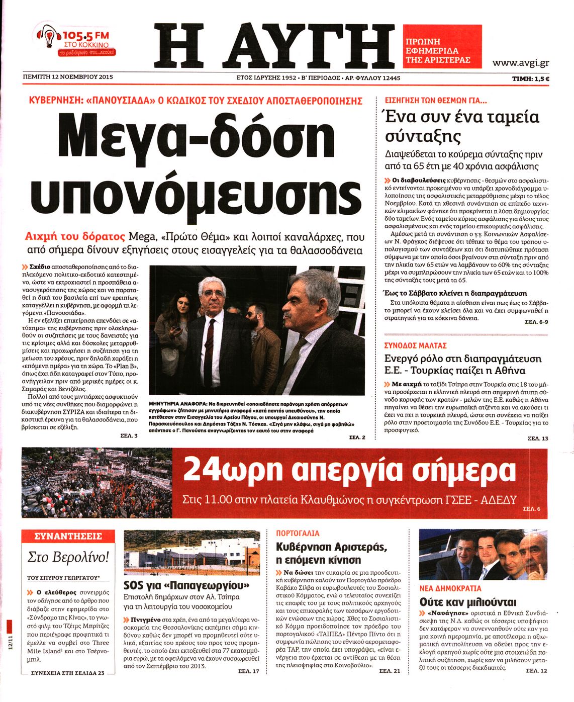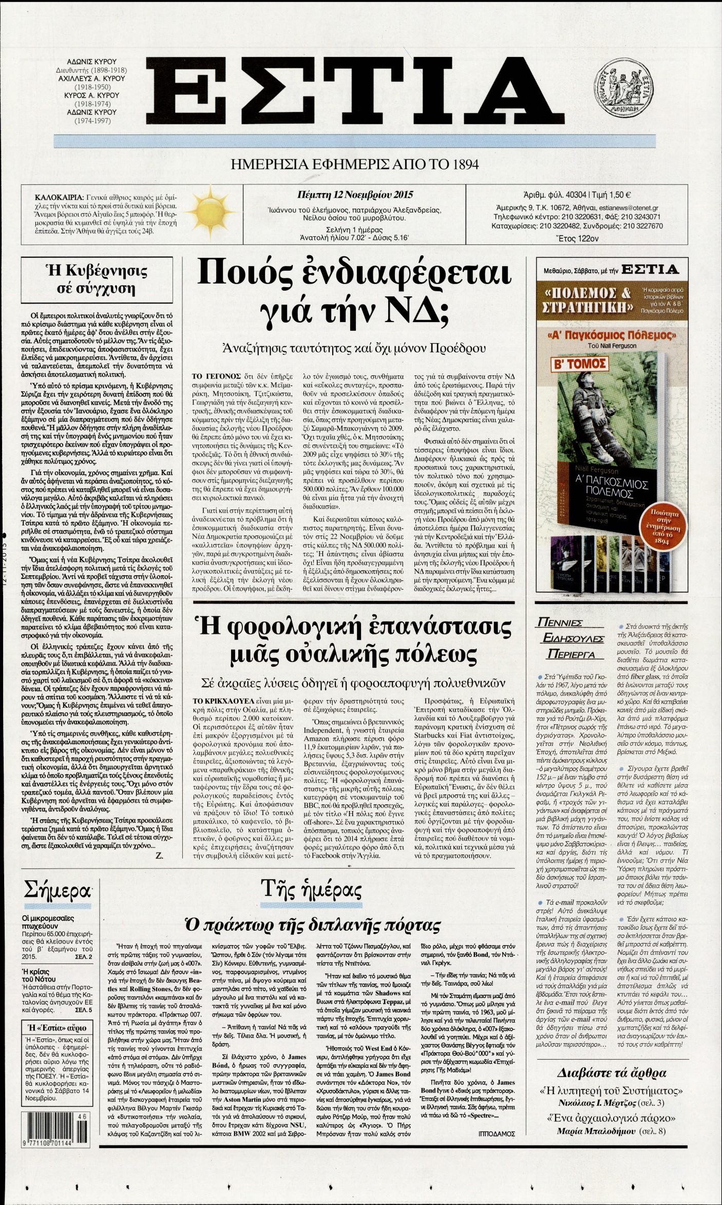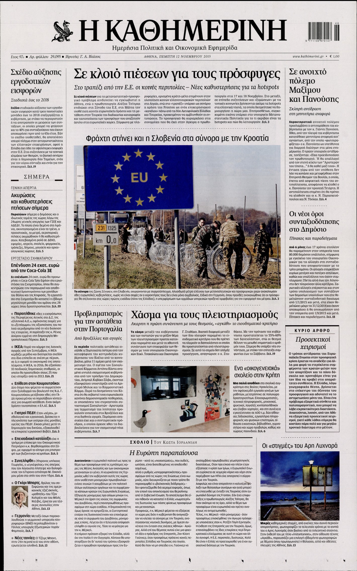 Οι πολιτικές εφημερίδες 12/11/2015 Enikos Newsroom 07:44, Πέμπτη 12 Νοεμβρίου 2015 Media Διαβάστε τα σημερινά πρωτοσέλιδα των πολιτικών εφημερίδων. ΠΟΛΙΤΙΚΕΣ ΕΦΗΜΕΡΙΔΕΣ ΠΡΩΤΟΣΕΛΙΔΑ Μοιράσου το: σχολίασε κι εσύ (0 σχόλια) Ακολουθήστε το enikos.gr στο Google News και μάθετε πρώτοι όλες τις ειδήσεις Δείτε όλες τις τελευταίες ειδήσεις από την Ελλάδα και τον Κόσμο στο enikos.gr Ειδήσεις Ροή Ειδήσεων 1 ώρα πριν Μεσόγειος: Η διαδρομή του ρωσικού τάνκερ «Qendil» και η στοχευμένη επίθεση της Ουκρανίας με drone – Ο Πούτιν προειδοποίησε για αντίποινα 55 λεπτά πριν Αττική: Θρίλερ με νεκρό βρέφος 5 μηνών – Κοιμόταν στο ίδιο κρεβάτι με τους γονείς του 2 ώρες πριν Από το Ορμένιο ως τα Μάλγαρα κι από τη Σιάτιστα μέχρι τη Νίκαια: Μπλόκα σε όλη την Ελλάδα – Το Σάββατο ανοίγουν τα διόδια οι αγρότες 2 ώρες πριν «Έλληνας Εσκομπάρ»: Φωτογραφίες με τους 4 τόνους κοκαΐνης που κατασχέθηκαν από το σκάφος «Ουρανία» 3 ώρες πριν Πούτιν: Σαρκαστικά μηνύματα, παράπονα και απρόοπτα στη συνέντευξη Τύπου – Η πρόταση γάμου on air και οι ερωτήσεις για τα αγγούρια και τους… εξωγήινους 3 ώρες πριν Τα 5 ζώδια που ευνοούνται στην ερωτική ζωή τους την επόμενη εβδομάδα – «Η ενέργεια του Αιγόκερου φέρνει αγάπη και σταθερότητα» 7 ώρες πριν Ειδικός μοιράζεται 6 κόλπα για να διατηρείστε σε φόρμα με πάνω από 40 ώρες εργασίας την εβδομάδα: «Προπονηθείτε πριν από τη δουλειά, όχι μετά» 4 ώρες πριν Αυτό το έξυπνο μαθηματικό κόλπο θα μπορούσε να αλλάξει τον τρόπο με τον οποίο οι επιστήμονες μελετούν τους σεισμούς 2 ώρες πριν Κουίζ για την παλιά Αθήνα: Αναγνωρίζετε την περιοχή; Έχετε περάσει 100% από εκεί 2 λεπτά πριν Λάρισα: Ασθενοφόρο έπεσε πάνω σε κλούβα της ΕΛ.ΑΣ στον Πλατύκαμπο – Τραυματίστηκε ο συνοδηγός – ΒΙΝΤΕΟ 8 λεπτά πριν Τέμπη: Διεκόπη για τις 9 Ιανουαρίου η δίκη για τα χαμένα βίντεο της εμπορικής αμαξοστοιχίας – «Απαιτούμε να μας σέβονται» 13 λεπτά πριν Hellenic Train: Αλλαγές και καταργήσεις δρομολογίων λεωφορείων λόγω των αγροτικών κινητοποιήσεων 19 λεπτά πριν Ζελένσκι: «Δεν χρειάζεται αναθεώρηση του Συντάγματος» για να εγκαταλείψει η Ουκρανία τον στόχο ένταξης στο ΝΑΤΟ 24 λεπτά πριν Παναγιώτα Βλαντή: Η τρυφερή εξομολόγηση για τον σύζυγό της – «Πραγματικά ήταν για μένα αυτό που ήθελα σε όλη μου τη ζωή» ENIKOS NETWORK «Η σούπερ» γρίπη εξαπλώνεται στην Ευρώπη-Στοιχεία από το ECDC για την αποτελεσματικότητα του εμβολίου ΕΛΣΤΑΤ: Αύξηση κατά 1,7% των επαγγελματιών υγείας το 2024 Η απάντηση της κυβέρνησης στα αιτήματα των αγροτών: 16 έχουν ικανοποιηθεί, 4 βρίσκονται υπό επεξεργασία και 7 δεν είναι εφι... Μισθολογική διαφάνεια: Το 68% των εργαζομένων αγνοεί τη νέα οδηγία – Αναλυτικά τα στοιχεία έρευνας Χαρτογραφώντας το «σημείο χωρίς επιστροφή»: Για πρώτη φορά αποκαλύπτεται με λεπτομέρεια το ακανθώδες όριο της ατμόσφαιρας τ... Η Google καταργεί τη λειτουργία «dark web report» – Πώς θα μπορούν οι χρήστες να διαγράφουν τα δεδομένα τους περισσότερα 18:11 , Παρασκευή 19 Δεκεμβρίου 2025 Το σόι σου: Ο Άρης έρχεται στην Ελλάδα για τις γιορτές των Χριστουγέννων – Τι θα δούμε στο αποψινό εορταστικό επεισόδιο Ένα απολαυστικό, εορταστικό επεισόδιο της σειράς “Το σόι σου”, γεμάτο ευτράπελα αλ... 15:15 , Παρασκευή 19 Δεκεμβρίου 2025 Την Κυριακή με τη Realnews: Ό,τι και αν αγοράσεις, σκανάρεις και κερδίζεις! Την Κυριακή με τη Realnews: Ό,τι και αν αγοράσεις, σκανάρεις και κερδίζεις! Με το PADU app, το... 08:00 , Παρασκευή 19 Δεκεμβρίου 2025 Την Κυριακή με τη Realnews: Δωροεπιταγή 10€ Δωροεπιταγή αξίας 10€ για αγορ