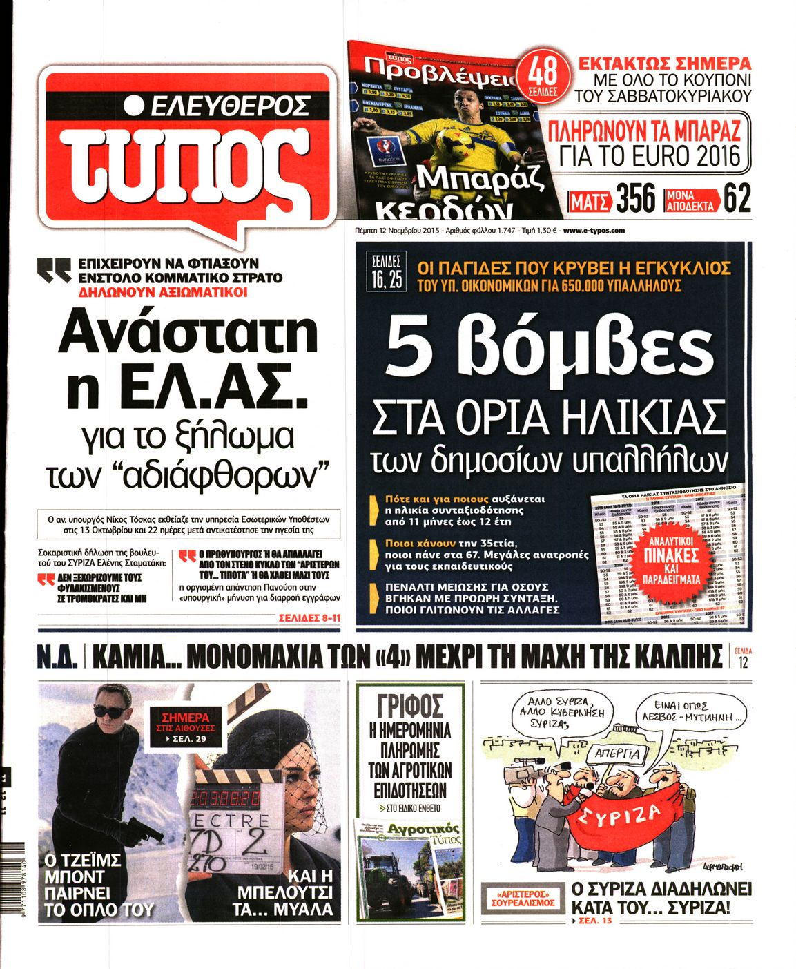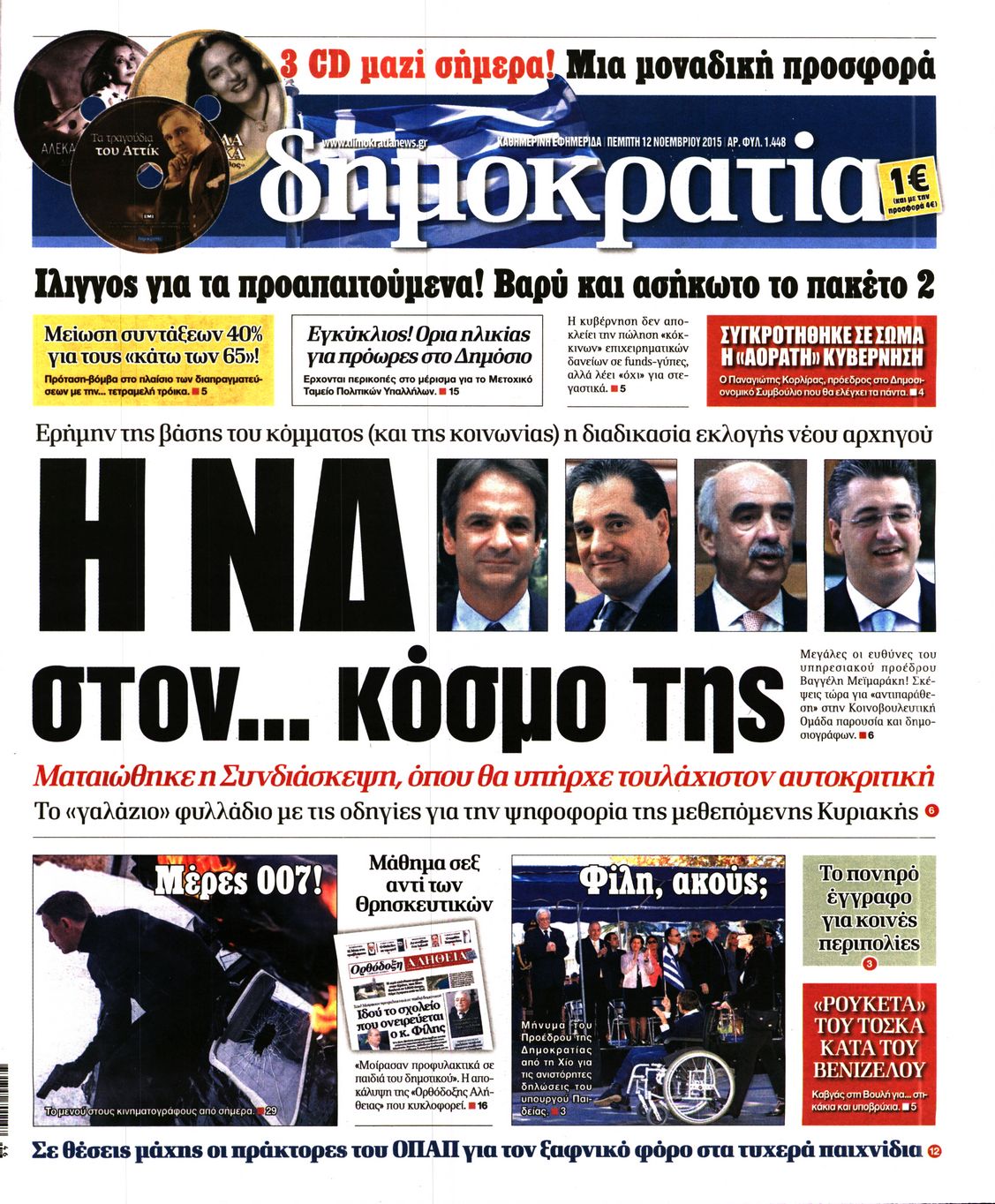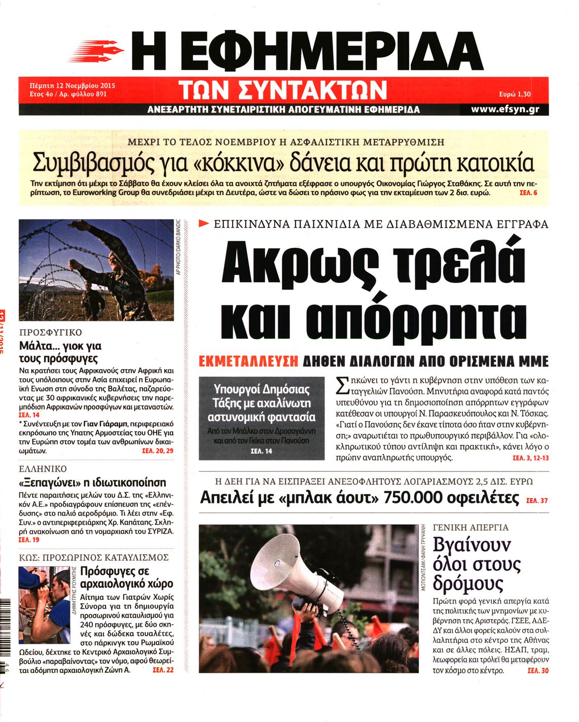 Οι πολιτικές εφημερίδες 12/11/2015 Enikos Newsroom 07:44, Πέμπτη 12 Νοεμβρίου 2015 Media Διαβάστε τα σημερινά πρωτοσέλιδα των πολιτικών εφημερίδων. ΠΟΛΙΤΙΚΕΣ ΕΦΗΜΕΡΙΔΕΣ ΠΡΩΤΟΣΕΛΙΔΑ Μοιράσου το: σχολίασε κι εσύ (0 σχόλια) Ακολουθήστε το enikos.gr στο Google News και μάθετε πρώτοι όλες τις ειδήσεις Δείτε όλες τις τελευταίες ειδήσεις από την Ελλάδα και τον Κόσμο στο enikos.gr Ειδήσεις Ροή Ειδήσεων 1 ώρα πριν Μεσόγειος: Η διαδρομή του ρωσικού τάνκερ «Qendil» και η στοχευμένη επίθεση της Ουκρανίας με drone – Ο Πούτιν προειδοποίησε για αντίποινα 55 λεπτά πριν Αττική: Θρίλερ με νεκρό βρέφος 5 μηνών – Κοιμόταν στο ίδιο κρεβάτι με τους γονείς του 2 ώρες πριν Από το Ορμένιο ως τα Μάλγαρα κι από τη Σιάτιστα μέχρι τη Νίκαια: Μπλόκα σε όλη την Ελλάδα – Το Σάββατο ανοίγουν τα διόδια οι αγρότες 2 ώρες πριν «Έλληνας Εσκομπάρ»: Φωτογραφίες με τους 4 τόνους κοκαΐνης που κατασχέθηκαν από το σκάφος «Ουρανία» 3 ώρες πριν Πούτιν: Σαρκαστικά μηνύματα, παράπονα και απρόοπτα στη συνέντευξη Τύπου – Η πρόταση γάμου on air και οι ερωτήσεις για τα αγγούρια και τους… εξωγήινους 3 ώρες πριν Τα 5 ζώδια που ευνοούνται στην ερωτική ζωή τους την επόμενη εβδομάδα – «Η ενέργεια του Αιγόκερου φέρνει αγάπη και σταθερότητα» 7 ώρες πριν Ειδικός μοιράζεται 6 κόλπα για να διατηρείστε σε φόρμα με πάνω από 40 ώρες εργασίας την εβδομάδα: «Προπονηθείτε πριν από τη δουλειά, όχι μετά» 4 ώρες πριν Αυτό το έξυπνο μαθηματικό κόλπο θα μπορούσε να αλλάξει τον τρόπο με τον οποίο οι επιστήμονες μελετούν τους σεισμούς 2 ώρες πριν Κουίζ για την παλιά Αθήνα: Αναγνωρίζετε την περιοχή; Έχετε περάσει 100% από εκεί 2 λεπτά πριν Λάρισα: Ασθενοφόρο έπεσε πάνω σε κλούβα της ΕΛ.ΑΣ στον Πλατύκαμπο – Τραυματίστηκε ο συνοδηγός – ΒΙΝΤΕΟ 8 λεπτά πριν Τέμπη: Διεκόπη για τις 9 Ιανουαρίου η δίκη για τα χαμένα βίντεο της εμπορικής αμαξοστοιχίας – «Απαιτούμε να μας σέβονται» 13 λεπτά πριν Hellenic Train: Αλλαγές και καταργήσεις δρομολογίων λεωφορείων λόγω των αγροτικών κινητοποιήσεων 19 λεπτά πριν Ζελένσκι: «Δεν χρειάζεται αναθεώρηση του Συντάγματος» για να εγκαταλείψει η Ουκρανία τον στόχο ένταξης στο ΝΑΤΟ 24 λεπτά πριν Παναγιώτα Βλαντή: Η τρυφερή εξομολόγηση για τον σύζυγό της – «Πραγματικά ήταν για μένα αυτό που ήθελα σε όλη μου τη ζωή» ENIKOS NETWORK «Η σούπερ» γρίπη εξαπλώνεται στην Ευρώπη-Στοιχεία από το ECDC για την αποτελεσματικότητα του εμβολίου ΕΛΣΤΑΤ: Αύξηση κατά 1,7% των επαγγελματιών υγείας το 2024 Η απάντηση της κυβέρνησης στα αιτήματα των αγροτών: 16 έχουν ικανοποιηθεί, 4 βρίσκονται υπό επεξεργασία και 7 δεν είναι εφι... Μισθολογική διαφάνεια: Το 68% των εργαζομένων αγνοεί τη νέα οδηγία – Αναλυτικά τα στοιχεία έρευνας Χαρτογραφώντας το «σημείο χωρίς επιστροφή»: Για πρώτη φορά αποκαλύπτεται με λεπτομέρεια το ακανθώδες όριο της ατμόσφαιρας τ... Η Google καταργεί τη λειτουργία «dark web report» – Πώς θα μπορούν οι χρήστες να διαγράφουν τα δεδομένα τους περισσότερα 18:11 , Παρασκευή 19 Δεκεμβρίου 2025 Το σόι σου: Ο Άρης έρχεται στην Ελλάδα για τις γιορτές των Χριστουγέννων – Τι θα δούμε στο αποψινό εορταστικό επεισόδιο Ένα απολαυστικό, εορταστικό επεισόδιο της σειράς “Το σόι σου”, γεμάτο ευτράπελα αλ... 15:15 , Παρασκευή 19 Δεκεμβρίου 2025 Την Κυριακή με τη Realnews: Ό,τι και αν αγοράσεις, σκανάρεις και κερδίζεις! Την Κυριακή με τη Realnews: Ό,τι και αν αγοράσεις, σκανάρεις και κερδίζεις! Με το PADU app, το... 08:00 , Παρασκευή 19 Δεκεμβρίου 2025 Την Κυριακή με τη Realnews: Δωροεπιταγή 10€ Δωροεπιταγή αξίας 10€ για αγορ