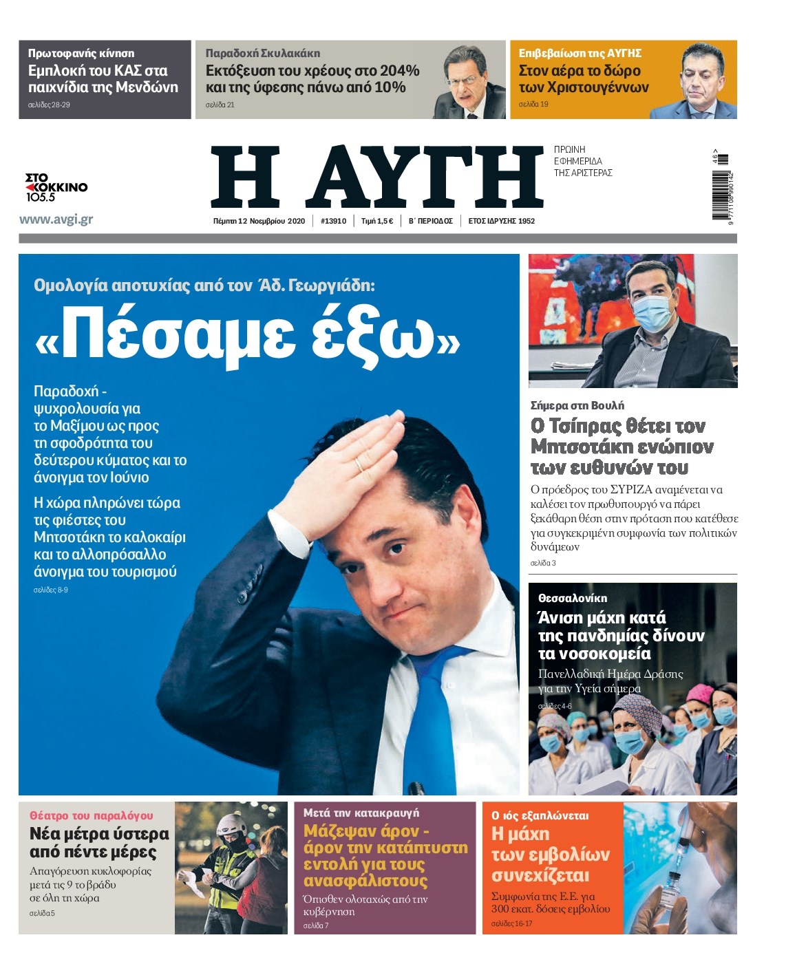 Οι πολιτικές εφημερίδες 12/11/2020 Διονύσης Νίκκας 06:09, Πέμπτη 12 Νοεμβρίου 2020 Media Διαβάστε τα πρωτοσέλιδα των πολιτικών εφημερίδων… ΕΦΗΜΕΡΙΔΕΣ ΠΟΛΙΤΙΚΕΣ ΕΦΗΜΕΡΙΔΕΣ ΠΡΩΤΟΣΕΛΙΔΑ Μοιράσου το: σχολίασε κι εσύ (0 σχόλια) Ακολουθήστε το enikos.gr στο Google News και μάθετε πρώτοι όλες τις ειδήσεις Δείτε όλες τις τελευταίες ειδήσεις από την Ελλάδα και τον Κόσμο στο enikos.gr Ειδήσεις Ροή Ειδήσεων 37 λεπτά πριν Μεσόγειος: Η διαδρομή του ρωσικού τάνκερ «Qendil» και η στοχευμένη επίθεση της Ουκρανίας με drone – Ο Πούτιν προειδοποίησε για αντίποινα 31 λεπτά πριν Αττική: Θρίλερ με νεκρό βρέφος 5 μηνών – Κοιμόταν στο ίδιο κρεβάτι με τους γονείς του 1 ώρα πριν Από το Ορμένιο ως τα Μάλγαρα κι από τη Σιάτιστα μέχρι τη Νίκαια: Μπλόκα σε όλη την Ελλάδα – Το Σάββατο ανοίγουν τα διόδια οι αγρότες 2 ώρες πριν «Έλληνας Εσκομπάρ»: Φωτογραφίες με τους 4 τόνους κοκαΐνης που κατασχέθηκαν από το σκάφος «Ουρανία» 3 ώρες πριν Πούτιν: Σαρκαστικά μηνύματα, παράπονα και απρόοπτα στη συνέντευξη Τύπου – Η πρόταση γάμου on air και οι ερωτήσεις για τα αγγούρια και τους… εξωγήινους 3 ώρες πριν Τα 5 ζώδια που ευνοούνται στην ερωτική ζωή τους την επόμενη εβδομάδα – «Η ενέργεια του Αιγόκερου φέρνει αγάπη και σταθερότητα» 7 ώρες πριν Ειδικός μοιράζεται 6 κόλπα για να διατηρείστε σε φόρμα με πάνω από 40 ώρες εργασίας την εβδομάδα: «Προπονηθείτε πριν από τη δουλειά, όχι μετά» 4 ώρες πριν Αυτό το έξυπνο μαθηματικό κόλπο θα μπορούσε να αλλάξει τον τρόπο με τον οποίο οι επιστήμονες μελετούν τους σεισμούς 1 ώρα πριν Κουίζ για την παλιά Αθήνα: Αναγνωρίζετε την περιοχή; Έχετε περάσει 100% από εκεί 6 λεπτά πριν Επίσημη η «βόμβα»: Ο ΠΑΟΚ ανακοίνωσε την απόκτηση του Πάτρικ Μπέβερλι 10 λεπτά πριν Θεσσαλονίκη: Πατέρας εγκαλεί τον Ιατρικό Σύλλογο για ποινές «χάδι» σε γιατρό που κατηγορείται για τον θάνατο του παιδιού του 16 λεπτά πριν Κερατσίνι: Αστυνομικός εκτός υπηρεσίας απέτρεψε κλοπή μηχανών – Συνελήφθησαν τρεις ανήλικοι 20 λεπτά πριν Το σόι σου: Ο Άρης έρχεται στην Ελλάδα για τις γιορτές των Χριστουγέννων – Τι θα δούμε στο αποψινό εορταστικό επεισόδιο 27 λεπτά πριν ΠΑΣΟΚ σε Μαρινάκη: Δεν νομιμοποιούμε πολιτικές επιλογές που μεταφέρουν το πρόβλημα από υπηρεσία σε υπηρεσία ENIKOS NETWORK «Η σούπερ» γρίπη εξαπλώνεται στην Ευρώπη-Στοιχεία για την αποτελεσματικότητα του εμβολίου από το ECDC ΕΛΣΤΑΤ: Αύξηση κατά 1,7% των επαγγελματιών υγείας το 2024 Η απάντηση της κυβέρνησης στα αιτήματα των αγροτών: 16 έχουν ικανοποιηθεί, 4 βρίσκονται υπό επεξεργασία και 7 δεν είναι εφι... Μισθολογική διαφάνεια: Το 68% των εργαζομένων αγνοεί τη νέα οδηγία – Αναλυτικά τα στοιχεία έρευνας Χαρτογραφώντας το «σημείο χωρίς επιστροφή»: Για πρώτη φορά αποκαλύπτεται με λεπτομέρεια το ακανθώδες όριο της ατμόσφαιρας τ... Η Google καταργεί τη λειτουργία «dark web report» – Πώς θα μπορούν οι χρήστες να διαγράφουν τα δεδομένα τους περισσότερα 18:11 , Παρασκευή 19 Δεκεμβρίου 2025 Το σόι σου: Ο Άρης έρχεται στην Ελλάδα για τις γιορτές των Χριστουγέννων – Τι θα δούμε στο αποψινό εορταστικό επεισόδιο Ένα απολαυστικό, εορταστικό επεισόδιο της σειράς “Το σόι σου”, γεμάτο ευτράπελα αλ... 15:15 , Παρασκευή 19 Δεκεμβρίου 2025 Την Κυριακή με τη Realnews: Ό,τι και αν αγοράσεις, σκανάρεις και κερδίζεις! Την Κυριακή με τη Realnews: Ό,τι και αν αγοράσεις, σκανάρεις και κερδίζεις! Με το PADU app, το... 08:00 , Παρασκευή 19 Δεκεμβρίου 2025 Την Κυριακή με τη Realnews: Δωροεπιταγή 10€ Δωροεπιταγή αξίας 10€ για αγορές άνω των 60€ από τα 