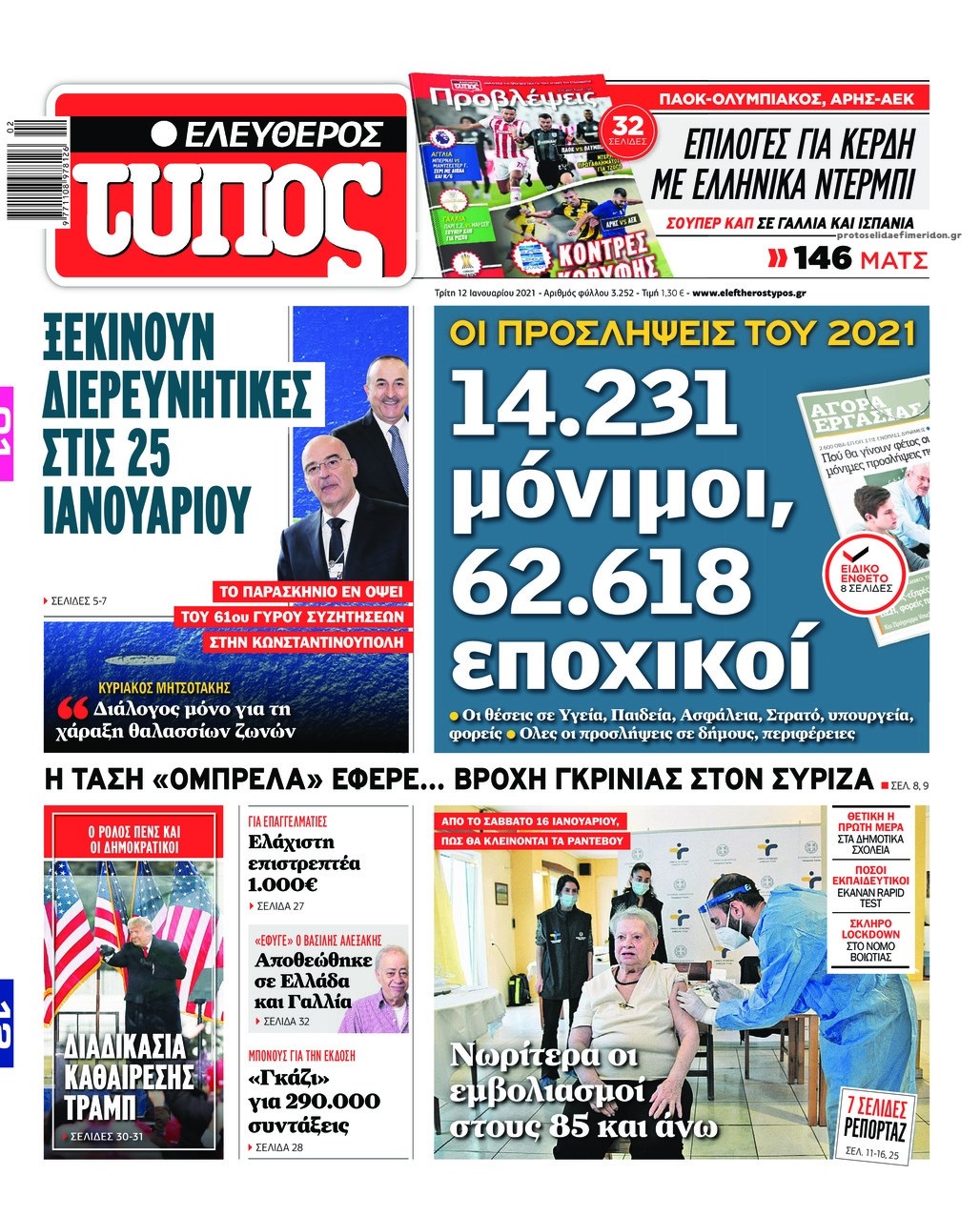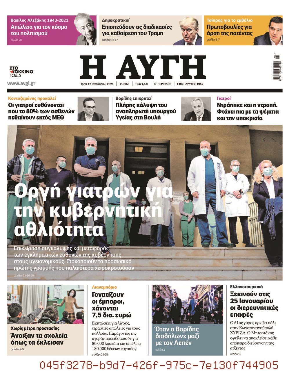 Οι πολιτικές εφημερίδες 12/1/2021 Σήφης Γαρυφαλάκης 06:31, Τρίτη 12 Ιανουαρίου 2021 Media Διαβάστε τα πρωτοσέλιδα των πολιτικών εφημερίδων… ΕΦΗΜΕΡΙΔΕΣ ΠΟΛΙΤΙΚΕΣ ΕΦΗΜΕΡΙΔΕΣ ΠΡΩΤΟΣΕΛΙΔΑ ΠΡΩΤΟΣΕΛΙΔΑ ΕΦΗΜΕΡΙΔΩΝ Μοιράσου το: σχολίασε κι εσύ (0 σχόλια) Ακολουθήστε το enikos.gr στο Google News και μάθετε πρώτοι όλες τις ειδήσεις Δείτε όλες τις τελευταίες ειδήσεις από την Ελλάδα και τον Κόσμο στο enikos.gr Ειδήσεις Ροή Ειδήσεων 3 ώρες πριν Χριστούγεννα στα μπλόκα: Επιμένουν στις κινητοποιήσεις τους οι αγρότες – Ανοίγουν τα διόδια το Σαββατοκύριακο 4 ώρες πριν Ουκρανία: Η άνευ προηγουμένου επίθεση σε ρωσικό τάνκερ στη Μεσόγειο και το μήνυμα προς στον Πούτιν – Το «μακρύ χέρι» του Κιέβου 3 ώρες πριν Πούτιν: Τα μηνύματα σε Ευρώπη και ΝΑΤΟ από το μαραθώνιο «σόου» του – Η απαίτηση για «σεβασμό» και η ειρήνη «με τους όρους» της Μόσχας 4 ώρες πριν Τραμπ: Δεν αποκλείει την πιθανότητα ενός πολέμου στη Βενεζουέλα – «Ο Μαδούρο ξέρει καλύτερα από τον καθένα τι ακριβώς θέλω» 5 ώρες πριν Συνεχίζει να προκαλεί ο Μίτσκοσκι: «Για μένα το όνομα Μακεδονία είναι ιερό» 3 ώρες πριν Ανακαλύφθηκαν αρχαία χρυσά νομίσματα 2.200 ετών που απεικονίζουν τον θεό Απόλλωνα – Η άγνωστη σύνδεση με τον Φίλιππο Β΄ της Μακεδονίας 4 ώρες πριν Ύπνος: Μια κρυφή κατάσταση του εγκεφάλου πριν από τον ύπνο μπορεί να είναι το “κλειδί” για υψηλή ευφυΐα και δημιουργικότητα 5 ώρες πριν Αριθμολογία: Οι άνθρωποι που έχουν γεννηθεί αυτές τις 4 ημερομηνίες, συχνά παρεξηγούνται – «Η καλοσύνη τους κρύβει τεράστια δύναμη» 6 ώρες πριν Ξεχάστε το καθάρισμα το Σαββατοκύριακο: Ο «κανόνας των 20 λεπτών» που θα σας λύσει τα χέρια 24 λεπτά πριν Πρόταση γάμου στο ΣΕΦ κατά την διάρκεια του αγώνα Ολυμπιακός-Βιλερμπάν – Δείτε βίντεο 39 λεπτά πριν Euroleague: Επέστρεψε στις νίκες ο Ολυμπιακός, πήρε την ματσάρα της χρονιάς η Μπάρτσα – Τα αποτελέσματα και η βαθμολογία 54 λεπτά πριν Συρία: Μαζικά πλήγματα των ΗΠΑ σε θέσεις του Ισλαμικού Κράτους – Χέγκσεθ: «Δεν είναι αρχή πολέμου, είναι μια δήλωση εκδίκησης» για το θάνατο των στρατιωτών μας 1 ώρα πριν Ουκρανία: Ολοκληρώθηκαν οι συνομιλίες με τους Αμερικανούς κι Ευρωπαίους διαπραγματευτές 1 ώρα πριν Μπαρτσελόνα – Μπασκόνια 134-124: Οι «μπλαουγκράνα» πήραν το ματς της χρονιάς ύστερα από τρεις παρατάσεις ENIKOS NETWORK Το ΕΚΑΒ τιμήθηκε από την Ακαδημία Αθηνών για τα 40 χρόνια προσφοράς του Έχετε πραγματικά μεγάλη καρδιά; 10 χαρακτηριστικά όσων έχουν καλοσύνη Αναστολή μέτρων αναγκαστικής εκτέλεσης για κτηνοτρόφους που πλήττονται από την ευλογιά των αιγοπροβάτων Πλήρης επάρκεια προϊόντων στις λαϊκές της Αττικής, παρά τις αγροτικές κινητοποιήσεις – Τι απαντούν οι πωλητές Χαρτογραφώντας το «σημείο χωρίς επιστροφή»: Για πρώτη φορά αποκαλύπτεται με λεπτομέρεια το ακανθώδες όριο της ατμόσφαιρας τ... Η Google καταργεί τη λειτουργία «dark web report» – Πώς θα μπορούν οι χρήστες να διαγράφουν τα δεδομένα τους περισσότερα 22:42 , Παρασκευή 19 Δεκεμβρίου 2025 Γιώργος Γιαννόπουλος για “Το σόι σου”: “Είναι ευτυχία και ευλογία αυτή η σειρά” «Είναι ευτυχία και ευλογία η συγκυρία αυτής της σειράς», θα πει ο Γιώργος Γιαννόπουλος -ο αγαπ... 20:37 , Παρασκευή 19 Δεκεμβρίου 2025 Don’t Forget The Lyrics: Η Έλλη Κοκκίνου υποδέχεται 4 παίκτες που θα κάνουν τα πάντα για να μη χάσουν ούτε… μισή λέξη από τους στίχους Το «Don’t Forget The Lyrics» επιστρέφει απόψε, Παρασκευή 19 Δεκεμβρίου, στις 21:00 με νέο επει... 19:31 , Παρασκευή 19 Δεκεμβρίου 2025 GNTM: Απόψε ο μεγάλος τελικός για 