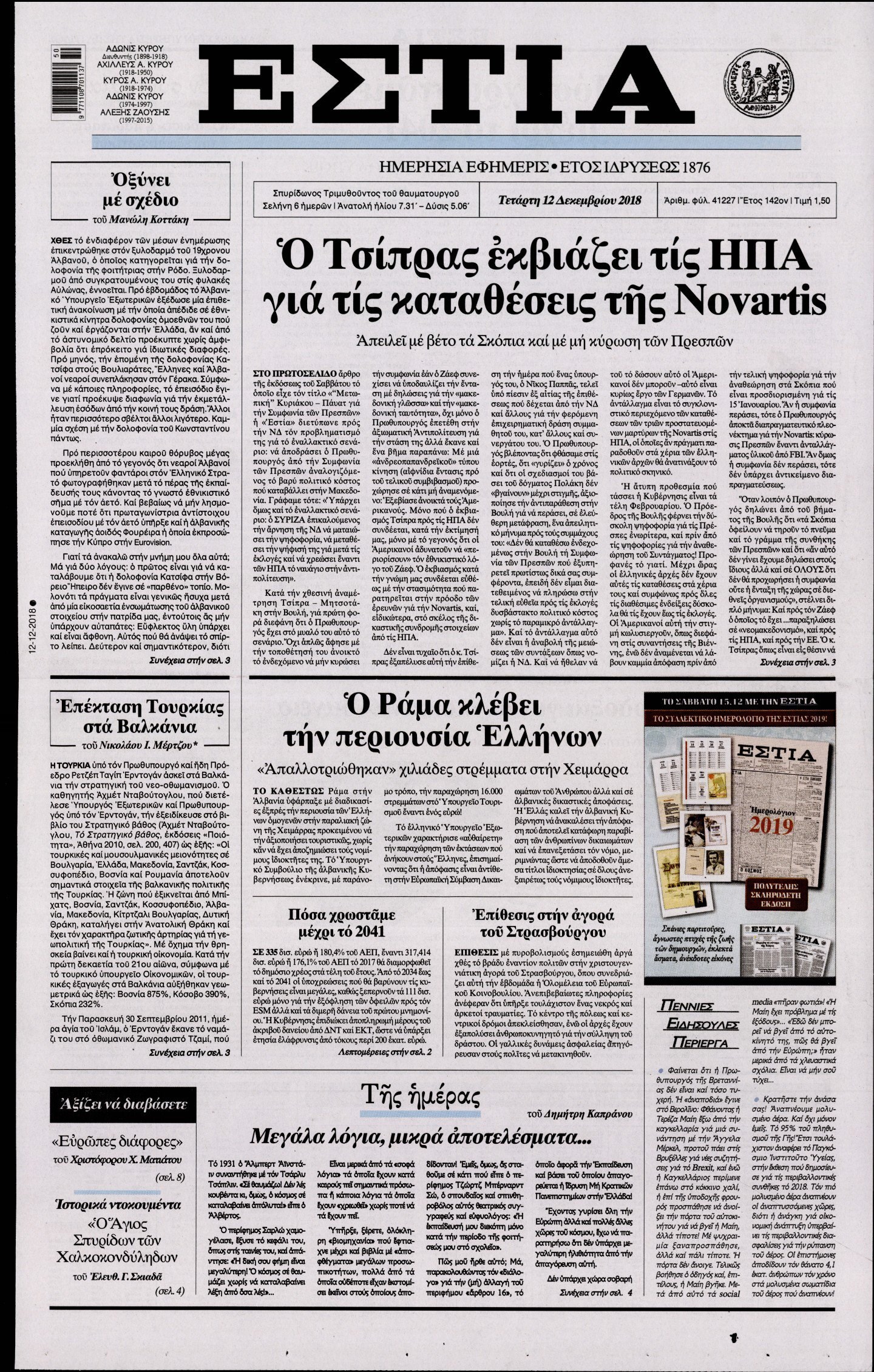 Οι πολιτικές εφημερίδες 12/12/18 Enikos Newsroom 06:25, Τετάρτη 12 Δεκεμβρίου 2018 Media Διαβάστε τα πρωτοσέλιδα: ΠΟΛΙΤΙΚΕΣ ΕΦΗΜΕΡΙΔΕΣ ΠΡΩΤΟΣΕΛΙΔΑ Μοιράσου το: σχολίασε κι εσύ (0 σχόλια) Ακολουθήστε το enikos.gr στο Google News και μάθετε πρώτοι όλες τις ειδήσεις Δείτε όλες τις τελευταίες ειδήσεις από την Ελλάδα και τον Κόσμο στο enikos.gr Ειδήσεις Ροή Ειδήσεων 1 ώρα πριν Υπόθεση Έπσταϊν: Το Υπουργείο Δικαιοσύνης δημοσιοποίησε μια σειρά από εξαιρετικά επεξεργασμένα αρχεία – «Λείπουν τα πιο σημαντικά έγγραφα», λένε οι Δημοκρατικοί 38 λεπτά πριν Ο «χάρτης» με τις αυξήσεις και τις φοροελαφρύνσεις του 2026 – Ποιοι και πόσα κερδίζουν 11 ώρες πριν Χριστούγεννα στα μπλόκα: Επιμένουν στις κινητοποιήσεις τους οι αγρότες – Ανοίγουν τα διόδια το Σαββατοκύριακο 2 ώρες πριν ΟΝΕΧ – MEGATUGS: Ξεκίνησε η ναυπήγηση ρυμουλκών στην Ελλάδα – Προθάλαμος πολεμικών πλοίων – Δείτε φωτογραφίες και βίντεο 2 ώρες πριν Καιρός: Αλλαγή σκηνικού σήμερα με βροχές και πτώση της θερμοκρασίας – Οι προβλέψεις των μετεωρολόγων για τα Χριστούγεννα 3 ώρες πριν Αυγά: Πόσα μπορείτε να τρώτε την ημέρα με ασφάλεια για μέγιστη πρόσληψη πρωτεΐνης 4 ώρες πριν Τα ζώδια σήμερα, Σάββατο 20 Δεκεμβρίου: Παρθένοι, το σύμπαν σας δίνει το κλειδί 3 ώρες πριν Οπτική ψευδαίσθηση: Μόνο αν είσαι ο Σέρλοκ Χολμς θα βρεις τον αριθμό «87» σε 7 δευτερόλεπτα 1 ώρα πριν Αρχαιολόγοι ανακάλυψαν σε χωράφι απεικόνιση 600 ετών ενός Αγίου – Τα στοιχεία που δείχνουν ότι μαρτύρησε 1 λεπτό πριν Ουκρανία: Drones έπληξαν εξέδρα πετρελαίου και πολεμικό πλοίο της Ρωσίας στην Κασπία 10 λεπτά πριν Παιδική υπέρταση: Μια σιωπηλή απειλή που αυξάνεται διεθνώς 11 λεπτά πριν Αγχώνεται για το χριστουγεννιάτικο δώρο που πήρε στην πλούσια σύντροφό του – «Φοβάμαι πως θα το βρει φθηνιάρικο, φοράει βραχιόλια Cartier» 17 λεπτά πριν Enerwave: Το νέο «ρεύμα» στη λιανική ενέργειας που αλλάζει την εμπειρία του καταναλωτή 22 λεπτά πριν Γιώργος Μαζωνάκης: Τη Δευτέρα η μήνυση του τραγουδιστή κατά του 22χρονου ENIKOS NETWORK Πόσα κιλά παίρνουμε πραγματικά τα Χριστούγεννα, σύμφωνα με την επιστήμη – Πώς να το αποτρέψουμε; Το δημοφιλές ρόφημα που αυξάνει την πίεση πιο γρήγορα και από το αλάτι Mega χριστουγεννιάτικη φορολοταρία: «Κλείδωσε» η ημερομηνία για την κλήρωση – Ερωτήσεις και απαντήσεις Αναστολή μέτρων αναγκαστικής εκτέλεσης για κτηνοτρόφους που πλήττονται από την ευλογιά των αιγοπροβάτων Χαρτογραφώντας το «σημείο χωρίς επιστροφή»: Για πρώτη φορά αποκαλύπτεται με λεπτομέρεια το ακανθώδες όριο της ατμόσφαιρας τ... Η Google καταργεί τη λειτουργία «dark web report» – Πώς θα μπορούν οι χρήστες να διαγράφουν τα δεδομένα τους περισσότερα 08:14 , Σάββατο 20 Δεκεμβρίου 2025 Τρομεροί γονείς: Η Μαρία Καβογιάννη εισβάλλει στο σπίτι της οικογένειας Στεφανίδη Όσα θα δούμε στο νέο διπλό επεισόδιο της σειράς «Τρομεροί γονείς», σήμερα Σάββατο 20 Δεκεμβρίο... 05:48 , Σάββατο 20 Δεκεμβρίου 2025 Οι οικονομικές εφημερίδες 20/12/2025 Διαβάστε τα πρωτοσέλιδα από τις οικονομικές εφημερίδες, σήμερα 20/12/2025. 05:43 , Σάββατο 20 Δεκεμβρίου 2025 Οι αθλητικές εφημερίδες 20/12/2025 Διαβάστε τα πρωτοσέλιδα από τις αθλητικές εφημερίδες, σήμερα 20/12/2025. 05:38 , Σάββατο 20 Δεκεμβρίου 2025 Οι πολιτικές εφημερίδες 20/12/2025 Διαβάστε τα πρωτοσέλιδα από τις πολιτικές εφημερίδες, σήμερα 20/12/2025. ΤΕΛΕΥΤΑΙΕΣ ΕΙΔΗΣΕΙΣ 10 λεπτά πριν Παιδική υπέρταση: Μια σιωπηλή απειλή που αυξάνεται... 11 λεπτά πριν Αγχώνεται για το χριστουγεννιάτικο δώρο που πήρε στην... 17 λεπτά πριν Enerwave: Το νέο 
