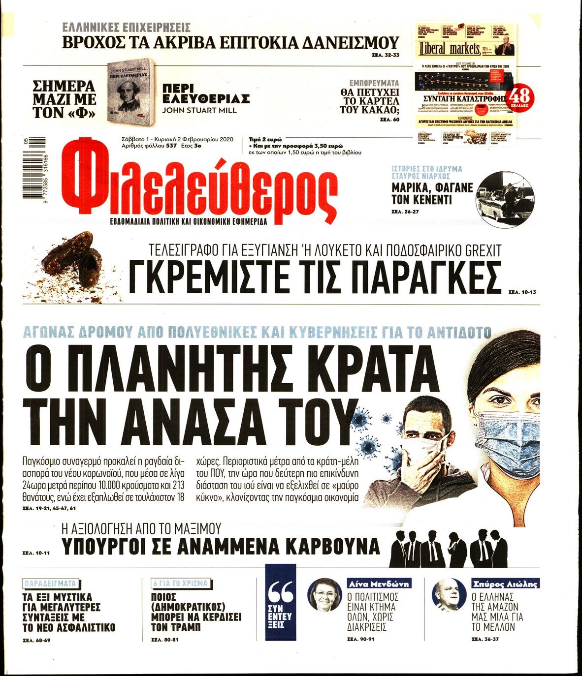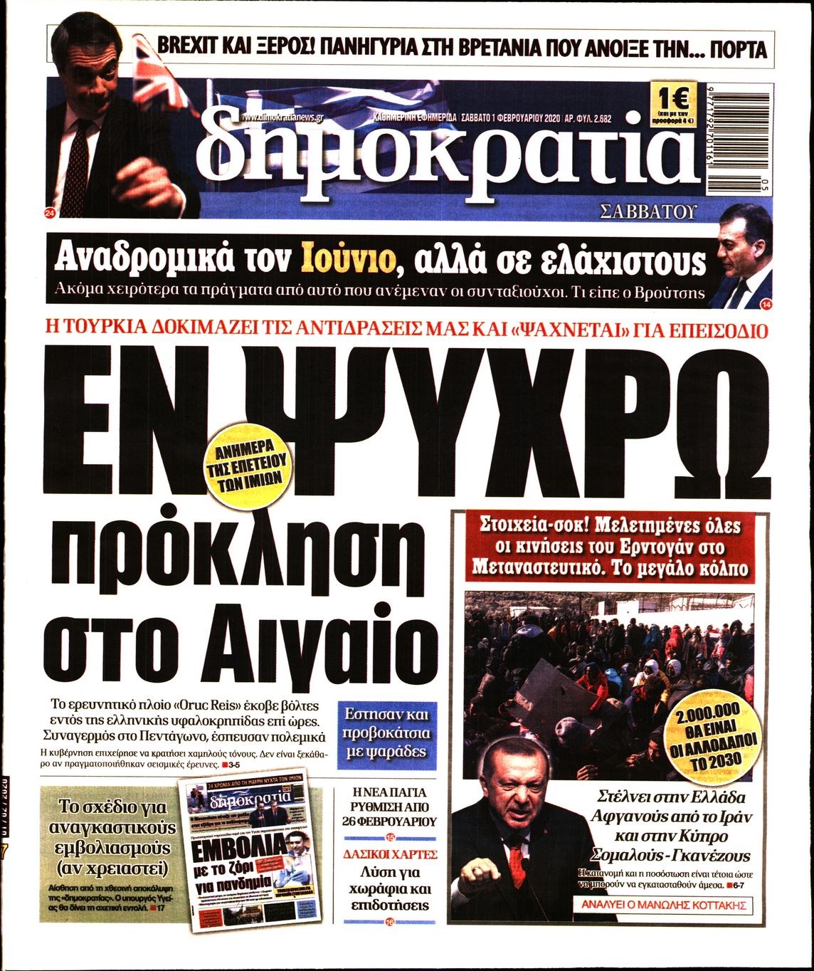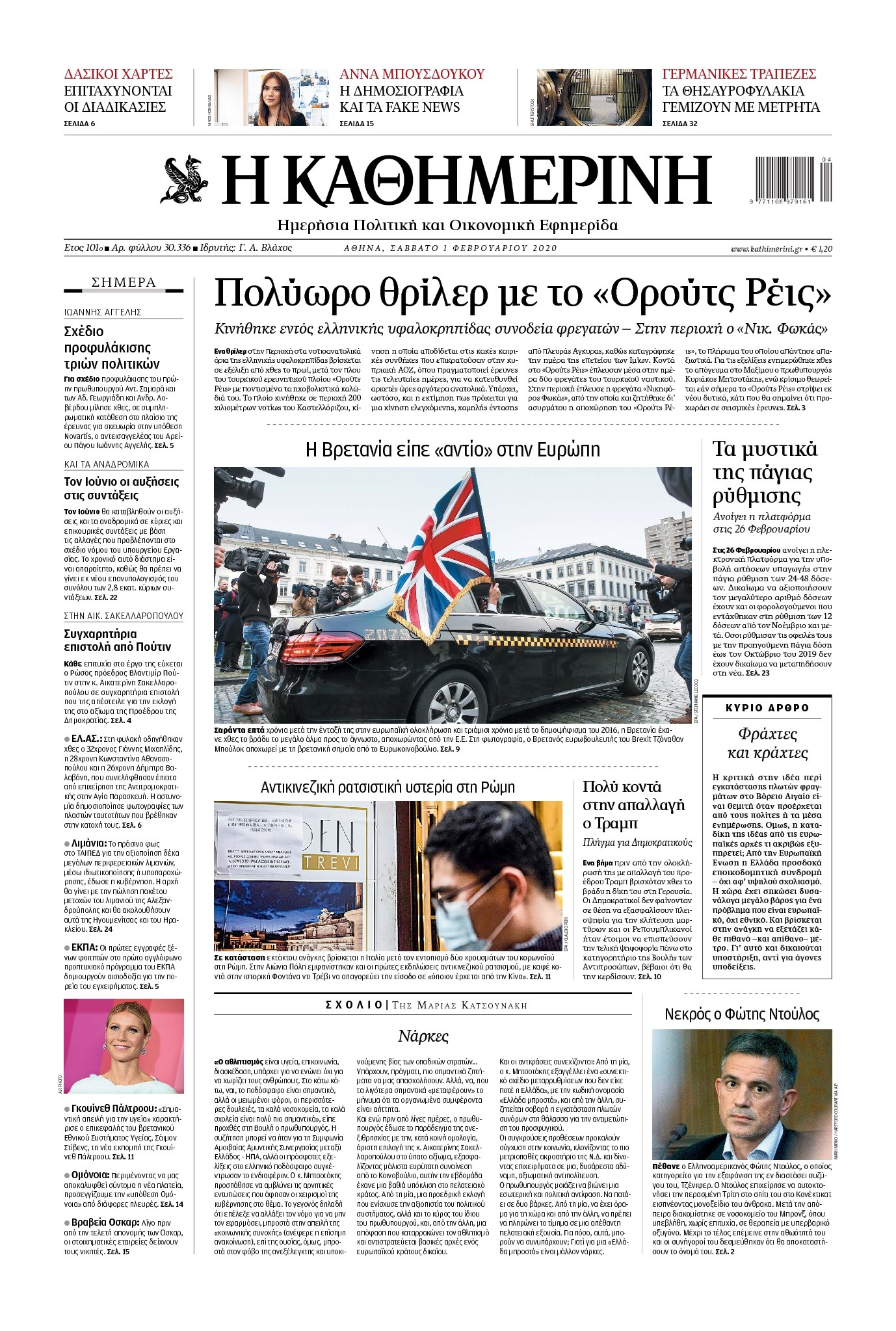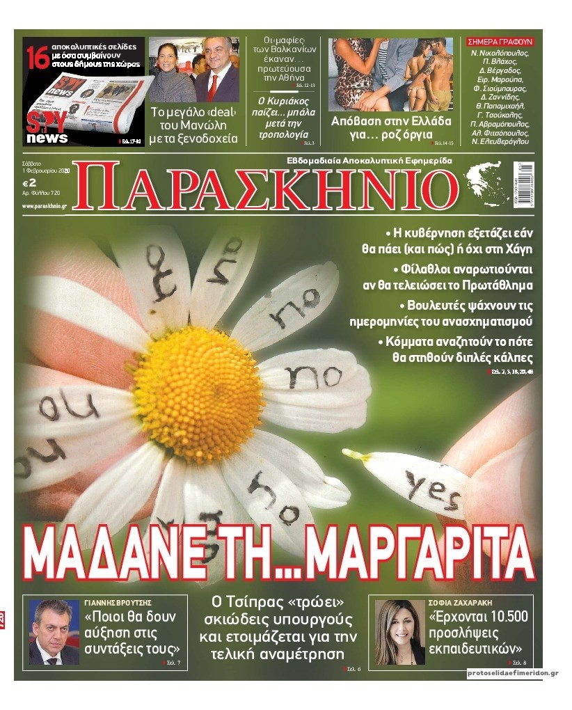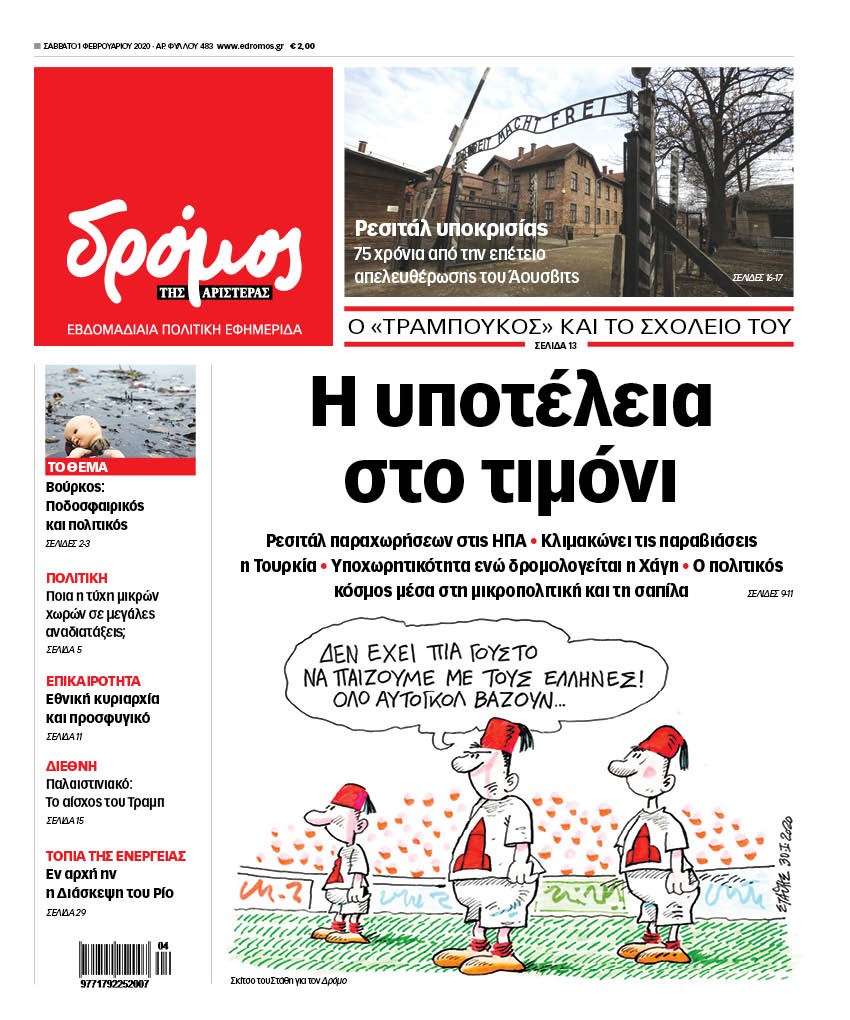 Οι πολιτικές εφημερίδες 1/2/2020 Διονύσης Νίκκας 07:28, Σάββατο 01 Φεβρουαρίου 2020 Media Διαβάστε τα πρωτοσέλιδα των πολιτικών εφημερίδων… ΠΟΛΙΤΙΚΕΣ ΕΦΗΜΕΡΙΔΕΣ ΠΡΩΤΟΣΕΛΙΔΑ Μοιράσου το: σχολίασε κι εσύ (0 σχόλια) Ακολουθήστε το enikos.gr στο Google News και μάθετε πρώτοι όλες τις ειδήσεις Δείτε όλες τις τελευταίες ειδήσεις από την Ελλάδα και τον Κόσμο στο enikos.gr Ειδήσεις Ροή Ειδήσεων 2 ώρες πριν Χριστούγεννα στα μπλόκα: Επιμένουν στις κινητοποιήσεις τους οι αγρότες – Ανοίγουν τα διόδια το Σαββατοκύριακο 2 ώρες πριν Ουκρανία: Η άνευ προηγουμένου επίθεση σε ρωσικό τάνκερ στη Μεσόγειο και το μήνυμα προς στον Πούτιν – Το «μακρύ χέρι» του Κιέβου 1 ώρα πριν Πούτιν: Τα μηνύματα σε Ευρώπη και ΝΑΤΟ από το μαραθώνιο «σόου» του – Η απαίτηση για «σεβασμό» και η ειρήνη «με τους όρους» της Μόσχας 2 ώρες πριν Τραμπ: Δεν αποκλείει την πιθανότητα ενός πολέμου στη Βενεζουέλα – «Ο Μαδούρο ξέρει καλύτερα από τον καθένα τι ακριβώς θέλω» 3 ώρες πριν Συνεχίζει να προκαλεί ο Μίτσκοσκι: «Για μένα το όνομα Μακεδονία είναι ιερό» 1 ώρα πριν Ανακαλύφθηκαν αρχαία χρυσά νομίσματα 2.200 ετών που απεικονίζουν τον θεό Απόλλωνα – Η άγνωστη σύνδεση με τον Φίλιππο Β΄ της Μακεδονίας 2 ώρες πριν Ύπνος: Μια κρυφή κατάσταση του εγκεφάλου πριν από τον ύπνο μπορεί να είναι το “κλειδί” για υψηλή ευφυΐα και δημιουργικότητα 3 ώρες πριν Αριθμολογία: Οι άνθρωποι που έχουν γεννηθεί αυτές τις 4 ημερομηνίες, συχνά παρεξηγούνται – «Η καλοσύνη τους κρύβει τεράστια δύναμη» 4 ώρες πριν Ξεχάστε το καθάρισμα το Σαββατοκύριακο: Ο «κανόνας των 20 λεπτών» που θα σας λύσει τα χέρια 6 λεπτά πριν Βασίλης Σπανούλης: Δεν εμφανίστηκε ούτε ένας δημοσιογράφος στην συνέντευξη Τύπου – «Καλησπέρα στον… κανέναν», δείτε βίντεο 18 λεπτά πριν Πόλεμος στην Ουκρανία: Εφτά νεκροί από ρωσική πυραυλική επίθεση στο λιμάνι της Οδησσού 21 λεπτά πριν ΗΠΑ: Η κυβέρνηση του Ντόναλντ Τραμπ άρχισε να δημοσιοποιεί τα αρχεία Έπσταϊν 33 λεπτά πριν Σάμος: Άνοιξε το μπλόκο των αγροτών στον κόμβο Κοκκαρίου – Σε νέα συνεδρίαση θα καθορίσουν την στάση τους 41 λεπτά πριν Άνω Λιόσια: Πυροβολισμοί σε επιχείρηση με χαλιά – Εντοπίστηκαν 10 κάλυκες ENIKOS NETWORK Το ΕΚΑΒ τιμήθηκε από την Ακαδημία Αθηνών για τα 40 χρόνια προσφοράς του Έχετε πραγματικά μεγάλη καρδιά; 10 χαρακτηριστικά όσων έχουν καλοσύνη Αναστολή μέτρων αναγκαστικής εκτέλεσης για κτηνοτρόφους που πλήττονται από την ευλογιά των αιγοπροβάτων Πλήρης επάρκεια προϊόντων στις λαϊκές της Αττικής, παρά τις αγροτικές κινητοποιήσεις – Τι απαντούν οι πωλητές Χαρτογραφώντας το «σημείο χωρίς επιστροφή»: Για πρώτη φορά αποκαλύπτεται με λεπτομέρεια το ακανθώδες όριο της ατμόσφαιρας τ... Η Google καταργεί τη λειτουργία «dark web report» – Πώς θα μπορούν οι χρήστες να διαγράφουν τα δεδομένα τους περισσότερα 22:42 , Παρασκευή 19 Δεκεμβρίου 2025 Γιώργος Γιαννόπουλος για “Το σόι σου”: “Είναι ευτυχία και ευλογία αυτή η σειρά” «Είναι ευτυχία και ευλογία η συγκυρία αυτής της σειράς», θα πει ο Γιώργος Γιαννόπουλος -ο αγαπ... 20:37 , Παρασκευή 19 Δεκεμβρίου 2025 Don’t Forget The Lyrics: Η Έλλη Κοκκίνου υποδέχεται 4 παίκτες που θα κάνουν τα πάντα για να μη χάσουν ούτε… μισή λέξη από τους στίχους Το «Don’t Forget The Lyrics» επιστρέφει απόψε, Παρασκευή 19 Δεκεμβρίου, στις 21:00 με νέο επει... 19:31 , Παρασκευή 19 Δεκεμβρίου 2025 GNTM: Απόψε ο μεγάλος τελικός για τους 4 φιναλίστ Έπειτα από μήνες γεμάτους μόδα, δημιουργία και έντονες αναμετρήσεις, το GNTM 2025 κορυφώνεται,... 18:11 , Παρασ