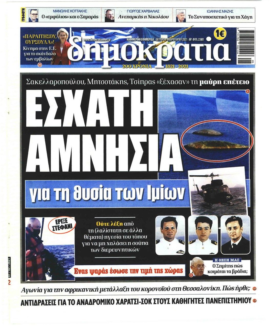 Διαβάστε τα πρωτοσέλιδα των πολιτικών εφημερίδων…