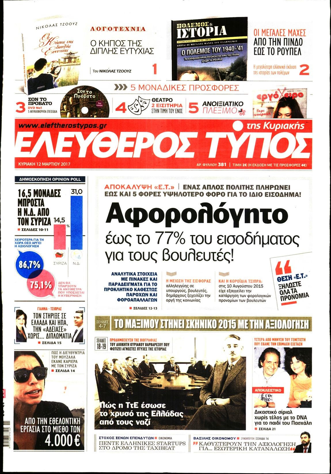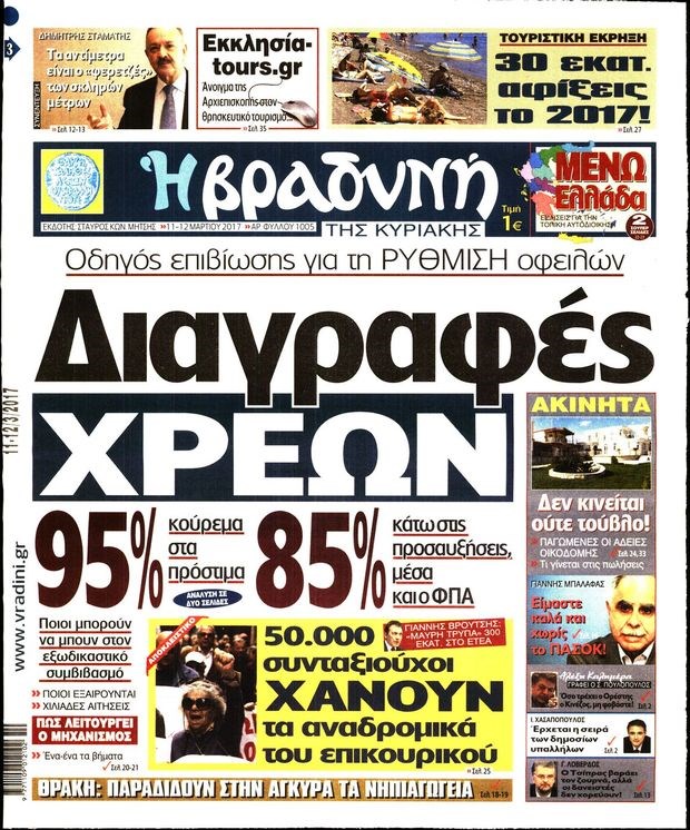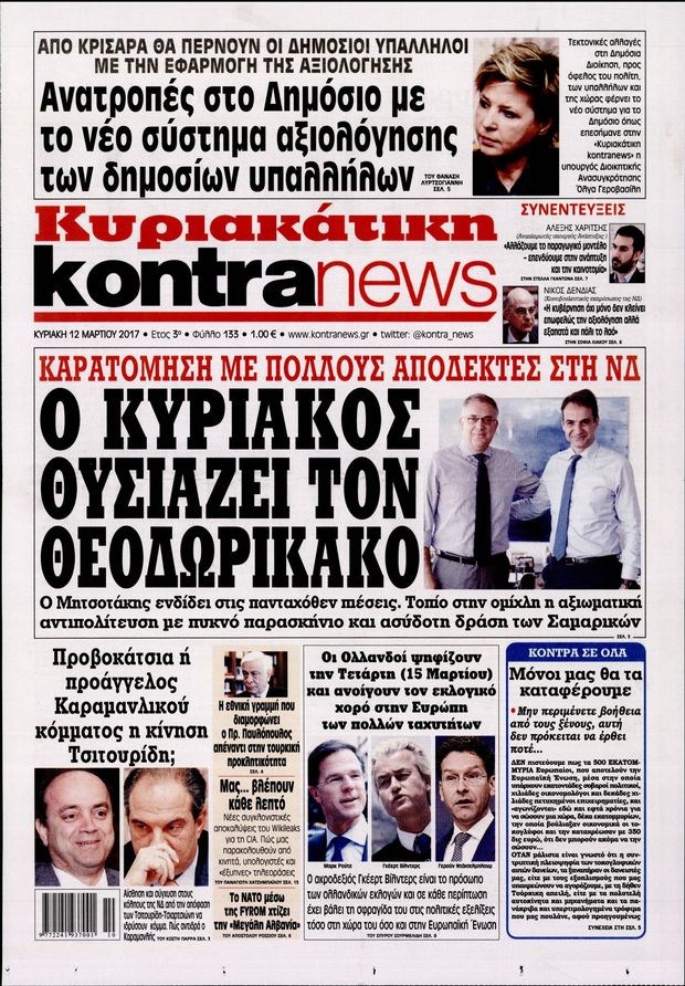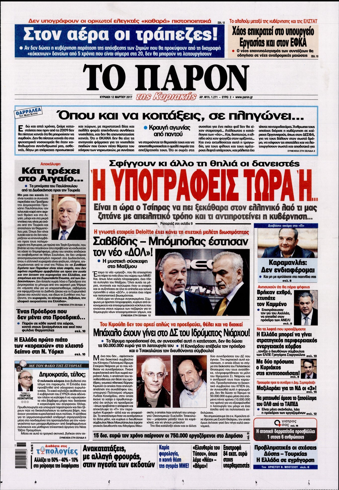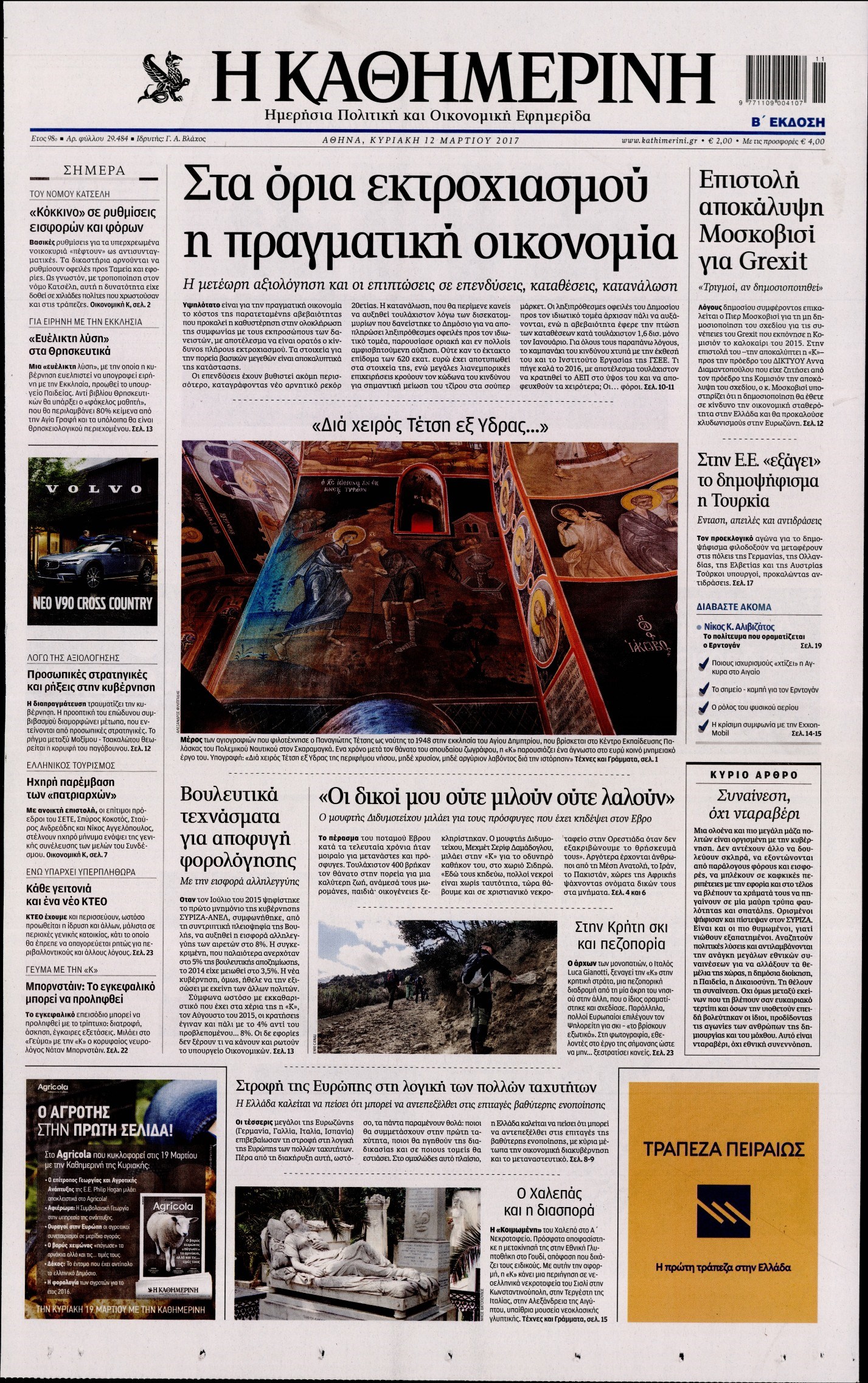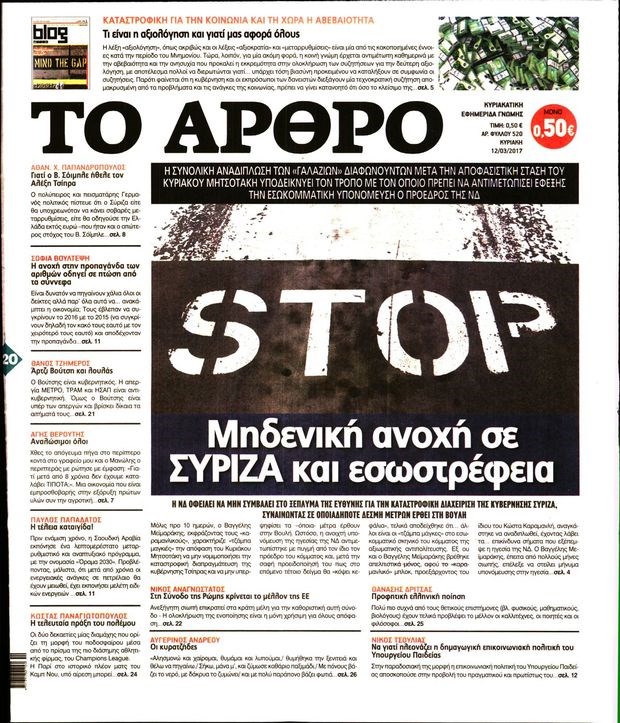 Οι πολιτικές εφημερίδες 12/3/2017 Κώστας Τεό 06:55, Κυριακή 12 Μαρτίου 2017 Media Διαβάστε τα σημερινά πρωτοσέλιδα των πολιτικών εφημερίδων: ΠΟΛΙΤΙΚΕΣ ΕΦΗΜΕΡΙΔΕΣ ΠΡΩΤΟΣΕΛΙΔΑ Μοιράσου το: σχολίασε κι εσύ (0 σχόλια) Ακολουθήστε το enikos.gr στο Google News και μάθετε πρώτοι όλες τις ειδήσεις Δείτε όλες τις τελευταίες ειδήσεις από την Ελλάδα και τον Κόσμο στο enikos.gr Ειδήσεις Ροή Ειδήσεων 26 λεπτά πριν Τσιάρας προς αγρότες: Τα μπλόκα και τα πείσματα δεν ωφελούν – Οι λύσεις περνούν μέσα από τον διάλογο 1 ώρα πριν Αρχεία Έπσταϊν: Οι συγκλονιστικές φωτογραφίες – Ο Μάικλ Τζάκσον, ο Μικ Τζάγκερ και ο Κέβιν Σπέισι ανάμεσα στους διάσημους που απεικονίζονται 3 ώρες πριν Νέες ταυτότητες: Μεγάλη αναμονή για ραντεβού στην Αττική – Τέλος τα ταξίδια εκτός Ελλάδος από τον Αύγουστο για όσους δεν έχουν αλλάξει 2 ώρες πριν Ινδία: Επτά ελέφαντες σκοτώθηκαν κατά τη σύγκρουση επιβατικού τρένου με κοπάδι 3 ώρες πριν Συνελήφθη οδηγός μηχανής που έτρεχε με 161 χλμ στη Συγγρού – Τον έπιασε το ραντάρ της Τροχαίας 3 ώρες πριν Μία νέα «χρυσή» περίοδος αρχίζει για 3 ζώδια από σήμερα – «Μία αναπάντεχη ευκαιρία οδηγεί στην επιτυχία» 5 ώρες πριν Αγχώνεται για το χριστουγεννιάτικο δώρο που πήρε στην πλούσια σύντροφό του – «Φοβάμαι πως θα το βρει φθηνιάρικο, φοράει βραχιόλια Cartier» 2 ώρες πριν Διαιτολόγος αποκαλύπτει 9 πρωινές συνήθειες που «λιώνουν» το κοιλιακό λίπος – «Υποστηρίζουν την υγιεινή απώλεια βάρους» 3 ώρες πριν Οι 7 φράσεις που δεν λένε ποτέ οι συναισθηματικά έξυπνοι άνθρωποι κατά τη διάρκεια ενός καβγά 9 λεπτά πριν Πάτρα: Πέθανε 46χρονος έπειτα από λιποθυμικό επεισόδιο στο σπίτι του 17 λεπτά πριν «Μεγάλη Χίμαιρα»: Πότε κάνει πρεμιέρα η σειρά 25 λεπτά πριν Καλλιθέα: Έφοδος του «ελληνικού FBI» σε δύο καταστήματα stripshow – 5 συλλήψεις – Βίντεο 26 λεπτά πριν Τσιάρας προς αγρότες: Τα μπλόκα και τα πείσματα δεν ωφελούν – Οι λύσεις περνούν μέσα από τον διάλογο 32 λεπτά πριν Μεσσηνία: Μαχαιριές έπειτα από καβγά για οικονομικές διαφορές στον Πολύλοφο – Συνελήφθη 40χρονος ENIKOS NETWORK Γήρανση του εγκεφάλου: Νευροεπιστήμονες ανακάλυψαν τη 10λεπτη δραστηριότητα που μπορεί να τη σταματήσει Είστε μόνιμα απρόσεκτοι; 3 σημάδια που δείχνουν ότι μπορεί να είναι σύμπτωμα πάθησης Χειμερινές εκπτώσεις 2026: Πρεμιέρα στις 12 Ιανουαρίου – Πόσο θα διαρκέσουν και τι πρέπει να γνωρίζουν οι καταναλωτές Χρήστος Δήμας: Στα 2,5 εκατ. ευρώ την ημέρα το κόστος από το άνοιγμα των διοδίων από τους αγρότες – Θα αξιώσουν αποζημίωση ... Χαρτογραφώντας το «σημείο χωρίς επιστροφή»: Για πρώτη φορά αποκαλύπτεται με λεπτομέρεια το ακανθώδες όριο της ατμόσφαιρας τ... Η Google καταργεί τη λειτουργία «dark web report» – Πώς θα μπορούν οι χρήστες να διαγράφουν τα δεδομένα τους περισσότερα 12:53 , Σάββατο 20 Δεκεμβρίου 2025 Να μ’ αγαπάς: Το παρελθόν έρχεται στο φως – Καταιγιστικές εξελίξεις στα τελευταία επεισόδια του 2025 Ο Άγγελος αποκαλύπτεται, η Φωτεινή ανησυχεί για τον Λευτέρη και η Ζωή έρχεται αντιμέτωπη με το... 11:41 , Σάββατο 20 Δεκεμβρίου 2025 «Η αγάπη δεν χάνεται ποτέ»: Η μικρού μήκους ταινία κινουμένων σχεδίων που θέτει ερωτήματα για τη ζωή και τον θάνατο Ο θάνατος είναι ένα από τα πιο σκληρά θέματα που καλείται να διαχειριστεί κάποιος στη διάρκεια... 09:30 , Σάββατο 20 Δεκεμβρίου 2025 «Porto Leone: Στη γειτονιά με τα κόκκινα φανάρια» – Ο Χρόνης αποκαλύπτει στην Αλεξάνδρα το μυστικό για το παιδί της Λένας Η μεγάλη δραματική σειρά του Apha «Porto Leone: Στη γειτονιά με τα κόκκι